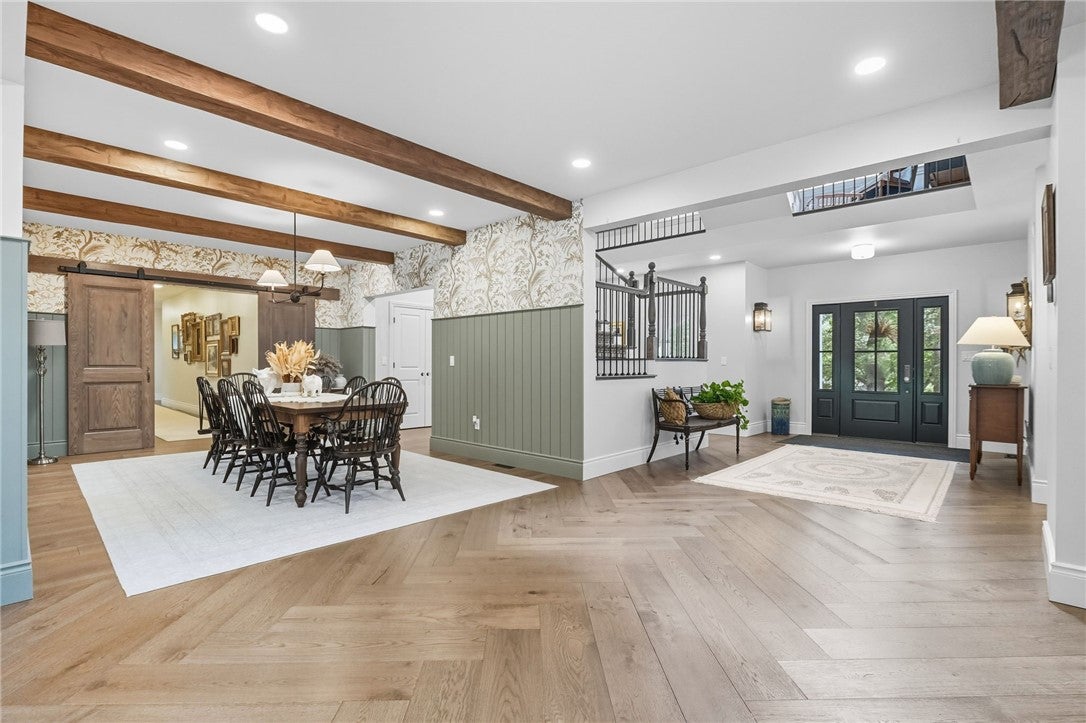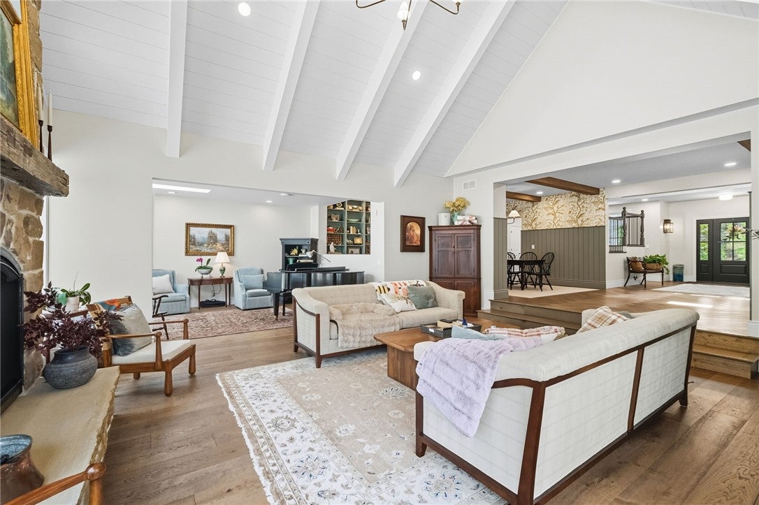 Welcome Home to 5056 BEAR RUN RD nestled on 25 secluded acres within the heart of Cranberry Township, PA! This remarkable 11,000 Sq Ft Estate provides the perfect blend of modern design timeless architecture. The beautifully appointed 3-Story Entry welcomes you into the finest experiences of Home, unlike any other! The delightful A-Frame Great Room boasts a floor-to-ceiling Stone Fireplace, abundant natural light and breathtaking views out back. The recently redesigned Main Level, Chefs Style Kitchen Dining Area offer luxury finishes and offer the perfect space for entertaining gatherings! **The First Floor Master Suite retreat feels like a vacation within a home with no detail spared providing both comfort luxury, including a stone fireplace, massive Walk-In-Closet Dressing Room w/ Island, Arts Crafts room Spa-Inspired remodeled Bath! Adjacent to the Master Suite is a lavish Office secondary Main Level Guest Suite. **Upstairs offers 5 additional Bedrooms and multiple relaxation spaces sitting areas! **Recently Finished Walk-Out Gameroom adds 3,000 Sq Ft of living space with Full Kitchen, state-of-the-art Theatre Room, Gym, Dog Wash, and Entertainment Areas! **The lovely exterior secluded acreage at 5056 Bear Run Rd is truly unmatched with a long driveway gliding blissfully through the tree-lined landscape barn area leading to a 5-Car Oversized Attached Garage, perfect for a collector guests alike. **The compelling property provides a resort-style swimming pool, massive level backyard, mature treed surroundings with lush landscaping, barn, trails, gazebo, pond, and covered front back patios that invite you out for a morning coffee in the fresh air! Enjoy a perfect combination of seclusion convenience to the regions finest amenities, shopping, dining, parks, and schools. Truly the best of both worlds. 5056 Bear Run Rd is a One-Of-A-Kind residence, where luxury meets livability and where every corner has been thoughtfully curated, inside & out. Welcome Home!
