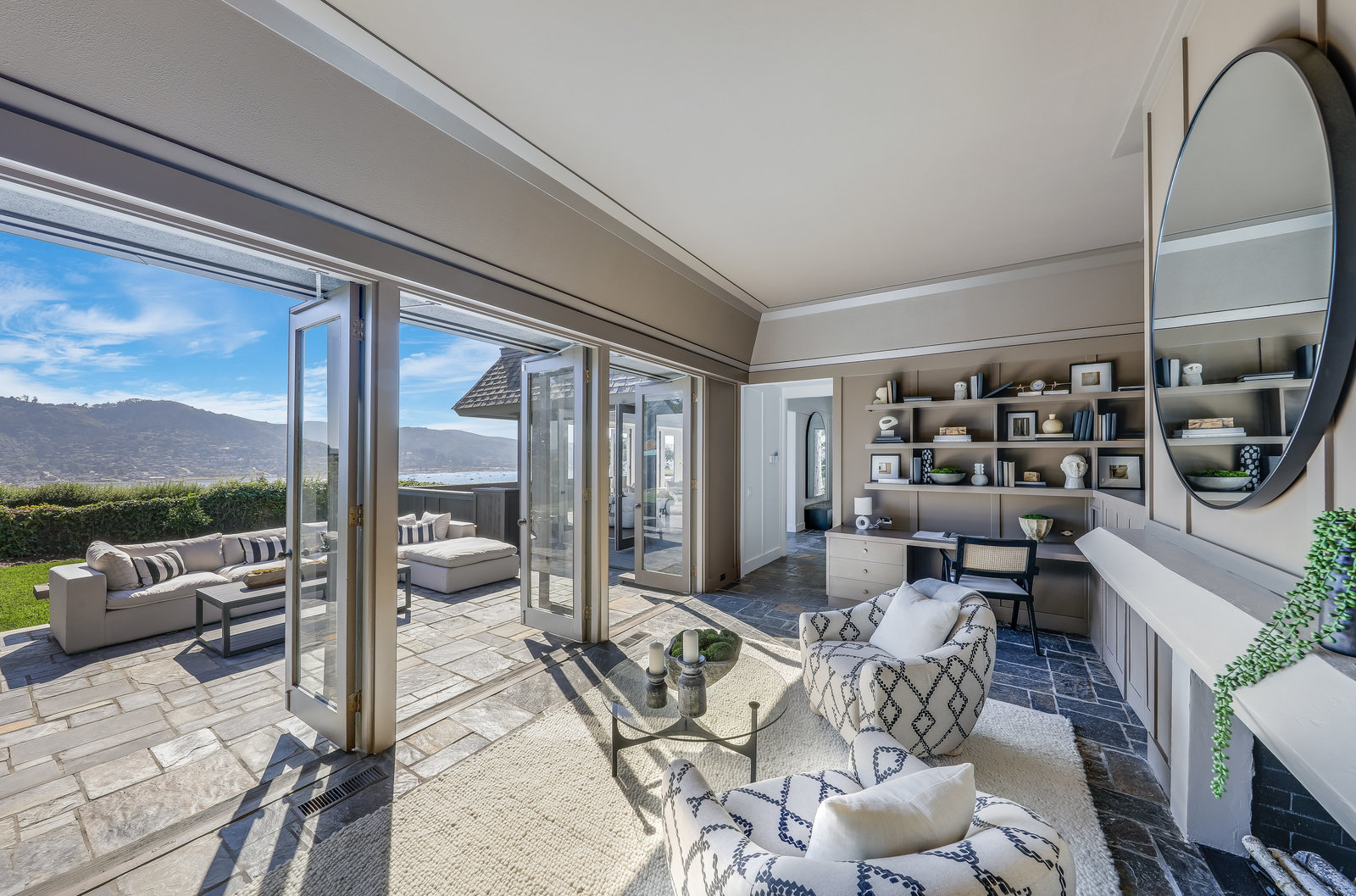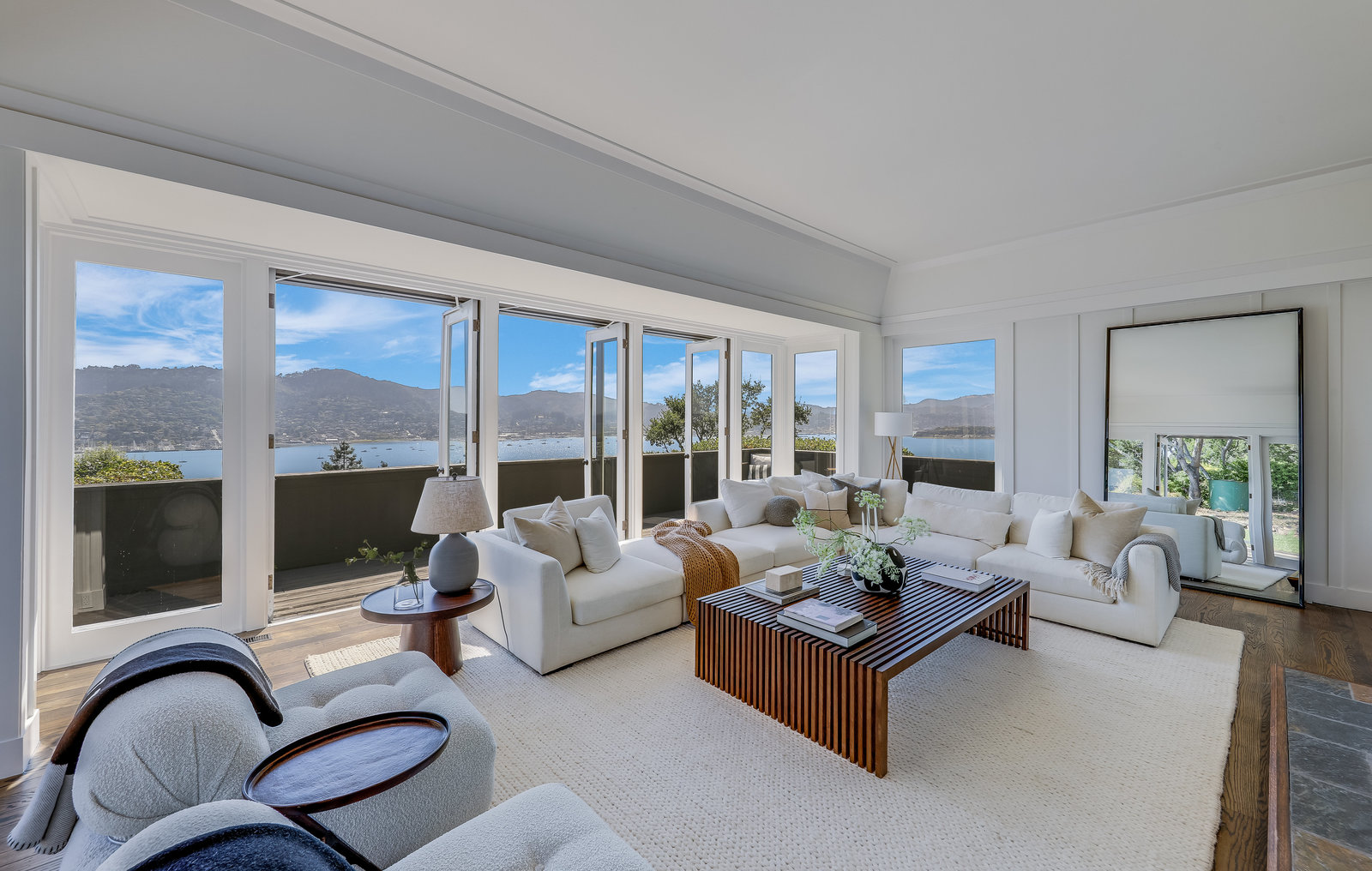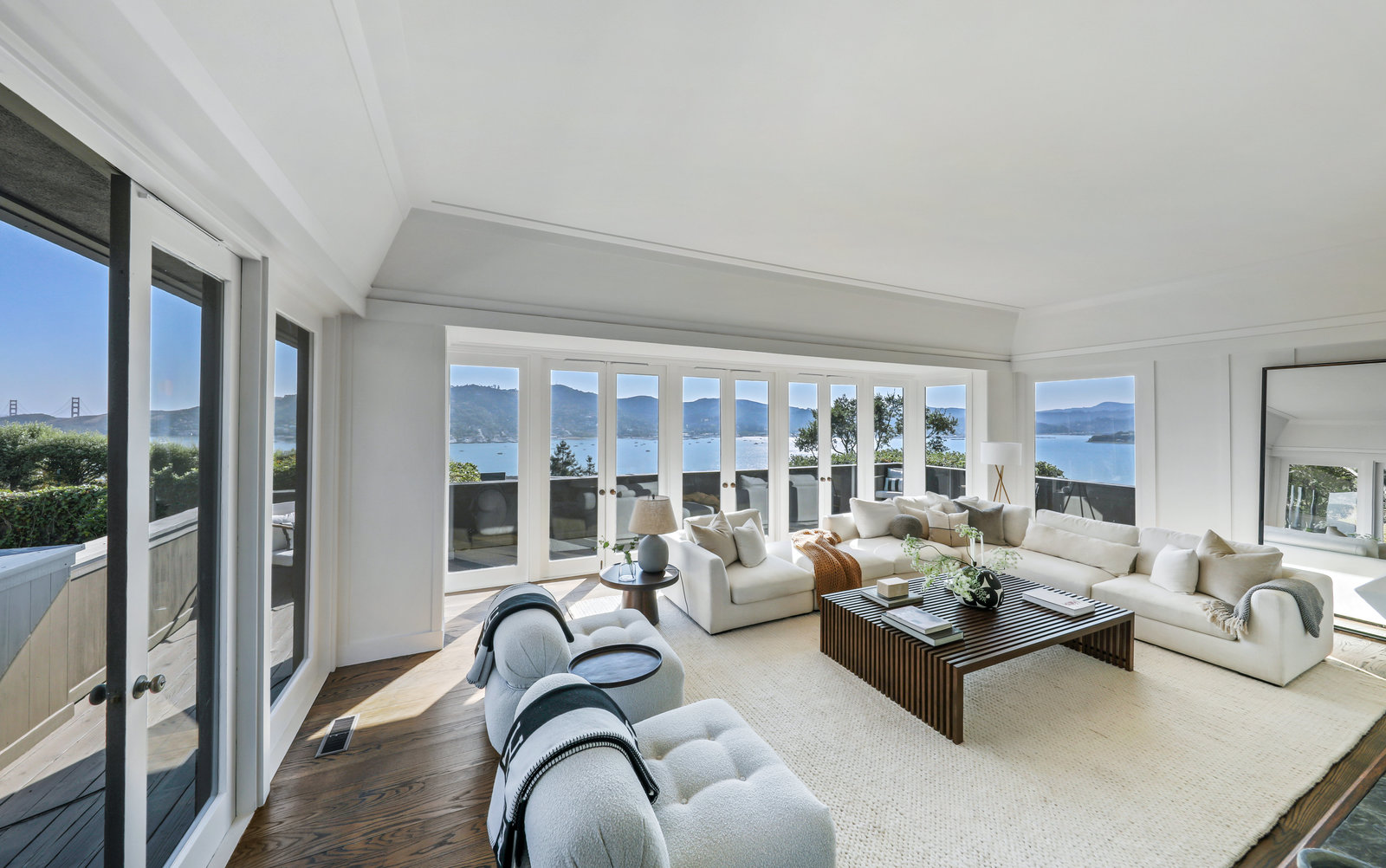 Situated in one of the Bay Area's most coveted neighborhoods, Belvedere Island, this mid-century view residence showcases chic and modern refinement. Designed by renowned architect Warren Callister, this home provides 4 bedrooms, 5.5 baths, 3,910 square feet and is set on a 0.5183-acre lot. 104 Golden Gate Avenue is a secluded retreat offering stunning panoramic views of the Golden Gate Bridge, Richardson Bay, Sausalito, inspiring peaks of Mount Tamalpais and surrounding vistas.This artfully designed residence showcases exquisite woodwork, detailed craftsmanship, and striking architectural elements throughout. The floor plan is an entertainer’s dream, with light flooded large-scale public spaces, west facing views and an abundance of skylights. Revel in the sunlight and serene views from the living room and enjoy a seamless indoor-outdoor connection through multiple floor to ceiling French doors that open to a large entertainment terrace, wrap around deck, lush level lawn, and manicured landscaping.The grand dining space is the soul of the home, effortlessly transitioning into a stunning newly updated kitchen. This culinary haven is adorned with tumbled travertine tiles, Moroccan-inspired tile backsplash, and Calacatta Magnifico Quartz countertops. Custom cabinetry seamlessly integrates with an array of top-tier stainless steel appliances, including a 6-burner Thermador range and a sleek Zephyr range hood. The adjoining breakfast nook, with its stunning views of Richardson Bay, is the ideal casual spot to enjoy your morning coffee.The primary suite serves as an intimate sanctuary, featuring dual ensuite baths and French doors opening to the captivating water vistas and private patio. Another ensuite bedroom and powder room complete this level.The lower level provides two ensuite bedrooms and a welcoming family room, complete with a kitchenette, laundry room, and storage room. This space, ideal as a lounge or media room, also enjoys a dedicated entrance to the gracious motor court and 3-car sheltered carport.This one-of-a-kind residence offers a premier location, close proximity to waterfront and island pathways, Belvedere Park, award-winning local schools, downtown Tiburon’s boutique shops, gourmet restaurants, movie theater, San Francisco and Angel Island ferries, and the Boardwalk shopping center.