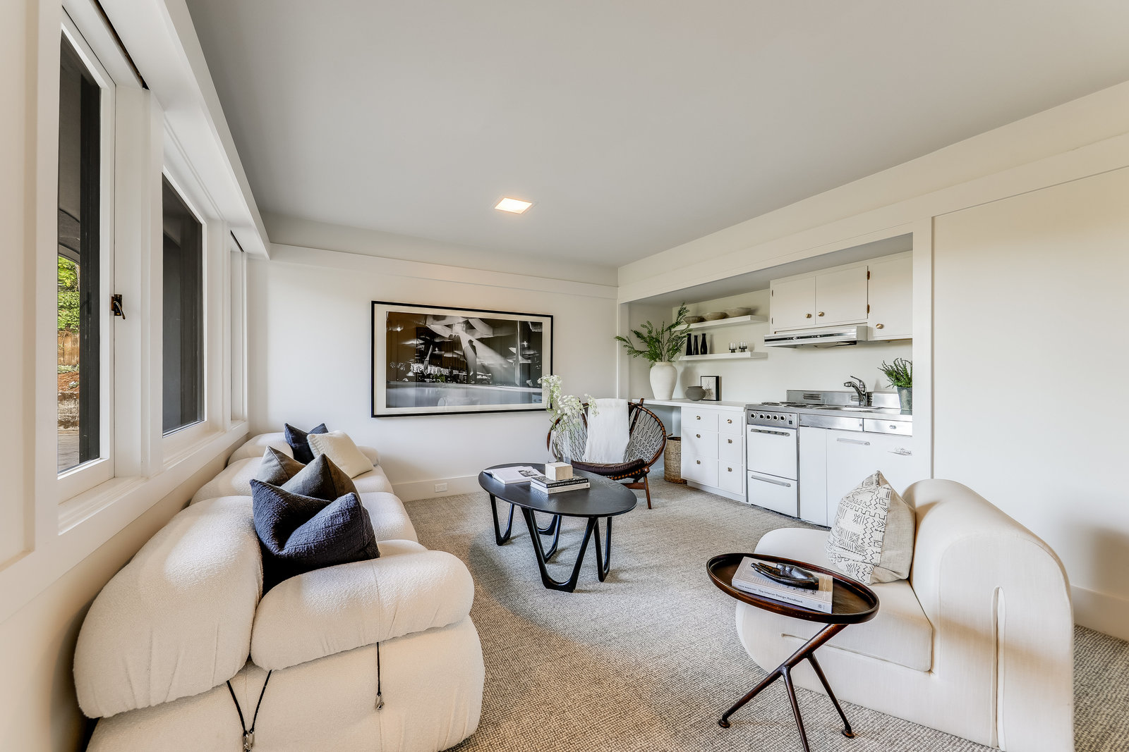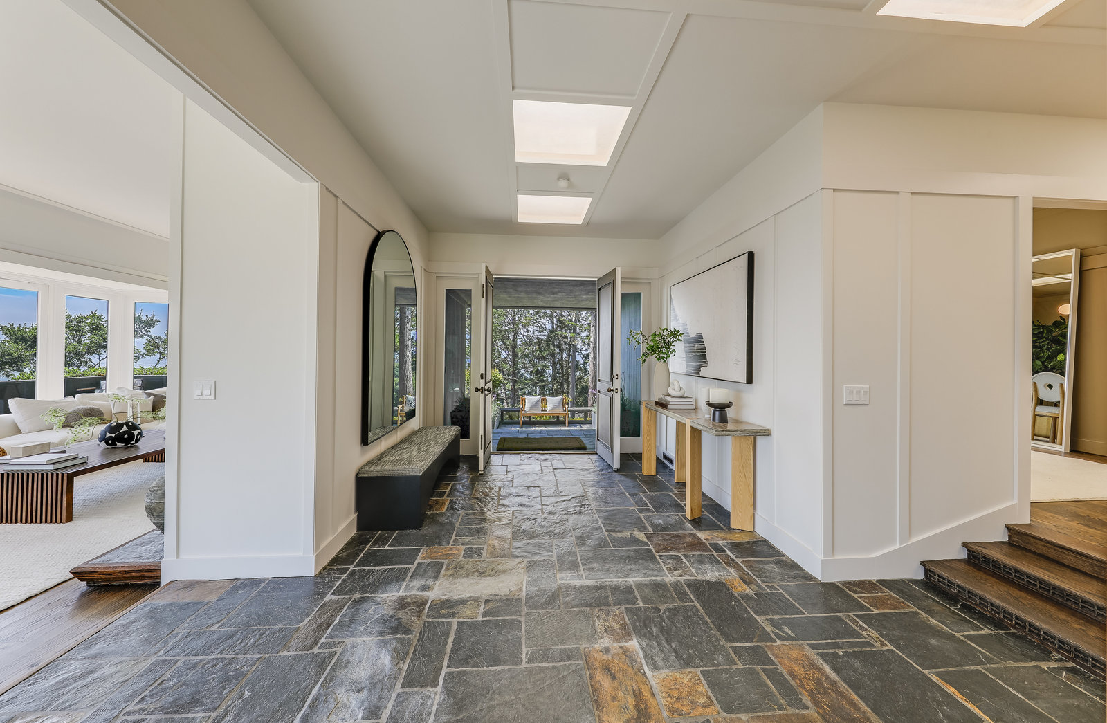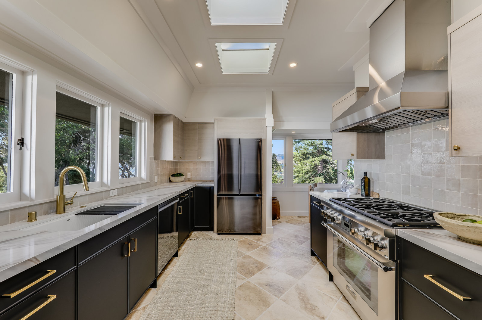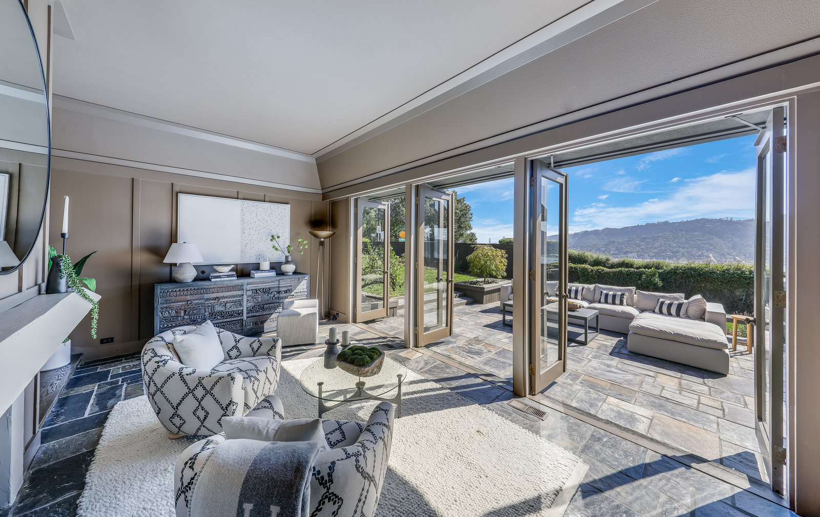 Situated in one of the Bay Area's most coveted neighborhoods, Belvedere Island, this mid-century view residence showcases chic and modern refinement. Designed by renowned architect Warren Callister, this home provides 4 bedrooms, 5.5 baths, 3,910 square feet and is set on a 0.5183-acre lot. 104 Golden Gate Avenue is a secluded retreat offering stunning panoramic views of the Golden Gate Bridge, Richardson Bay, Sausalito, inspiring peaks of Mount Tamalpais and surrounding vistas.This artfully designed residence showcases exquisite woodwork, detailed craftsmanship, and striking architectural elements throughout. The floor plan is an entertainer’s dream, with light flooded large-scale public spaces, west facing views and an abundance of skylights. Revel in the sunlight and serene views from the living room and enjoy a seamless indoor-outdoor connection through multiple floor to ceiling French doors that open to a large entertainment terrace, wrap around deck, lush level lawn, and manicured landscaping.The grand dining space is the soul of the home, effortlessly transitioning into a stunning newly updated kitchen. This culinary haven is adorned with tumbled travertine tiles, Moroccan-inspired tile backsplash, and Calacatta Magnifico Quartz countertops. Custom cabinetry seamlessly integrates with an array of top-tier stainless steel appliances, including a 6-burner Thermador range and a sleek Zephyr range hood. The adjoining breakfast nook, with its stunning views of Richardson Bay, is the ideal casual spot to enjoy your morning coffee.The primary suite serves as an intimate sanctuary, featuring dual ensuite baths and French doors opening to the captivating water vistas and private patio. Another ensuite bedroom and powder room complete this level.The lower level provides two ensuite bedrooms and a welcoming family room, complete with a kitchenette, laundry room, and storage room. This space, ideal as a lounge or media room, also enjoys a dedicated entrance to the gracious motor court and 3-car sheltered carport.This one-of-a-kind residence offers a premier location, close proximity to waterfront and island pathways, Belvedere Park, award-winning local schools, downtown Tiburon’s boutique shops, gourmet restaurants, movie theater, San Francisco and Angel Island ferries, and the Boardwalk shopping center.