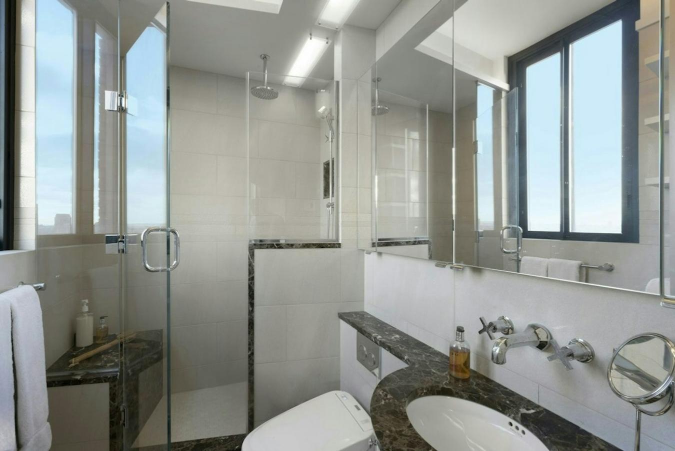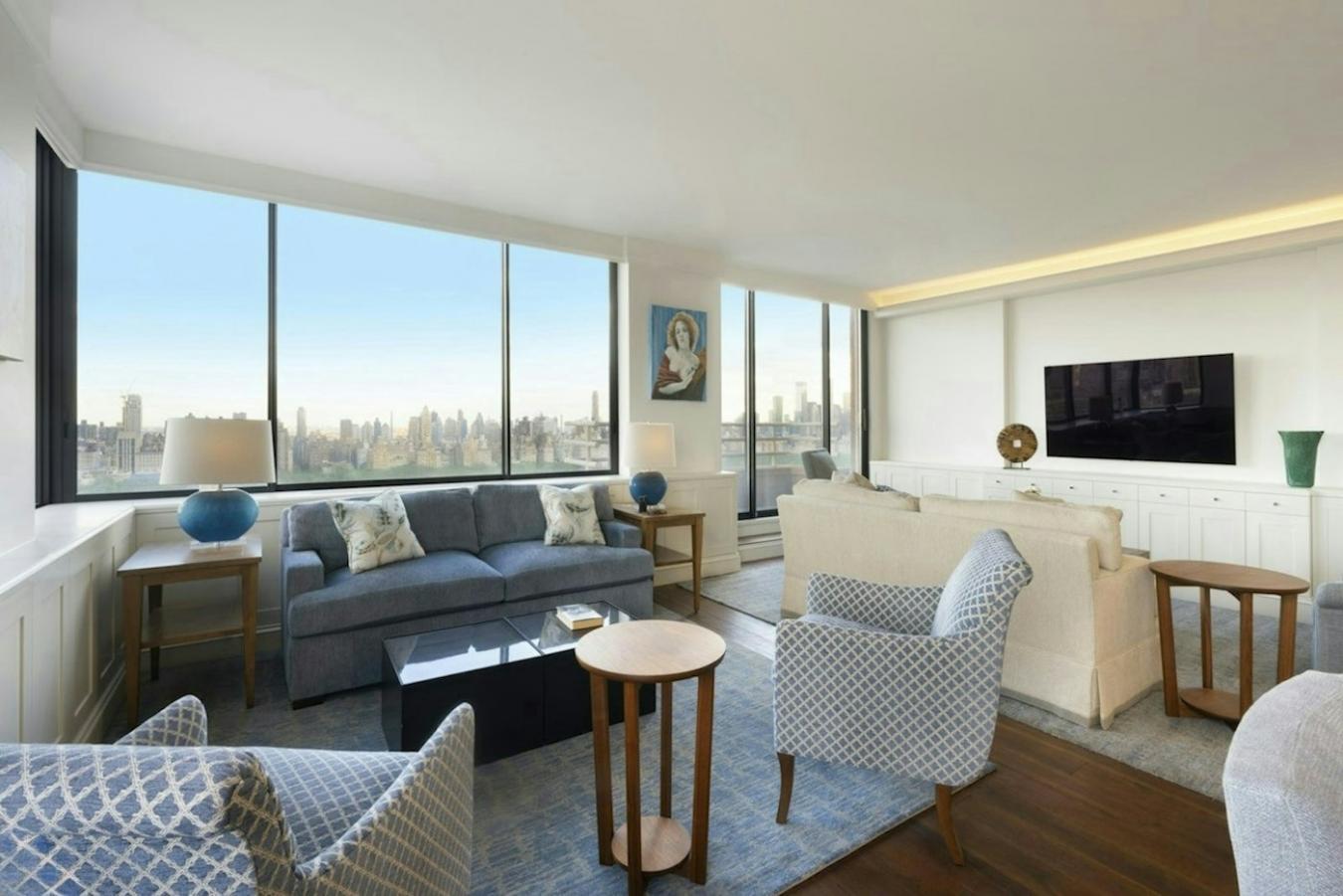 Perched high in the tower, this rare corner residence offers a remarkable opportunity to own a gracious 2-3 bedroom home with sweeping, unobstructed panoramic views of Central Park, the city skyline, and the Hudson River.