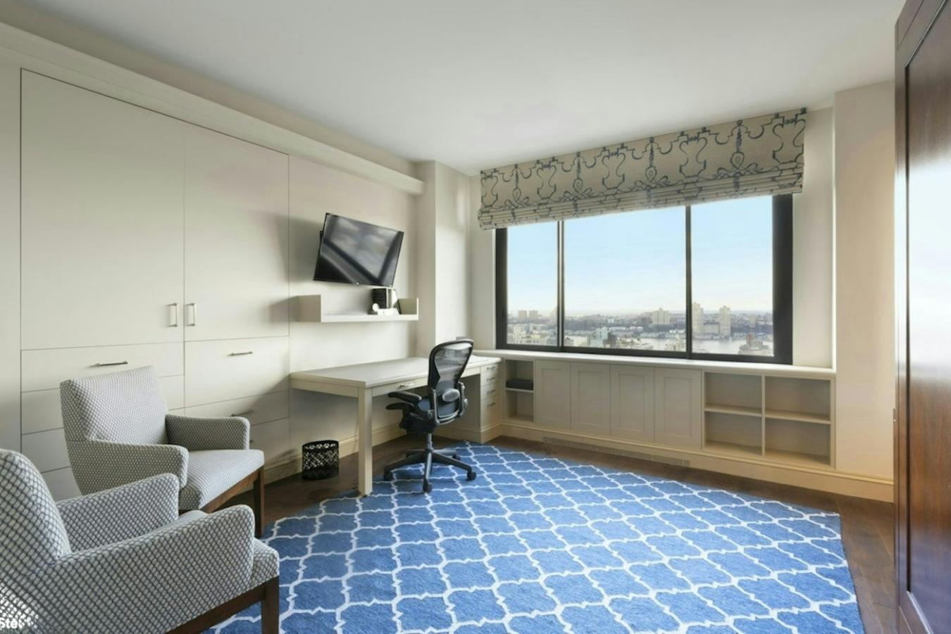 This expansive sun-filled corner residence offers a high-floor vantage point, a desirable split-bedroom layout, and generous proportions for comfortable living and entertaining. Enter through a semi-private hallway into a foyer that leads to a great room with northern, eastern, and western exposures, offering open city vistas and Central Park views.