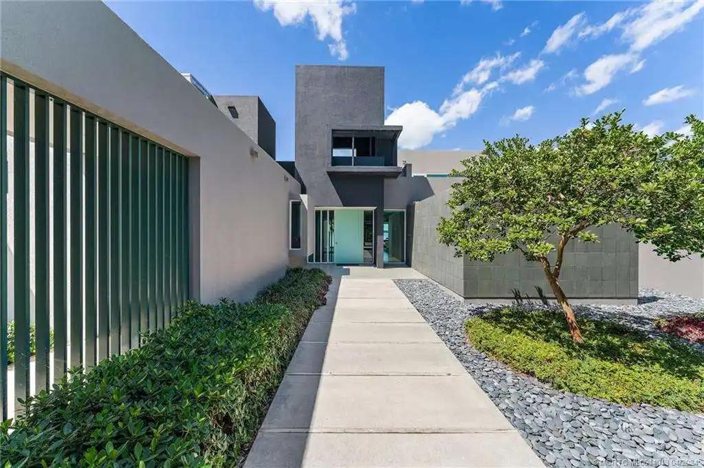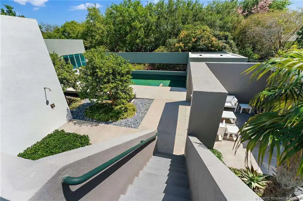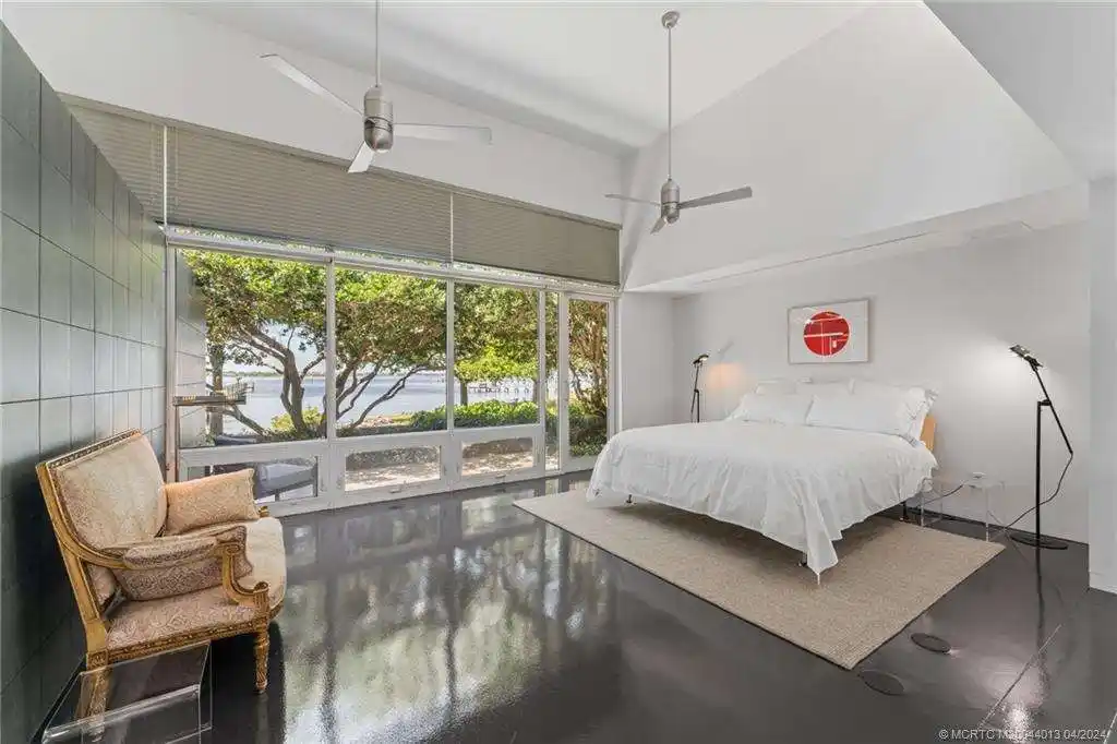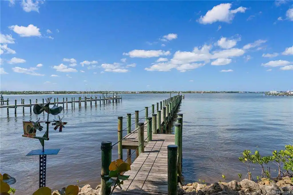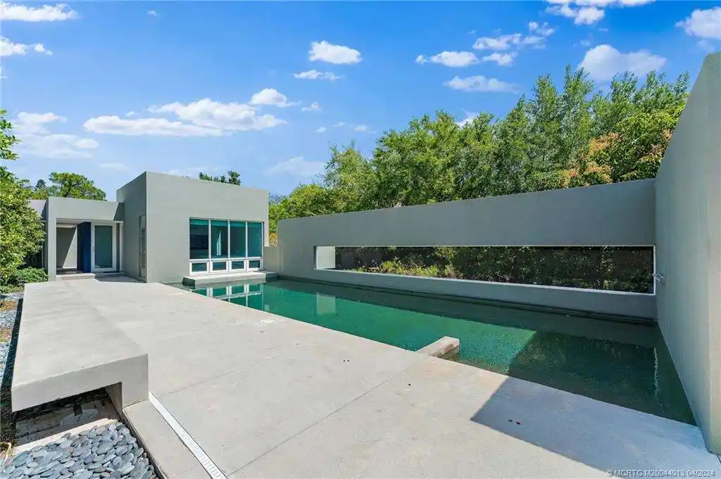 This modern residence combines a 7,500 square foot design by an award-winning architect with stunning wide river views amidst breathtaking landscaping all in an exclusive private setting. The house rests on a double riverfront lot that features over 200 feet of protected shoreline on the wide St. Lucie River, a 360-foot dock, and panoramic sunsets. The house design provides for easy movement and wonderful private courtyard spaces featuring five bedrooms and five and a half bathrooms all with pool or water views. Built for convenience, the residence has a separate guest suite. Two private offices with water views. Built in custom cabinetry. Step outside and escape into nature with a double layer backyard pond, courtyard koi pond, and paths winding around beautiful exotic landscaping and mature oak trees to complete this waterfront masterpiece.