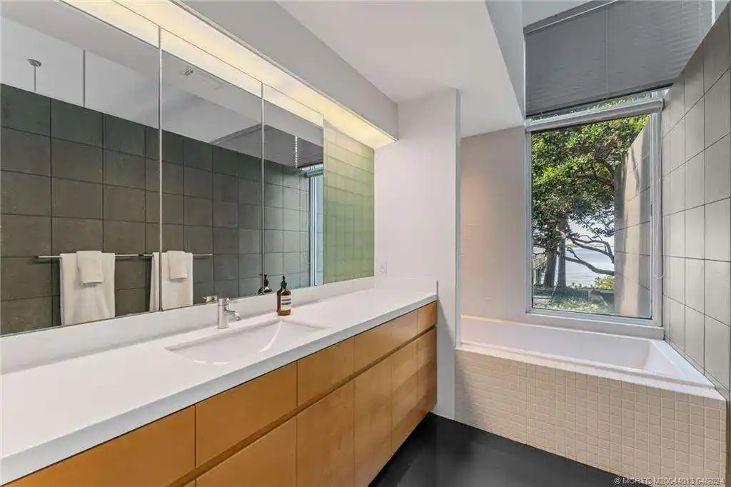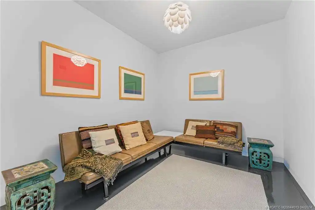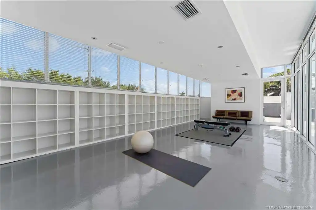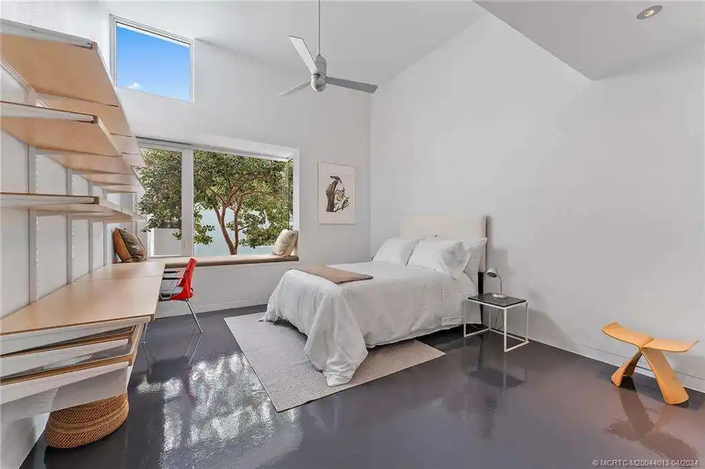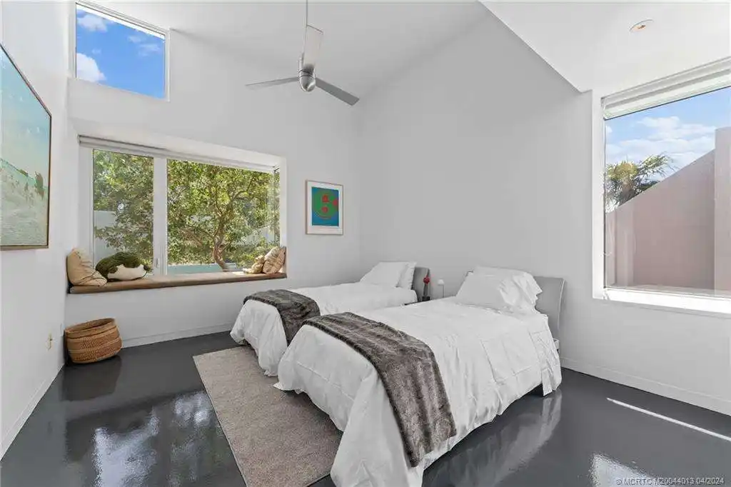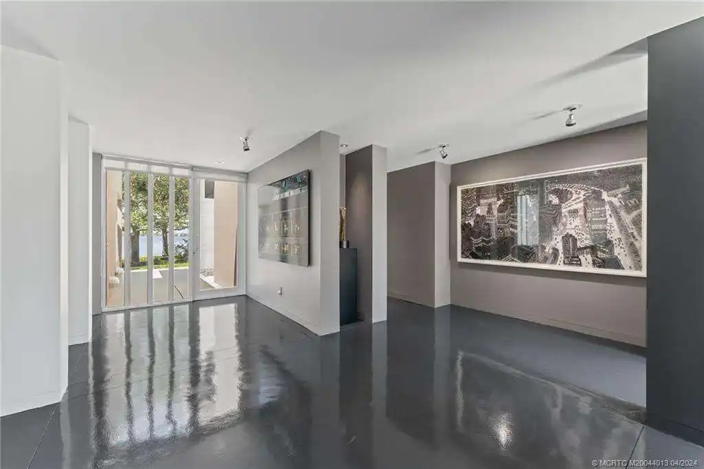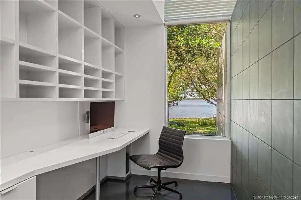 This modern residence combines a 7,500 square foot design by an award-winning architect with stunning wide river views amidst breathtaking landscaping all in an exclusive private setting. The house rests on a double riverfront lot that features over 200 feet of protected shoreline on the wide St. Lucie River, a 360-foot dock, and panoramic sunsets.