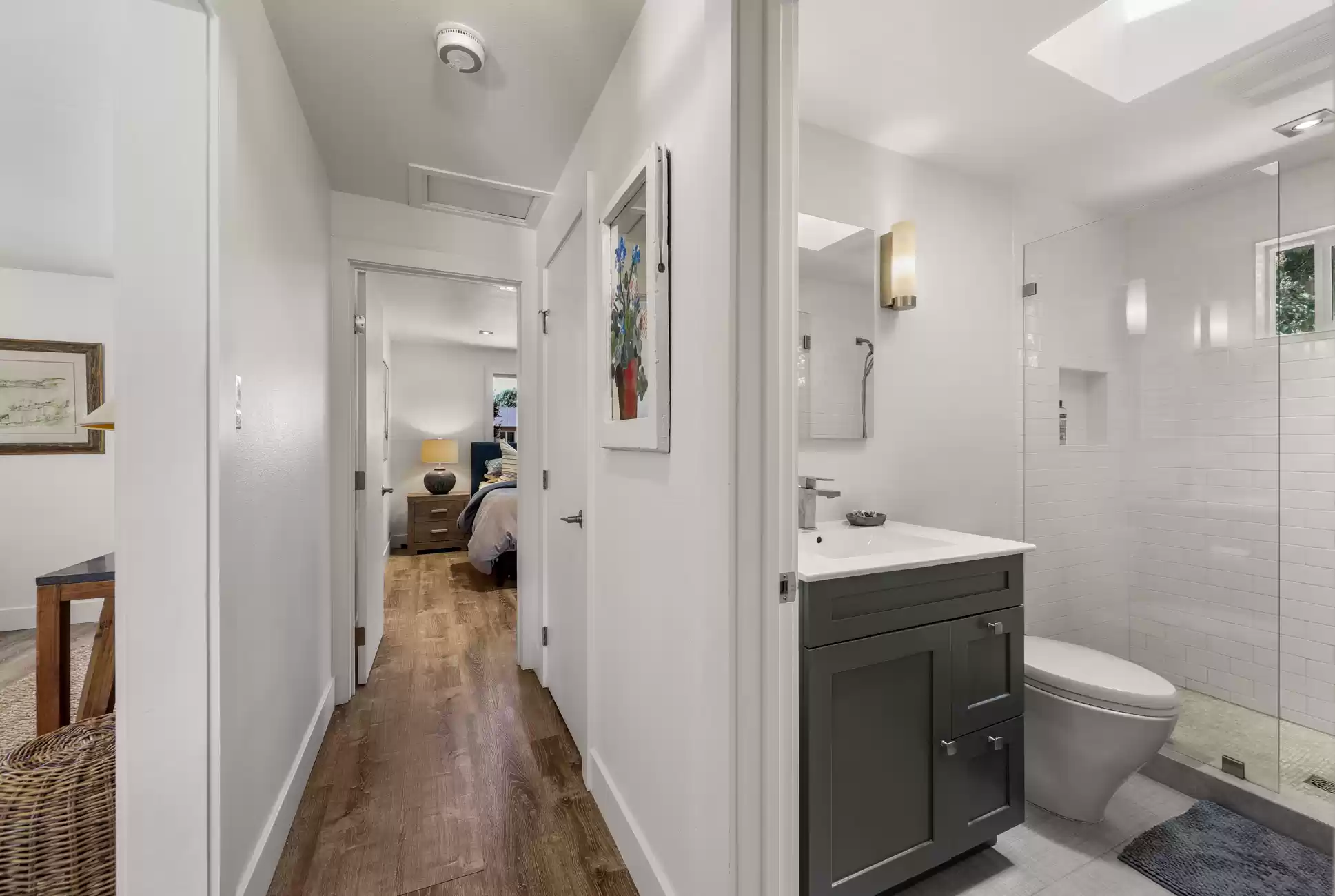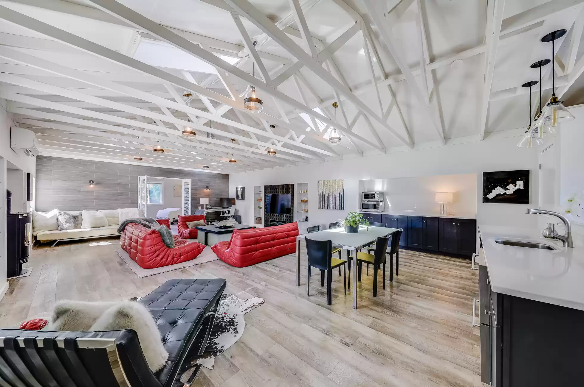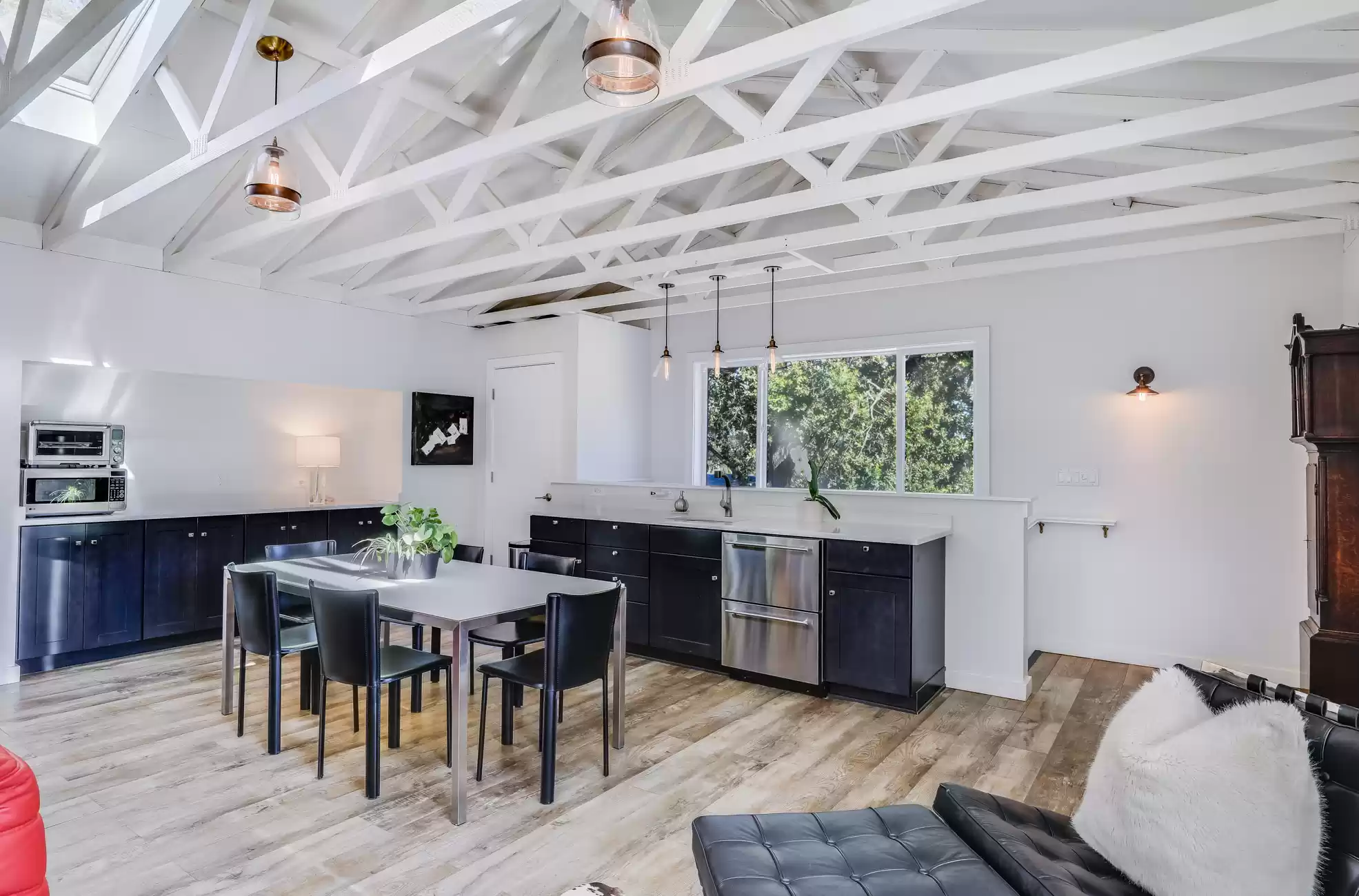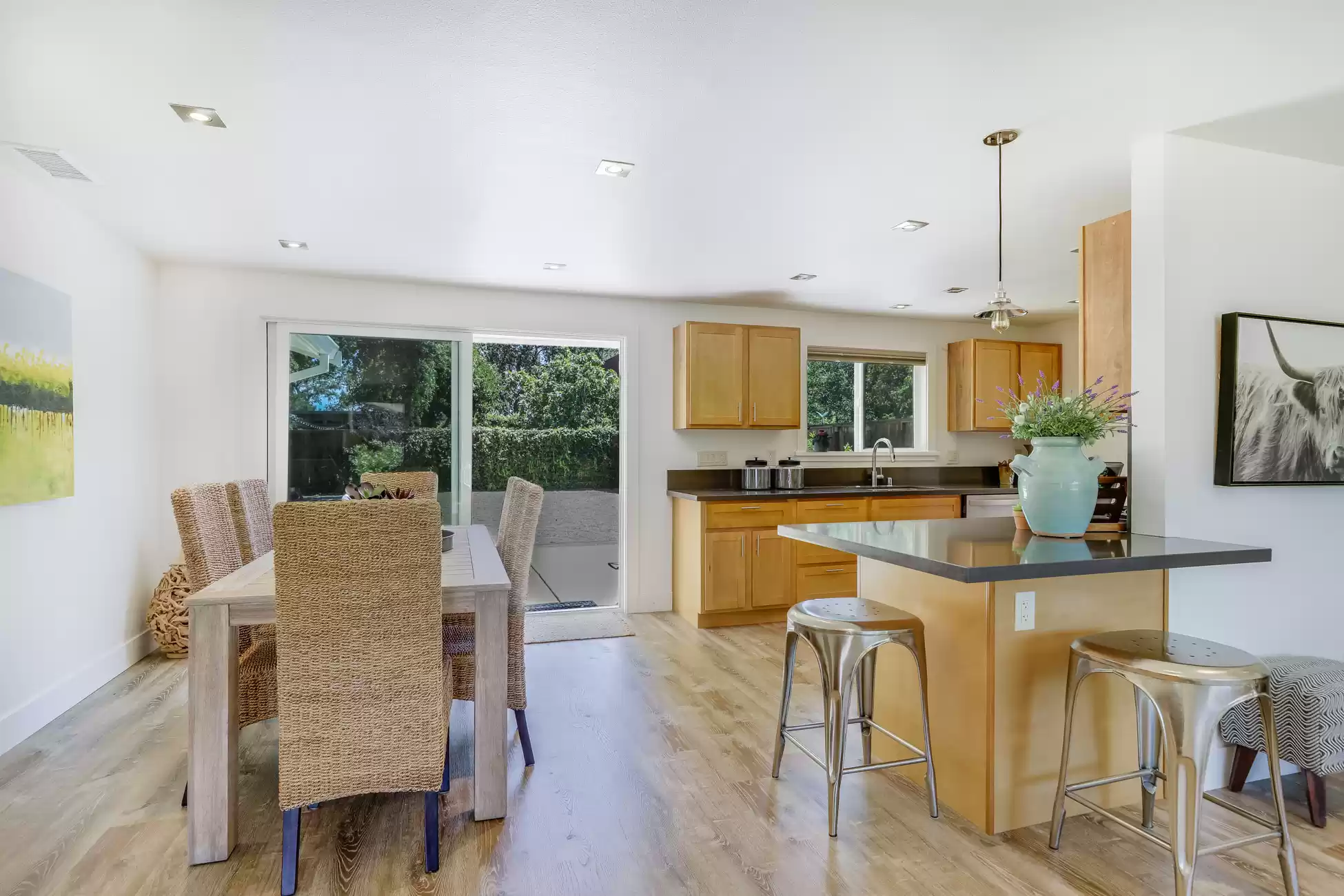 Welcome to your own private, idyllic paradise, situated on an inviting country lane on 1 (+/- ) acre surrounded by vineyards. This one of a kind wine country compound is an entertainer’s dream, perfectly designed to blend the indoors with the outdoors, creating a classic Napa Valley experience, sure to capture the attention of the most discerning buyer.The property consists of three separate dwellings; a farmhouse style front house, a sleek modern rear house designed by Matthew Stannard, Stillwater Dwellings, and a rustic modern barn with one bedroom apartment upstairs and spacious entertainment area below. ‘Smart Home’ technology remoteley manages your security, climate, lighting, and irrigation systems.The 1195 (+/-) sq ft front house overlooks your private cabernet vineyard. This home features 2 bedrooms, an office, full bathroom with stall shower, kitchen with quartz countertops, stainless steel Whirlpool appliances, and living room with gas fireplace. The dining area opens to a private patio, expansive level entertainment area and perimeter fencing. A one-car garage is attached with ample laundry space.The 1120 (+/-) sq ft rear house is designed to efficiently stay cool in the summer and warm in the winter. Featuring bamboo flooring, 2 bedrooms, 1 bathroom, an open concept living room, dining room, and kitchen space. The living area with a Montigo gas fireplace boasts expansive windows with views of the vineyards, mountains and large entertainment patio. The custom birch cabinetry complements the Caesarstone Raven countertops and stainless steel appliances in the kitchen.The 1420 (+/-) sq ft rustic modern barn is restored and remodeled throughout with 4-inches of insulated foam under a standing seam metal roof. The expansive entertainment space downstairs encompasses a performance stage, a bar, buffet service counter, storage closet, and wall of built-in cabinets. Also at the ground level is a walk-in temperature controlled wine cellar with storage for 700+ bottles.The 1160 (+/-) upstairs barn has a spacious one bedroom, one bathroom apartment with walk-in closet, open concept living room/dining area, Montigo gas fireplace, Summit 2 drawer stainless steel refrigerator/freezer, stainless sink and washer/dryer.The outdoors are nothing short of spectacular, with magazine-worthy landscaping designed by renowned landscape architect Josh Chandler.Magical outdoor spaces seamlessly connect to create a resort-like experience featuring multiple entertainment areas, custom-designed water features, stunning pool finished in a Wet Edge ‘Picasso Blue’ pebble finish, stainless steel spa by Diamond Spa, bocce court with crushed oyster shells, large cushioned lounge area next to bocce court, extra large 6ft stone firepit, built-in outdoor Lynx grill with Caesarstone countertop and custom metal cabinet doors below, covered stainless sink and outdoor dining area with mesh shade canopy above. Edible bounty from the orchard, culinary garden, raised produce beds, and Cabernet vines complete the farm-to-table experience.This special residence in the flight path of Napa Valley’s Hot Air Balloons, has been the host to the Napa Valley Film Festival, numerous wine country fundraisers, and has been featured in architectural magazines. The property is centrally located and provides easy access to downtown Napa, St. Helena, Yountville, and the surrounding world-class wineries. Only minutes to the charmed town of Yountville, every food lover's destination featuring some of Northern California’s best restaurants; the famed Thomas Keller’s French Laundry, Ad Hoc, and Bouchon, Bistro Jeanty, RH Yountville restaurant, wine bar and showroom.Additional Features Include:Front HouseNew washer and dryerNew HVAC with Nest thermostatNew hot water heaterRear HouseAC attached to the house has been serviced twice (recently - 7/22)Added remote switch in the house to turn on outdoor dining patio lights from insideServiced gas fireplaceNew gas starter switch installed for fireplaceRefrigerator/freezer (10/22)Loft/BarnServiced gas fireplaceNew gas starter switch installed for gas fireplaceRecently serviced refrigeration system in wine closet (7/22)Refrigerator/freezer drawers for loft apartment (9/19)New shade for loft bedroom windowNew gutter guards on barn gutter (12/21)Back PropertyPool, spa, and patio completed (11/21)Pool solar (6/22)New swimming pool with Wet Edge Pebble Finish in “Picasso Blue” (additional details available)All steel portable spa by Diamond Spas, ColoradoEV Outlet added to the drivewayCustom sliding metal gate at entry path off the drivewayLandscaping workNew galvanized metal roof over bocce bench which included additional metal pipe support overheadStained and sealed bocce deck, wood bench, and coffee tableReplaced pump in the fountain by bocceAdded oyster shells to the bocce courtMonitoring wells to the Bocce area for septicSwitched all lawn sprays to MP rotors for additional water savingsAdded several yards of gravel to the area between the barn and poolRebuilt fence and wood 4x6 edging post pool installationAdded 3ft high silt screen protector behind the sweet bay hedge on both sidesBuilt two-tiered Gabion bench with Miso bamboo top at end of concrete patioNew roof over large shed area and floor-to-ceiling shelving and hanging hooks inside for storage purposes (6/19)Placed grey DG area outside of shed all the way down to solid fence at the end past the chicken coopSpread gold DG inside the shed and treated with a pathway stabilizerRejuvenation of light fixtures over both barn doors and in the shedAdded Landscape lighting, mainly WAC brandMoved all veggie boxes, rebuilt as needed, added all new soil, irrigation, gopher wire, and weed barrier fabric underneathInstalled bamboo fence for privacy after cedar tree was removed and planted in frontOak tree trimming 2 different times to get to where we are now with the health of treesAdded stair access to veggie boxes with hog wire black gate