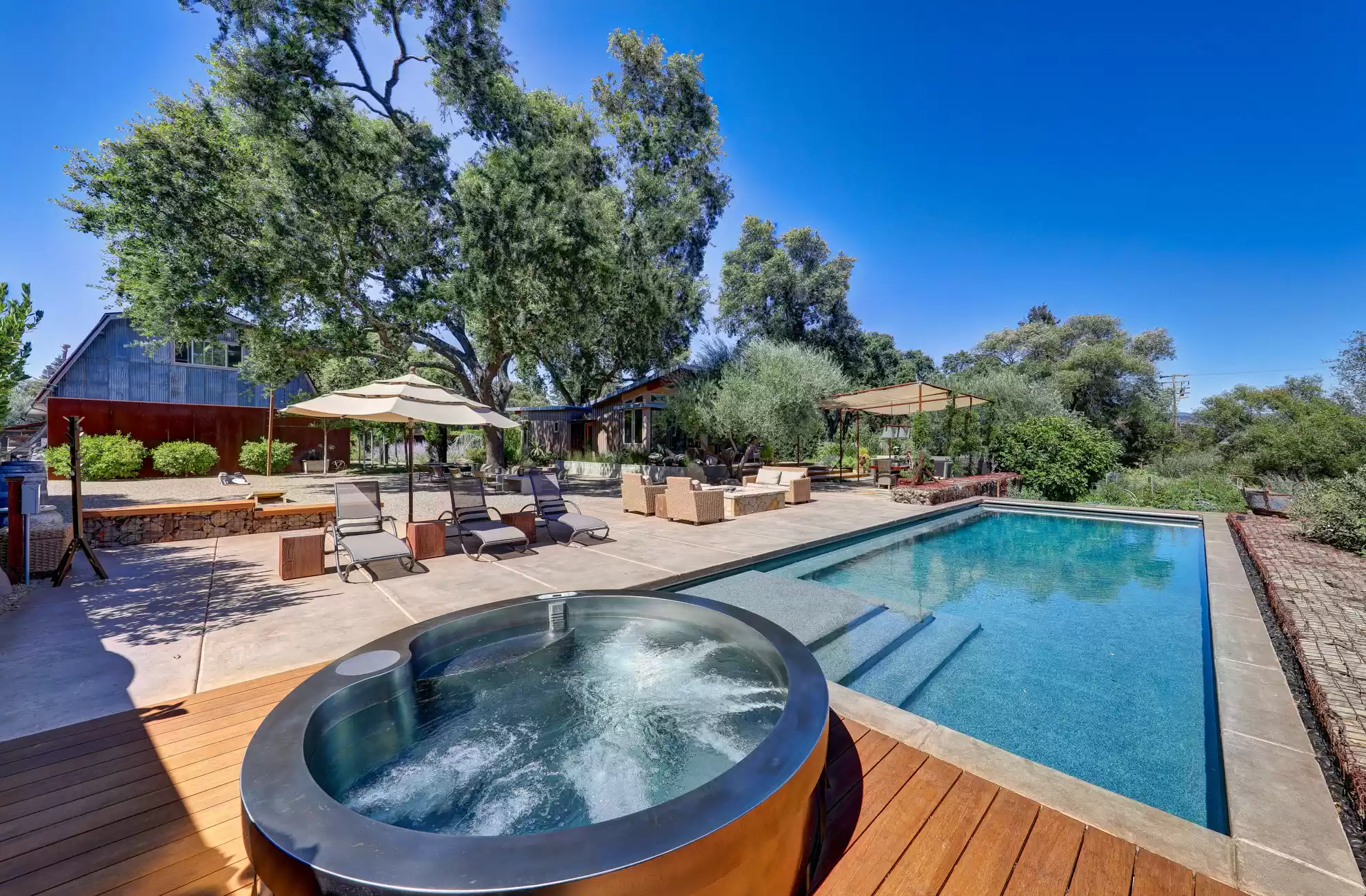 Welcome to your own private, idyllic paradise, situated on an inviting country lane on 1 (+/- ) acre surrounded by vineyards. This one of a kind wine country compound is an entertainer’s dream, perfectly designed to blend the indoors with the outdoors, creating a classic Napa Valley experience, sure to capture the attention of the most discerning buyer.