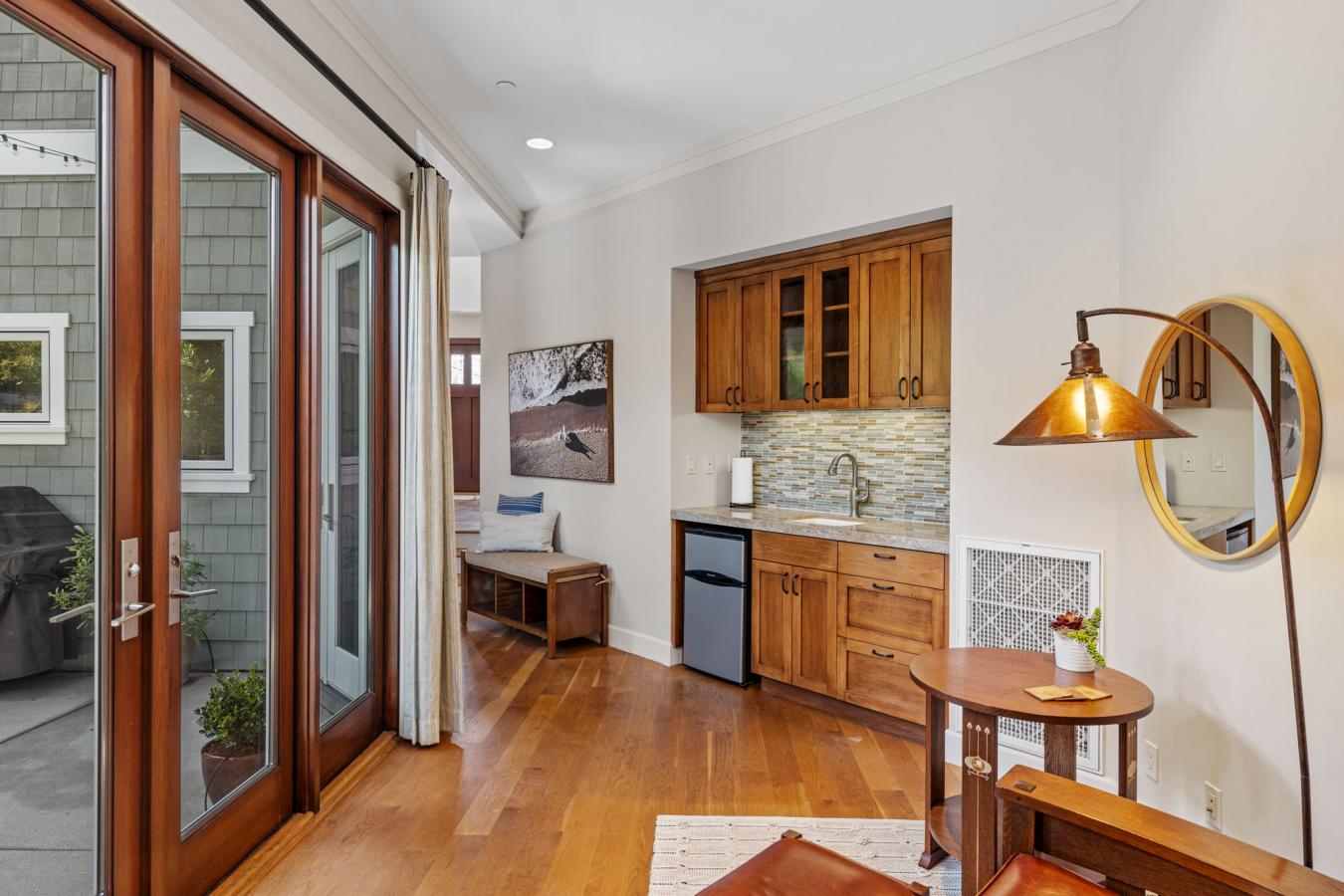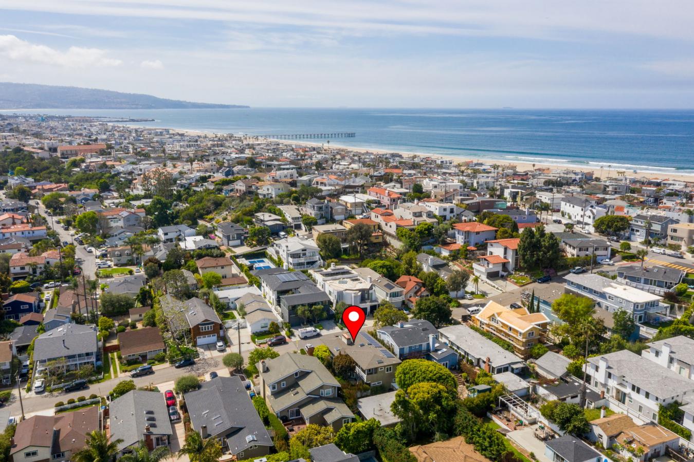 Coastal Living, Redefined-Two Distinct Homes in the Coveted Sand Section of North Hermosa Beach. An exceptional opportunity awaits just steps from the sand, Valley Park, and the vibrant energy of Pier Avenue. Situated on an expansive 6,251 sq ft lot in one of the most desirable pockets of North Hermosa Beach, this unique property features two beautifully crafted residences-a custom contemporary craftsman main home designed by the late Stan Anderson and a charming mid-century modern back house offering privacy and versatility. The main home, built in 2013, showcases refined coastal style and offers 2,128 square feet of living space with 3 bedrooms, an office, two full bathrooms, and two half baths. Solid wood flooring, curated designer furnishings, and thoughtful architectural touches create a warm and elevated atmosphere throughout. The sun-drenched great room on the second level boasts vaulted ceilings, a cozy fireplace, and custom tri-fold doors that open to an expansive balcony-ideal for effortless indoor-outdoor living. The chefs kitchen is a showstopper, featuring black soapstone countertops, a large island, custom cabinetry, luxury appliances, and a walk-in pantry. Off the living room is a small private office full of natural light. The serene primary suite offers a