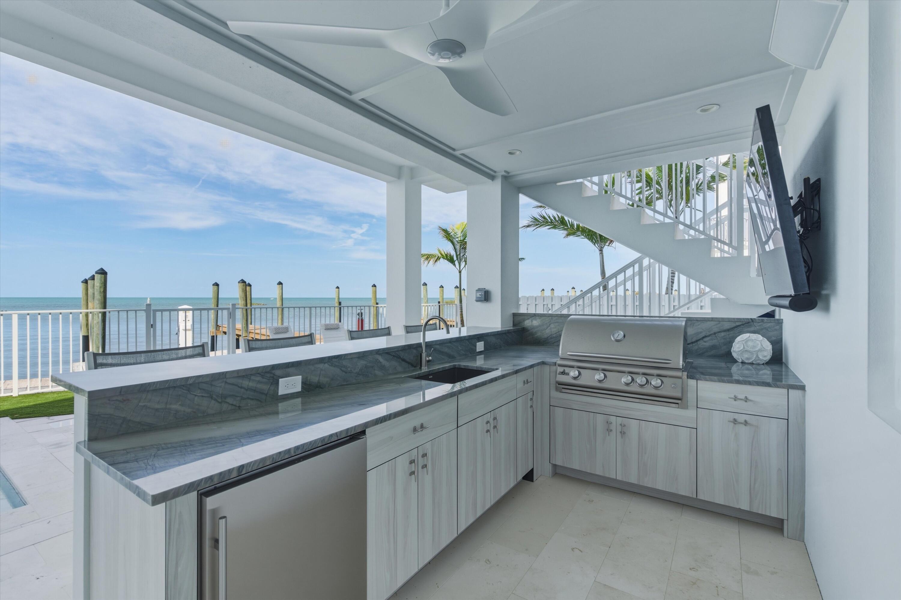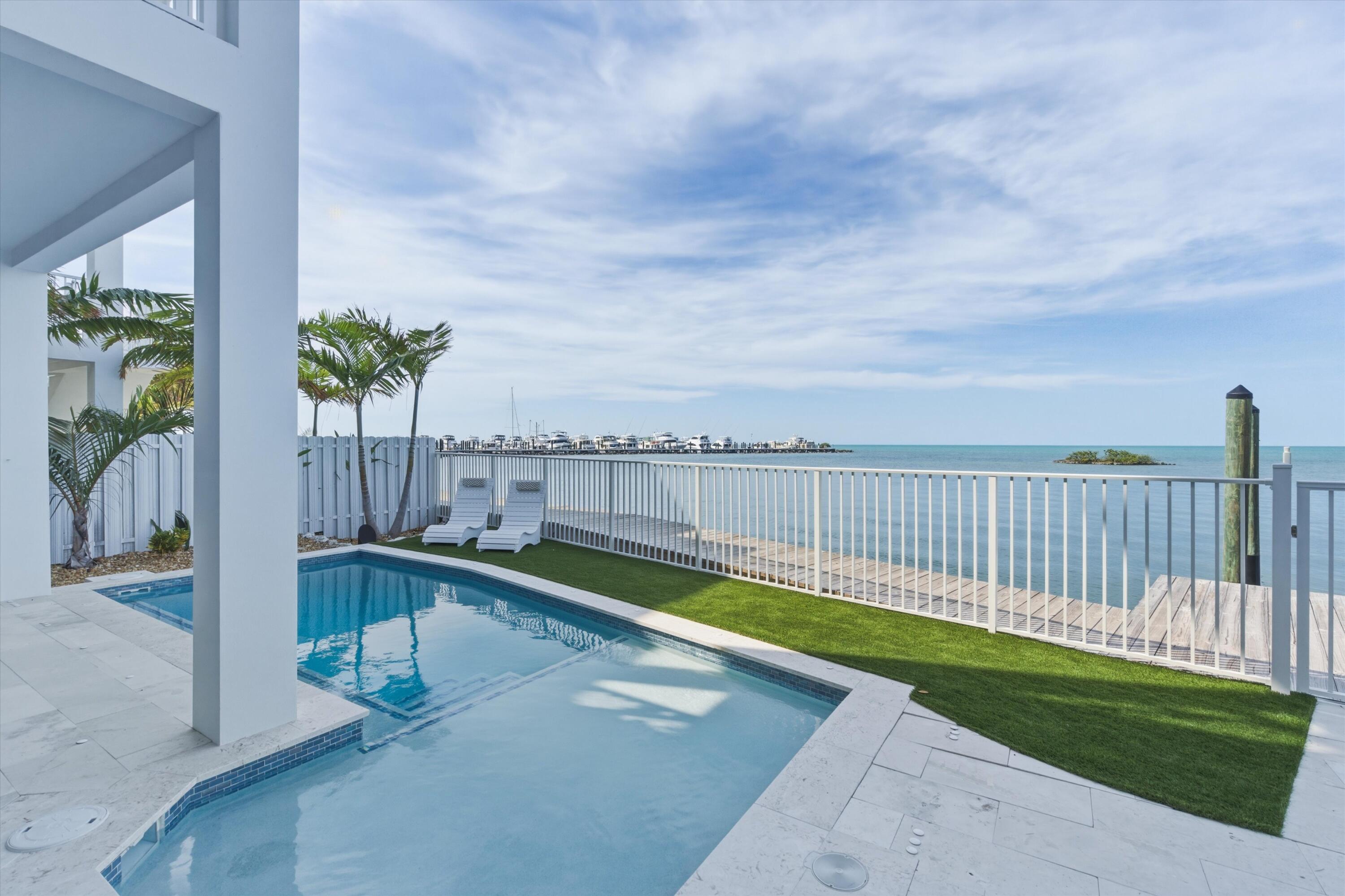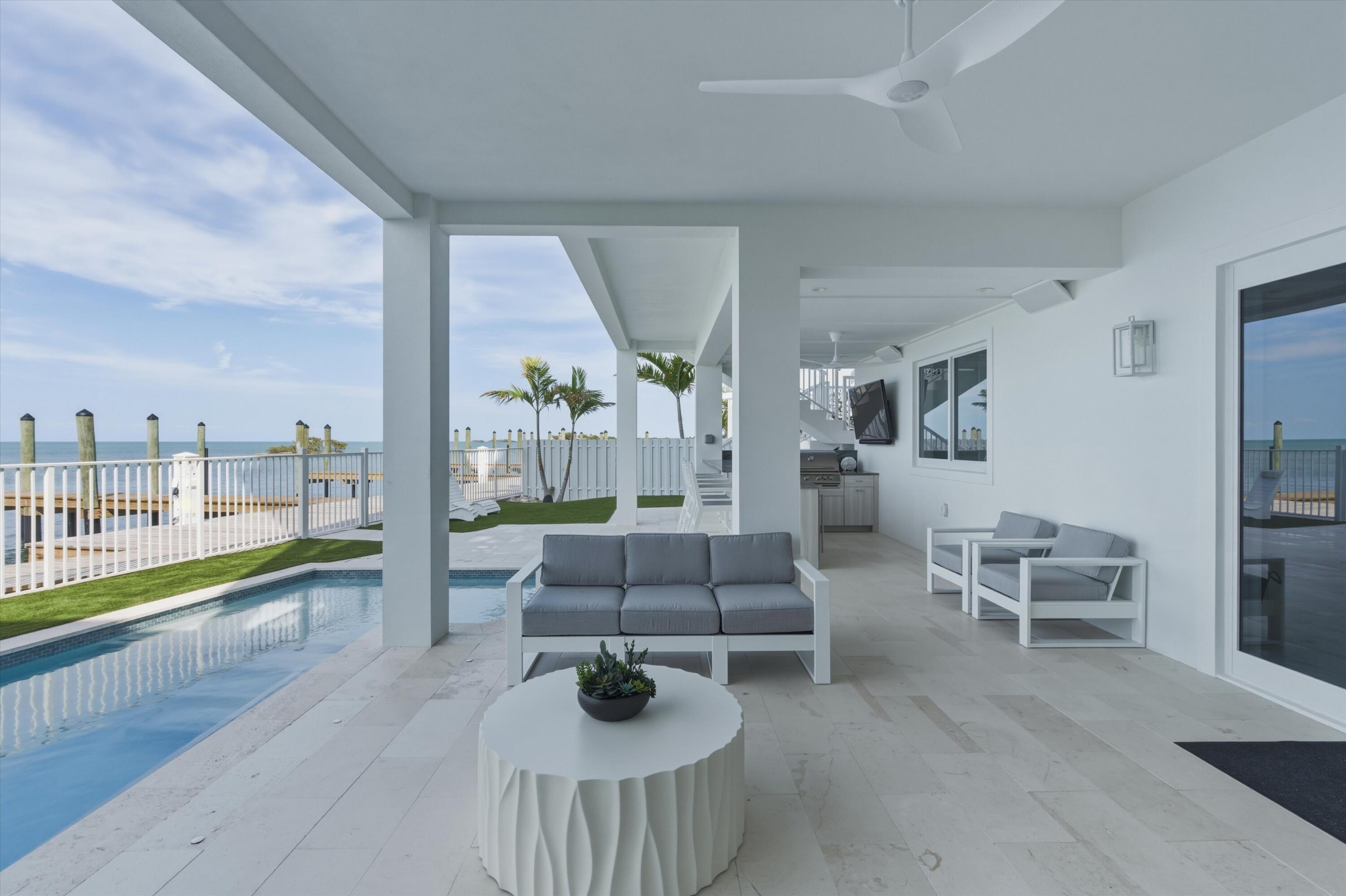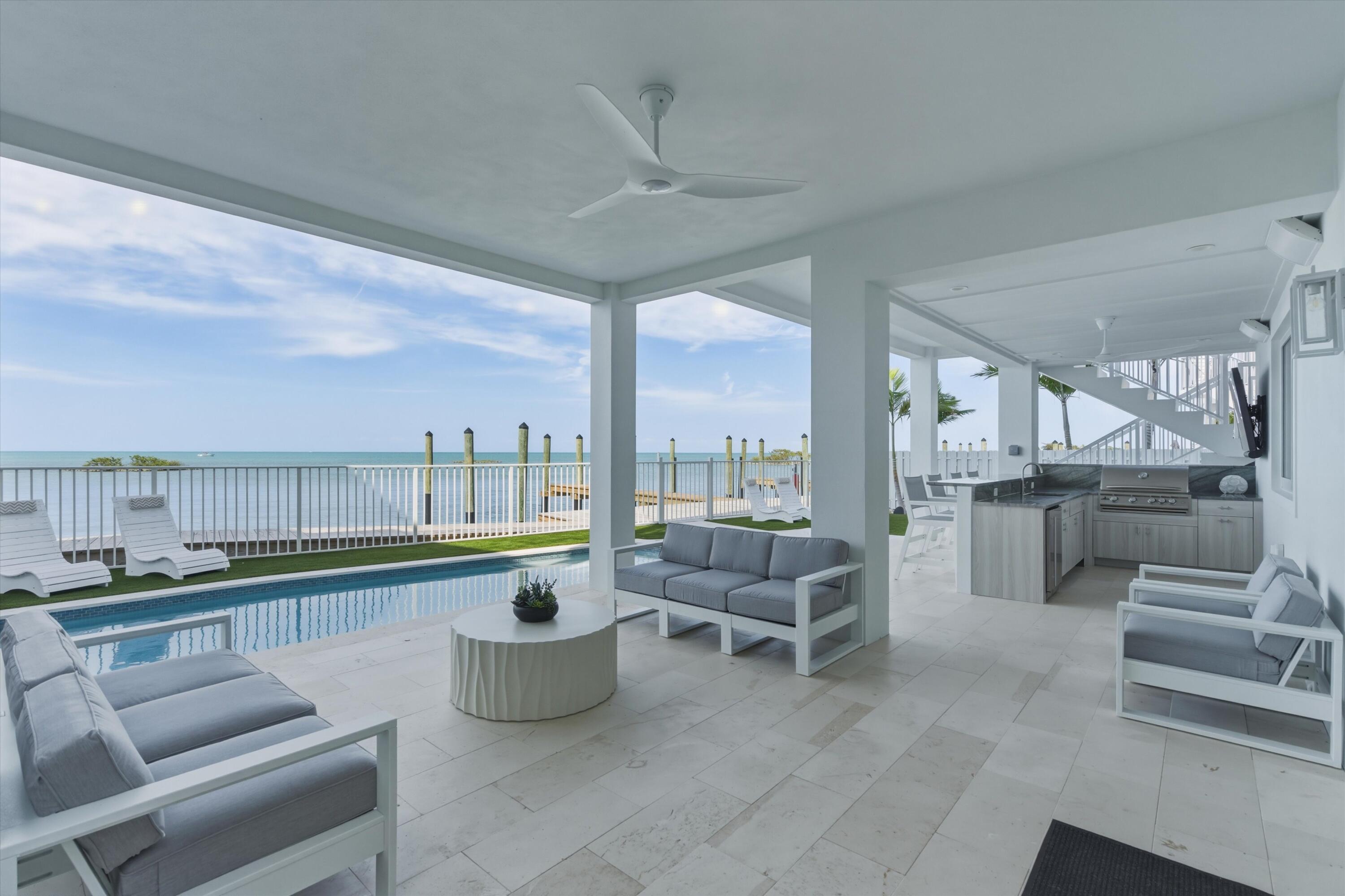 Experience luxury waterfront living in the heart of the Florida Keys at this exceptional Gulf-front residence offering direct Gulf of America views, no rear neighbors, and deep-water marina access. Built by DAsign Source, this custom masterpiece delivers premium craftsmanship, privacy, and resort-style amenities, professionally furnished for effortless coastal living. Enjoy nightly sunsets from a thoughtfully designed floor plan featuring solid core doors, metal stud framing, spray foam insulation, double plywood subfloors, and enhanced sound barriers for superior durability and comfort. The gourmet kitchen showcases Sub-Zero and Wolf appliances (purchased separately), gas cooktop, dual gas water heaters, commercial ice maker, reverse osmosis system, custom cabinetry, and matte-finish quartz countertops and backsplash. Each bedroom offers a private en-suite bath, with the primary suite highlighted by a marble shower and upgraded fixtures. Comfort is elevated with dehumidifiers on all levels, UV lights, HEPA filtration, modern linear vents, whole-house water filtration, and a water softener system. Smart-home features include Sonos sound, security system with cameras, interior and exterior Wi-Fi, electric blinds, window tinting, dimmers, and mounted or pre-wired TVs. Outdoor living rivals a private resort with a heated and chilled app-controlled pool, outdoor kitchen and bar, hurricane-rated marine fans, professional lighting, low-maintenance Astroturf, marine-grade cabinetry, Blaze grill and refrigerator, granite countertops, and Berlin Gardens furnishings. Additional highlights include an epoxy-coated garage, over 150,000 in Restoration Hardware furnishings, recently dredged seawall, deep-water marina access, and direct open-water access for world-class boating and fishing. Boat Slip #24 is included, with Boat Slip #9 featuring a 40,000-lb lift available separately. Located just minutes from Marathon Airport and 45 minutes from Key West Airport.
