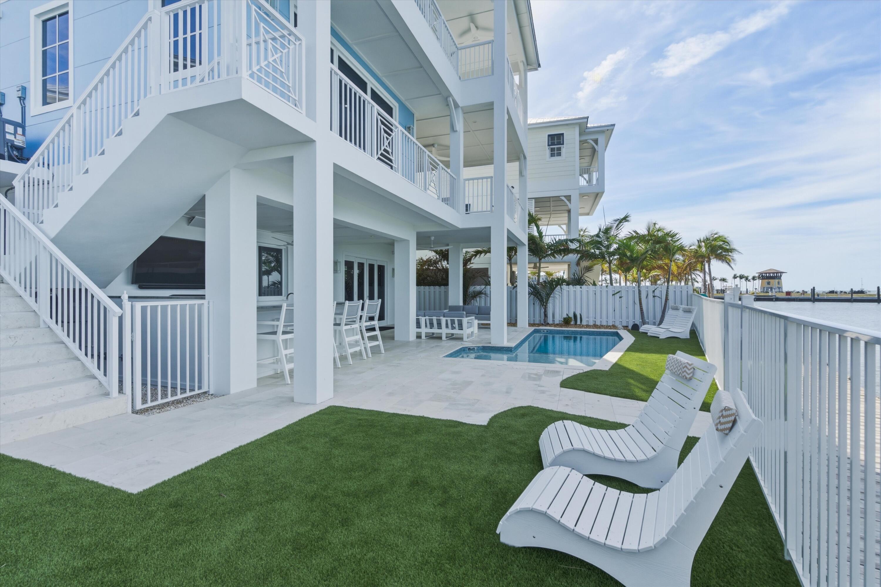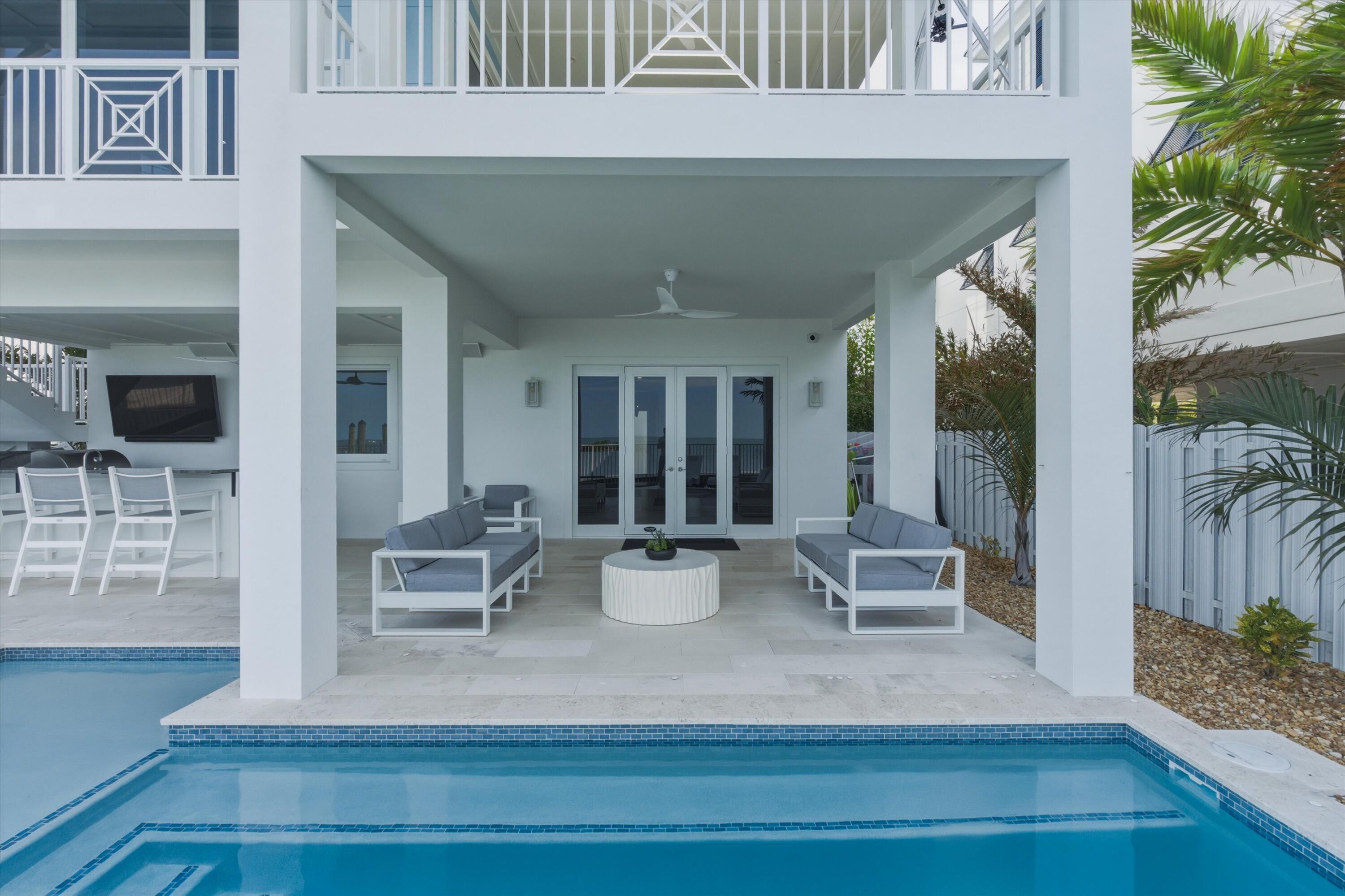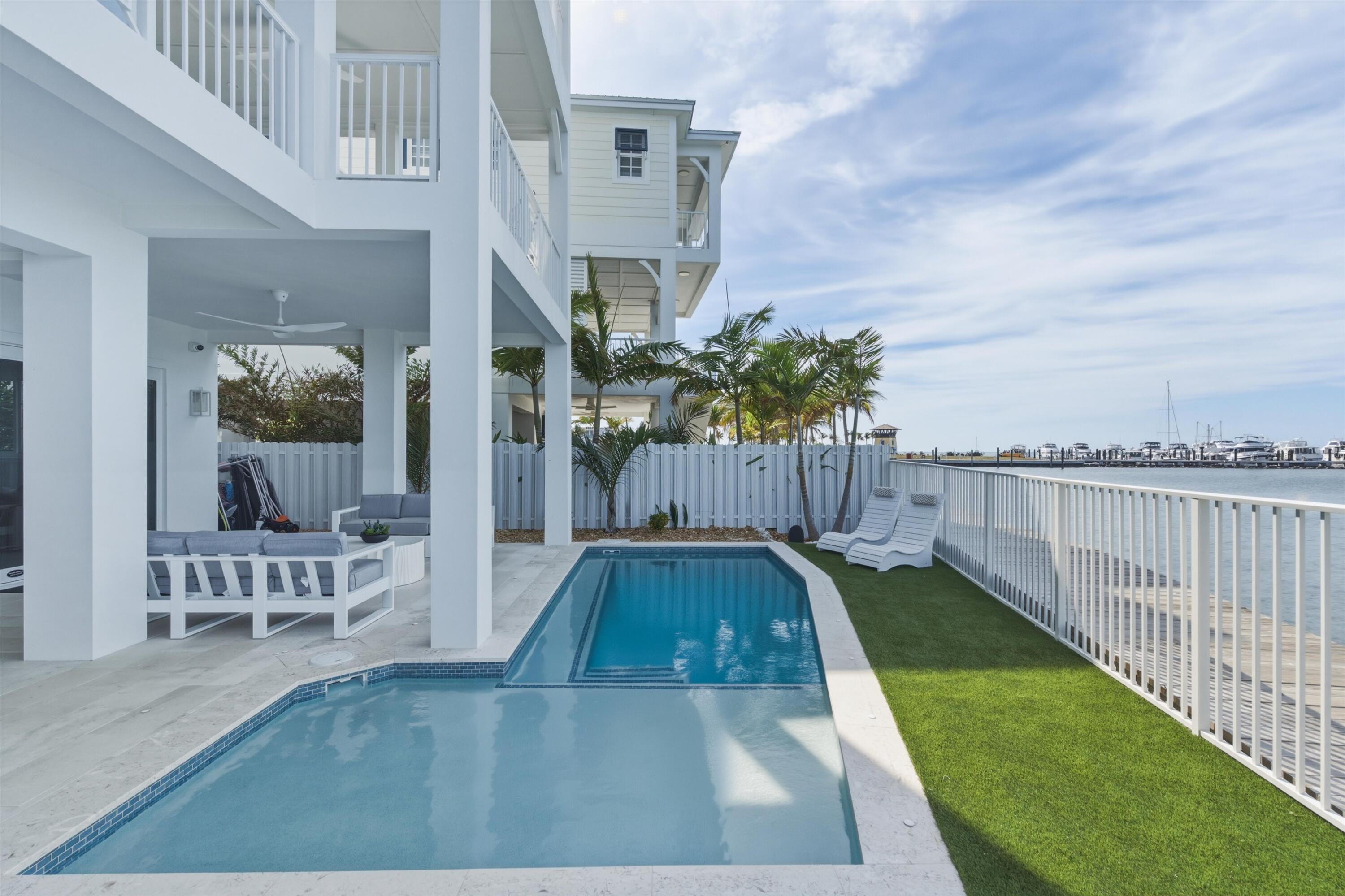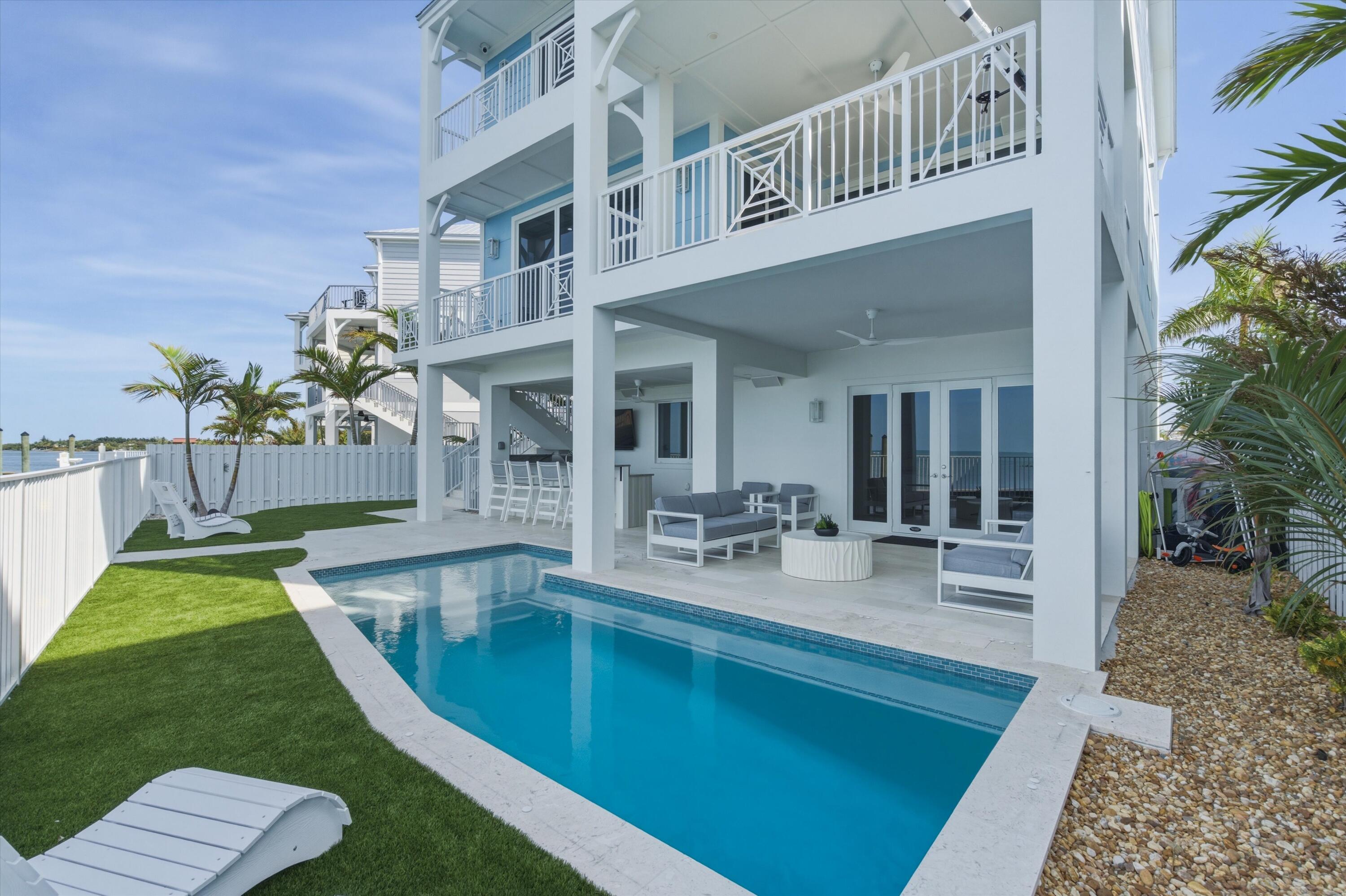 Experience luxury waterfront living in the heart of the Florida Keys at this exceptional Gulf-front residence offering direct Gulf of America views, no rear neighbors, and deep-water marina access. Built by DAsign Source, this custom masterpiece delivers premium craftsmanship, privacy, and resort-style amenities, professionally furnished for effortless coastal living. Enjoy nightly sunsets from a thoughtfully designed floor plan featuring solid core doors, metal stud framing, spray foam insulation, double plywood subfloors, and enhanced sound barriers for superior durability and comfort. The gourmet kitchen showcases Sub-Zero and Wolf appliances (purchased separately), gas cooktop, dual gas water heaters, commercial ice maker, reverse osmosis system, custom cabinetry, and matte-finish quartz countertops and backsplash. Each bedroom offers a private en-suite bath, with the primary suite highlighted by a marble shower and upgraded fixtures. Comfort is elevated with dehumidifiers on all levels, UV lights, HEPA filtration, modern linear vents, whole-house water filtration, and a water softener system. Smart-home features include Sonos sound, security system with cameras, interior and exterior Wi-Fi, electric blinds, window tinting, dimmers, and mounted or pre-wired TVs. Outdoor living rivals a private resort with a heated and chilled app-controlled pool, outdoor kitchen and bar, hurricane-rated marine fans, professional lighting, low-maintenance Astroturf, marine-grade cabinetry, Blaze grill and refrigerator, granite countertops, and Berlin Gardens furnishings. Additional highlights include an epoxy-coated garage, over 150,000 in Restoration Hardware furnishings, recently dredged seawall, deep-water marina access, and direct open-water access for world-class boating and fishing. Boat Slip #24 is included, with Boat Slip #9 featuring a 40,000-lb lift available separately. Located just minutes from Marathon Airport and 45 minutes from Key West Airport.