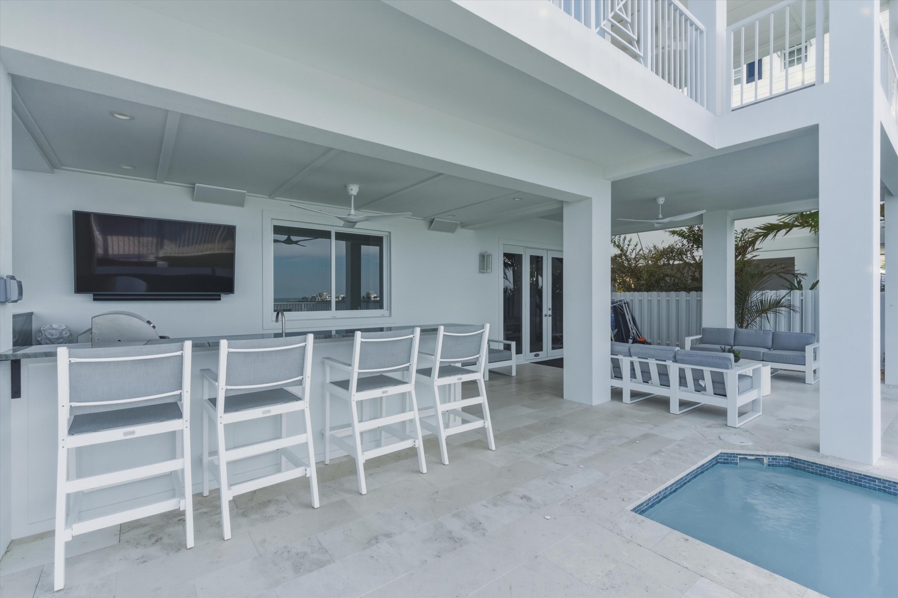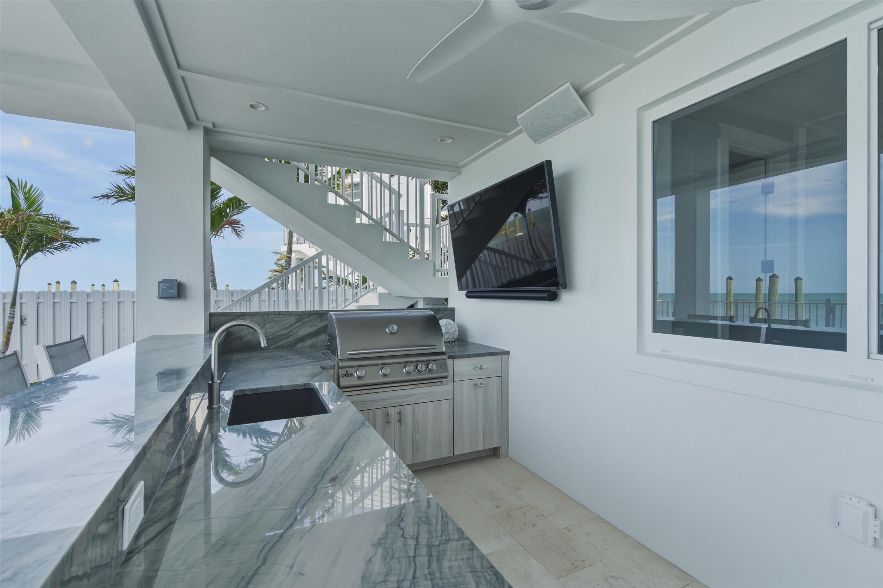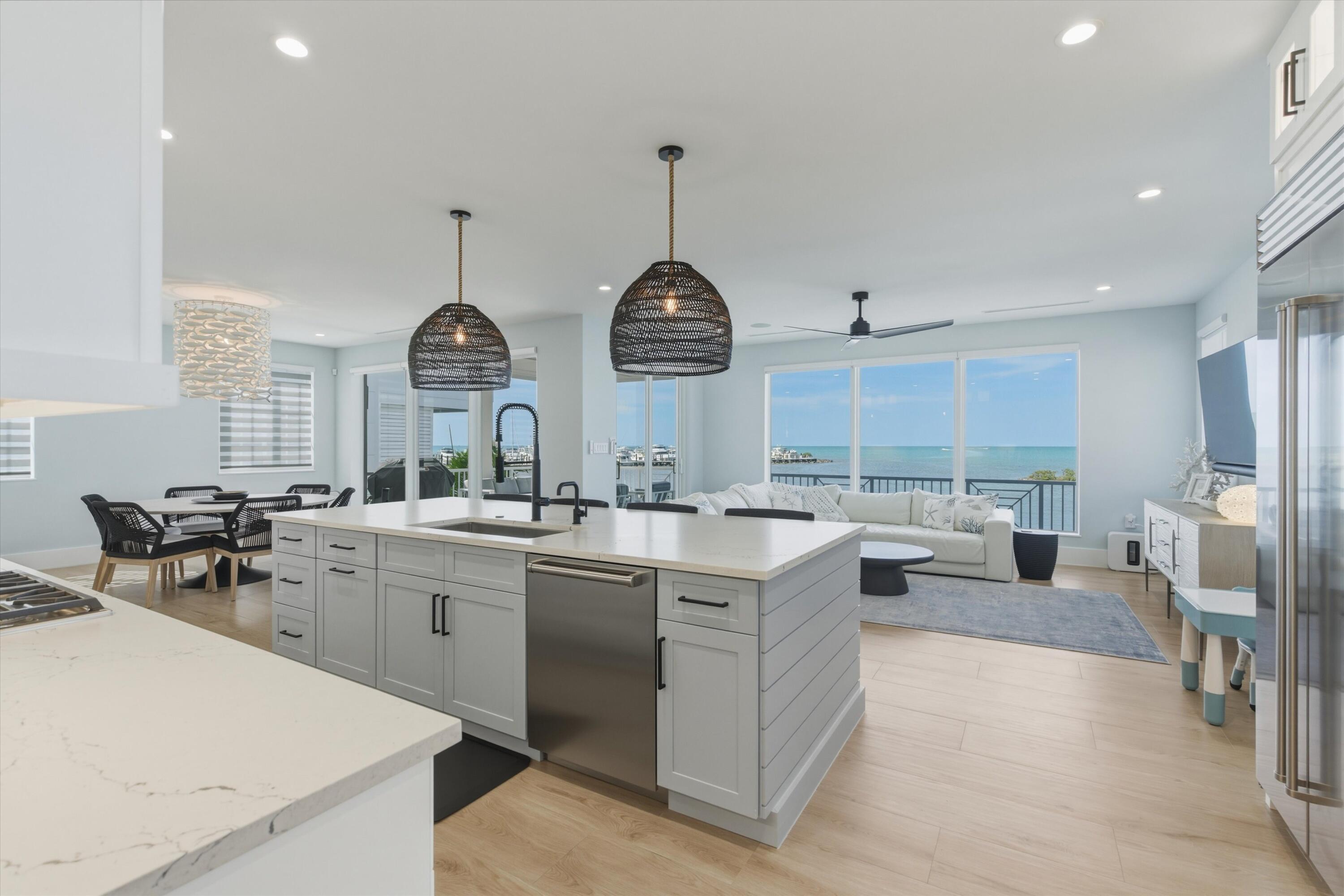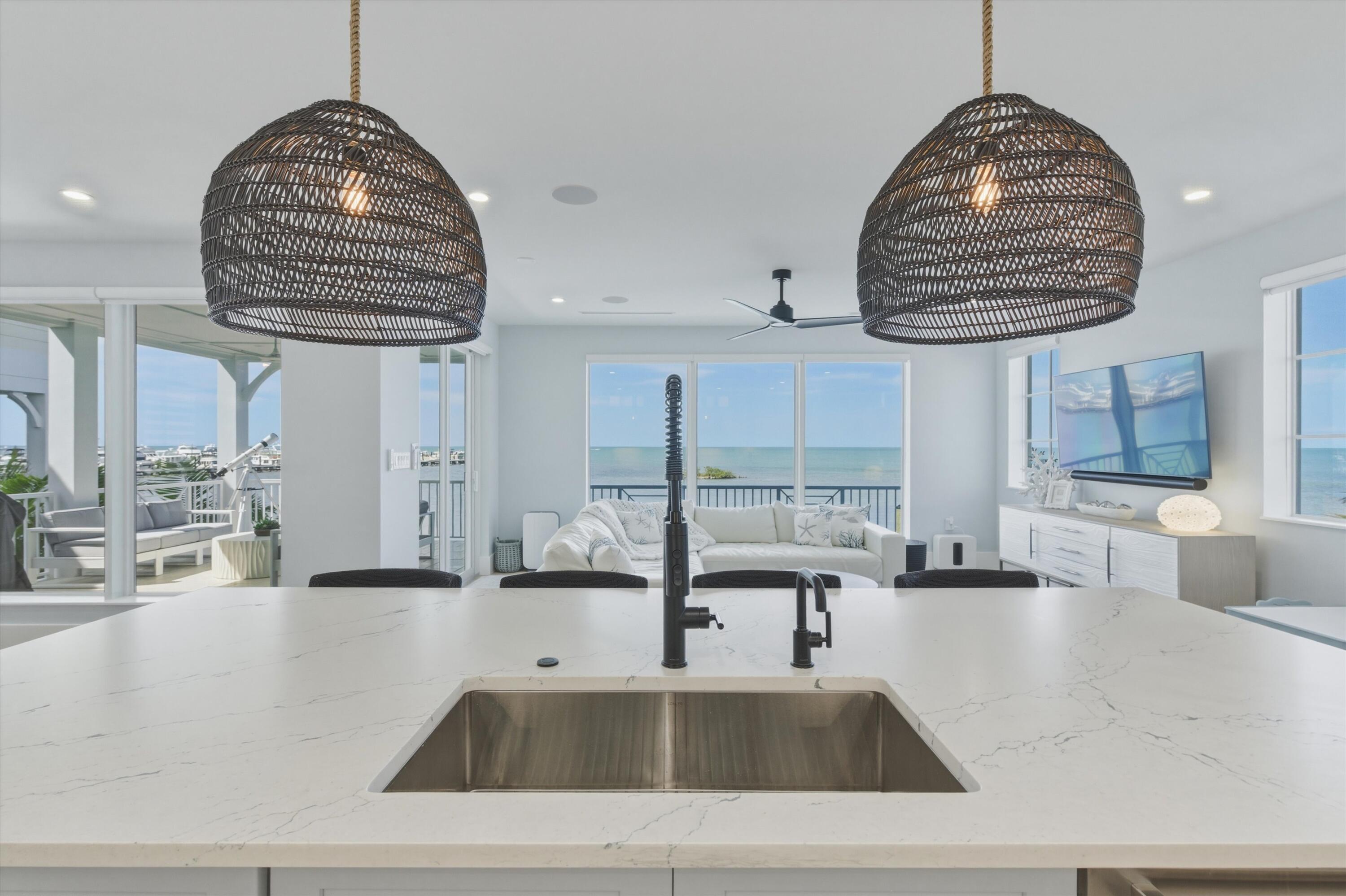 Experience luxury waterfront living in the heart of the Florida Keys at this exceptional Gulf-front residence offering direct Gulf of America views, no rear neighbors, and deep-water marina access. Built by DAsign Source, this custom masterpiece delivers premium craftsmanship, privacy, and resort-style amenities, professionally furnished for effortless coastal living. Enjoy nightly sunsets from a thoughtfully designed floor plan featuring solid core doors, metal stud framing, spray foam insulation, double plywood subfloors, and enhanced sound barriers for superior durability and comfort. The gourmet kitchen showcases Sub-Zero and Wolf appliances (purchased separately), gas cooktop, dual gas water heaters, commercial ice maker, reverse osmosis system, custom cabinetry, and matte-finish quartz countertops and backsplash. Each bedroom offers a private en-suite bath, with the primary suite highlighted by a marble shower and upgraded fixtures. Comfort is elevated with dehumidifiers on all levels, UV lights, HEPA filtration, modern linear vents, whole-house water filtration, and a water softener system. Smart-home features include Sonos sound, security system with cameras, interior and exterior Wi-Fi, electric blinds, window tinting, dimmers, and mounted or pre-wired TVs. Outdoor living rivals a private resort with a heated and chilled app-controlled pool, outdoor kitchen and bar, hurricane-rated marine fans, professional lighting, low-maintenance Astroturf, marine-grade cabinetry, Blaze grill and refrigerator, granite countertops, and Berlin Gardens furnishings. Additional highlights include an epoxy-coated garage, over 150,000 in Restoration Hardware furnishings, recently dredged seawall, deep-water marina access, and direct open-water access for world-class boating and fishing. Boat Slip #24 is included, with Boat Slip #9 featuring a 40,000-lb lift available separately. Located just minutes from Marathon Airport and 45 minutes from Key West Airport.