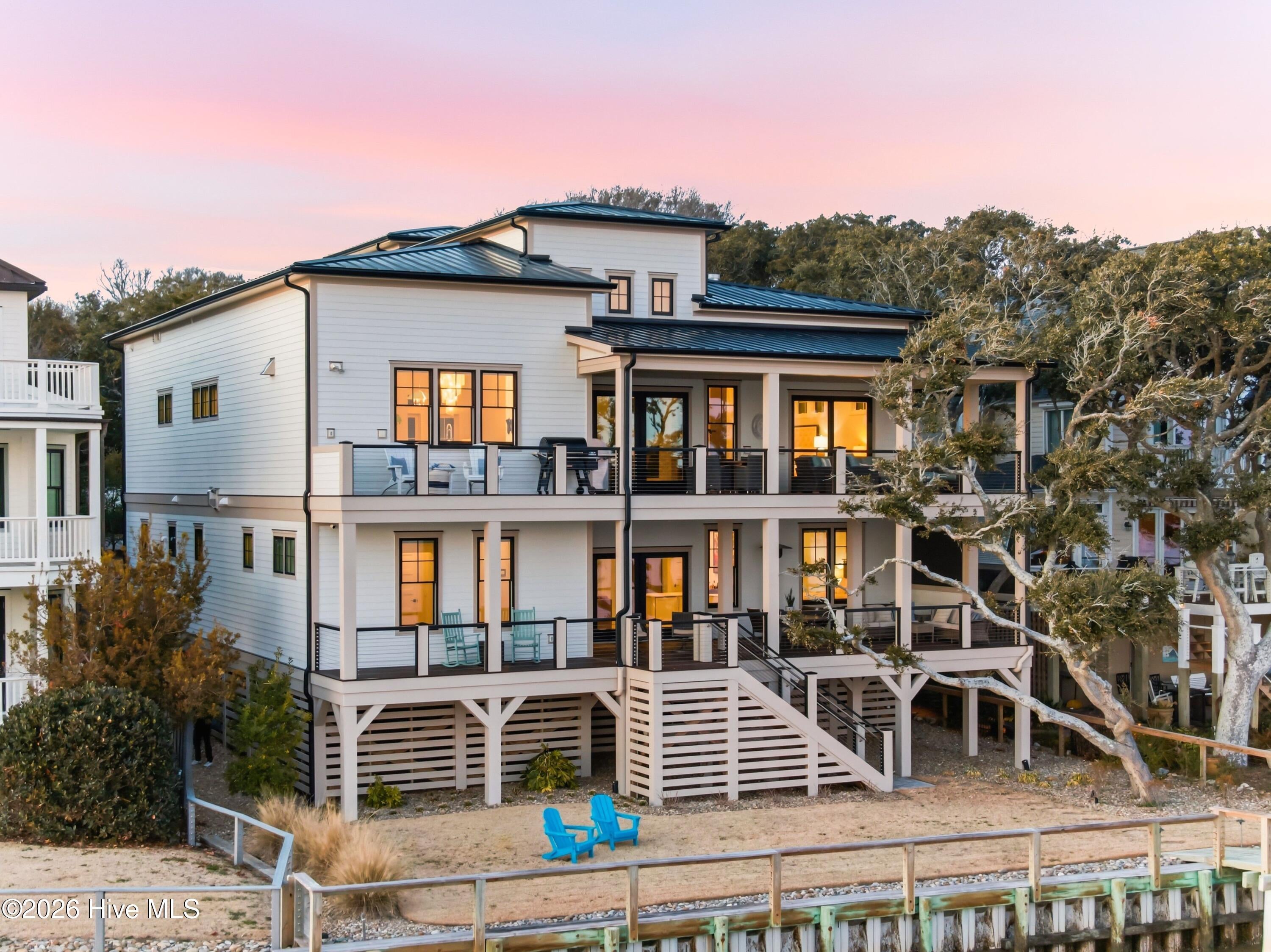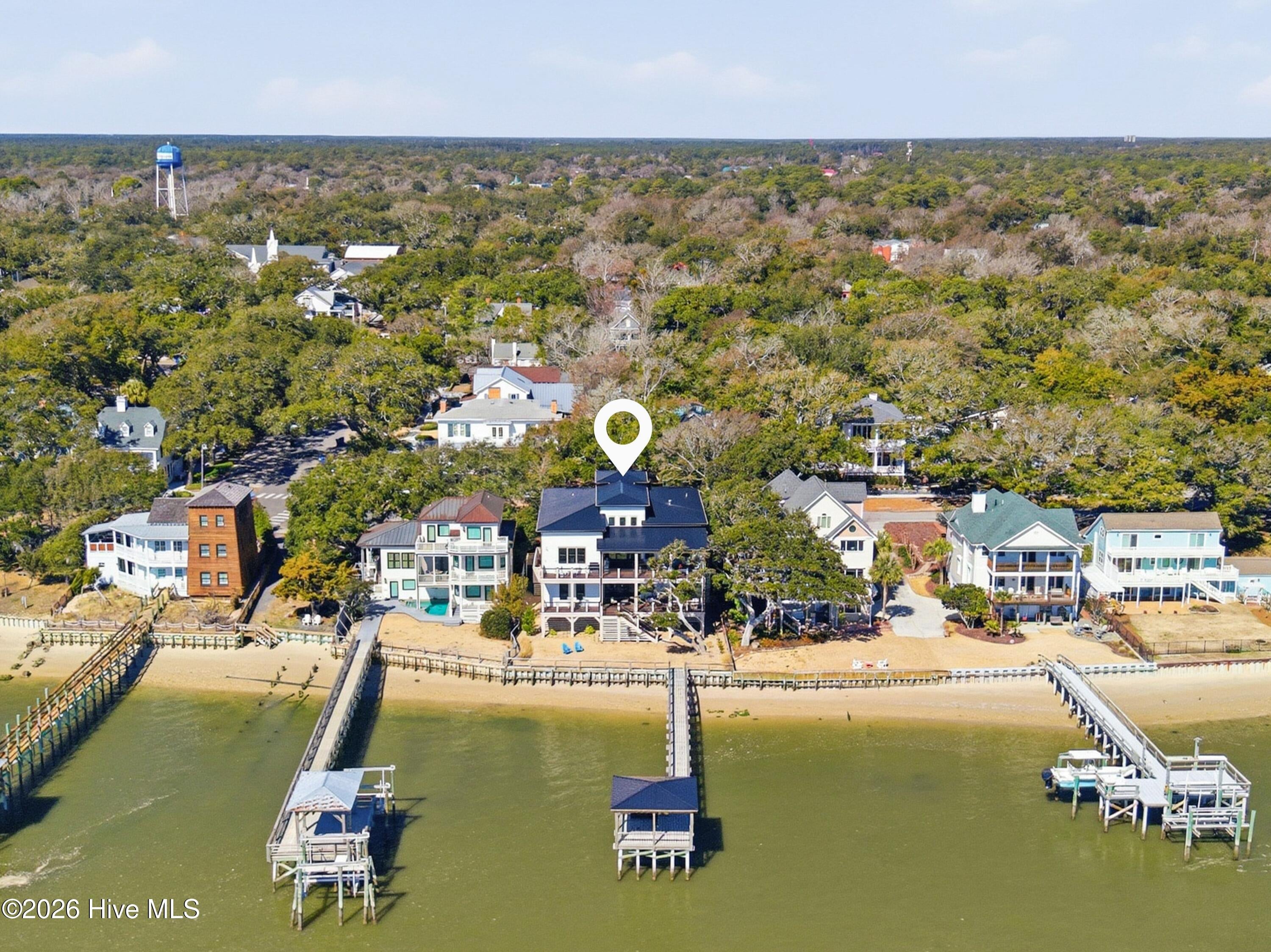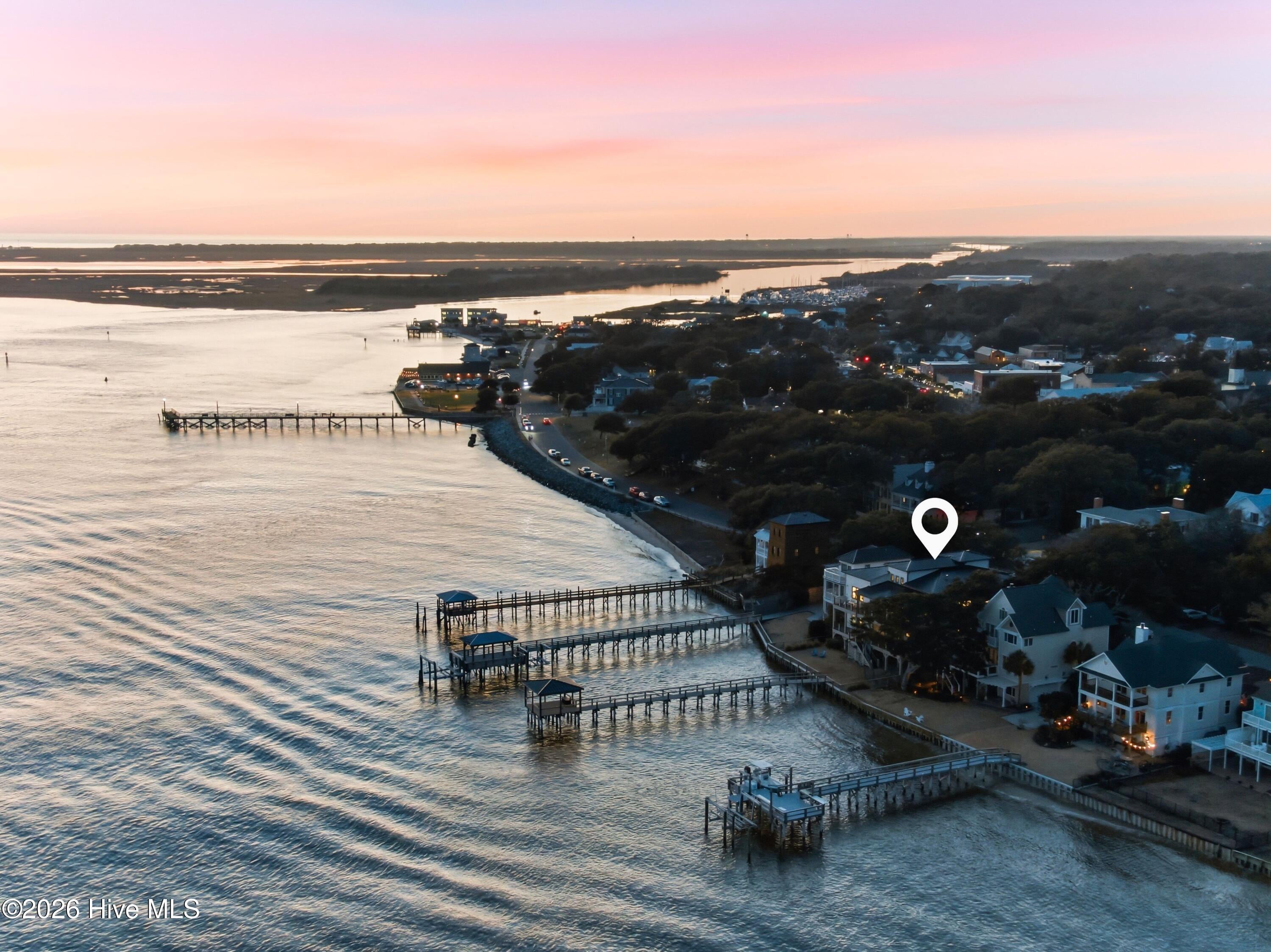 For the most discerning of buyers, 306 E. Bay Street is more than a home--it is a front-row seat to the very best of coastal living. Begin your mornings on the waterfront porch, coffee in hand, as the Bald Head Island ferry glides quietly down the Cape Fear River beneath a low blanket of silver fog. In the distance, the soft echo of ship horns carries across the water as a container vessel makes its ghostlike approach to port. By evening, golden light melts into the horizon and silhouettes of ibis drift gracefully toward their roost on Battery Island, best enjoyed beside the glow of the gas firepit. Positioned on one of the highest lots in historic downtown, the residence commands sweeping, unobstructed vistas that transform hour by hour -- sunrise to sunset, season to season.Conceived, engineered, and meticulously constructed over more than three years--with completion in late 2024--this extraordinary residence reflects vision, precision, and uncompromising craftsmanship at every turn. Every structural element, finish selection, and architectural detail was thoughtfully curated and flawlessly implemented, resulting in a home that is as enduring in quality as it is striking in presence. A rare and coveted amenity on the Southport waterfront, the property offers oversized, private, conditioned garages at street level--seamlessly integrated into the architecture--delivering both convenience and distinction seldom found within the historic district. Step through the stately entry doors into a dramatic three-story foyer where your gaze is immediately drawn through the lower-level living space to the water beyond. The entry level unfolds into a refined waterfront family room anchored by a striking floor-to-ceiling stone fireplace and custom wet bar -- an elegant setting for relaxed evenings after a day on the river. Two private en-suite guest retreats provide exceptional comfort and autonomy, while a dedicated exercise room and thoughtfully placed powder room enhance daily living.Ascend by private elevator or along the beautifully illuminated staircase to the breathtaking main living level, where an 18-foot coffered ceiling crowns the open-concept design. The gourmet kitchen -- equally suited for the accomplished chef or the gracious host -- showcases dual islands, Sub-Zero and Wolf appliances, custom cabinetry, and exquisite stone surfaces. The adjoining great room, appointed with custom built-ins and a second floor-to-ceiling stone fireplace, flows seamlessly into the dining area. Expansive sliding glass doors dissolve the boundary between indoors and out, opening onto the waterfront porch -- an idyllic extension of the living space and a spectacular setting for sunset gatherings or tranquil mornings.Also on this level: a refined private library, a beautifully designed multi-purpose laundry suite, a powder room, and a magnificent primary suite that spans the full depth of the home from street side to waterfront. This serene retreat captures commanding water views and offers a spa-inspired bath defined by understated elegance, refined materials, and thoughtful proportions.Throughout the residence, curated finishes and substantial structural engineering speak to enduring quality and modern resilience -- impact-rated windows and doors, elevated ceiling heights, custom millwork, refined lighting, seamless elevator access, and a building envelope designed for longevity along the coast. Every element has been executed with intention, harmonizing timeless Southport charm with contemporary sophistication.306 E. Bay Street is not simply a waterfront home. It is a legacy property -- an architectural statement and a generational opportunity to own one of the most distinguished and thoughtfully executed addresses in historic Southport.