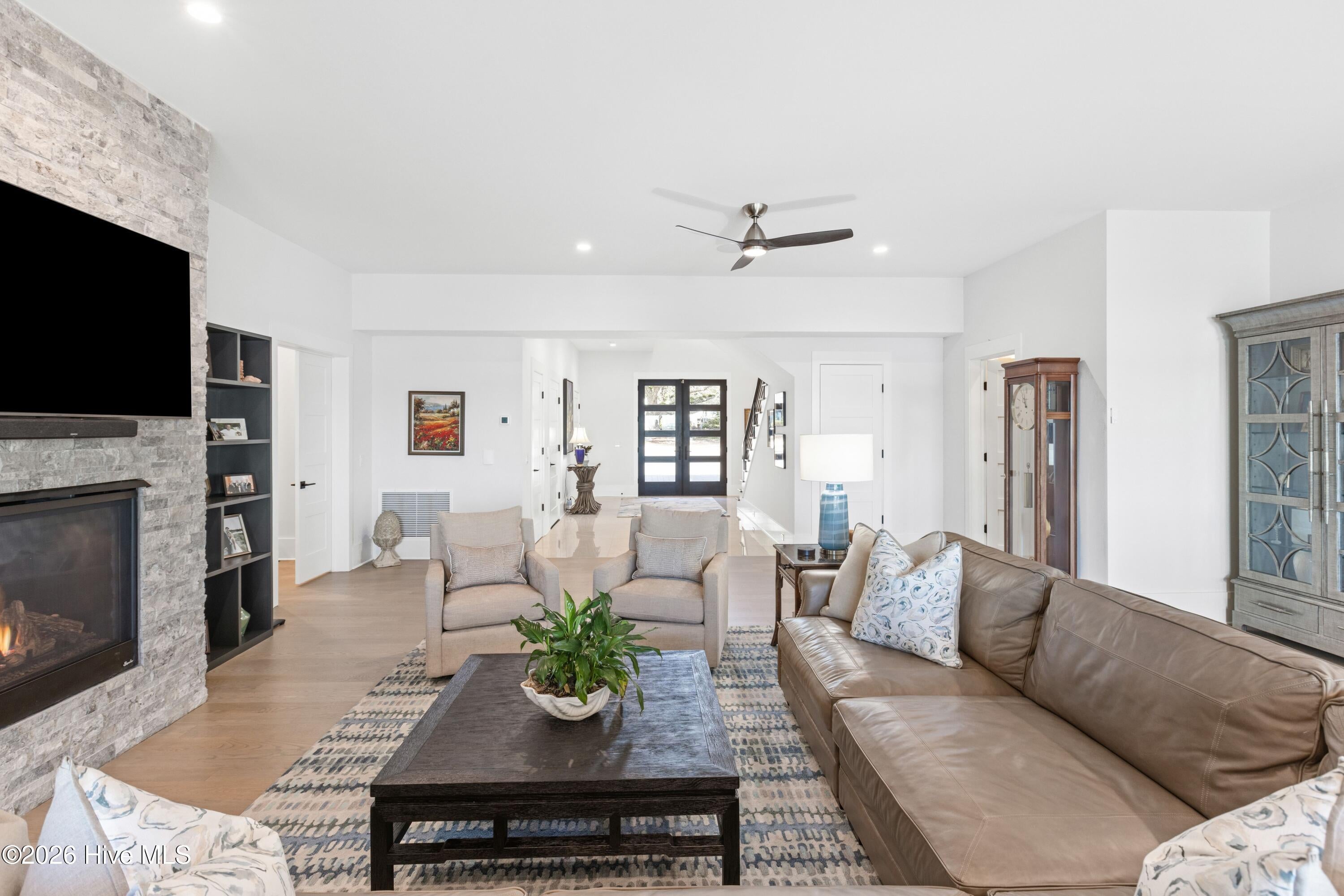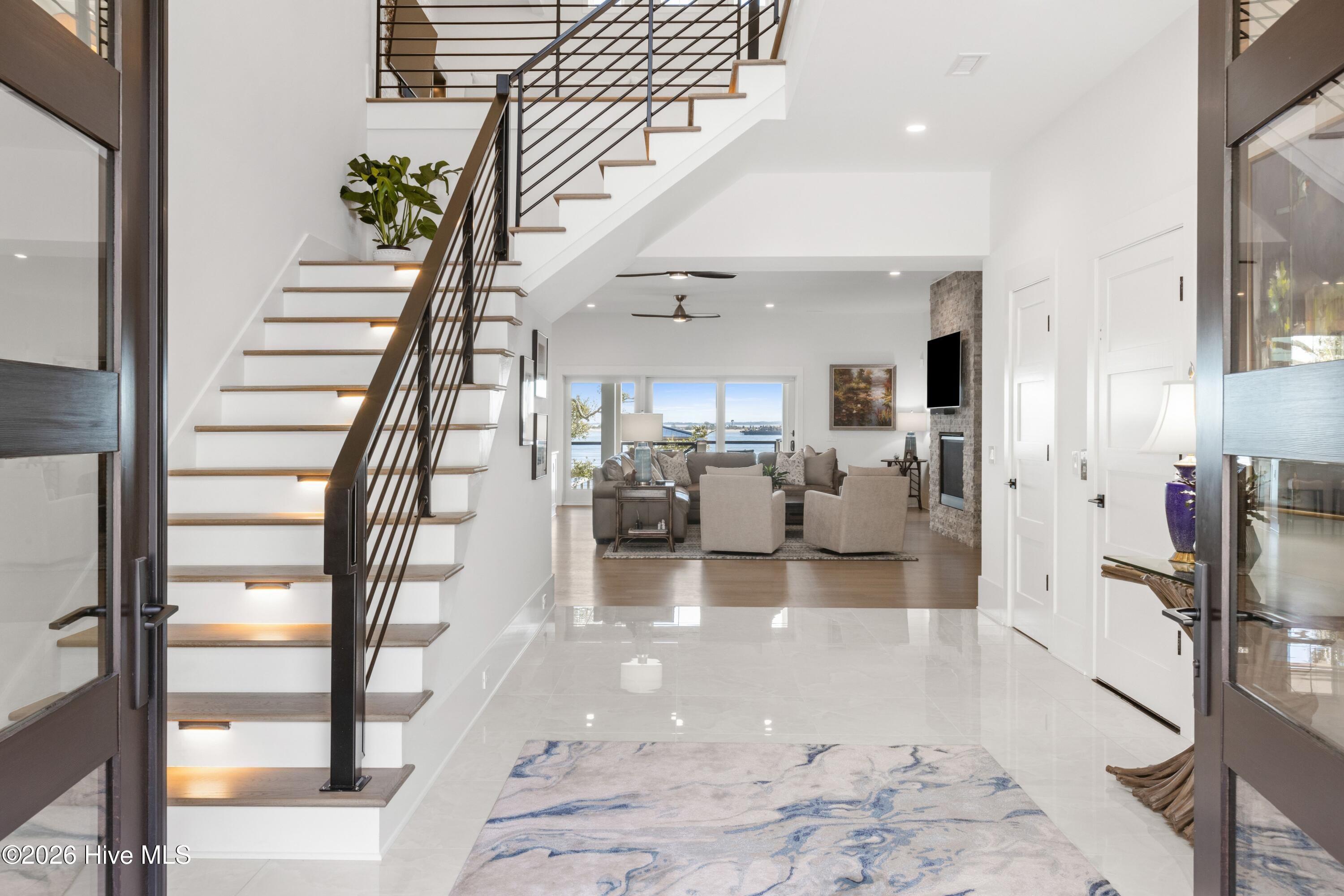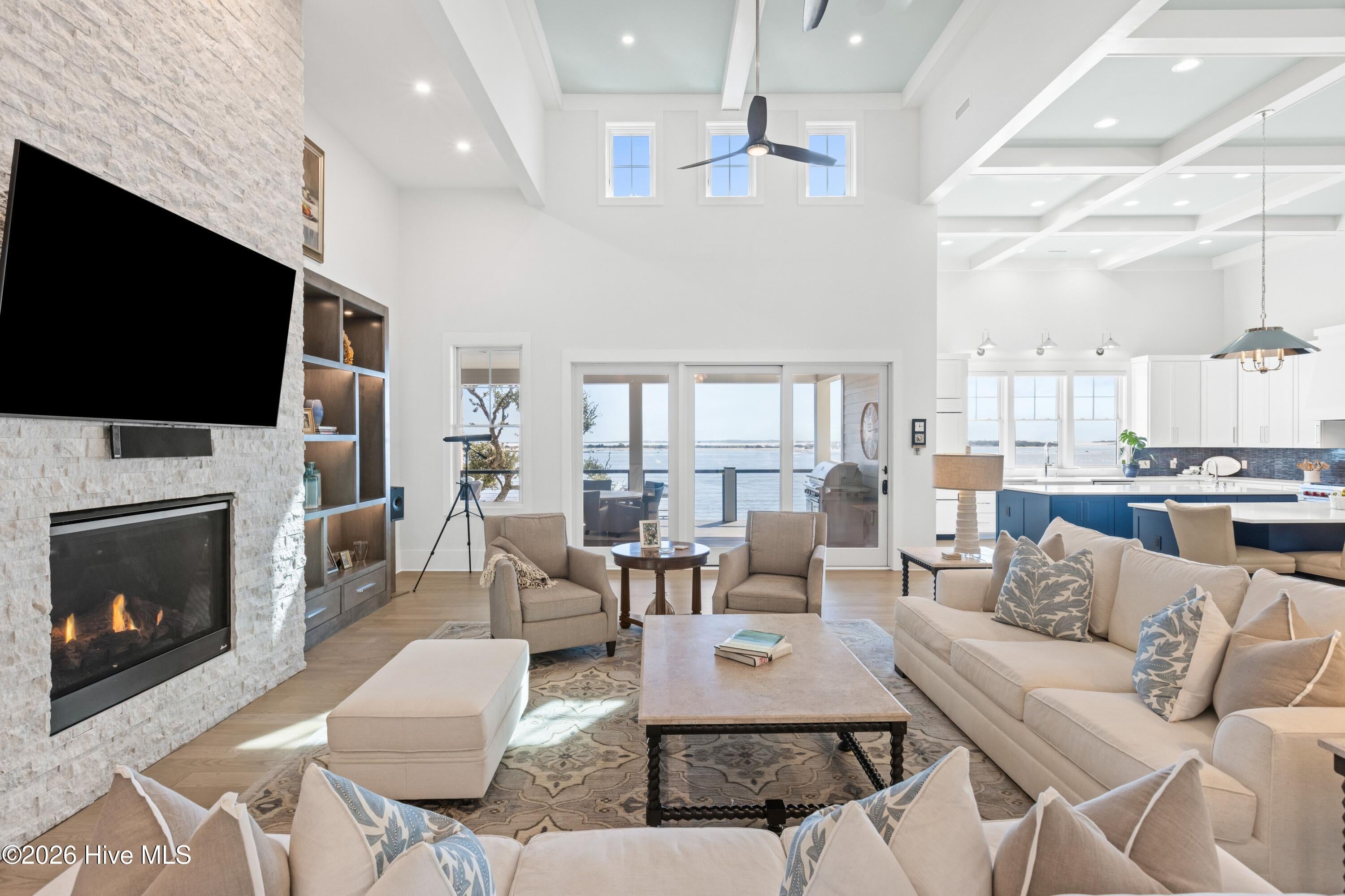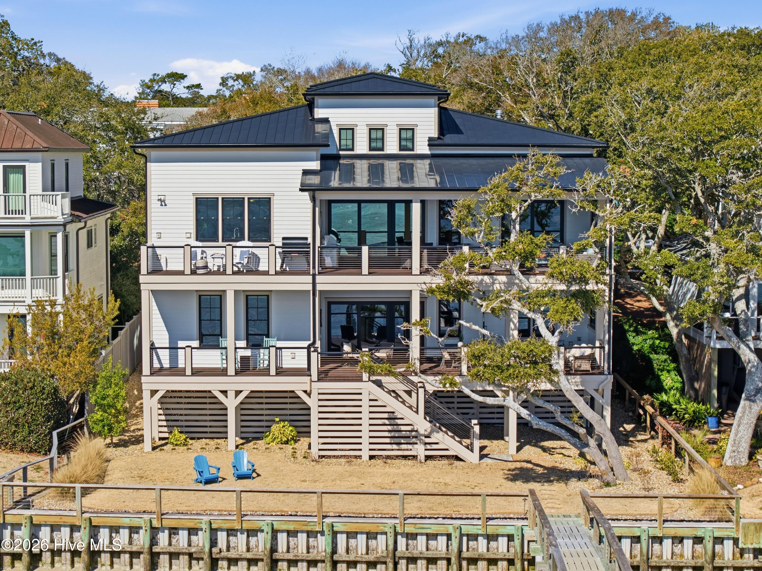 For the most discerning of buyers, 306 E. Bay Street is more than a home--it is a front-row seat to the very best of coastal living. Begin your mornings on the waterfront porch, coffee in hand, as the Bald Head Island ferry glides quietly down the Cape Fear River beneath a low blanket of silver fog. In the distance, the soft echo of ship horns carries across the water as a container vessel makes its ghostlike approach to port. By evening, golden light melts into the horizon and silhouettes of ibis drift gracefully toward their roost on Battery Island, best enjoyed beside the glow of the gas firepit. Positioned on one of the highest lots in historic downtown, the residence commands sweeping, unobstructed vistas that transform hour by hour -- sunrise to sunset, season to season.Conceived, engineered, and meticulously constructed over more than three years--with completion in late 2024--this extraordinary residence reflects vision, precision, and uncompromising craftsmanship at every turn. Every structural element, finish selection, and architectural detail was thoughtfully curated and flawlessly implemented, resulting in a home that is as enduring in quality as it is striking in presence. A rare and coveted amenity on the Southport waterfront, the property offers oversized, private, conditioned garages at street level--seamlessly integrated into the architecture--delivering both convenience and distinction seldom found within the historic district. Step through the stately entry doors into a dramatic three-story foyer where your gaze is immediately drawn through the lower-level living space to the water beyond. The entry level unfolds into a refined waterfront family room anchored by a striking floor-to-ceiling stone fireplace and custom wet bar -- an elegant setting for relaxed evenings after a day on the river. Two private en-suite guest retreats provide exceptional comfort and autonomy, while a dedicated exercise room and thoughtfully placed powder room enhance daily living.Ascend by private elevator or along the beautifully illuminated staircase to the breathtaking main living level, where an 18-foot coffered ceiling crowns the open-concept design. The gourmet kitchen -- equally suited for the accomplished chef or the gracious host -- showcases dual islands, Sub-Zero and Wolf appliances, custom cabinetry, and exquisite stone surfaces. The adjoining great room, appointed with custom built-ins and a second floor-to-ceiling stone fireplace, flows seamlessly into the dining area. Expansive sliding glass doors dissolve the boundary between indoors and out, opening onto the waterfront porch -- an idyllic extension of the living space and a spectacular setting for sunset gatherings or tranquil mornings.Also on this level: a refined private library, a beautifully designed multi-purpose laundry suite, a powder room, and a magnificent primary suite that spans the full depth of the home from street side to waterfront. This serene retreat captures commanding water views and offers a spa-inspired bath defined by understated elegance, refined materials, and thoughtful proportions.Throughout the residence, curated finishes and substantial structural engineering speak to enduring quality and modern resilience -- impact-rated windows and doors, elevated ceiling heights, custom millwork, refined lighting, seamless elevator access, and a building envelope designed for longevity along the coast. Every element has been executed with intention, harmonizing timeless Southport charm with contemporary sophistication.306 E. Bay Street is not simply a waterfront home. It is a legacy property -- an architectural statement and a generational opportunity to own one of the most distinguished and thoughtfully executed addresses in historic Southport.