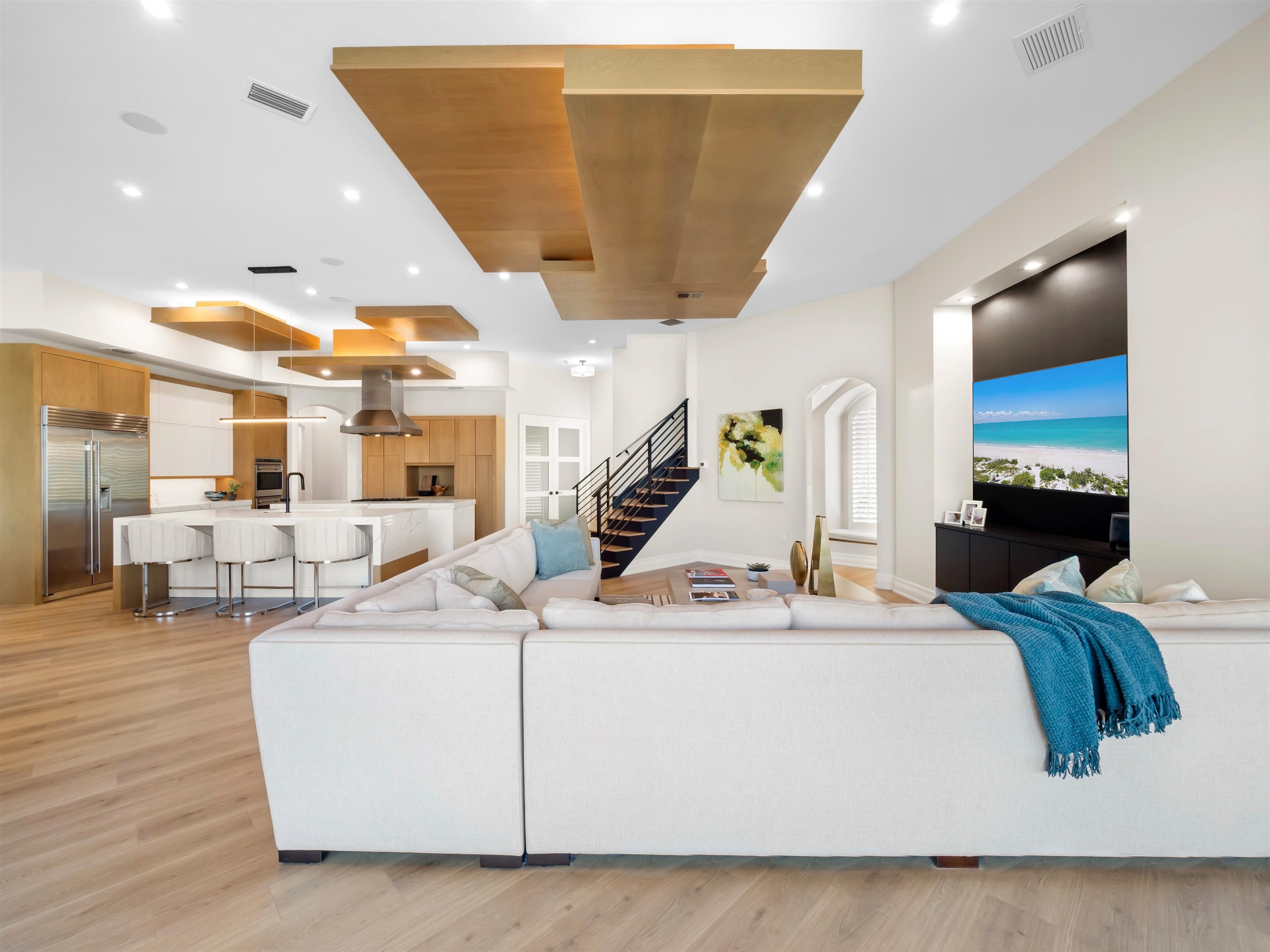 Experience the luxury and elegance of this Sailfish Point estate, ideally positioned on the Jack Nicklaus Signature golf course, across the street from the ocean. This 5-bedroom, 6.2-bath gem features a chefs kitchen with Wolf 6-burner gas range, double ovens, Subzero fridge, warming drawer, island with seating and a sunny breakfast area.