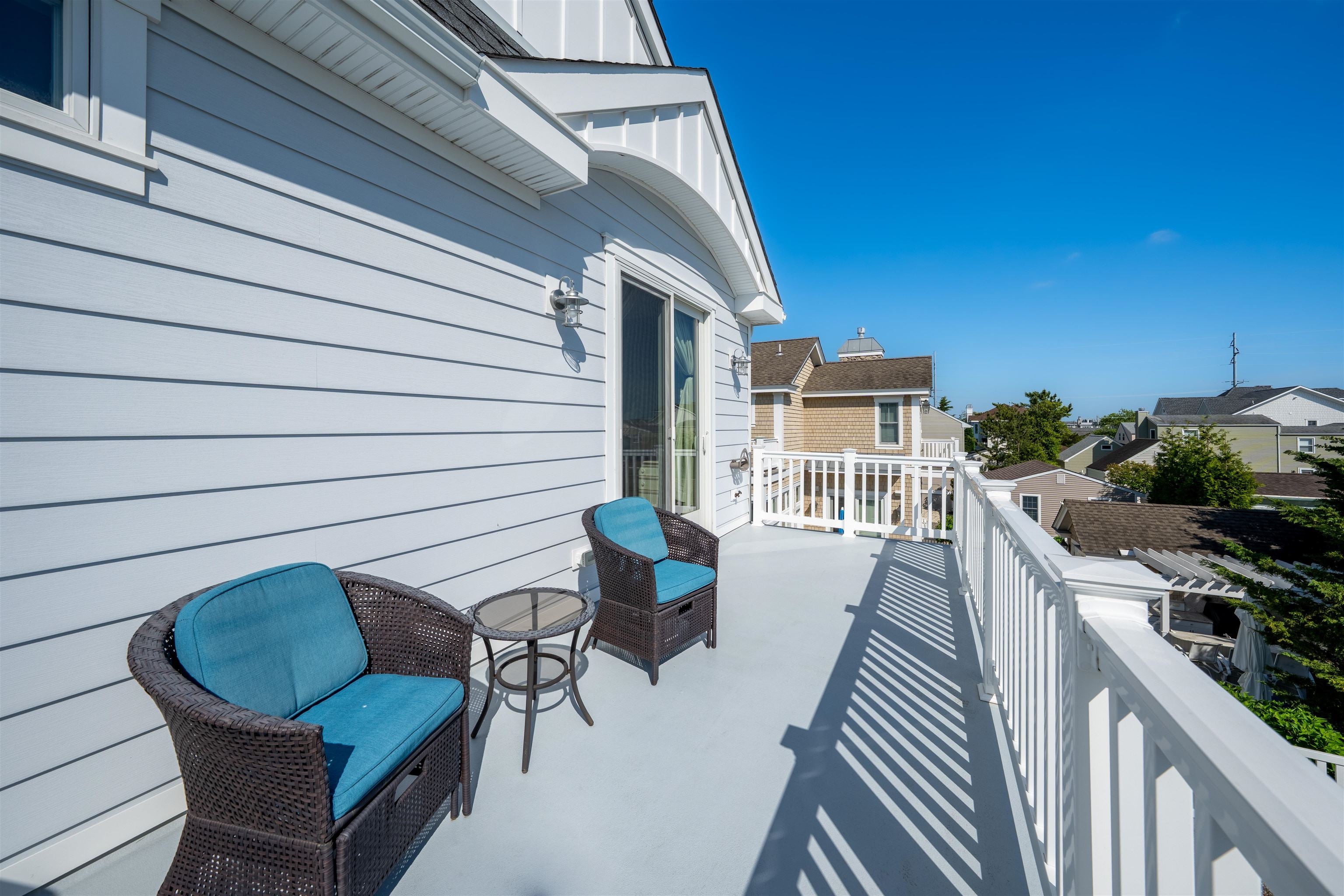 PUBLIC OPEN HOUSES RESCHEDULED Join us Saturday 3/7 and Sunday 3/8 from 10:00 AM to 2:00 PM Welcome to 243 87th Street a beautifully designed five-bedroom, five full and two half-bath upside-down style home located just two blocks from the beach and moments from the bay. Built by Ed McFalls Custom Homes, this residence reflects high-end craftsmanship, thoughtful design, and effortless coastal sophistication. The sun-filled second-floor living level features an open-concept great room ideal for entertaining. Engineered luxury vinyl flooring provides the warmth and appearance of hardwood with the durability perfectly suited for shore living. Expansive windows flood the space with natural light, creating a bright and inviting setting for gathering with family and guests. The gourmet kitchen is as functional as it is striking, offering quartz countertops, a timeless subway tile backsplash, premium stainless steel appliances, and dual dishwashers designed to accommodate large groups with ease. Each of the five spacious bedrooms includes a private en-suite bath with custom tile finishes, offering both comfort and privacy. Plantation shutters in the bedrooms add a refined coastal touch while enhancing light control and privacy. Additional living spaces include a recreation/family room, a dedicated laundry room, and generous storage throughout the home. Multi-zoned HVAC provides efficient year-round comfort. Outdoor living is equally impressive. Positioned on the sunny south side of the street, the backyard enjoys full afternoon sun and features an oversized in-ground pool, cabana, outdoor grill station, and multiple decks designed for lounging and entertaining. A covered front porch offers a peaceful place to unwind. Atop the home, the third-floor rooftop deck known as The Pilot House delivers sweeping panoramic views of the bay and town. Complete with a wet bar and beverage refrigerator, it provides yet another expansive gathering space perfect for sunrise coffee, sunset cocktails, or evening relaxation under the stars. A three-car concrete driveway, low-maintenance fiber-board plank siding, and strong, proven rental performance further enhance the homes appeal. Competitively positioned among comparable five-bedroom new construction offerings in Stone Harbor, this property represents a compelling opportunity in one of the Jersey Shores most desirable locations. Whether youre seeking a private coastal retreat, full-time residence, or high-performing investment property, 243 87th Street offers luxury, location, and lasting value.