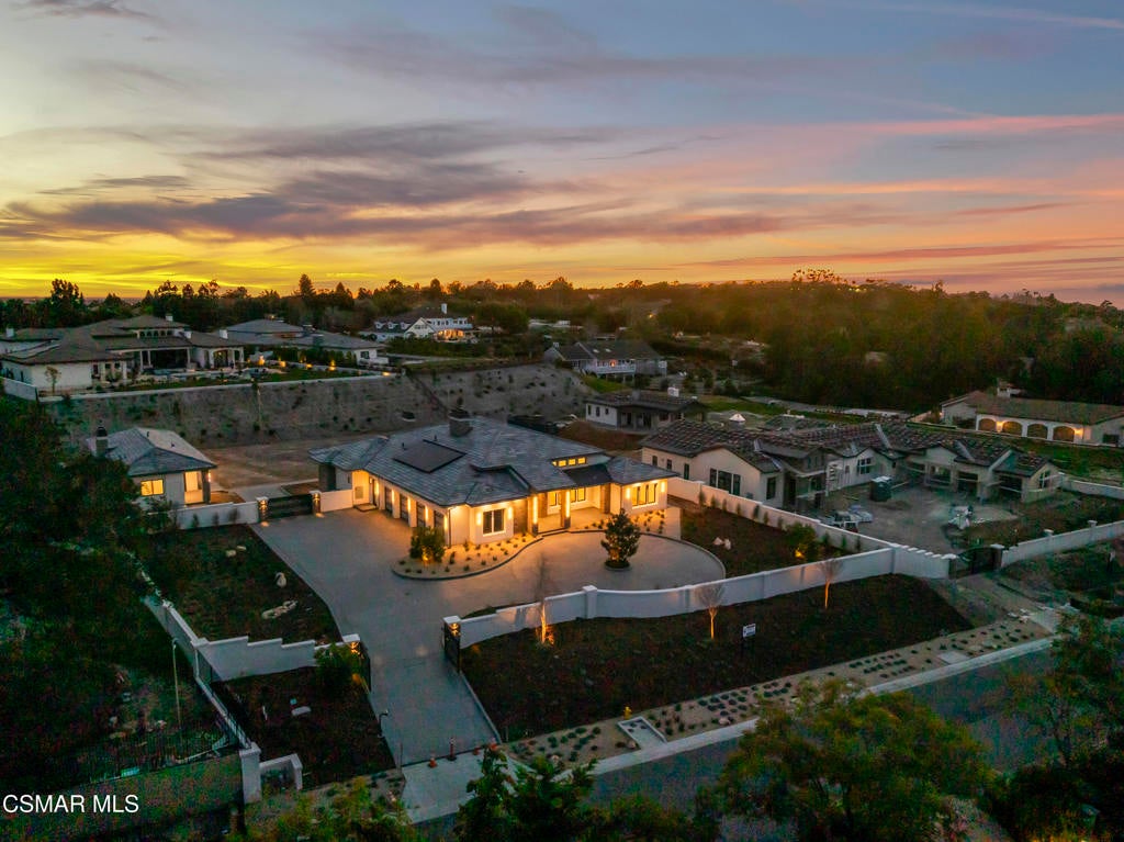 You are invited to experience The Estate at Crestview, an architectural masterpiece completed in 2026 and destined to be admired for years to come. This stunning single-story view home delivers refined craftsmanship and exceptional design throughout.This impressive gated estate sits on an elevated lot, offering privacy, presence, and sweeping neighborhood views. A long, circular driveway leads to a spacious 4-car garage and grand single-level residence with elegant exterior lighting and refined architectural details. Walled and fenced grounds provide security and seclusion, while landscaped terraces frame the approach and enhance curb appeal. The expansive paved motor court is ideal for entertaining and guest parking, creating a dramatic arrival experience. This striking modern residence blends clean architectural lines with elevated design and exceptional natural light. Expansive walls of glass and dramatic clerestory windows flood the interiors with sunshine while maintaining privacy and a seamless connection to the outdoors.At the heart of the home, the open-concept living area showcases a statement fireplace flanked by custom built-in shelving that offers both style and functionality. Large-format sliding glass doors open effortlessly to a covered patio, creating an ideal indoor-outdoor living experience perfect for entertaining or everyday relaxation.The chefs kitchen is thoughtfully designed with custom cabinetry, oversized island, stone slab backsplash, and premium finishes throughout--combining beauty with practicality. Adjacent living and dining spaces feel bright, airy, and expansive under high ceilings and recessed lighting.Spa-inspired bathrooms feature floor-to-ceiling tile, walk-in showers with built-in benches and niches, and refined modern finishes. Bedrooms are spacious and light-filled, with clean lines and a calming, contemporary aesthetic.Adding exceptional flexibility and value, the property also includes a private, on-site two-bedroom ADU complete with a full kitchen. Ideal for multigenerational living, extended guests, the ADU offers independent living with the same thoughtful design and modern comfort as the main residence.Every detail of this home reflects quality craftsmanship and modern design, from the custom millwork to the architectural window placements. Designed for todays lifestyle, this home offers a rare blend of sophistication, comfort, and seamless indoor-outdoor living.
