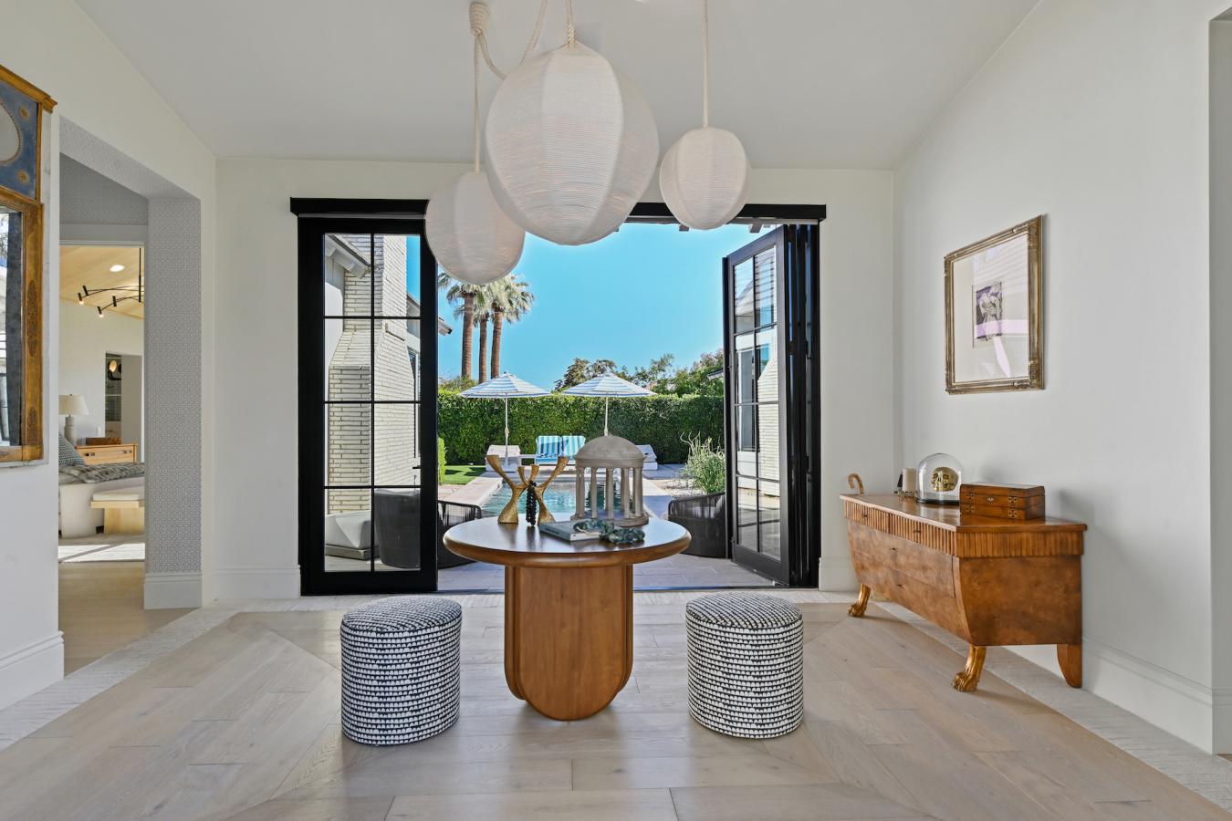A signature creation by celebrated designer Lifestyled Co., The 64th Build stands as a testament to thoughtful architecture and elevated modern living. Positioned in the highly sought-after Arcadia Proper corridor, this residence offers a Scottsdale address with the warmth and prestige of true Arcadia-where design, lifestyle, and location converge. The foyer opens to a striking H-style floor plan, designed for modern living with separation between formal and informal spaces while maintaining openness and flow. The home emphasizes indoor-outdoor living, filled with natural light and connected to Arizonas climate through expansive sliding glass doors and elevated ceiling heights. At the heart of the home, the kitchen serves as both a functional workspace and statement piece, featuring handmade PITT gas burners imported from Holland,the first to be installed in an Arizona home at the time of build,set beneath a dramatic 10-foot ceramic tile hood. Custom cabinetry, premium Monogram appliances, and an oversized island complete the space, opening seamlessly to the patio and pool. Wide-plank white oak wood flooring leads to the primary suite, offering pool and patio views and one of three soapstone fireplaces beneath vaulted ceilings. The spa-inspired bathroom includes an integrated quartz trough sink, horseshoe drawers, a matte acrylic resin soaking tub imported from the UK, and an oversized glass-and-white-grit shower. A separate den wing includes three additional bedrooms, including a guest retreat with patio access and fireplace. The private backyard is fully landscaped and features a heated pool, expansive patio, and detached casita with full bath. Over 250,000 in recent landscaping improvements enhance curb appeal and outdoor livability.