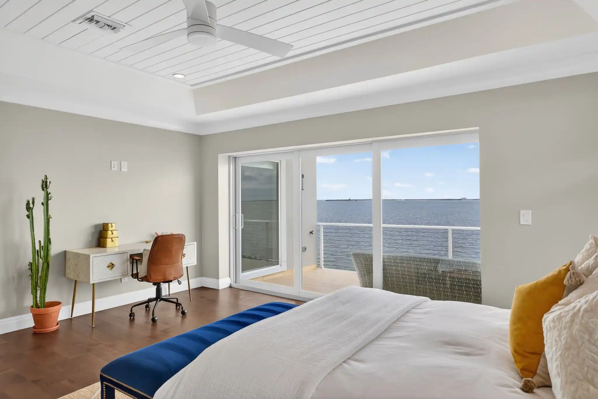 Sanibel Bayfront Masterpiece with expansive water views from every room. Located on a quiet street overlooking the Bay this home has every exquisite detail covered. Offering 4 bedrooms and 3.5 baths, one bedroom used as a den, all other bedrooms are ensuites including custom walk-in closets and private decks overlooking the Bay.
