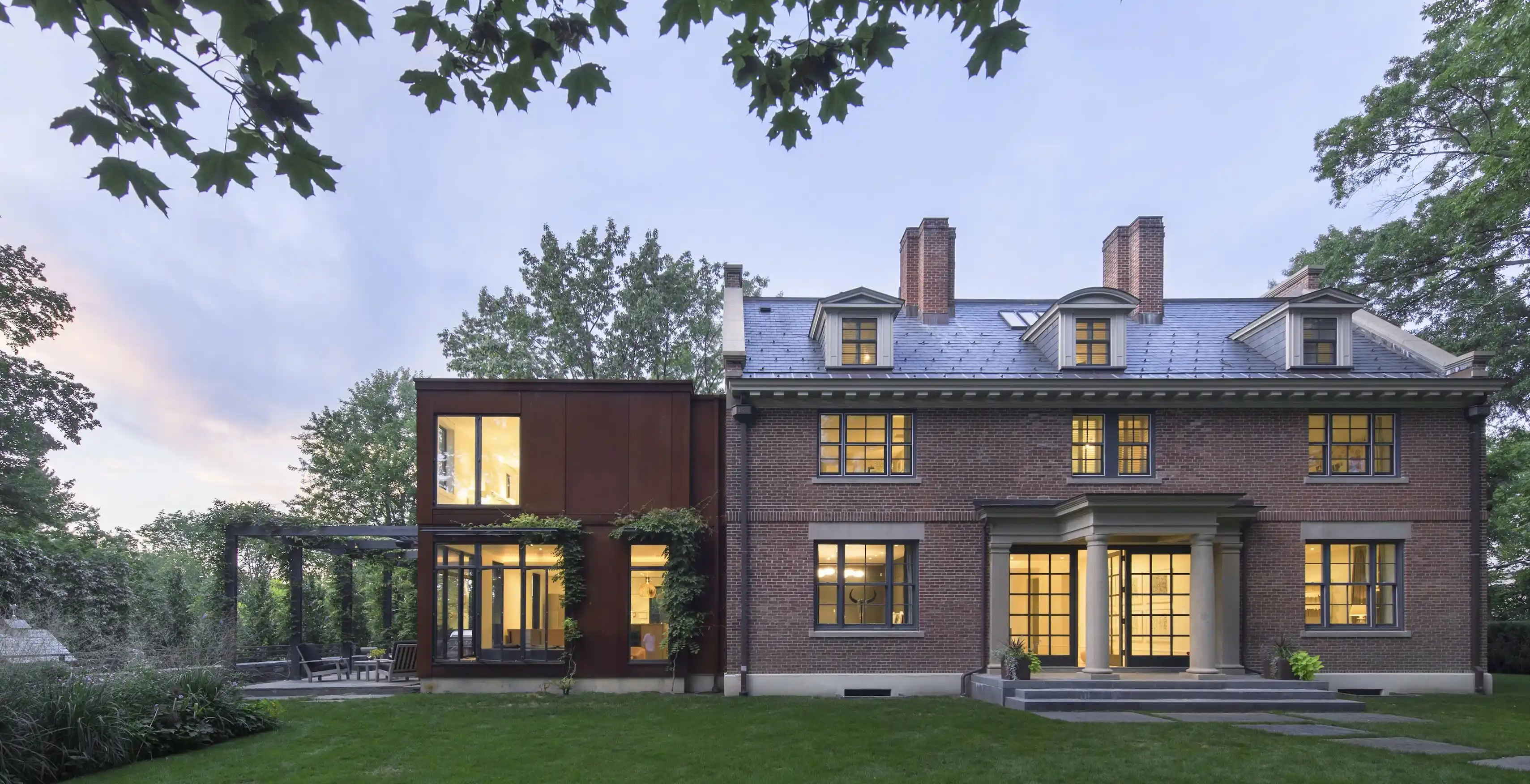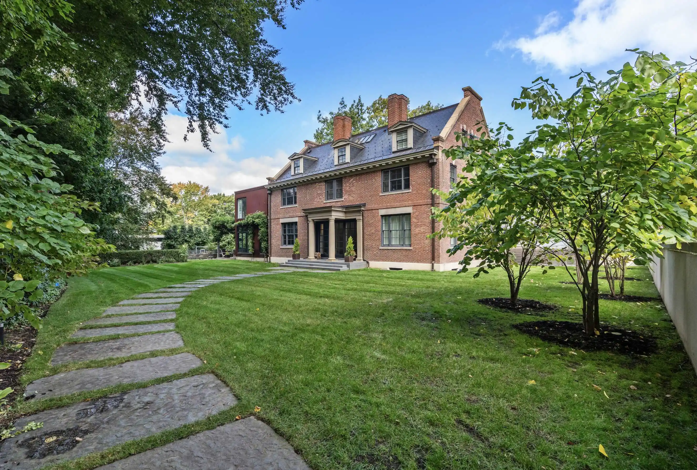 This impressive offering is discreetly nestled in West Cambridge not far from Harvard Square and the Charles River. A stunning testament to its visionary owners, the home offers a seamless blend of a contemporary art gallery aesthetic with the timeless elegance of a 19th-century Georgian Revival estate. Striking a balance between modern and traditional, the residence pairs period charm with luxe minimalist interiors. The resulting property is a true tour de force from Boston-based architecture and design firm Stern McCafferty. A striking Cor-Ten steel addition adds warm and earthy tones, complementing the traditional 1905 brick structure. Insulated from the outside world by lush, meticulously maintained grounds, this extraordinary property offers an array of outdoor spaces including shaded patios, vibrant gardens, cascading vines, and a versatile sport court. This dream-like property presents a rare opportunity for the most discerning buyer—an experience beyond words.