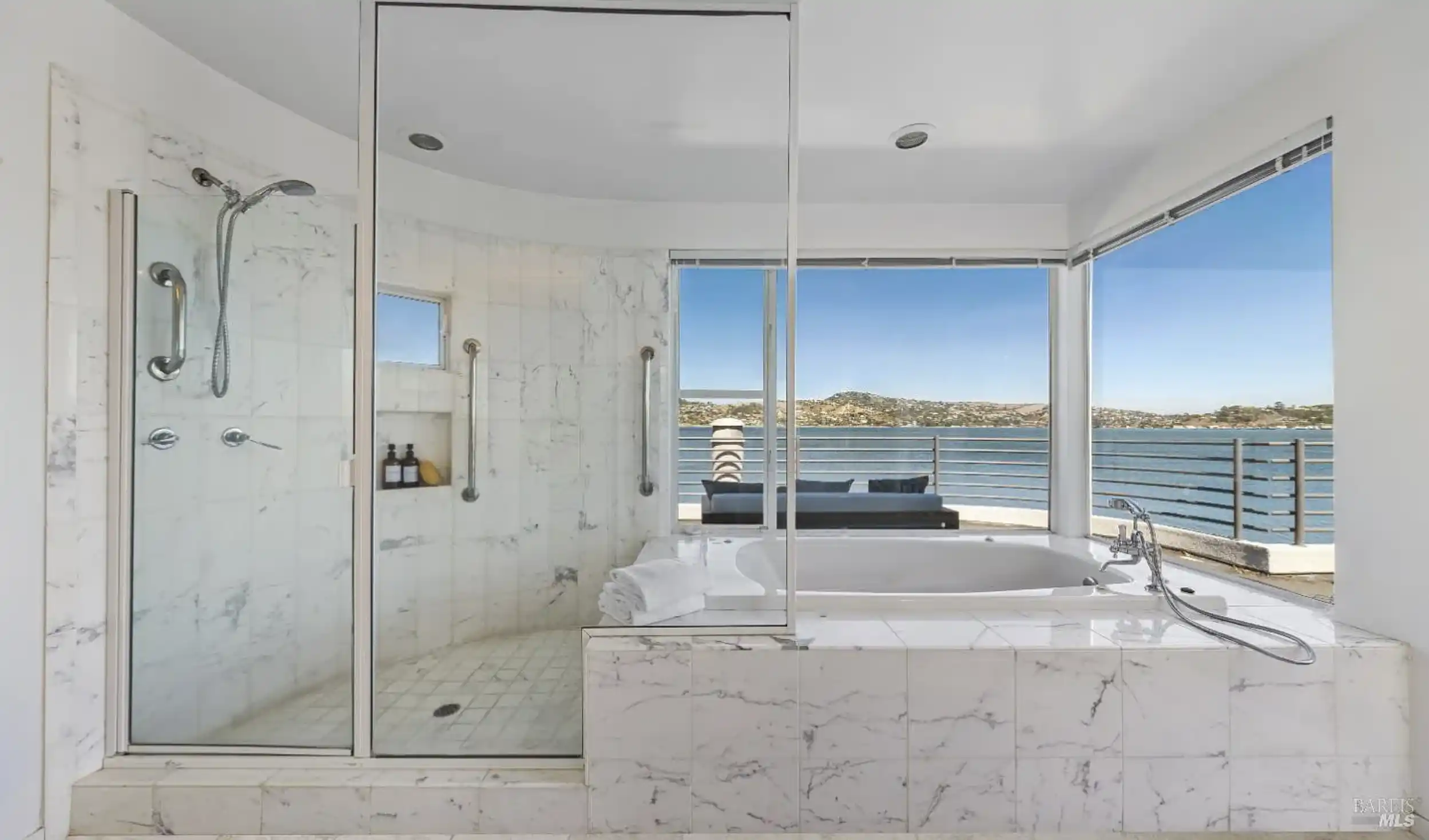 Perfectly positioned near the tip of Strawberry Point at the end of a cul-de-sac, this contemporary residence showcases sweeping views across the bay, San Francisco, the Bay Bridge, Sausalito, Belvedere Island, and the Tiburon Peninsula from almost every room. Multiple entertainment decks and an incredible lap pool.