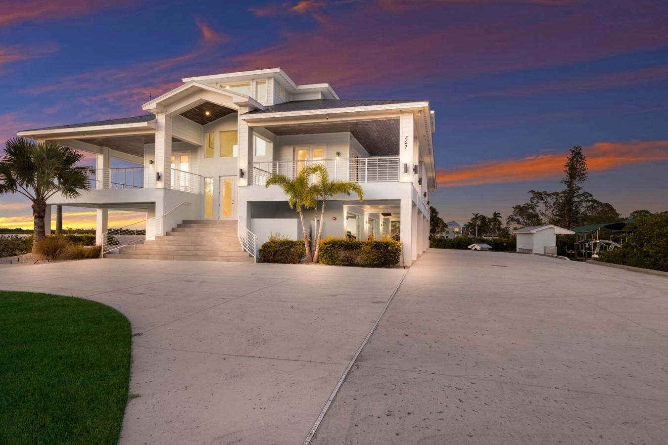 PARADISE POINT...A WATERFRONT MASTERPIECE ON THE MANATEE RIVER!!! Nestled on a PRIVATE 2.20 ACRE PENINSULA , Paradise Point is a breathtaking waterfront GATED ESTATE offering unmatched LUXURY and DIRECT ACCESS to the Manatee River, Tampa Bay and the Gulf. This 2023 custom built Key West style home boasts over 670 feet of water frontage, providing panoramic views of the Manatee River. YOU WILL NOT FIND A BETTER VALUE FOR A NEW WATERFRONT HOME ON ACREAGE!!! Imagine absolutely stunning sunrises followed by even more beautiful sunsets in the evening, all while sitting on your multiple covered lanais on each level of the house! Truly a Home of Luxury & Comfort. Spanning nearly 6,000 square feet of air-conditioned space , with a total of over 12,800 square feet including porches and garage space, this home is designed for both relaxation and grand entertaining. The open-concept living area showcases expansive water views out of almost every room. As soon as you enter the main living area you will notice the high ceilings and natural light streaming in thru all the windows in the great room. The gourmet kitchen is a chefs dream, featuring Wolf and Thermador appliances, gorgeous shaker style cabinetry, dual dishwashers, and a huge island that is the perfect spot for hosting gatherings. Take the stairs or elevator to the private third-floor owners suite. Truly a serene retreat, complete with a spacious lanai with cypress ceilings, two oversized walk-in closets, and a spa like bathroom featuring a Jacuzzi soaking tub and a 12x8 Thermosol wet sauna steam shower. The main level offers four additional bedrooms, including one ideal for a home office. A 15-person theater room on the first floor elevates the homes entertainment experience. The 6 car garage is huge and offers endless possibilities for the car enthusiasts or just for those looking for storage. Built for absolute strength, this home was constructed way beyond standard building codes! This estate is engineered for maximum durability and energy efficiency. With a completely solid block structure, reinforced concrete floors, a fire sprinkler system, and state-of-the-art roofing material with polyurethane insulation, it provides superior storm resistance. Its high elevation has ensured it remains completely dry through past hurricanes, offering unparalleled security and peace of mind! The exterior is truly an outdoor paradise for boating & entertaining! Designed for those who love the water, this estate features plenty of dock space along a protected deepwater lagoon. You can tell that this area was designed by someone with lots of experience on the water and that they constructed this area with an open check book! Featuring trex decking, built in dock lighting and two private covered boat slips-one with a 16,000 lb lift and the other with a 10,000 lb lift-as well as a concrete shed to store all your boating/fishing gear and your ice machine! Additionally there is a fish cleaning station and shore power at the dock. Truly a dream set up!! Conveniently located just minutes from downtown Bradenton, this estate is near top-tier schools, including IMG ACADEMY, ST STEPHENS AND BRADENTON CHRISTIAN SCHOOL! Only minutes to the Gulf Beaches of Anna Maria Island, short distance to downtown St. Pete and the cultural & culinary arts of Sarasota. TRULY AN AMAZING LOCATION WITH EASY ACCESS TO SO MANY OPTIONS!