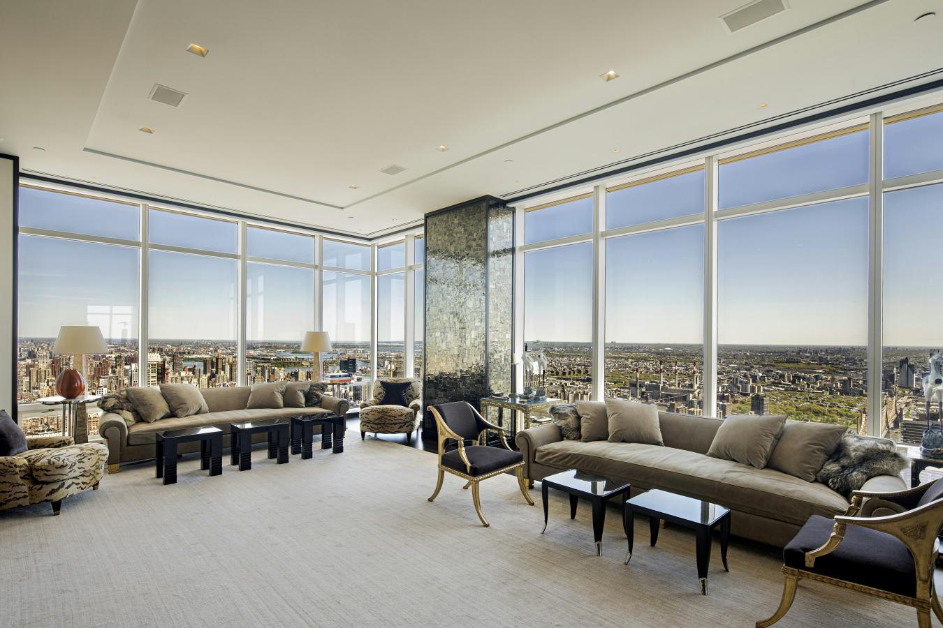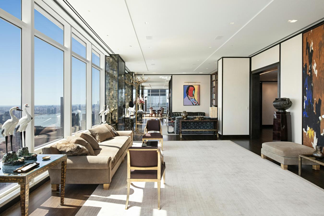 Perched on the 54th floor of One Beacon Court--New Yorks most prestigious modern landmark with a private circular driveway, designed by renowned architect Cesar Pelli--this stunning penthouse, masterfully crafted by internationally acclaimed interior designer Jacques Grange, occupies the coveted front corner and offers commanding panoramic views.