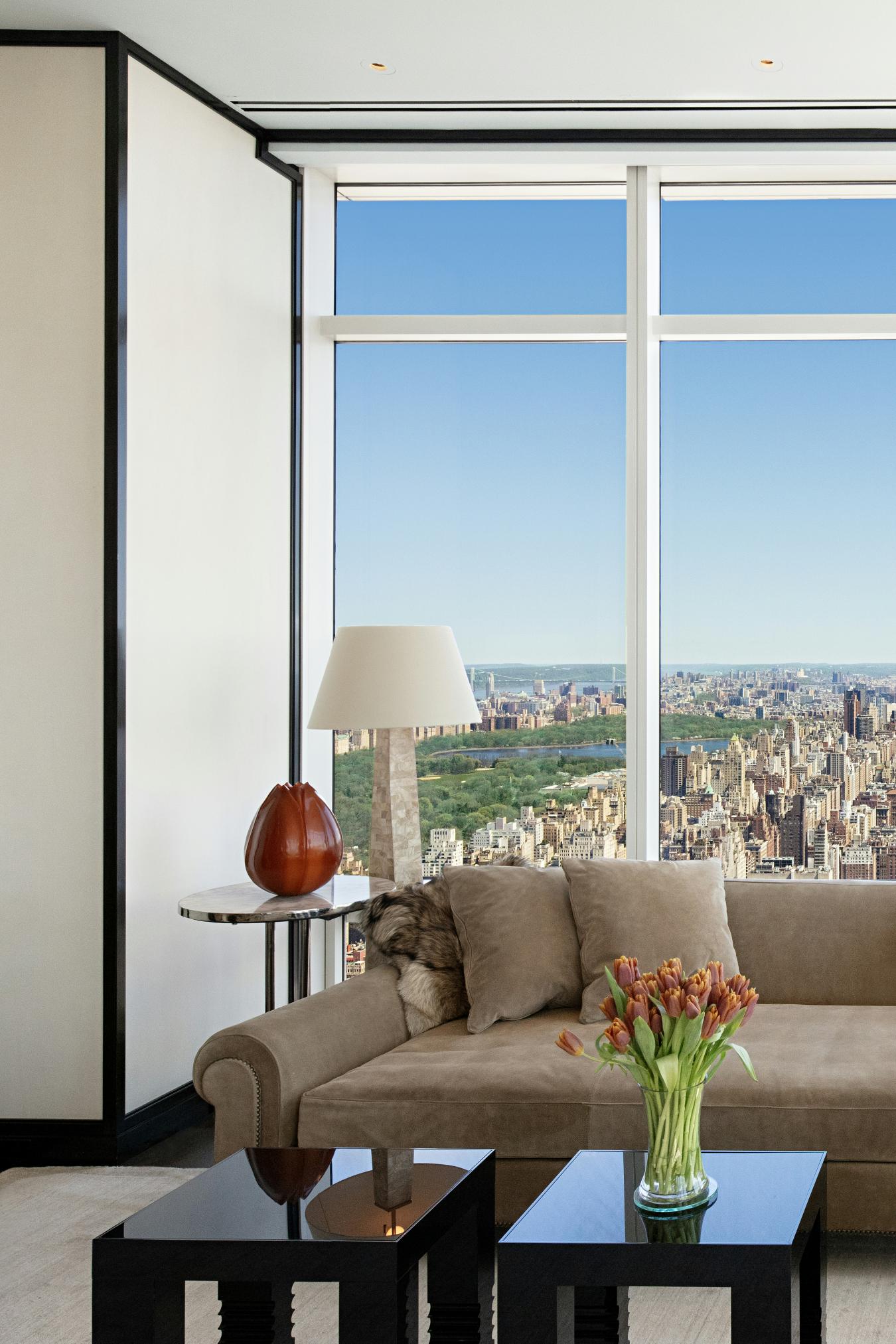 Perched on the 54th floor of One Beacon Court--New Yorks most prestigious modern landmark with a private circular driveway, designed by renowned architect Cesar Pelli--this stunning penthouse, masterfully crafted by internationally acclaimed interior designer Jacques Grange, occupies the coveted front corner and offers commanding panoramic views. Forty floor-to-ceiling windows and soaring ceilings frame breathtaking vistas of the city and beyond. Light floods every room, highlighting bespoke design details and creating a sense of airy elegance throughout. Masterfully proportioned rooms include a large rectangular entry Gallery and the 30" x 20" corner Living Room which seamlessly opens to the Library and Dining Room-all spanning a magnificent 77" of uninterrupted entertaining space. The serene Primary Bedroom Suite enjoys magnificent Central Park views from every window-including the light-filled, spa-like Bath. A gracious 29" x 15" Bedroom and a custom designed Dressing Room lined with closets and built-in shelving complete this luxurious retreat. Conveniently located in a separate wing are two additional Bedrooms, each with an ensuite Bath. The stunning Poggenpohl Kitchen is outfitted with top-of-the-line appliances, sleek cabinetry and a breakfast room ideal for casual dining or morning coffee with a view. A proper Laundry Room and a guest Powder Room complete this exceptional home. Designed for effortless living, the residence offers three entrances for the use by guests and staff. The flawless renovation includes state-of-the-art lighting, motorized window shades, an audiophile sound system and major architectural finishes throughout. Every detail has been thoughtfully curated to blend luxury, comfort and function in this truly world-class home in the sky. One Beacon Court residents enjoy exceptional amenities including a fully equipped fitness center on the 21st floor with skyline views, a childrens playroom, private entertainment suite, business lounge, full-time doorman and concierge, and round-the-clock valet parking. The building is ideally located in coveted proximity to the citys premier shopping destinations, Michelin-starred dining, cultural landmarks, and the tranquility of Central Park. This is a co - exclusive with Sothebys.