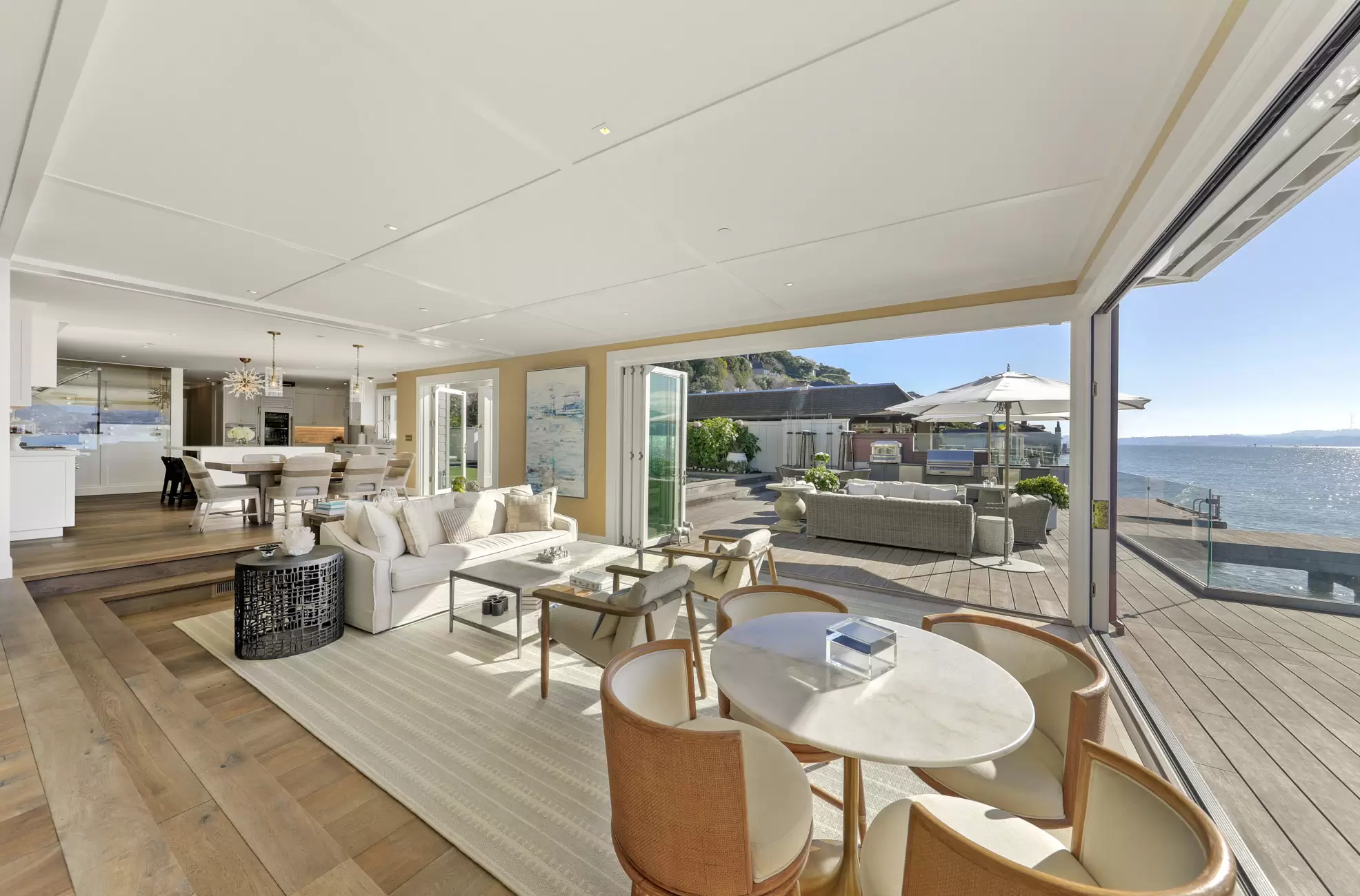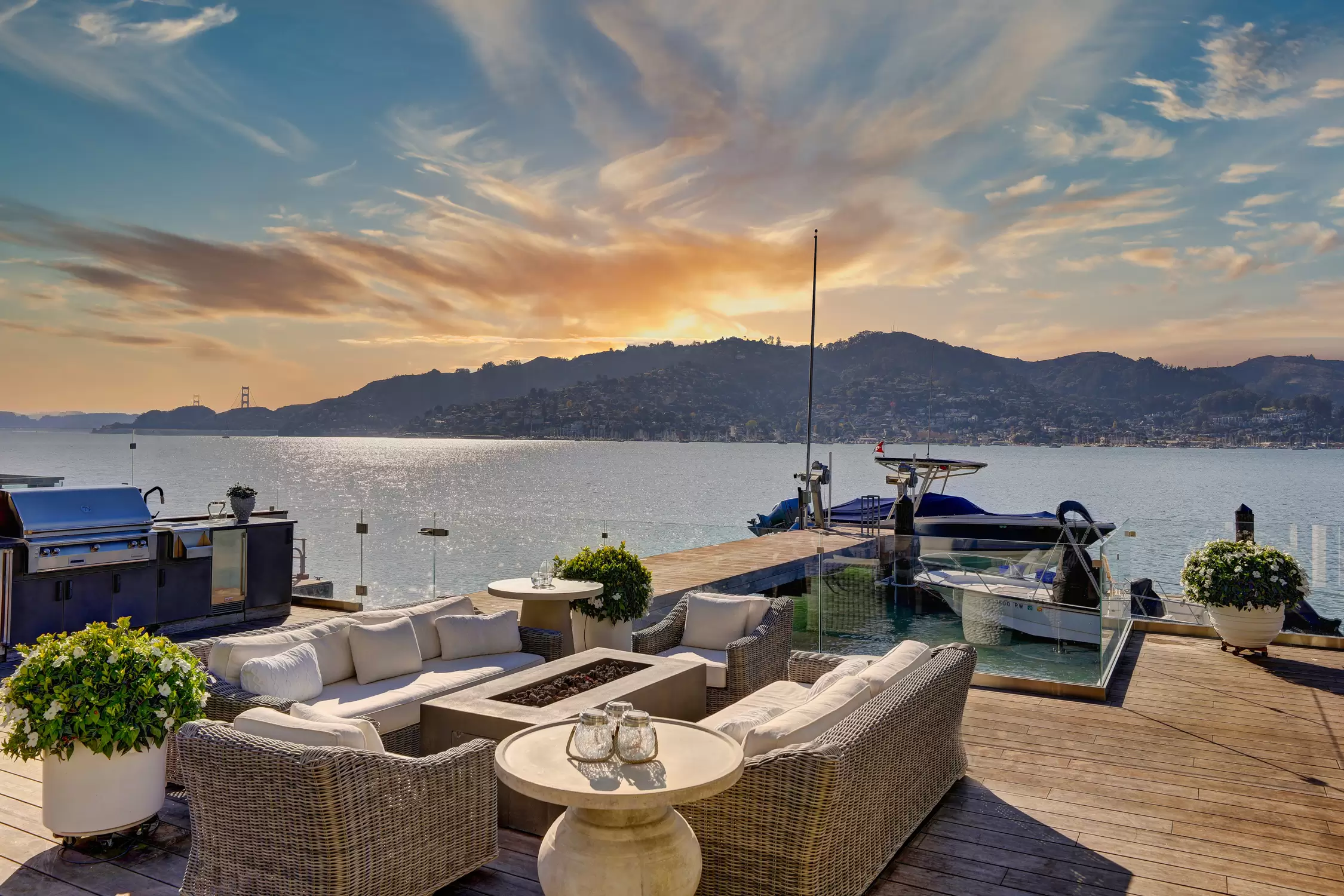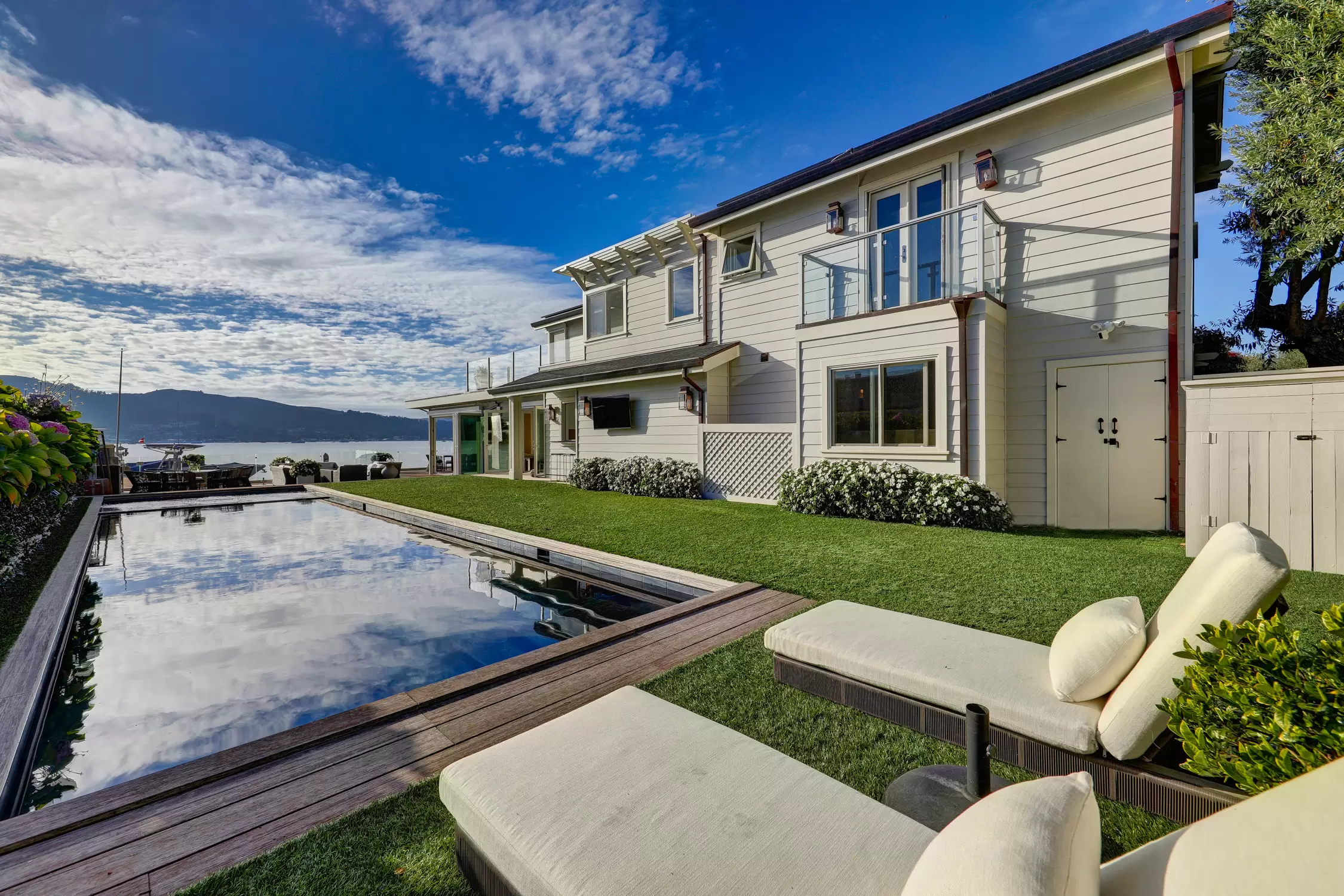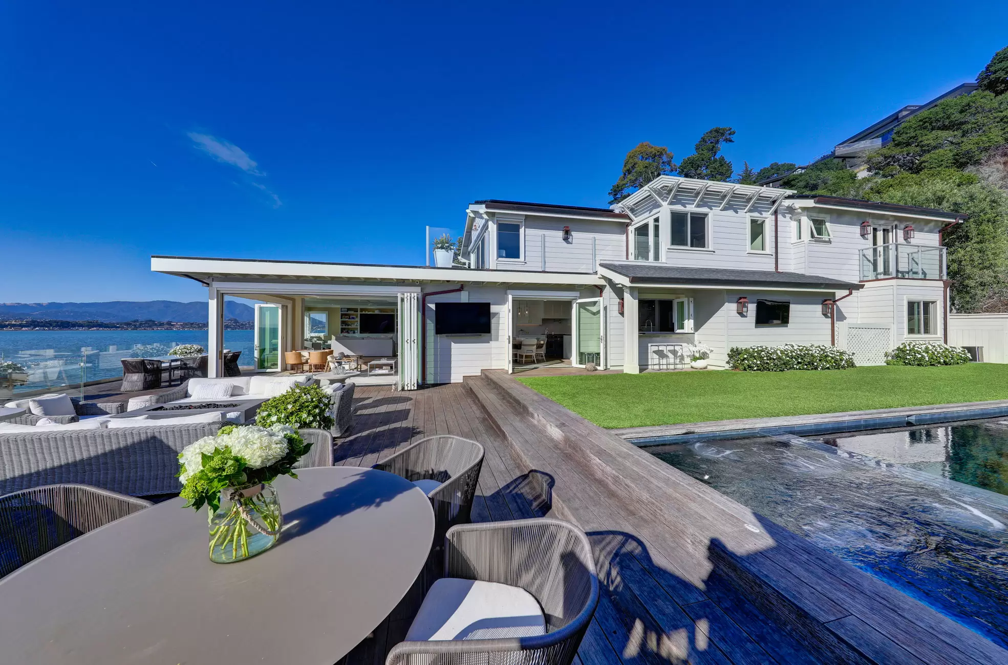 This extraordinary waterfront renovation stands as the pinnacle of luxury living, featuring an unparalleled design and designer finishes that seamlessly converge to redefine the essence of modern living. Positioned on Belvedere's most exclusive street, West Shore Road, the western shore of the Tiburon Peninsula, providing world-class views of the Golden Gate Bridge, San Francisco, Sausalito, the bay, and Mount Tamalpais. The exceptional craftsmanship and architectural brilliance evident throughout the property elevate it to a league of its own, showcasing meticulous attention to detail and a commitment to superior quality.Significantly renovated and completed in 2020, this 5 bedroom, 4.5 bathroom waterfront retreat spans 3,765 (+/-) square feet encompassing two levels.This impressive residence is an entertainer's dream, featuring unparalleled amenities and seamlessly connected indoor/outdoor living spaces that exude a refined coastal ambiance. Highlights include two main-level entertainment decks, two docks with a boat lift, a saltwater pool and spa, a gourmet outdoor kitchen, an expansive turf lawn, two outdoor TVs with speakers, a fire pit, an indoor/outdoor bar with counter seating, and an upper-level deck with a fire pit.The main level of the residence unfolds with a series of open and light-filled rooms, creating an ideal setting for both everyday living and grand-scale entertaining.Monarch Plank Braize European Oak hardwood flooring and Sonos ceiling speakers throughout the main level of the residence.Elevating the art of entertaining, the state-of-the-art chef's kitchen boasts Pietra Fina white marble countertops, an impressive center island with a waterfall edge and seating for seven, custom white cabinetry with brass hardware, Rattan-style Ravenna tile backsplash, an A.G Millworks folding window, and top-of-the-line appliances. This includes an Officine Gullo Custom 6-burner gas range with dual ovens, a GE Cafe microwave convection oven, two Bosch dishwashers, a Thermador plumbed coffee maker, a warming drawer, and three True refrigerators—full refrigerator/freeze section.Adjacent to the kitchen is the dining room with french doors opening to the outdoors.The stylish and inviting living room boasts a beautiful gas fireplace with Ravenna cardigan tile surround and a built-in entertainment center.The heart of the residence is the captivating family room, where floor-to-ceiling accordion doors gracefully vanish, opening up to the outdoors and enhancing the water connection.A spacious recreation room (or an alternative dining room) featuring a modern glass steel wall and custom-painted ceiling lights complete the main level living spaces.A chic powder bathroom featuring Hermes wallpaper, a marbled sink, and a lacquered ceiling serves as the main-level guest bathroom.The main level ensuite bedroom features Stark carpet, electric custom blinds, and grasscloth wallpaper; the bathroom is complete with a stall shower with subway tile backsplash and a sleek vanity with marble countertops.A beautiful staircase with a glass railing, Stark carpet, two Arteriors chandeliers, and custom woodwork wall paneling leads to the upper level. This level features a lavish primary suite, an ensuite bedroom, two additional bedrooms, a full bathroom, and a deck complete with a fire pit.The luxurious primary suite features two walk-in closets with custom wardrobe systems, vaulted ceilings, Stark carpet, grasscloth wallpaper, custom electric blinds, and Marvin windows and sliding glass doors that seamlessly open to the deck. The spa-like primary bathroom features marble flooring, dual sinks, a custom-colored clawfoot soaking tub, and a stall shower with hand-painted tile.The ensuite bedroom features Stark carpet, open beamed ceilings, grasscloth wallpaper, custom electric blinds, two closets, and a well-appointed bathroom complete with a stall shower and a vanity featuring brass hardware.The third bedroom has access to a private balcony and features Stark carpet, open beamed ceilings, electric custom blinds, and grasscloth wallpaper.The fourth bedroom features Stark carpet, electric custom blinds, grasscloth wallpaper, stunning water views, and sliding glass doors that open to the upper-level deck.The hallway bathroom on the upper level is complete with a stall shower, blue subway tile backsplash, and a custom marble vanity and faucet.The two-car garage currently serves as an additional recreation room and features Stark carpet, custom cabinetry, and (2) stackable washers and dryers concealed by a custom woodwork wall.Introducing an unparalleled indoor-outdoor living experience, this remarkable residence showcases exceptional outdoor spaces crafted to elevate your lifestyle to new heights of luxury and relaxation. Among its features are a saltwater pool and spa, a lush turf lawn, a fire pit, entertainment decks, outdoor TVs, a lengthy dock (48' x 8'), a shorter dock (21' x 7'), a new Golden Boat lift (installed in 2020), and a well-equipped outdoor kitchen.This rare and highly sought-after setting is a haven for entertainers and water enthusiasts, providing private and effortless access to both Richardson Bay and the San Francisco Bay.Located only one block to the Old Rail Trail waterfront pathway leading to Blackie’s Pasture and minutes to downtown Tiburon’s Main Street with San Francisco and Angel Island ferry service, waterfront restaurants, and trendy shops.