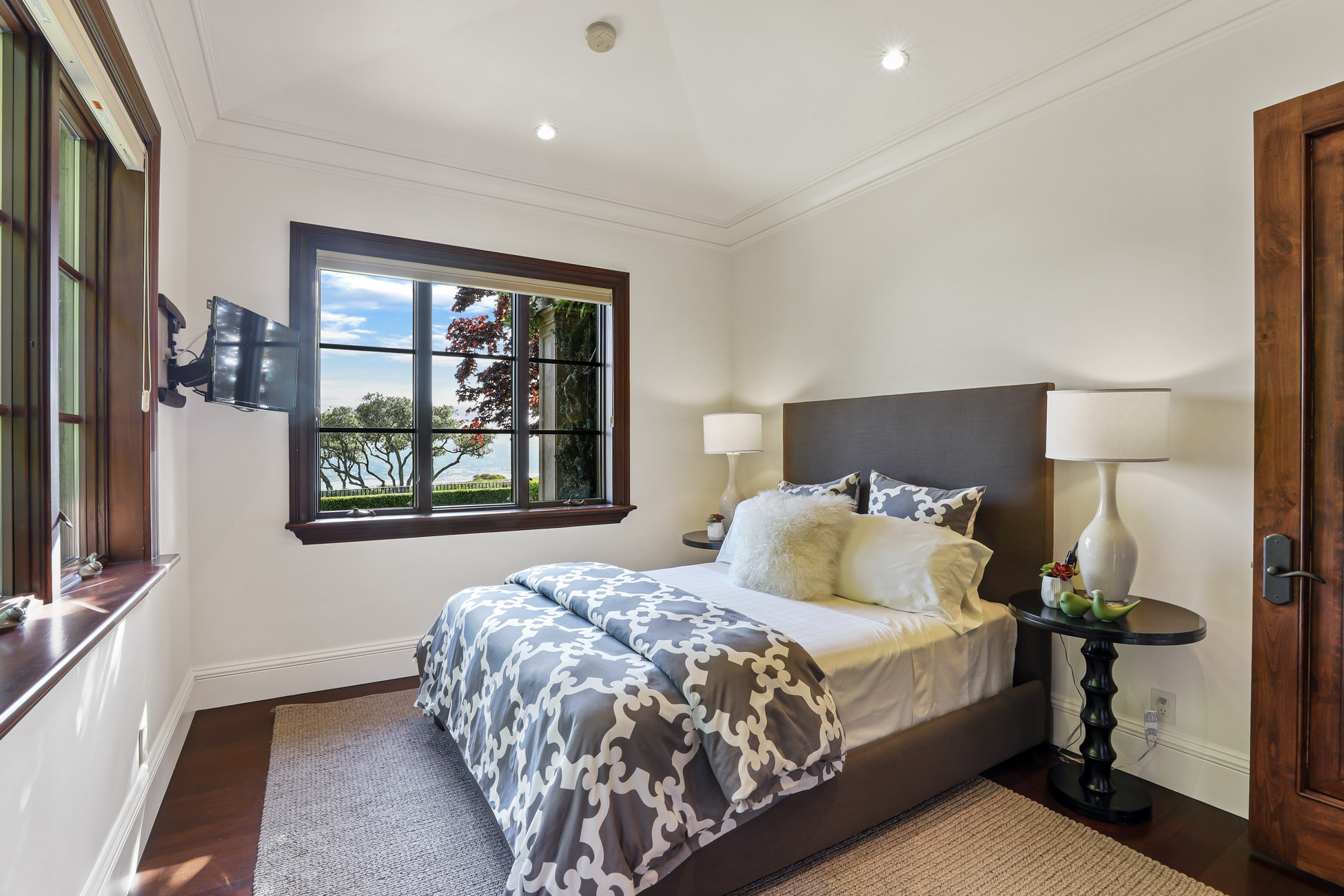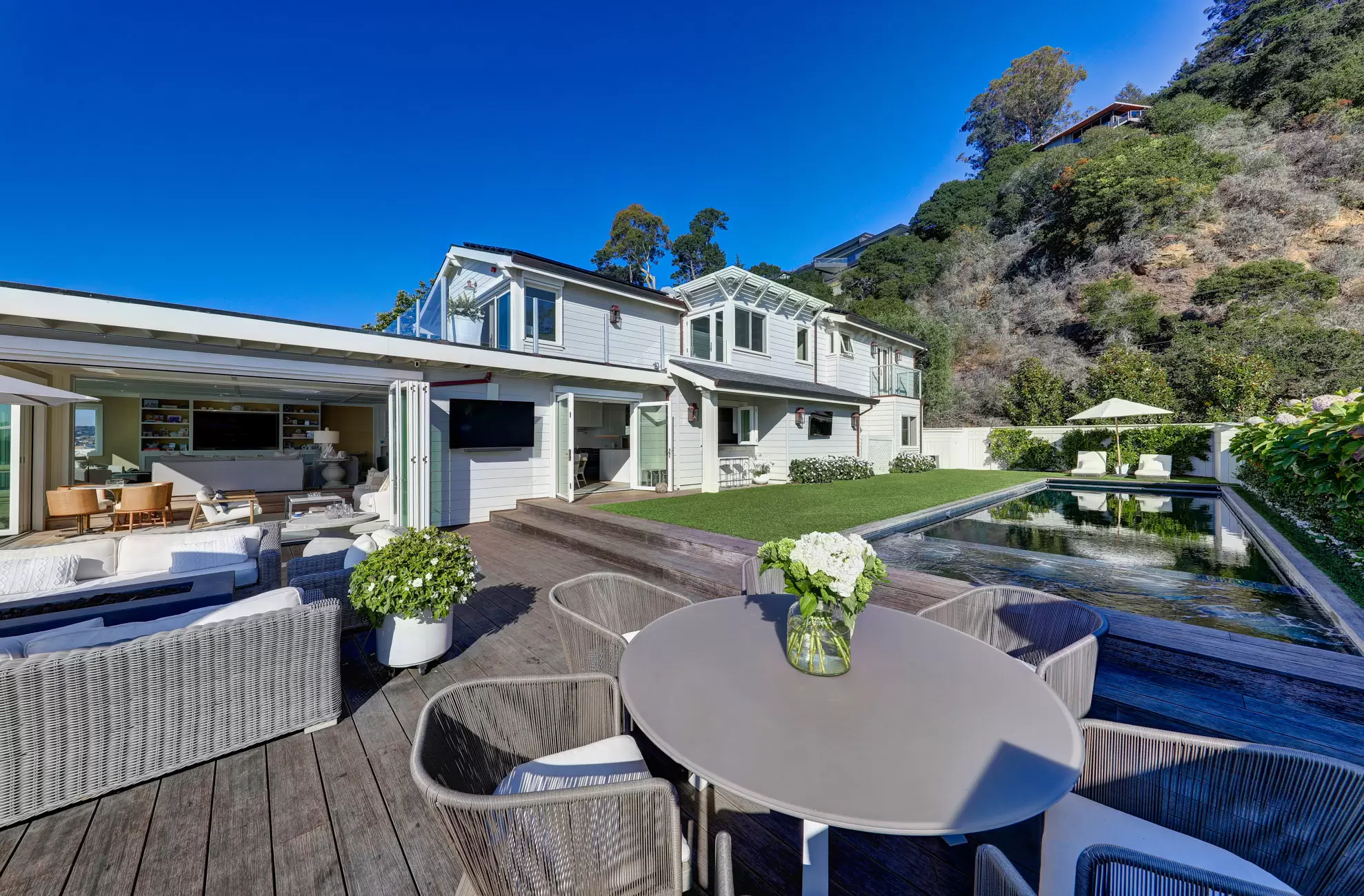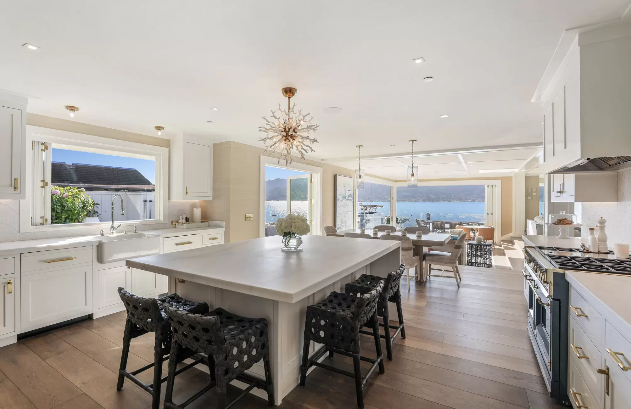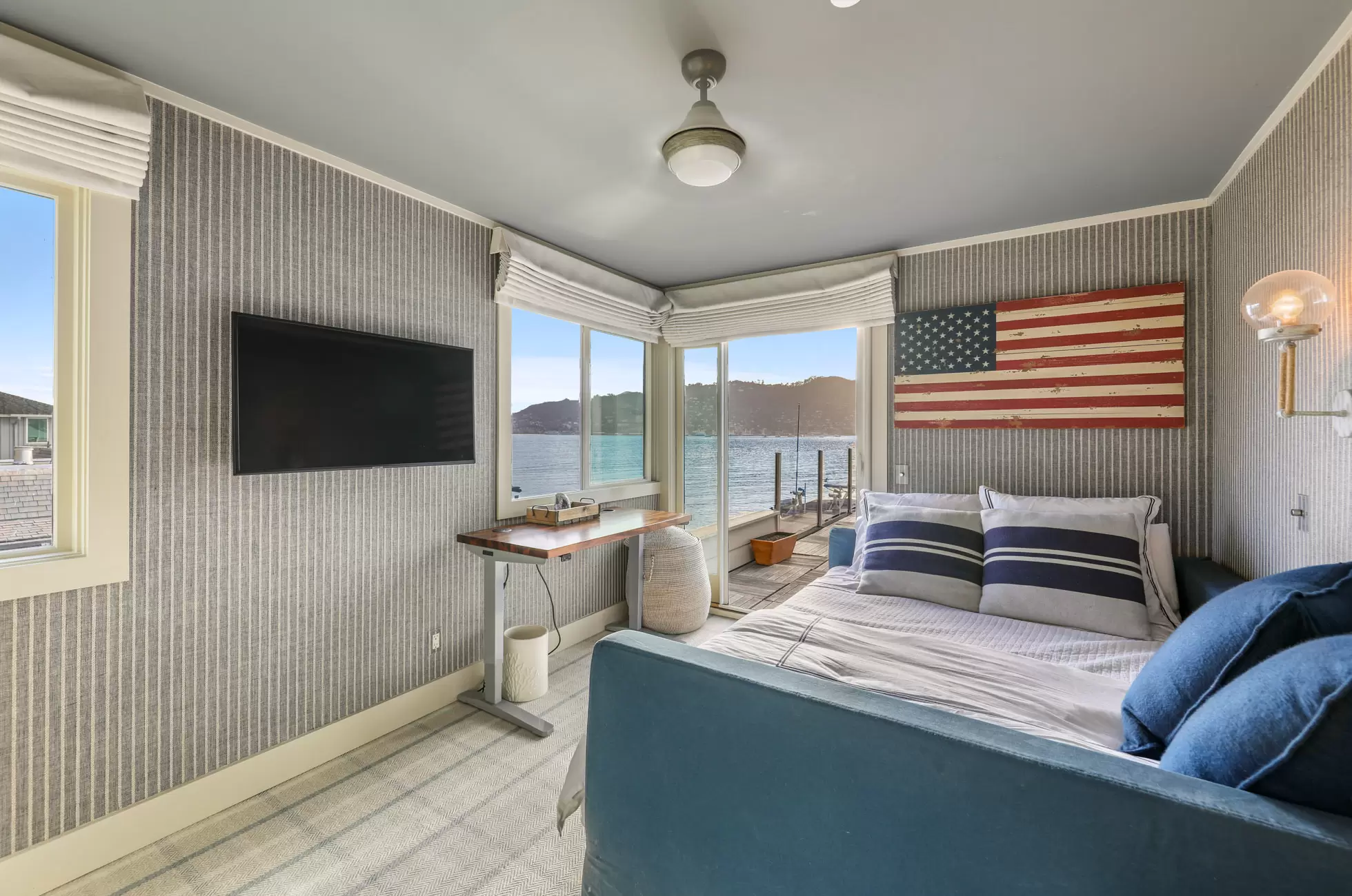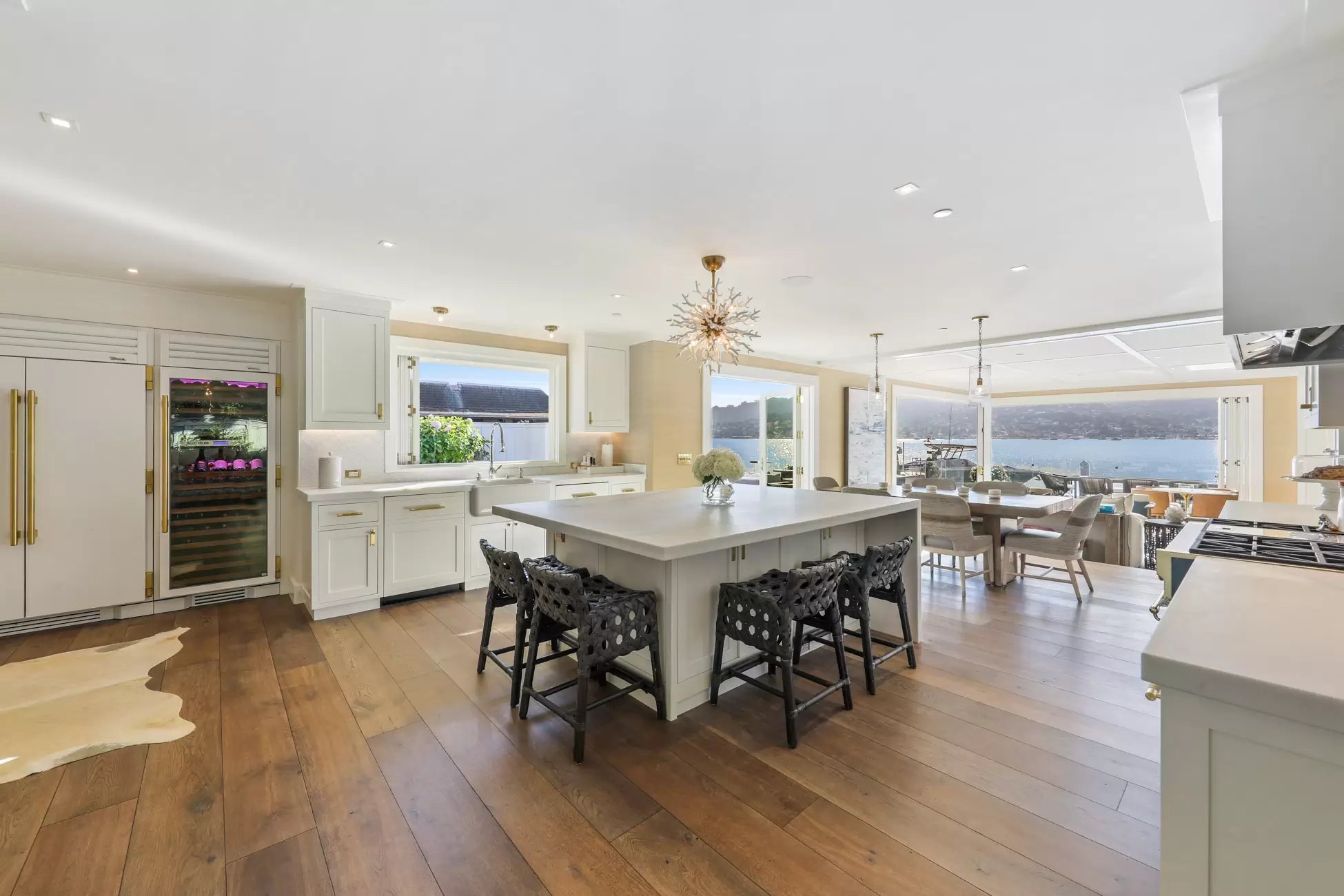 This extraordinary waterfront renovation stands as the pinnacle of luxury living, featuring an unparalleled design and designer finishes that seamlessly converge to redefine the essence of modern living. Positioned on Belvedere's most exclusive street, West Shore Road, the western shore of the Tiburon Peninsula, providing world-class views of the Golden Gate Bridge, San Francisco, Sausalito, the bay, and Mount Tamalpais. The exceptional craftsmanship and architectural brilliance evident throughout the property elevate it to a league of its own, showcasing meticulous attention to detail and a commitment to superior quality.Significantly renovated and completed in 2020, this 5 bedroom, 4.5 bathroom waterfront retreat spans 3,765 (+/-) square feet encompassing two levels.This impressive residence is an entertainer's dream, featuring unparalleled amenities and seamlessly connected indoor/outdoor living spaces that exude a refined coastal ambiance. Highlights include two main-level entertainment decks, two docks with a boat lift, a saltwater pool and spa, a gourmet outdoor kitchen, an expansive turf lawn, two outdoor TVs with speakers, a fire pit, an indoor/outdoor bar with counter seating, and an upper-level deck with a fire pit.The main level of the residence unfolds with a series of open and light-filled rooms, creating an ideal setting for both everyday living and grand-scale entertaining.Monarch Plank Braize European Oak hardwood flooring and Sonos ceiling speakers throughout the main level of the residence.Elevating the art of entertaining, the state-of-the-art chef's kitchen boasts Pietra Fina white marble countertops, an impressive center island with a waterfall edge and seating for seven, custom white cabinetry with brass hardware, Rattan-style Ravenna tile backsplash, an A.G Millworks folding window, and top-of-the-line appliances. This includes an Officine Gullo Custom 6-burner gas range with dual ovens, a GE Cafe microwave convection oven, two Bosch dishwashers, a Thermador plumbed coffee maker, a warming drawer, and three True refrigerators—full refrigerator/freeze section.Adjacent to the kitchen is the dining room with french doors opening to the outdoors.The stylish and inviting living room boasts a beautiful gas fireplace with Ravenna cardigan tile surround and a built-in entertainment center.The heart of the residence is the captivating family room, where floor-to-ceiling accordion doors gracefully vanish, opening up to the outdoors and enhancing the water connection.A spacious recreation room (or an alternative dining room) featuring a modern glass steel wall and custom-painted ceiling lights complete the main level living spaces.A chic powder bathroom featuring Hermes wallpaper, a marbled sink, and a lacquered ceiling serves as the main-level guest bathroom.The main level ensuite bedroom features Stark carpet, electric custom blinds, and grasscloth wallpaper; the bathroom is complete with a stall shower with subway tile backsplash and a sleek vanity with marble countertops.A beautiful staircase with a glass railing, Stark carpet, two Arteriors chandeliers, and custom woodwork wall paneling leads to the upper level. This level features a lavish primary suite, an ensuite bedroom, two additional bedrooms, a full bathroom, and a deck complete with a fire pit.The luxurious primary suite features two walk-in closets with custom wardrobe systems, vaulted ceilings, Stark carpet, grasscloth wallpaper, custom electric blinds, and Marvin windows and sliding glass doors that seamlessly open to the deck. The spa-like primary bathroom features marble flooring, dual sinks, a custom-colored clawfoot soaking tub, and a stall shower with hand-painted tile.The ensuite bedroom features Stark carpet, open beamed ceilings, grasscloth wallpaper, custom electric blinds, two closets, and a well-appointed bathroom complete with a stall shower and a vanity featuring brass hardware.The third bedroom has access to a private balcony and features Stark carpet, open beamed ceilings, electric custom blinds, and grasscloth wallpaper.The fourth bedroom features Stark carpet, electric custom blinds, grasscloth wallpaper, stunning water views, and sliding glass doors that open to the upper-level deck.The hallway bathroom on the upper level is complete with a stall shower, blue subway tile backsplash, and a custom marble vanity and faucet.The two-car garage currently serves as an additional recreation room and features Stark carpet, custom cabinetry, and (2) stackable washers and dryers concealed by a custom woodwork wall.Introducing an unparalleled indoor-outdoor living experience, this remarkable residence showcases exceptional outdoor spaces crafted to elevate your lifestyle to new heights of luxury and relaxation. Among its features are a saltwater pool and spa, a lush turf lawn, a fire pit, entertainment decks, outdoor TVs, a lengthy dock (48' x 8'), a shorter dock (21' x 7'), a new Golden Boat lift (installed in 2020), and a well-equipped outdoor kitchen.This rare and highly sought-after setting is a haven for entertainers and water enthusiasts, providing private and effortless access to both Richardson Bay and the San Francisco Bay.Located only one block to the Old Rail Trail waterfront pathway leading to Blackie’s Pasture and minutes to downtown Tiburon’s Main Street with San Francisco and Angel Island ferry service, waterfront restaurants, and trendy shops.