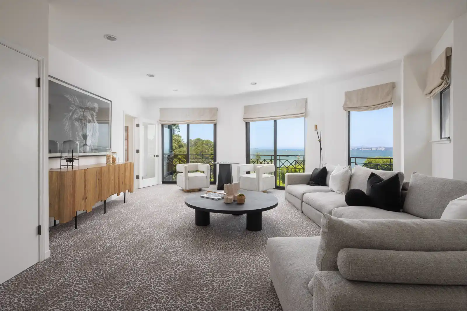 Situated on over half an acre, this exceptional residence showcases spacious, light-filled living spaces, an incredible floor plan, and picturesque views of Richardson Bay, the Belvedere Lagoon, and Sausalito. Enriched by a seamless blend of transitional and contemporary elements, this stunning home creates a balanced and timeless aesthetic, providing comfortable living for every lifestyle.