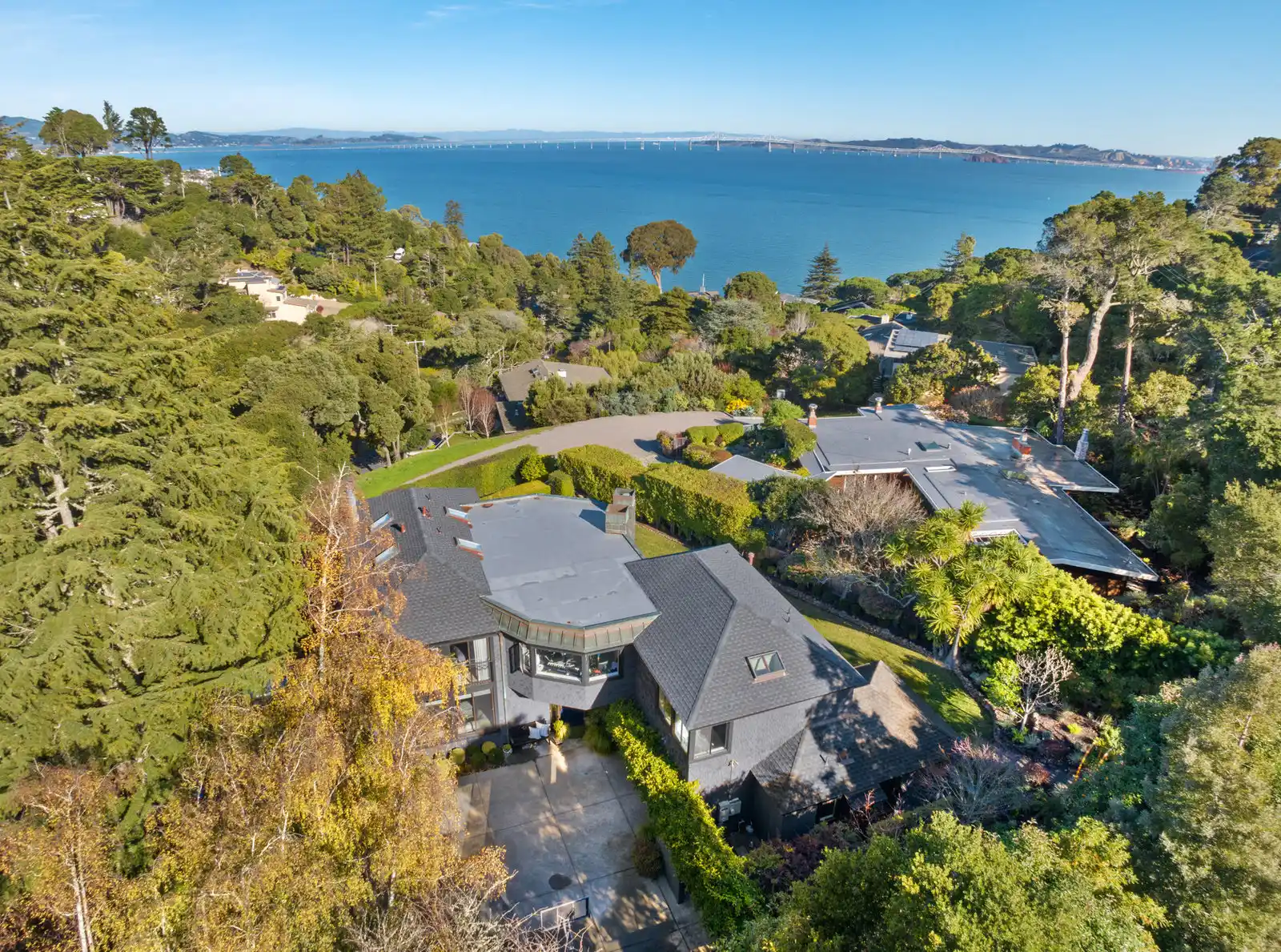 Situated amongst an exclusive enclave of custom homes in the sought-after Seafirth Estates community, this contemporary gated residence offers outstanding outdoor living spaces and captivating views of the San Francisco Bay and the San Rafael Bridge.The exclusive Seafirth Estates community offers a community swimming pool, sport court, private beach, and dock with bay access.