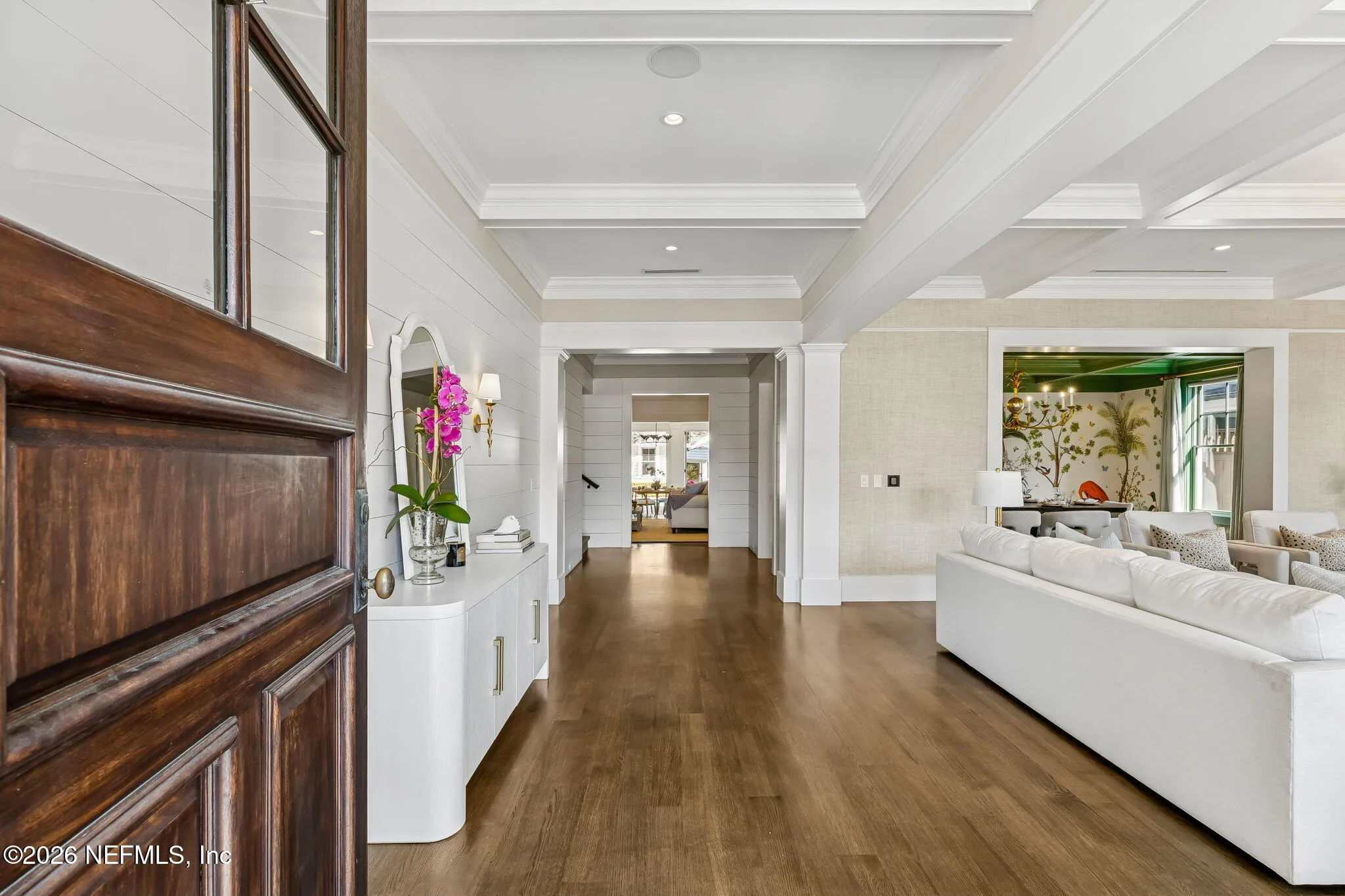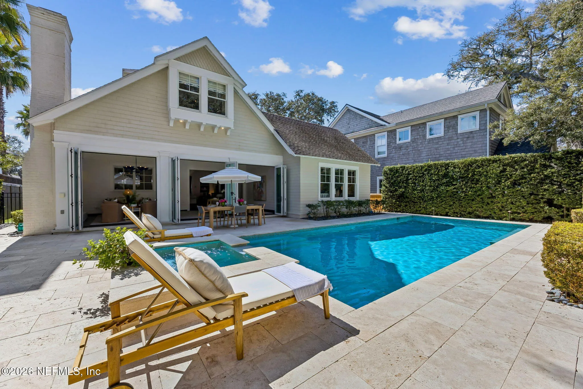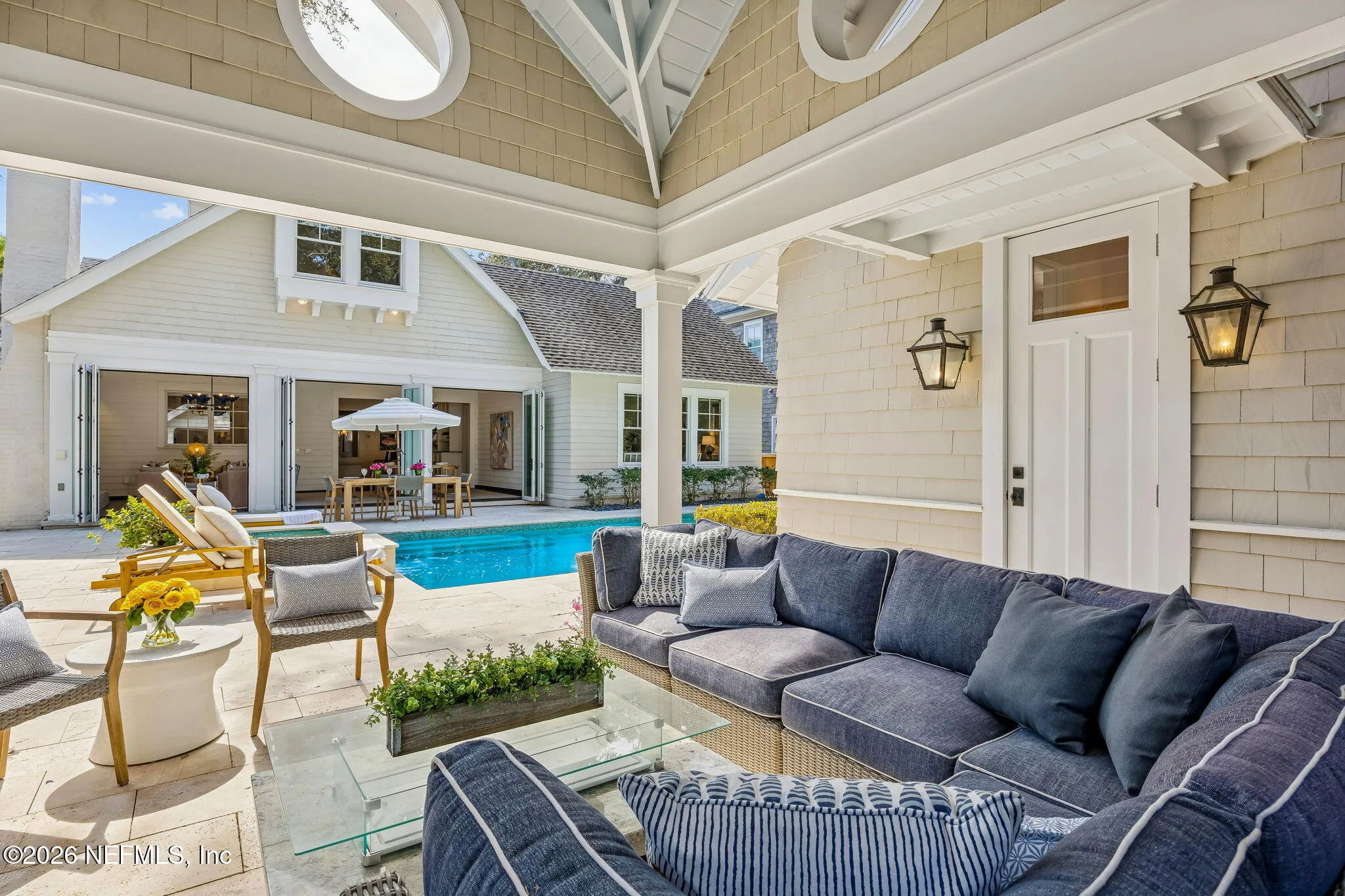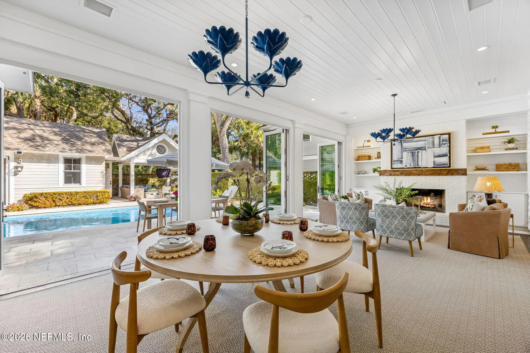 WELCOME HOME A truly distinct and exceptional beachside retreat, the overall ambiance of this coastal inspired 2-story home is one of simple elegance with modern yet warm interiors. Located on highly sought-after 12th Street in the charming seaside village of Atlantic Beach and only three short blocks to the sandy beaches of the Atlantic coast, this property was designed with family, friends and entertainment in mind. With 5,223 square feet of stunning spaces, this home is highlighted with exquisite design details complimented with coffered ceilings, oak wood flooring, shiplap walls, custom paint finishes, and artisan handcrafted woodwork. Built in 2011 by local builder Chris Lambertson of Elite Homes, this house was constructed with luxurious comforts and unique spaces that even the most discerning buyer would appreciate. The Primary Suite is located on the main level along with the formal living and dining rooms, kitchen with sitting room, sun room with wood burning fireplace and the first floor laundry room and pet shower. The second floor houses three very spacious guest suites, and a Flex Space and study area at the top of the landing. If entertaining and sharing your culinary expertise is your passion, then the back yard pool area is going to WOW you. With the beautiful travertine pool terrace surrounding the oversized pool and heated spa, you are drawn to the covered pavilion which offers a casual, relaxing sitting area framing an outdoor gas fire pit. The pool house could be your guest retreat when playing host to your many friends who come to Florida for their sun and sand getaway. You wont need to tempt them when you are within a short bike ride away from the Beaches Town Center where restaurants, coffee roasters and shopping is abundant. If golf, tennis and pickle ball are on the agenda, then a membership at the newly expanded Atlantic Beach Country Club will surely be on your radar to join. Come experience what living in a small seaside beach community offers, and visit 357 12th Street for the ultimate in the beach lifestyle.