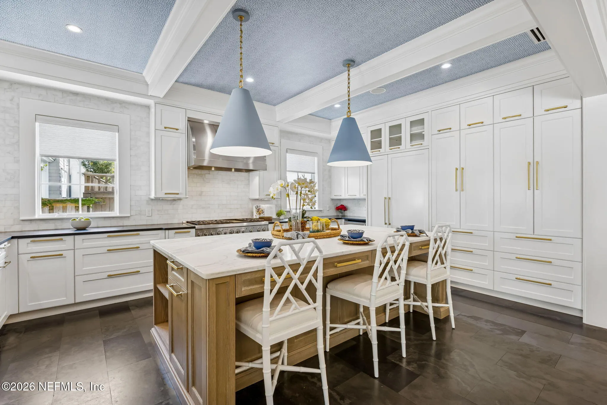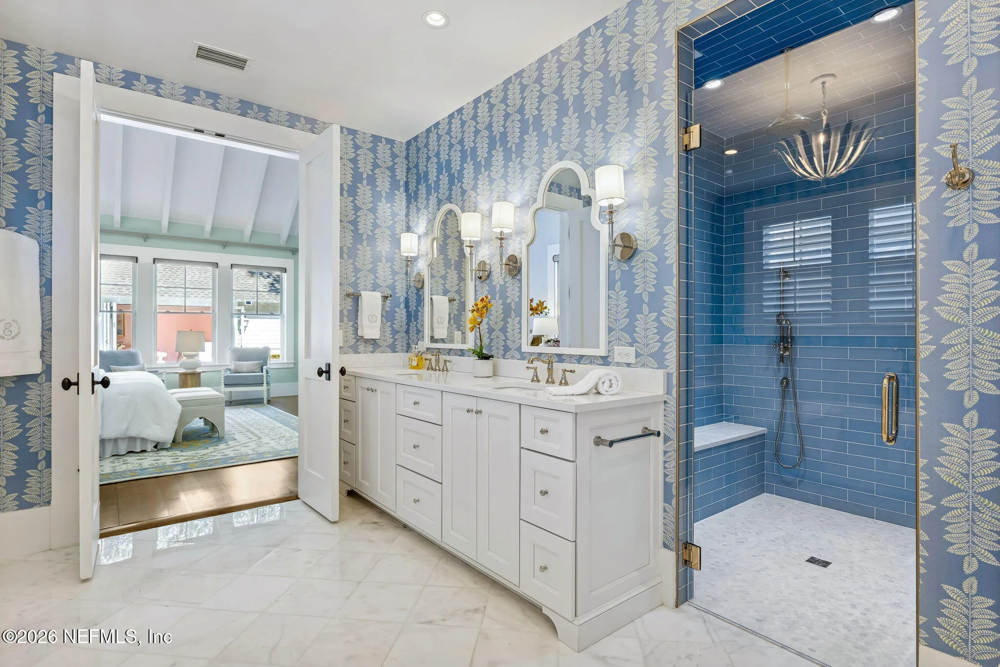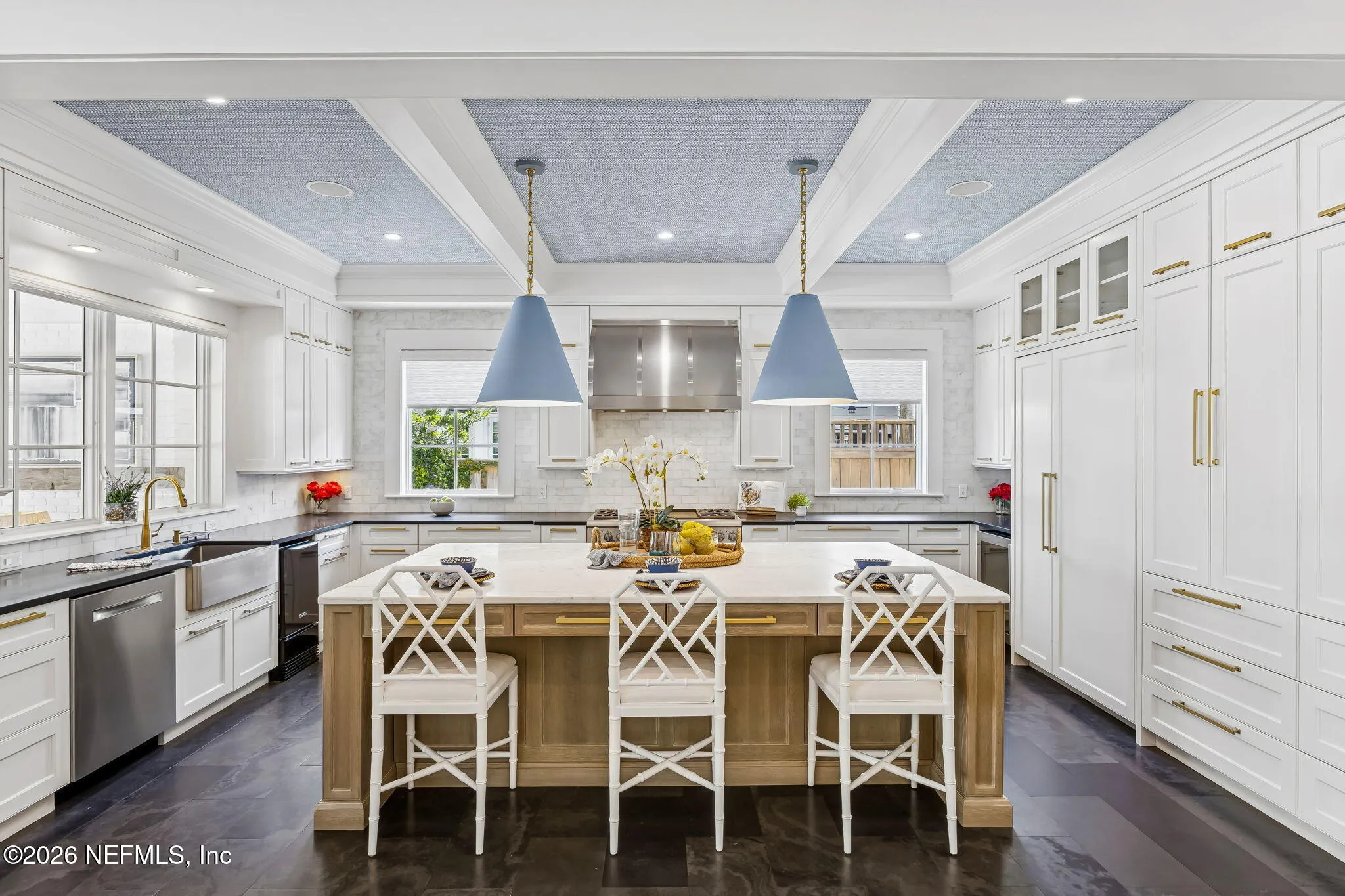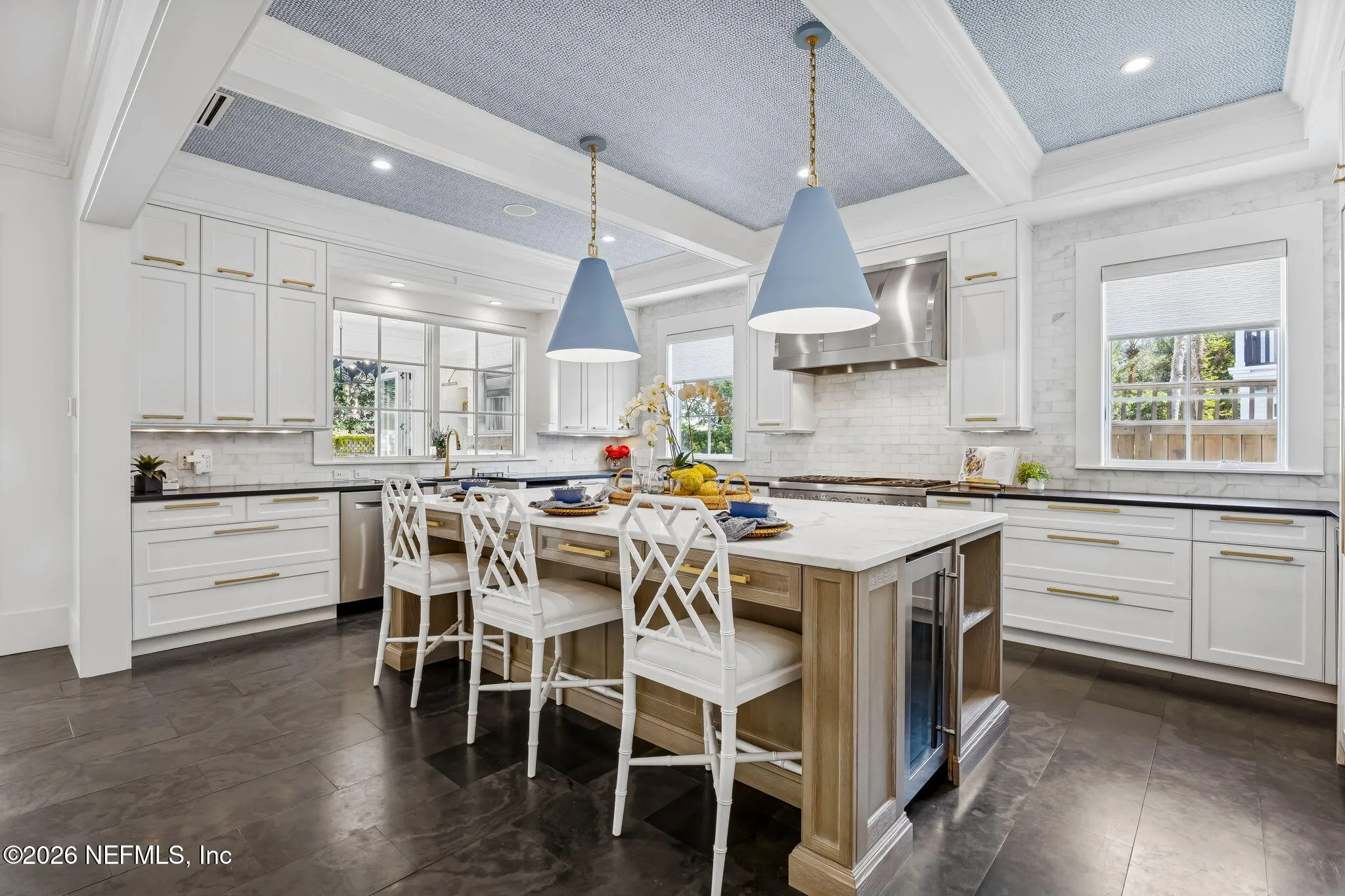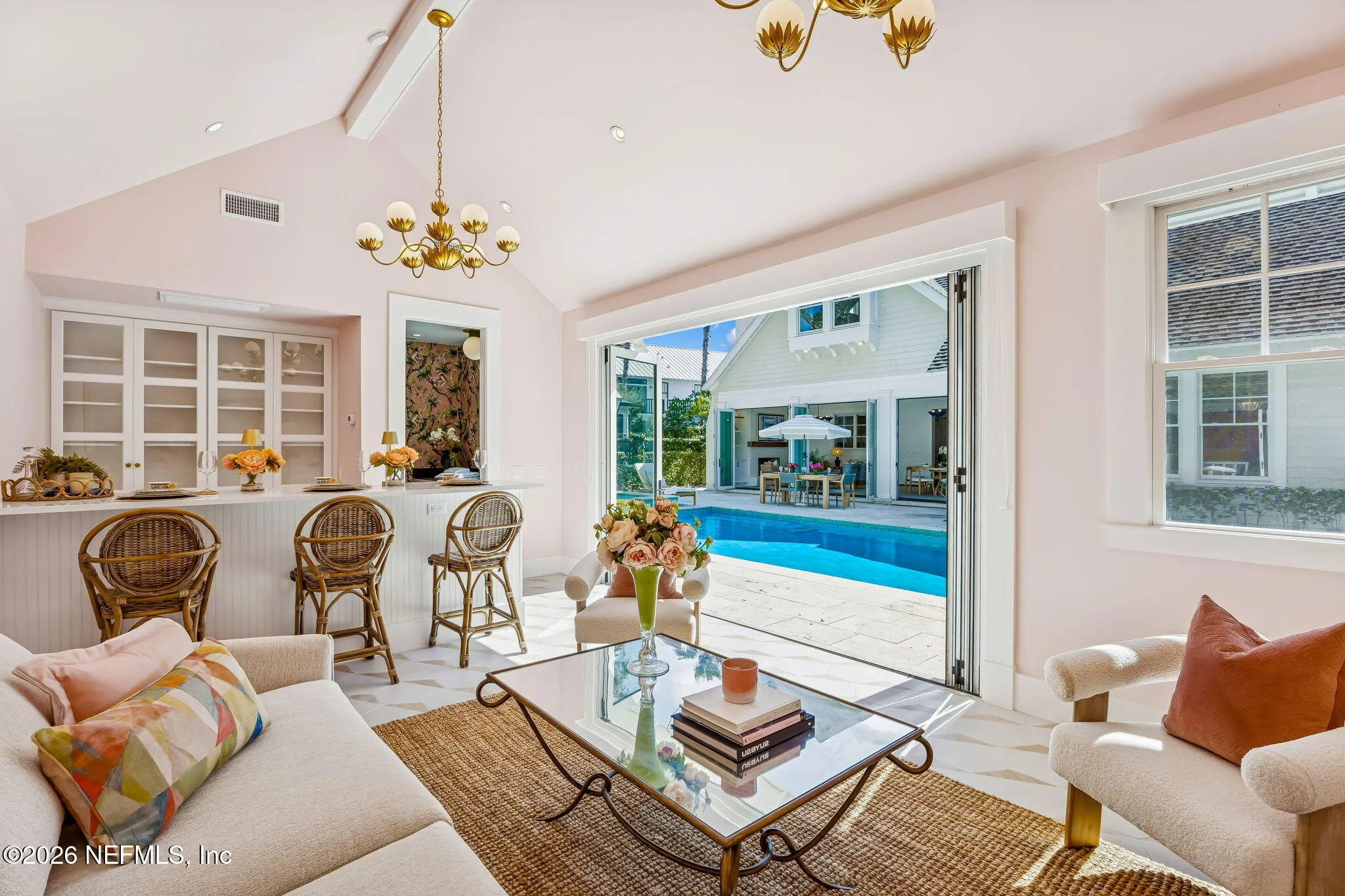 WELCOME HOME A truly distinct and exceptional beachside retreat, the overall ambiance of this coastal inspired 2-story home is one of simple elegance with modern yet warm interiors. Located on highly sought-after 12th Street in the charming seaside village of Atlantic Beach and only three short blocks to the sandy beaches of the Atlantic coast, this property was designed with family, friends and entertainment in mind. With 5,223 square feet of stunning spaces, this home is highlighted with exquisite design details complimented with coffered ceilings, oak wood flooring, shiplap walls, custom paint finishes, and artisan handcrafted woodwork. Built in 2011 by local builder Chris Lambertson of Elite Homes, this house was constructed with luxurious comforts and unique spaces that even the most discerning buyer would appreciate. The Primary Suite is located on the main level along with the formal living and dining rooms, kitchen with sitting room, sun room with wood burning fireplace and the first floor laundry room and pet shower. The second floor houses three very spacious guest suites, and a Flex Space and study area at the top of the landing. If entertaining and sharing your culinary expertise is your passion, then the back yard pool area is going to WOW you. With the beautiful travertine pool terrace surrounding the oversized pool and heated spa, you are drawn to the covered pavilion which offers a casual, relaxing sitting area framing an outdoor gas fire pit. The pool house could be your guest retreat when playing host to your many friends who come to Florida for their sun and sand getaway. You wont need to tempt them when you are within a short bike ride away from the Beaches Town Center where restaurants, coffee roasters and shopping is abundant. If golf, tennis and pickle ball are on the agenda, then a membership at the newly expanded Atlantic Beach Country Club will surely be on your radar to join. Come experience what living in a small seaside beach community offers, and visit 357 12th Street for the ultimate in the beach lifestyle.