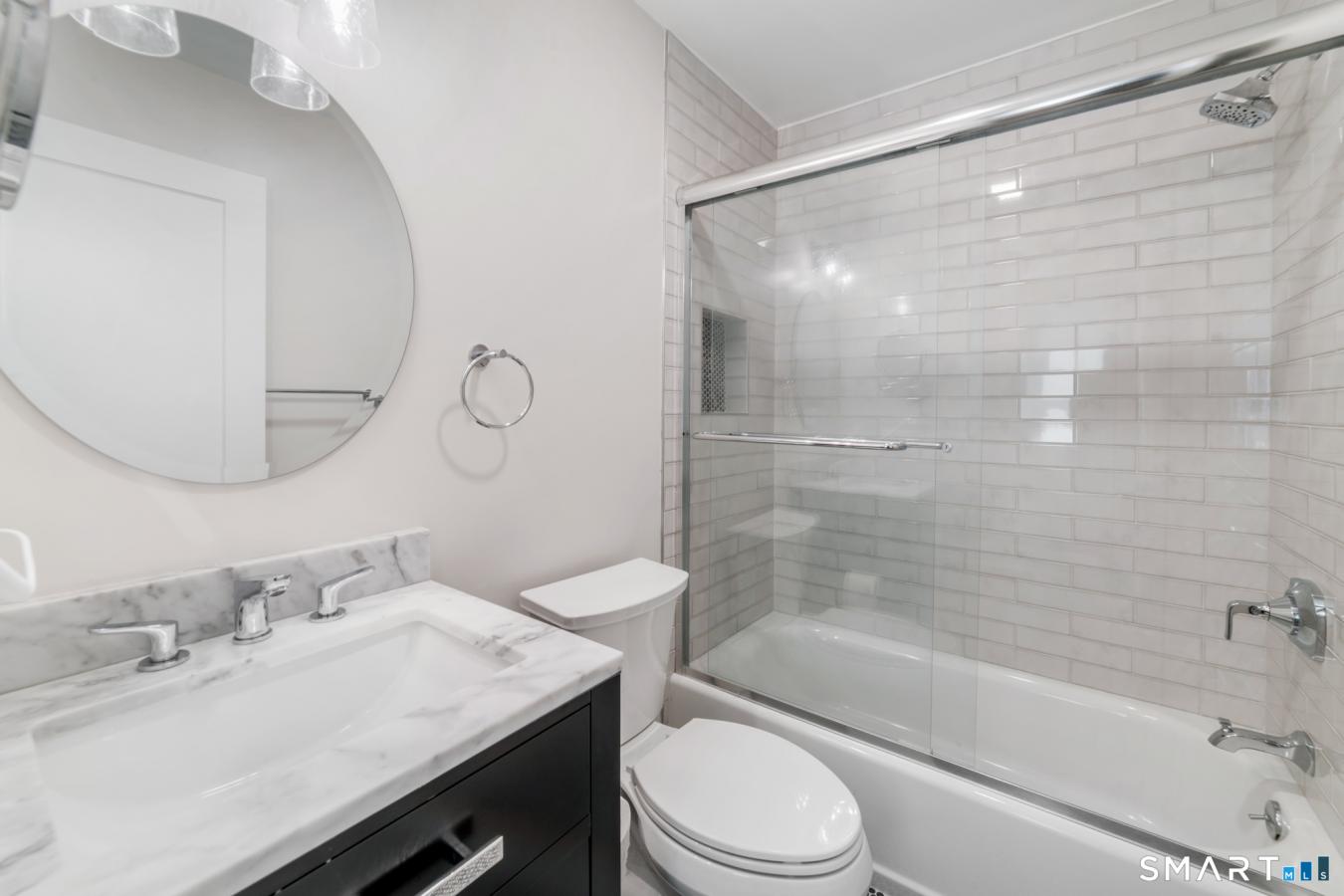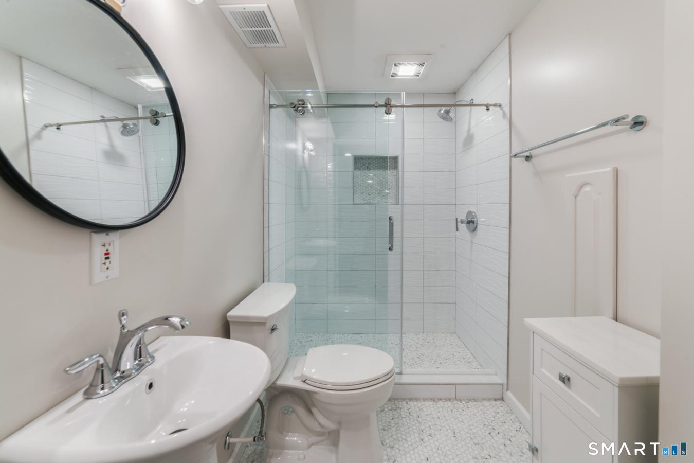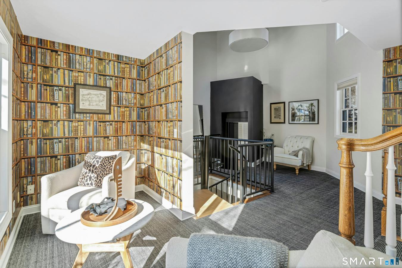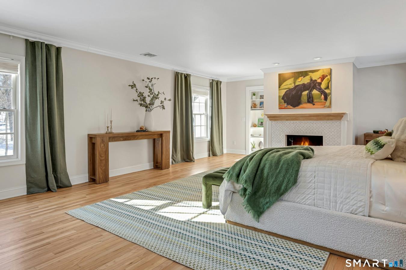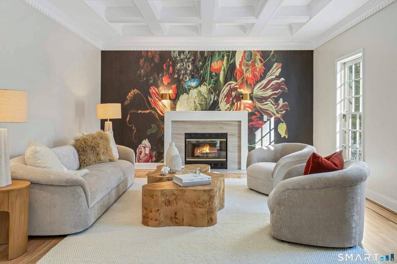 Completely and thoughtfully renovated, this exceptional New Canaan residence blends timeless architecture with refined modern luxury in a magical private setting overlooking the Noroton River and cascading waterfalls. Located on one of New Canaans most coveted Westside streets, the home enjoys a close-knit neighborhood known for friendly gatherings and neighborhood parties. The heart of the home is a chefs kitchen with Viking appliances, custom white oak island and pantry, and Mont Blanc quartz countertops. Designer finishes include newly renovated baths, a recycled glass and concrete bar top, imported European wallpaper murals, and Restoration Hardware lighting. Architectural details such as hidden bookcase doors, refinished wood floors, and a dramatic slide-and-stack door system create seamless indoor-outdoor living filled with natural light.The main residence offers soaring ceilings, four fireplaces, a sun-filled library, expansive primary suite, three additional bedrooms, office, and a finished lower level with recreation room and gym. In addition to the main residence, this unique home features a separate yet attached two-bedroom, two-bath flex wing perfect as an in-law, guest or au-pair suite with living, dining, and eat-in kitchen. Outdoors,enjoy a heated Gunite pool, professionally landscaped grounds, and tranquil river views. New roof, Generac generator, and updated mechanicals provide peace of mind. This serene retreat offers an exceptional New Canaan lifestyle