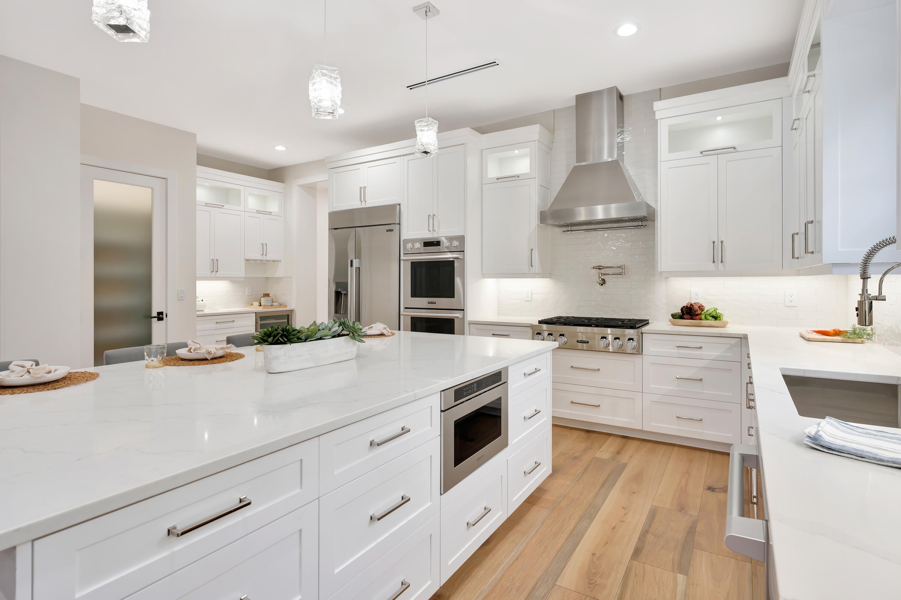 GRAND NEW! This beautiful estate has it all. Features an amazing entry with double impact front doors. Chefs kitchen with stainless appliances, gas grill top w/ designer hood vent, double wall ovens, large island with built-in microwave and lots of draws and cabinets. huge refrigerator freezer, Wine cooler with a bar area, Lg living room with backyard view, formal dining room.
