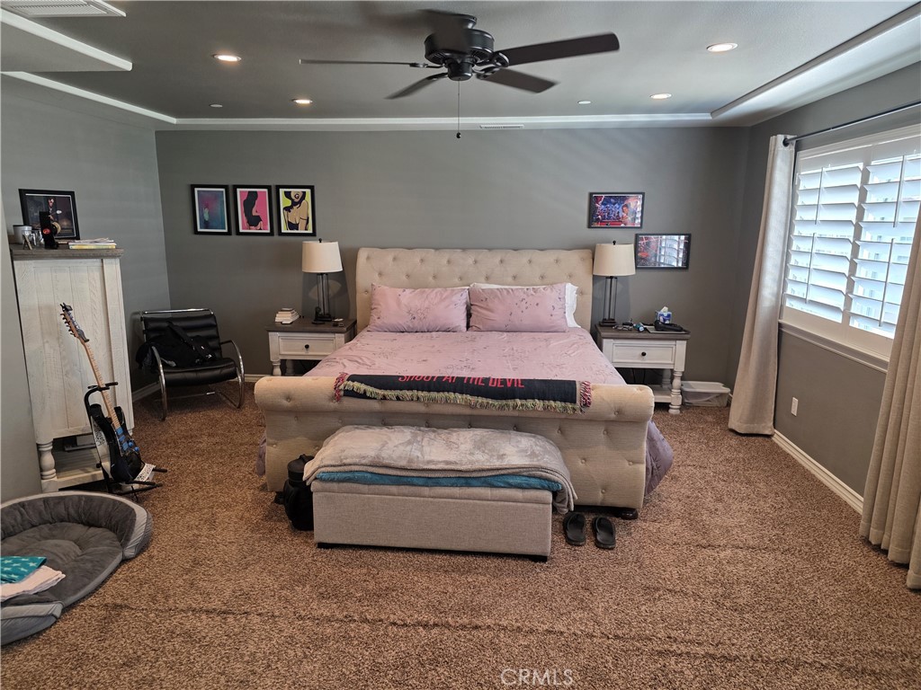 Nestled within the prestigious gated community of Shady Trails in North Fontana, this beautifully maintained 5-bedroom, 3-bathroom residence offers 4,121 square feet of refined living space designed for both comfort and entertaining. Situated on a quiet cul-de-sac with an impressive 90-foot-long driveway and a spacious 2-car garage with a new tankless water heater, the home delivers exceptional curb appeal and privacy. Inside, you'll find expansive living areas, generously sized bedrooms, and thoughtful upgrades throughout. The newly renovated kitchen serves as the heart of the home, featuring an impressive 8-burner stove, double oven, abundant cabinetry, and modern finishes—perfect for hosting gatherings or preparing gourmet meals. The downstairs bathroom has also been tastefully renovated, adding convenience and style for guests and multi-generational living. Upstairs, the spacious primary suite offers a private retreat complete with dual walk-in closet and updated shutters that enhance both elegance and energy efficiency. New shutters also accent the kitchen, complementing the home's bright and airy feel. Step outside to a landscaped backyard featuring mature citrus trees, a covered patio, and a dedicated BBQ area—ideal for outdoor dining and year-round entertaining. Additional highlights include three separate air conditioning units for optimal climate control and energy-saving solar panels. Residents of Shady Trails enjoy resort-style amenities including a community clubhouse, large swimming pool, jacuzzi, tennis and pickleball courts—creating an exceptional lifestyle opportunity in one of North Fontana's most sought-after neighborhoods.This remarkable property combines space, luxury, and community living—an ideal place to call home.