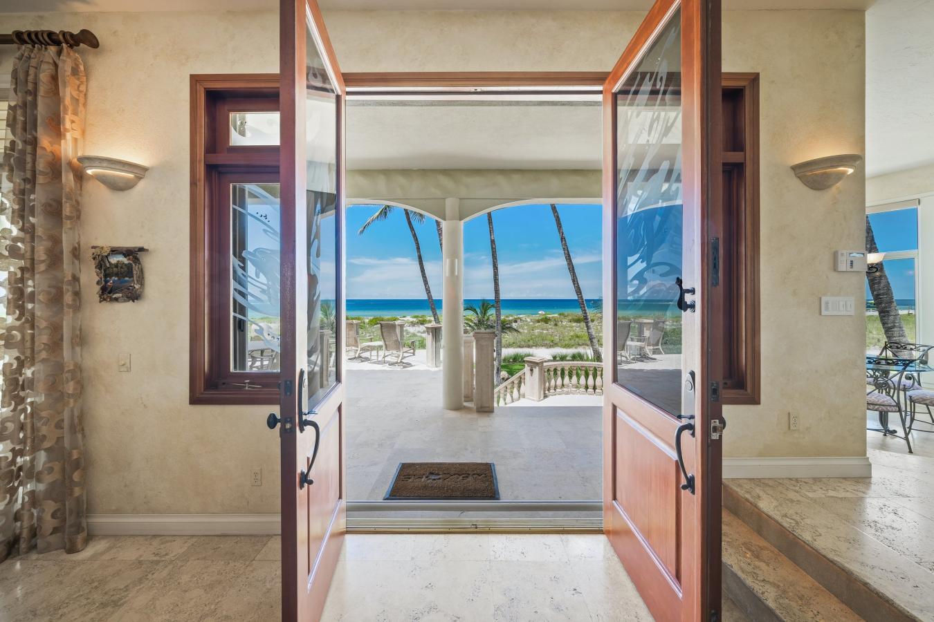 Exceptional Gulf access waterfront residence offering sweeping southern canal vistas and bay views, gorgeous by day or night to enjoys the lights of the Ritz. Beautifully renovated rare coastal find! From the moment you arrive, elegant mahogany double entry doors frame a stunning sightline to the shimmering water views beyond.