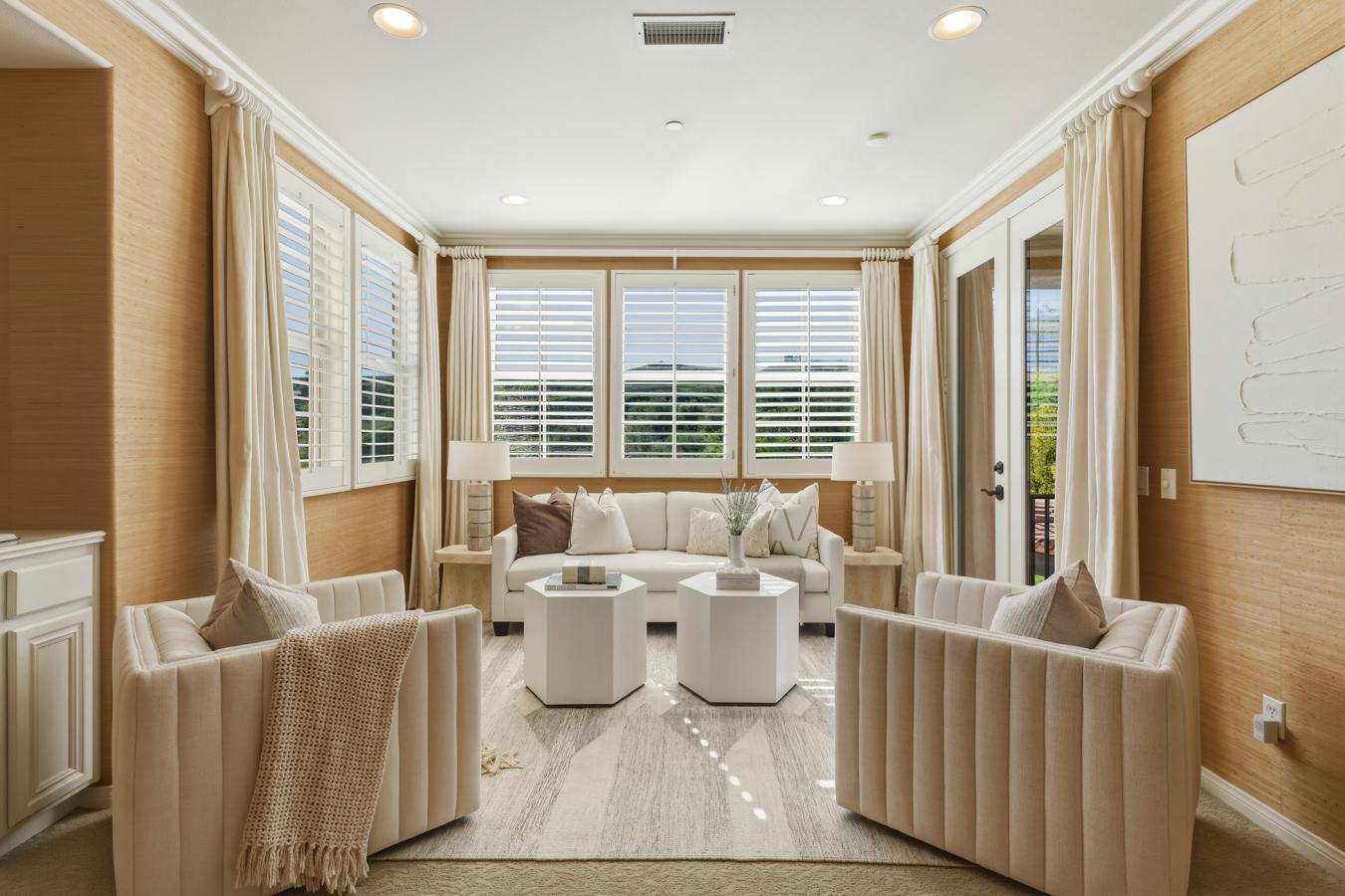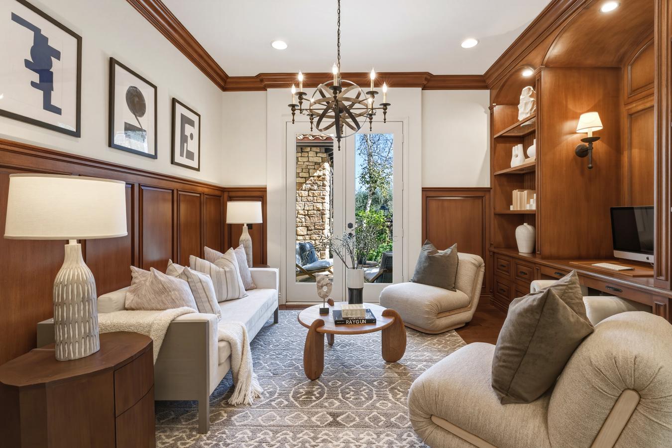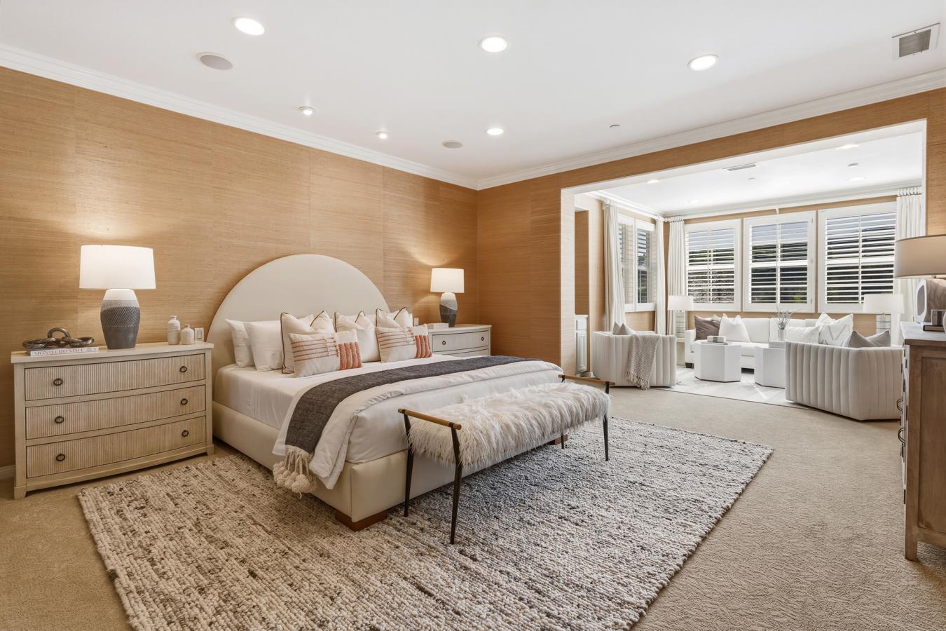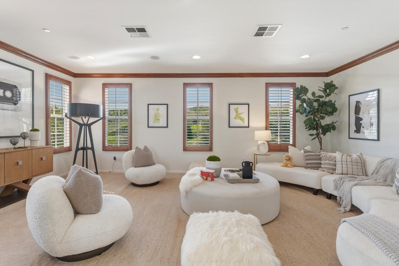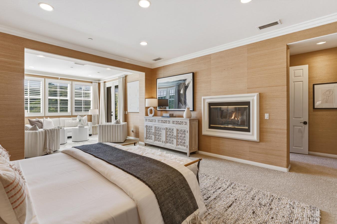 Located at the end of a quiet cul-de-sac within the prestigious guard-gated community of Mont Calabasas, this exceptional estate captures sweeping panoramic rolling hill views from nearly every vantage point. Set on an expansive 20,980 sq ft lot, the 4,994 sq ft residence blends refined design, thoughtful upgrades, and seamless indoor-outdoor living. A welcoming courtyard entry leads into a dramatic foyer highlighted by a grand spiral staircase, custom stone flooring, and architectural archways that lead into the formal dining room. The generous dining room features a fireplace and three sets of French doors showcasing the incredible view and is perfect for entertaining large groups. A cozy paneled den with outdoor access offers a respite to enjoy a glass of wine or catch up on work. The heart of the home is the open-concept eat-in kitchen and family room, designed to frame the breathtaking views. The chefs kitchen features a large center island, Viking appliances, a Sub-Zero glass door refrigerator/freezer, double ovens, and two dishwashers. The adjacent double-sized family room, enhanced with beamed ceilings, a fireplace, and built-ins, opens directly to the backyard, creating effortless flow for gatherings large and small. A large en-suite guest room that opens to the front patio as well as a powder room complete the first floor. Upstairs, the primary suite offers a private sanctuary with a fireplace, a large seating area, and a view balcony. The spa-like primary bath features separate vanities, a separate tub and shower, a spacious walk-in closet, and access to the large balcony overlooking the pool. Three additional en-suite bedrooms and a versatile bonus room provide flexibility for a media room, game room, or additional lounge space. The generous laundry room is also on the second floor. The outdoor setting is a true retreat. Completed in 2015, the resort-style backyard includes a sparkling pool and spa with a Jandy control system, an oversized infinity-edge hot tub, a gas fire pit, and a stunning 30-foot round covered sitting area with a fireplace, a tongue-and-groove ceiling, and overhead electric heaters. The fully equipped BBQ area with outdoor sink and remote hot water heater makes year-round entertaining both comfortable and convenient-all set against unobstructed, panoramic views. Extensive upgrades enhance comfort and efficiency, including a 5-zone indoor/outdoor surround sound system, smart WiFi-enabled controls for pool, irrigation, lighting, and water systems, overhead garage storage with built-in cabinets and workbench, epoxy garage floors, a modular emergency generator with a transfer switch, and a Ring alarm system. Located within the award-winning Las Virgenes Unified School District and just minutes from hiking trails, parks, and the shopping and dining of The Commons at Calabasas, with convenient access to Malibu and the beaches, this Mont Calabasas residence offers privacy, sophistication, and extraordinary views in one of the areas most sought-after communities.