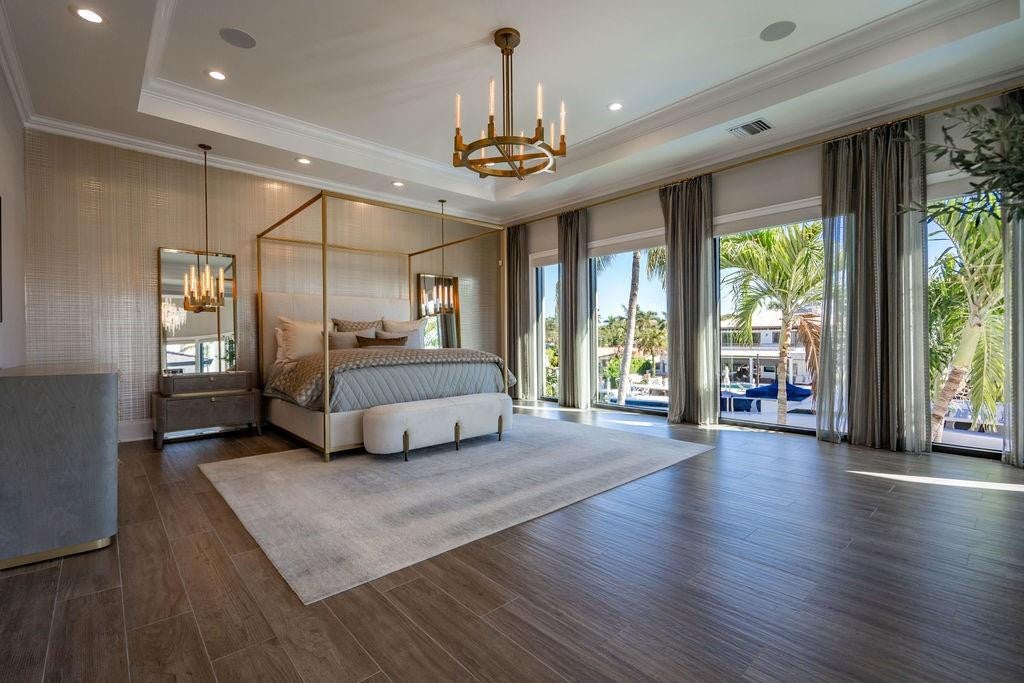 The ULTIMATE YACHT HOME BASE in Lighthouse Point! Completely redesigned and remodeled in recent years, this stunning waterfront estate offers dockage for up to a 145â yacht plus an additional 135â with three boat lifts for tenders and toys, all less than a 5-minute cruise to open ocean. The home features 5 bedrooms plus office and theater, 6 full baths and 1 half bath. A spectacular new kitchen with island and state-of-the-art appliances opens to the family room and breakfast area. VIP suite on the first floor, expansive primary suite upstairs with sitting area, and three additional ensuite bedrooms. Incredible outdoor living includes a huge covered patio with summer kitchen, fireplace, cabana bath, resort-style pool with water features, multiple seating areas, fountains, and fire pit.