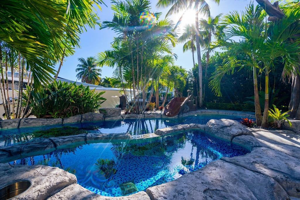 The ULTIMATE YACHT HOME BASE in Lighthouse Point! Completely redesigned and remodeled in recent years, this stunning waterfront estate offers dockage for up to a 145 yacht plus an additional 135 with three boat lifts for tenders and toys, all less than a 5-minute cruise to open ocean. The home features 5 bedrooms plus office and theater, 6 full baths and 1 half bath. A spectacular new kitchen with island and state-of-the-art appliances opens to the family room and breakfast area. VIP suite on the first floor, expansive primary suite upstairs with sitting area, and three additional ensuite bedrooms. Incredible outdoor living includes a huge covered patio with summer kitchen, fireplace, cabana bath, resort-style pool with water features, multiple seating areas, fountains, and fire pit.