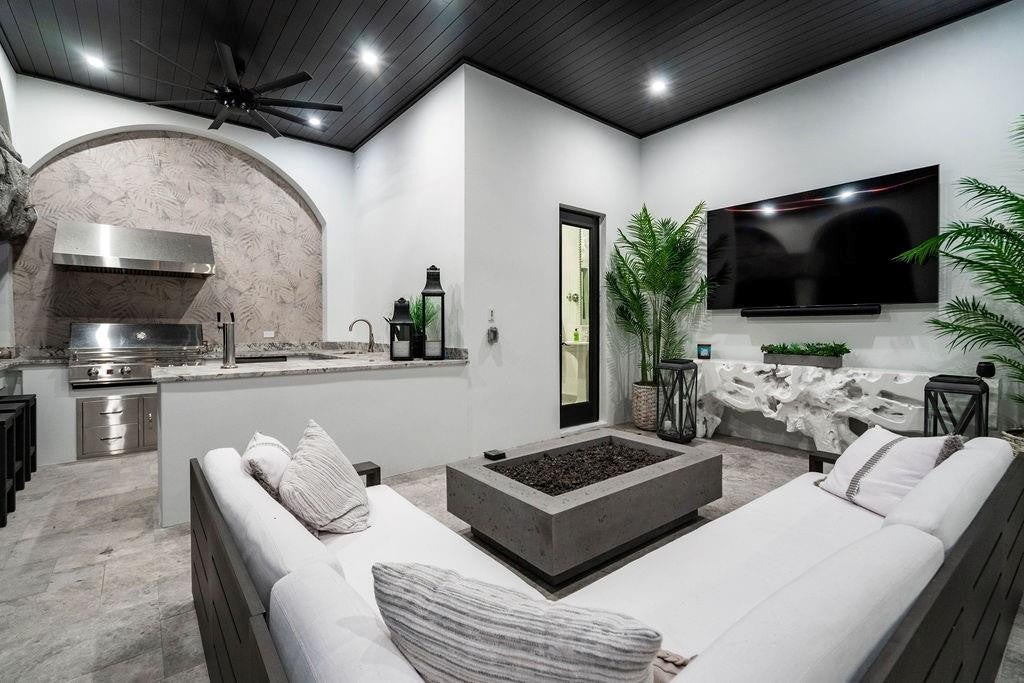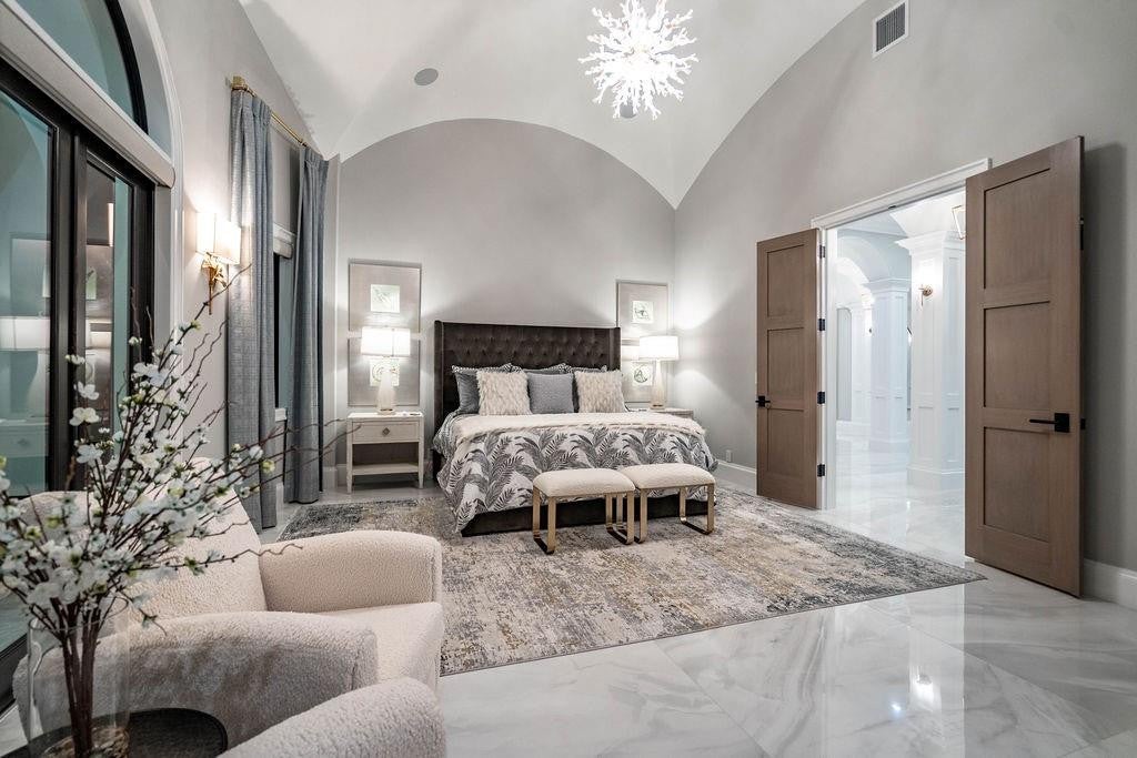 Welcome to Elysium, Scottsdales most groundbreaking estate, redefining luxury living with features never before offered under 20M. Spanning 8, 587 sq ft throughout the main house & guest house, Elysium offers 7 bedrooms (9 including the smart-glass cube and cinema) and 8 baths, crafted for those who prize privacy, precision, and presence. The guest house is a private retreat of its own, with 2 bedrooms, 2 bathrooms, a full kitchen, laundry room, and an RV garage perfect for extended family or long-term guests. Outdoors, a 2, 855 sq ft custom black diamond-finish pool sets the stage with an underwater backlit onyx firepit, infinity-edge spa, and Baja shelf. Host at scale with a one-of-a-kind outdoor restaurant serving 20 via swim-up dining, then screen under the stars in the outdoor theater for 100 guests. Inside, walls dissolve at the touch of a button: 2, 100 sq ft of electronic smart glass across 55 sliding panels the largest residential installation in the Valley shifts from open transparency to instant privacy. Culinary credentials include three professional kitchens, headlined by the Gaggenau Vario 400 main kitchen. Materials and millwork are uncompromising: bedrooms carved in stone and wood, pivot doors throughout, custom closets, refined fixtures, and a statement Brazilian Cristallo quartzite fireplace in the main living room that changes color. The entire estate is a Savant automated smart home, with lighting, AV, smart glass, and climate all automated and controlled seamlessly. For the collector and competitor: two private car galleries and an air-conditioned showroom with vertical parking for up to 14 cars (with all lifts installed) deliver museum-quality presentation, while a luxury glass-enclosed sports court elevates daily play. A Dolby ATMOS 4K cinema anchors the entertainment wing. Security here is architecture: compound-grade systems with 32 casino-grade AI cameras, automation with invisible laser trip wires across the exterior detecting fence jumps, gate openings, or driveway approach, motion sensors in every room and 1" thick laminated security triple sheet double pane glass throughout. The entry deploys a 2 inch steel-and-glass pivot door with 13 deadbolts. At the core, a military-grade nuclear/biological/chemical safe room engineered to U.S. Army Corps of Engineers protocols features 8" reinforced concrete, a 50, 000-psi-rated bunker door, and a pressurized air system. (The space is pre-designed to be configured as a discreet server/cold-storage command center if desired.) The grounds complete the sanctuary: 250 specimen plants and 20 exotic mature palms form a security garden that screens the estate in lush privacy. Elysium is not simply a HomeKits a private world. For the buyer who values absolute security, rare craftsmanship, and the ability to entertain at any scale, nothing else in Arizona compares. Luxury home staging and furnishings by Vesta Home. All furniture available for purchase with the property.