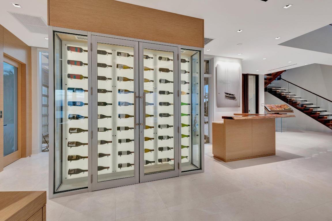 OneSixteen embodies the details of the finest finishes offering exceptional indoor/outdoor living and entertaining, plus much more. This state-of-the-art modern home located behind double security gates and further protected by impenetrable glass entry around the entire home. It is most likely what you dont see that provides the necessary comforts you should mandate in your next home. Off-grid uninterrupted living is the new platinum standard with quadruple power redundancy paths that ensure your standard of living remains consistent no matter what mother nature throws your way. Innovation is abundant in the compete home automation of almost every function using the integrated glass keypads or your phone app. The epicenter of sports and entertainment, the ESPN Room displays a 97 and two 77 TVs, theater style seating, acoustical ceiling & impressive sound. Fitness made easy in the tailored open-air gym, complete with custom ballet bar and mirrored wall to keep perfect form. Architecturally nestled under the floating staircase is your Glass Wine Cellar featuring a panoramic, yet prominently lighted display of 306 temperature-controlled reds, whites and bubbles. The On trend kitchen is truly a work of art with Wolf and Subzero appliances embedded into a custom designed cabinet system that is state of the art, plus natural stone from Italy enhances the fine finishes of the island, perimeter and back splash. Not to be missed are the Floating Wooden Tread Lighted Staircase with Glass Handrail, a private and ever so quiet Elevator, and Canadian engineered and flush mount solid core doors with German engineered invisible hinges. The porcelain driveway offers a seamless transition to the garage finished floor. This Trophy Garage awaits your collectibles with room for 3 on the floor while an extended car lift offers storage for a 4th vehicle. Designed with a superb sound system, a large screen TV, super comfortable chairs on an inlayed wood floor system for hanging with friends & enjoy that special pour from the bourbon bar. Outdoor features include a stunning, modern architectural water wall feature rising out of a tropical planter, summer kitchen, outdoor dining & Ping Pong Table, firepit with 4 chairs in the round, pool with sun shelf, outdoor speakers & artificial turf for easy entertaining. Anchor your Yacht in your back yard in the 60 slip which is just steps away. Access to the intracoastal is literally minutes away for year-round sun and fun. This is the perfect home to entertain the friends in the bourbon room, hold that special fund raiser for 200 plus guests, or step out your back gate and onto your yacht or make special memories during intimate family events, and most importantly to live life every day in a well-built, safe and secure home.