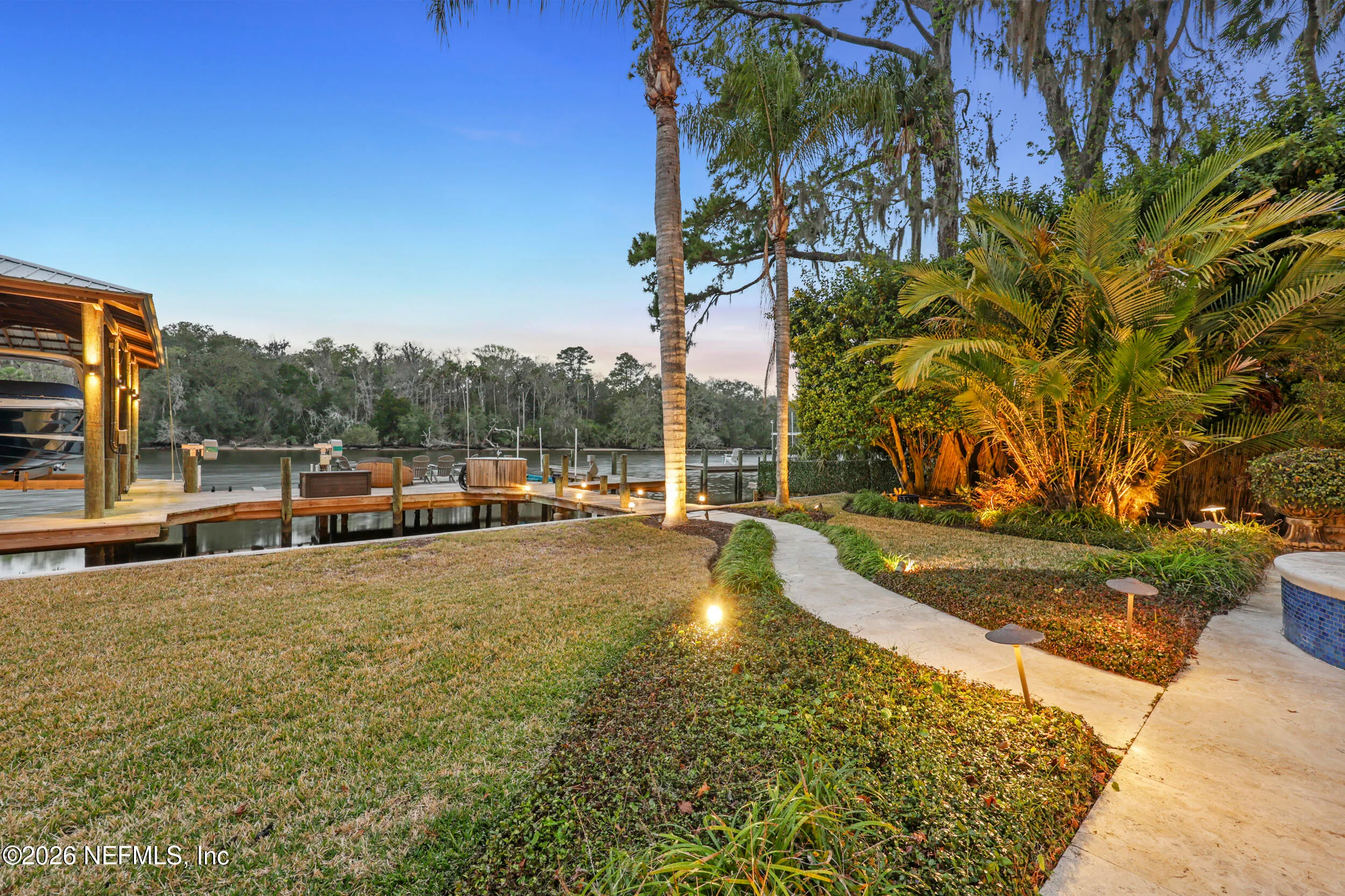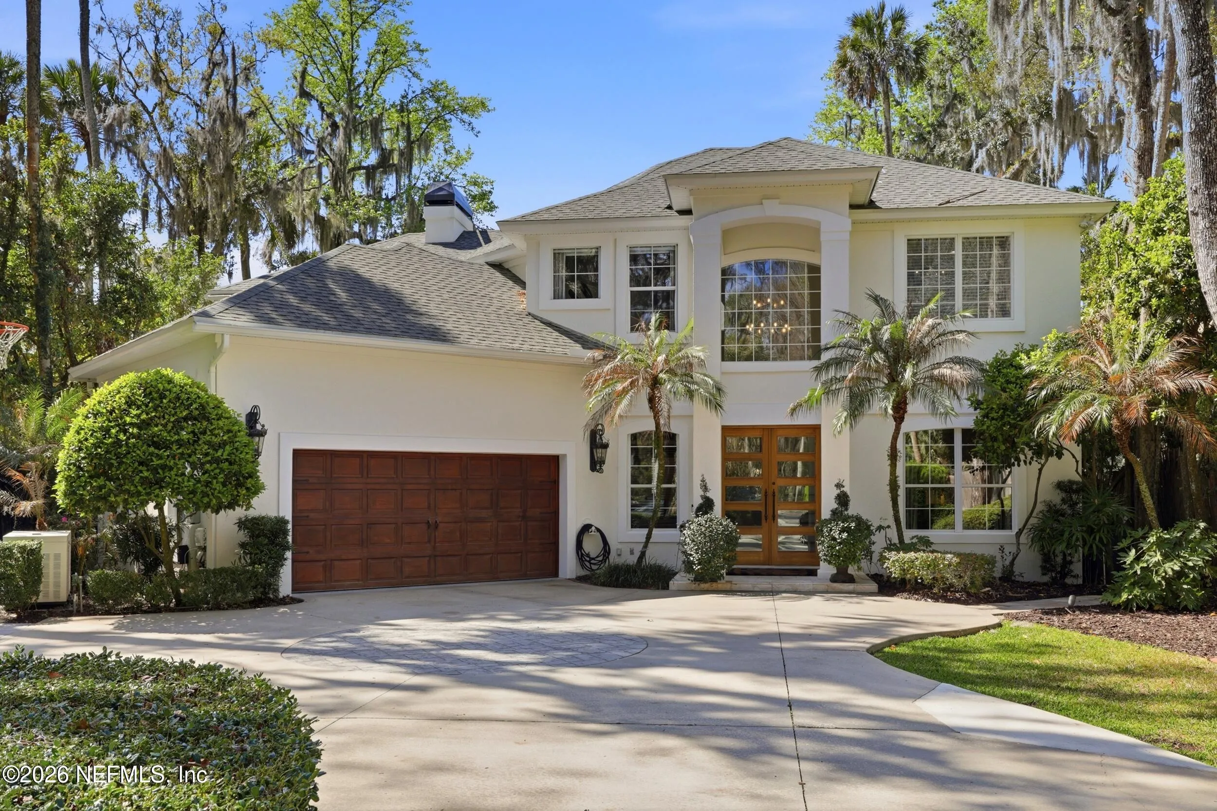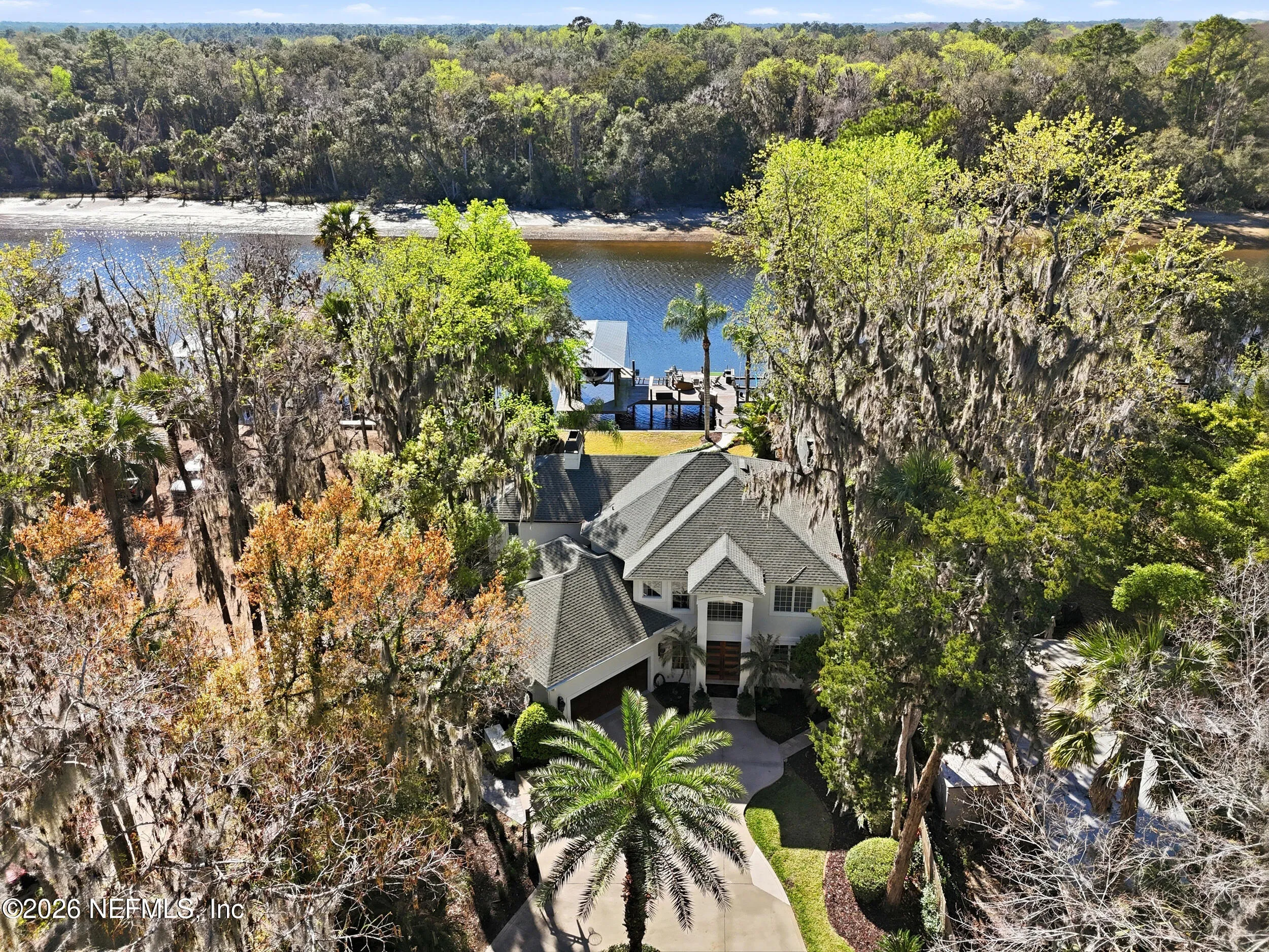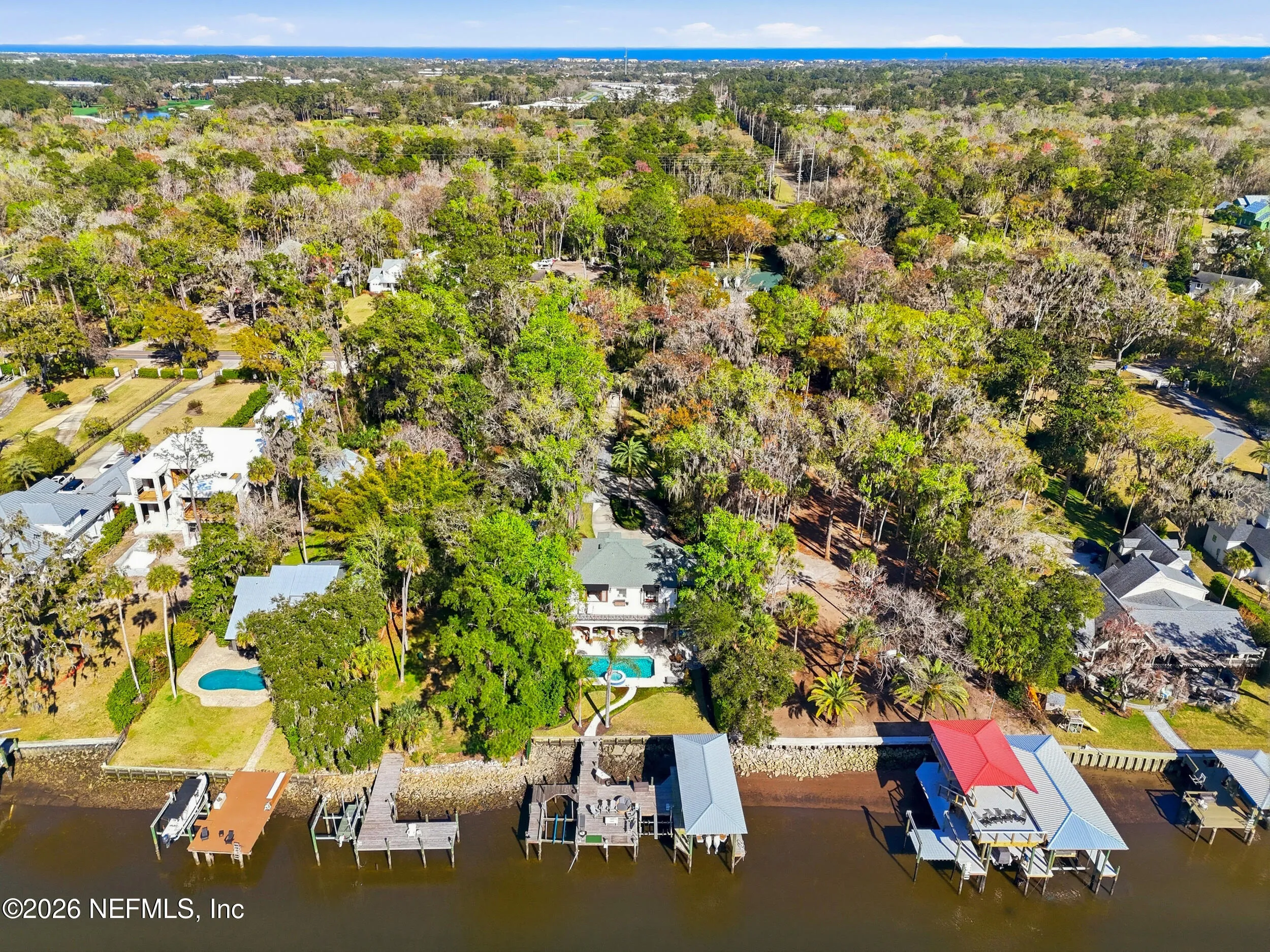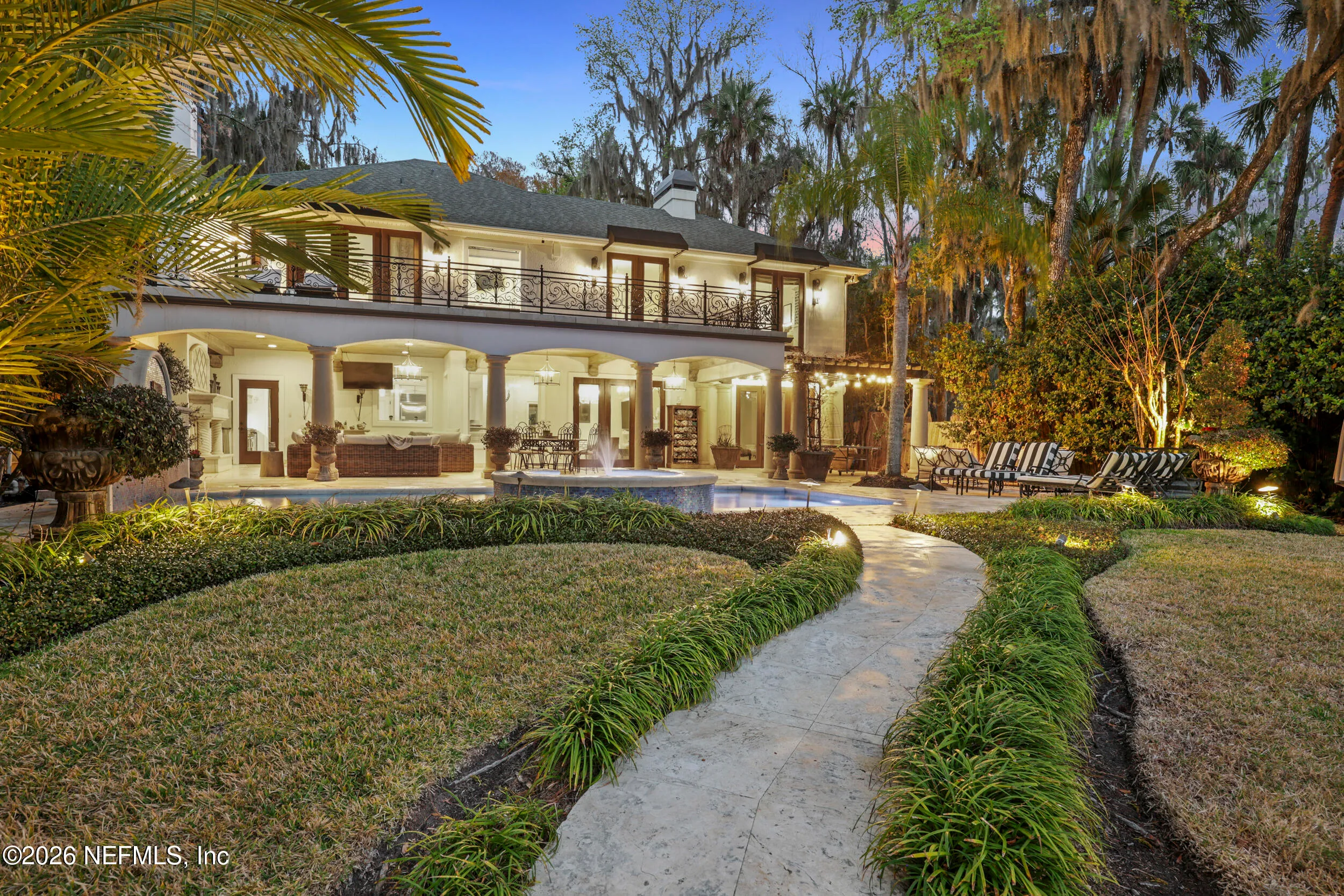 Welcome to your own private waterfront resort -- where the Intracoastal Waterway becomes your backyard and every day feels like a permanent vacation. This extraordinary five-bedroom, six-bathroom residence delivers resort-caliber living along the Intracoastal Waterway in one of Northeast Floridas most coveted coastal communities. Solid concrete construction on the first floor anchors this home with strength and permanence, delivering peace of mind alongside timeless elegance, with travertine and wood floors flowing throughout, while solid mahogany double front entry doors set a tone of elegance and grandeur from the very first step. The culinary kitchen is a chefs paradise, outfitted with a Viking gas range, SubZero refrigerator, Fischer Paykel dishwasher, Jenn Air refrigerator and freezer drawers, quartzite counters, and decorative cabinetry. A wine cellar flanked with imported brick from 17th century Polish church ruins stands ready for your finest vintages. The primary suite features a fireplace, custom walk-in closets, and a private balcony overlooking the waterway. Soak in the tub while savoring panoramic Intracoastal views through an expansive window -- because you deserve that kind of morning. Step outside to nearly a thousand square feet of covered lanai, a summer kitchen with fireplace and grill, and a massive swimming pool with hot tub. Extensive landscape lighting transforms evenings into something magical. For boating enthusiasts, this property is a dream -- situated equal distance between inlets at Mayport and St. Augustine. The private dock features three lifts accommodating vessels up to thirty-five feet, two jet skis, a 21 boat and a convenient wash station. A whole house generator and electric vehicle charger add modern functionality, while a long, gated driveway ensures privacy abounds. This is Northeast Florida waterfront living at its absolute finest.
