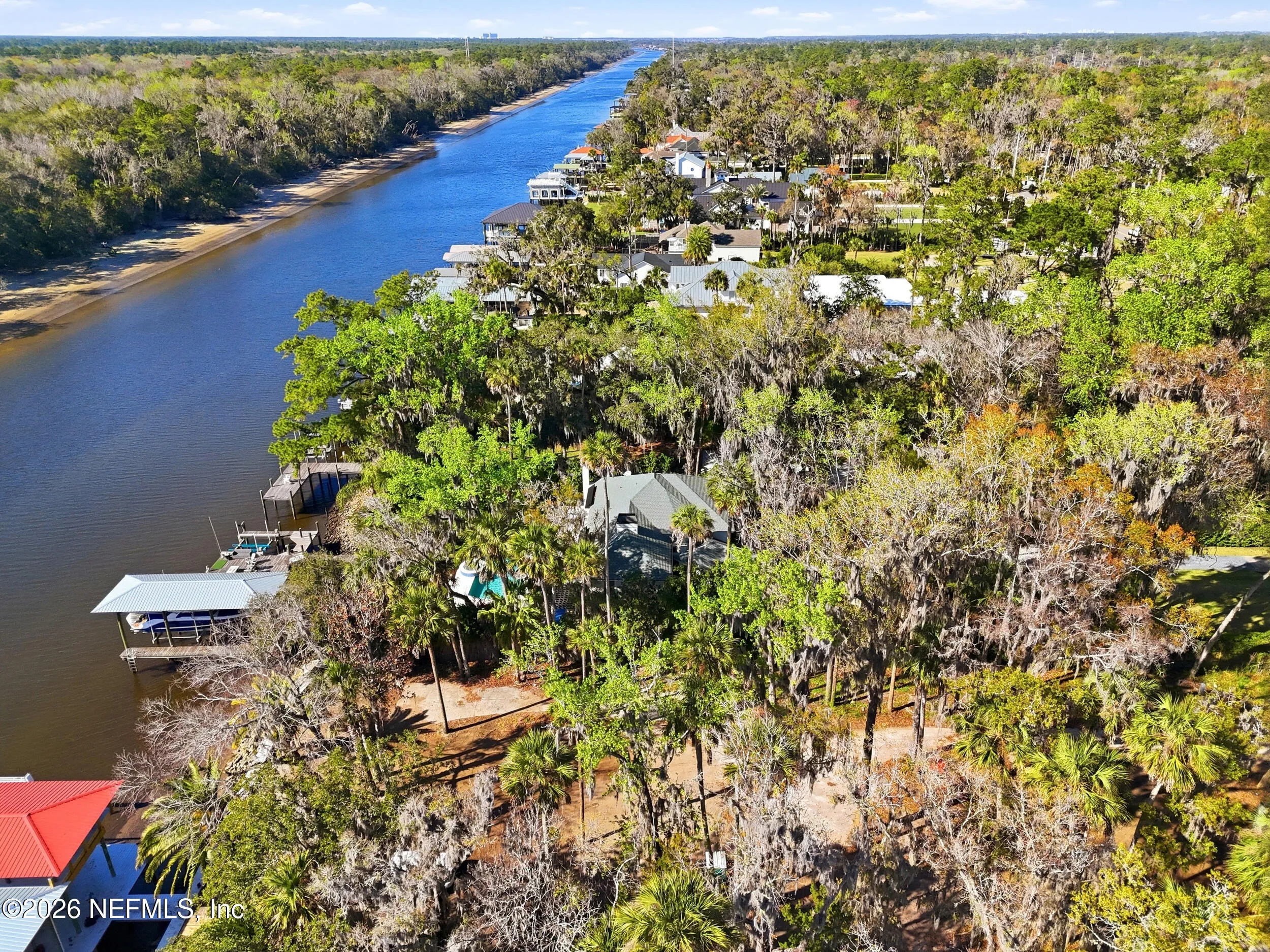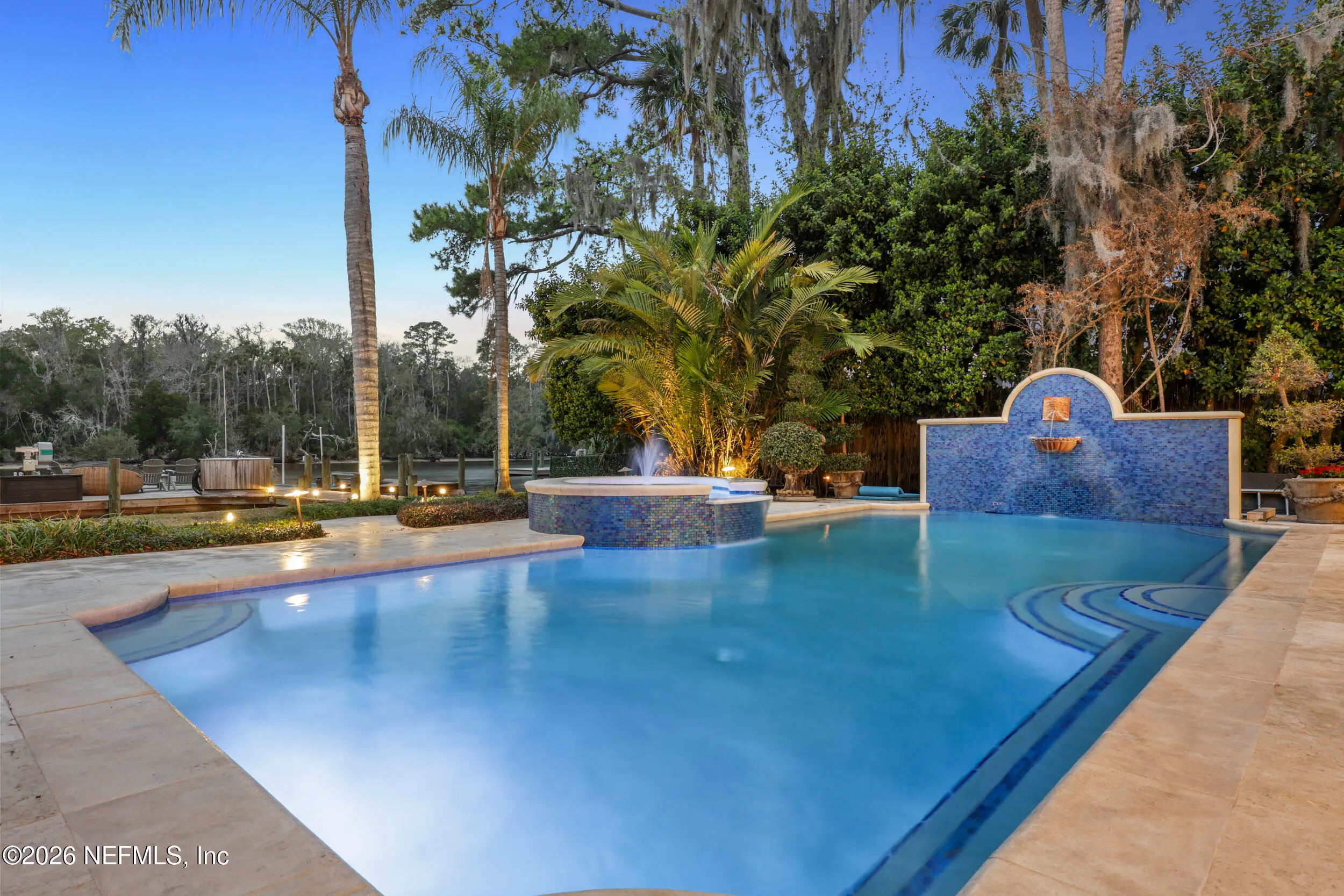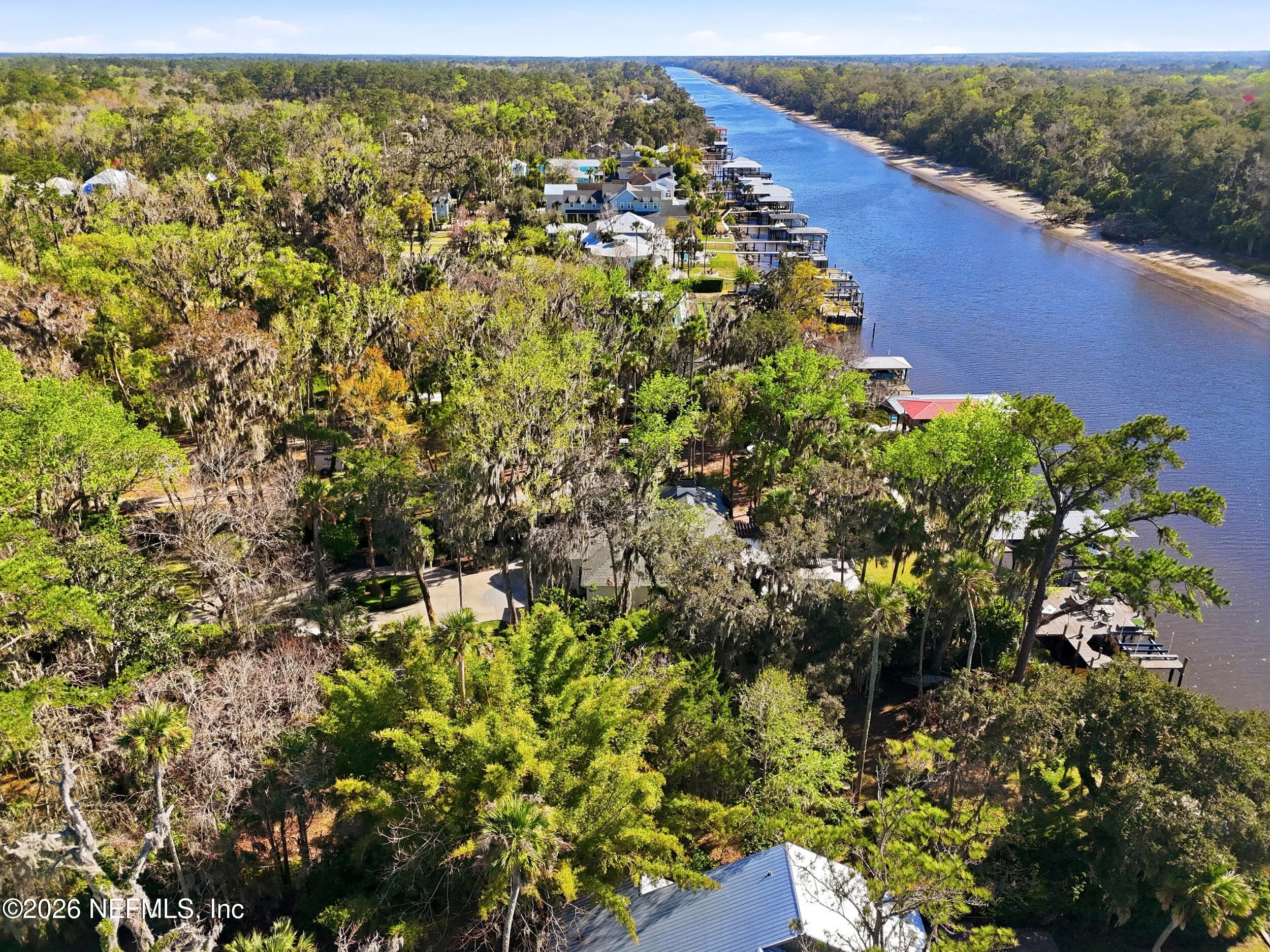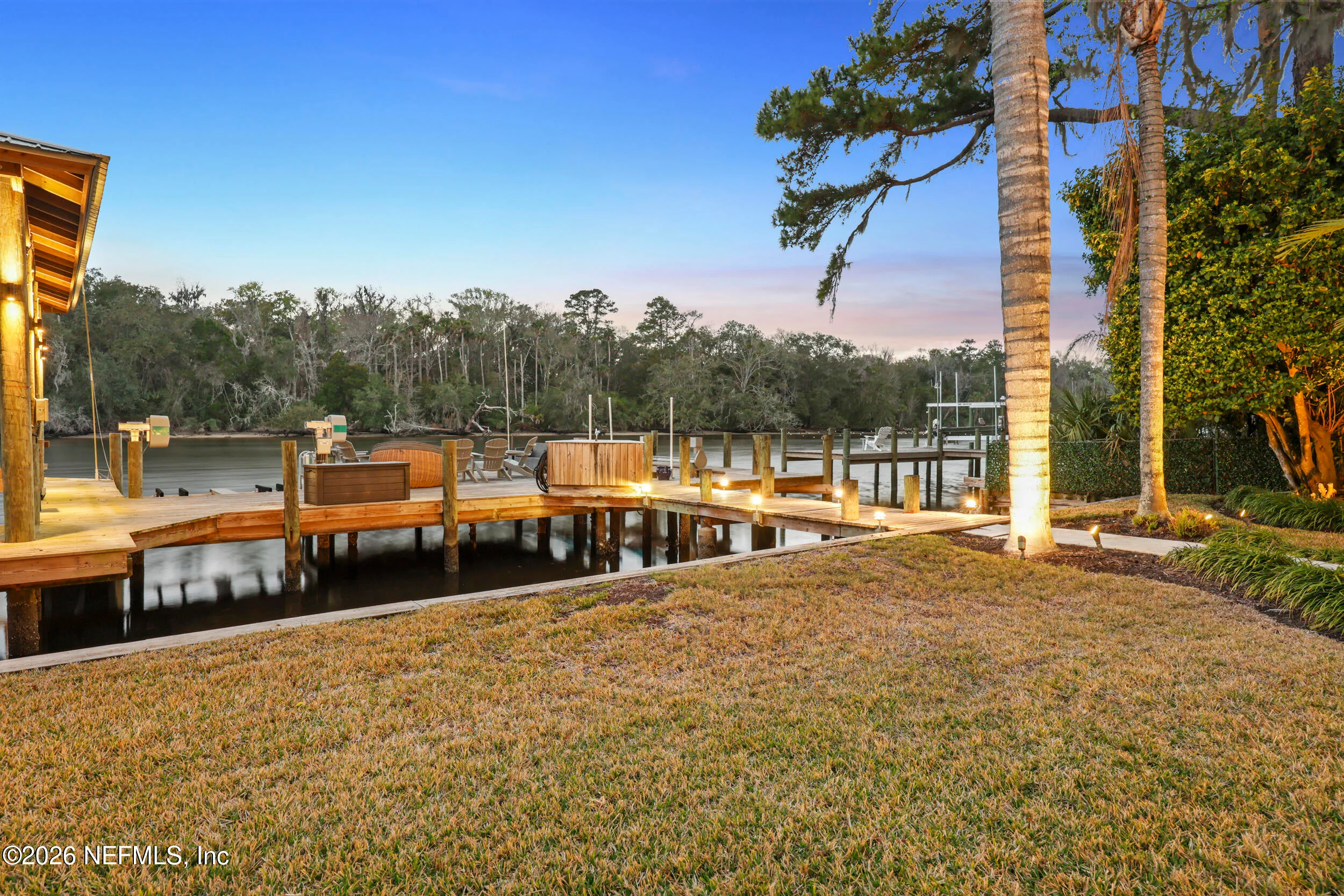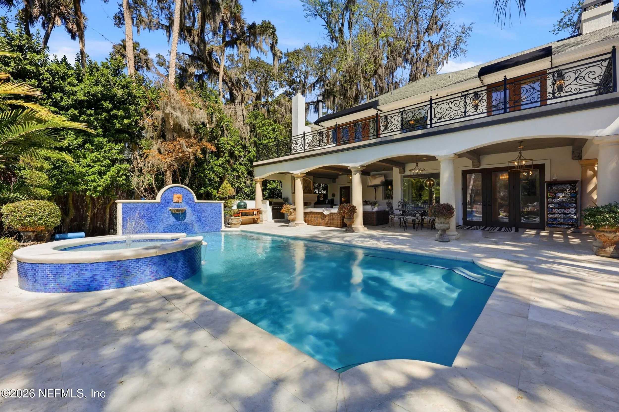 Welcome to your own private waterfront resort -- where the Intracoastal Waterway becomes your backyard and every day feels like a permanent vacation. This extraordinary five-bedroom, six-bathroom residence delivers resort-caliber living along the Intracoastal Waterway in one of Northeast Floridas most coveted coastal communities. Solid concrete construction on the first floor anchors this home with strength and permanence, delivering peace of mind alongside timeless elegance, with travertine and wood floors flowing throughout, while solid mahogany double front entry doors set a tone of elegance and grandeur from the very first step. The culinary kitchen is a chefs paradise, outfitted with a Viking gas range, SubZero refrigerator, Fischer Paykel dishwasher, Jenn Air refrigerator and freezer drawers, quartzite counters, and decorative cabinetry. A wine cellar flanked with imported brick from 17th century Polish church ruins stands ready for your finest vintages. The primary suite features a fireplace, custom walk-in closets, and a private balcony overlooking the waterway. Soak in the tub while savoring panoramic Intracoastal views through an expansive window -- because you deserve that kind of morning. Step outside to nearly a thousand square feet of covered lanai, a summer kitchen with fireplace and grill, and a massive swimming pool with hot tub. Extensive landscape lighting transforms evenings into something magical. For boating enthusiasts, this property is a dream -- situated equal distance between inlets at Mayport and St. Augustine. The private dock features three lifts accommodating vessels up to thirty-five feet, two jet skis, a 21 boat and a convenient wash station. A whole house generator and electric vehicle charger add modern functionality, while a long, gated driveway ensures privacy abounds. This is Northeast Florida waterfront living at its absolute finest.