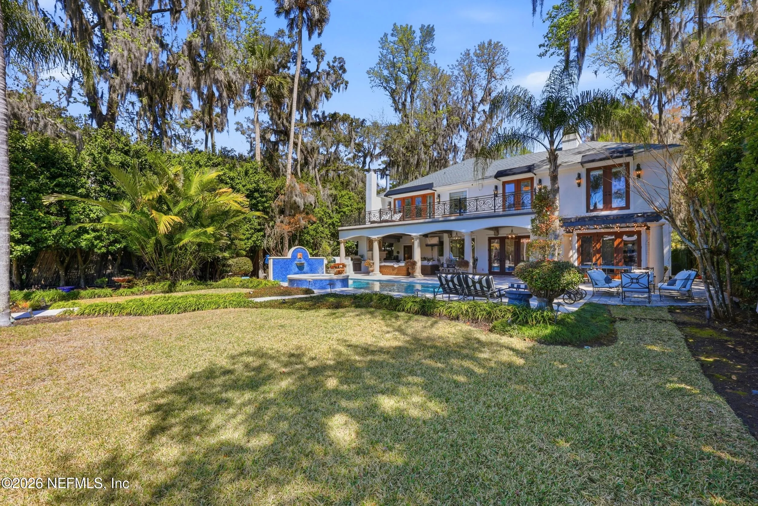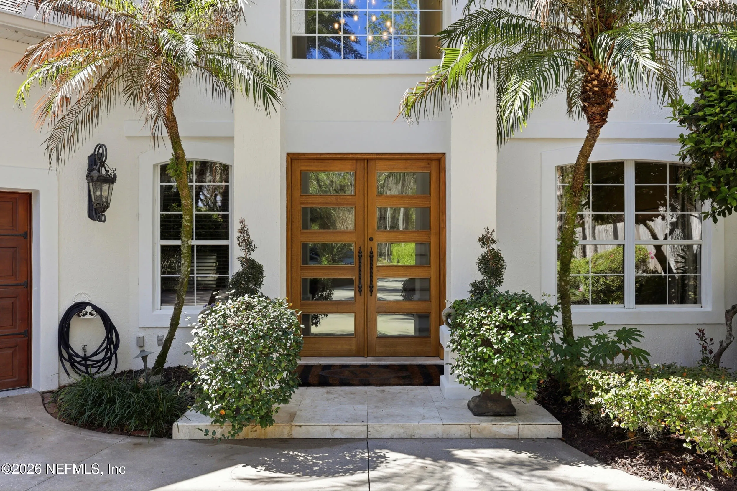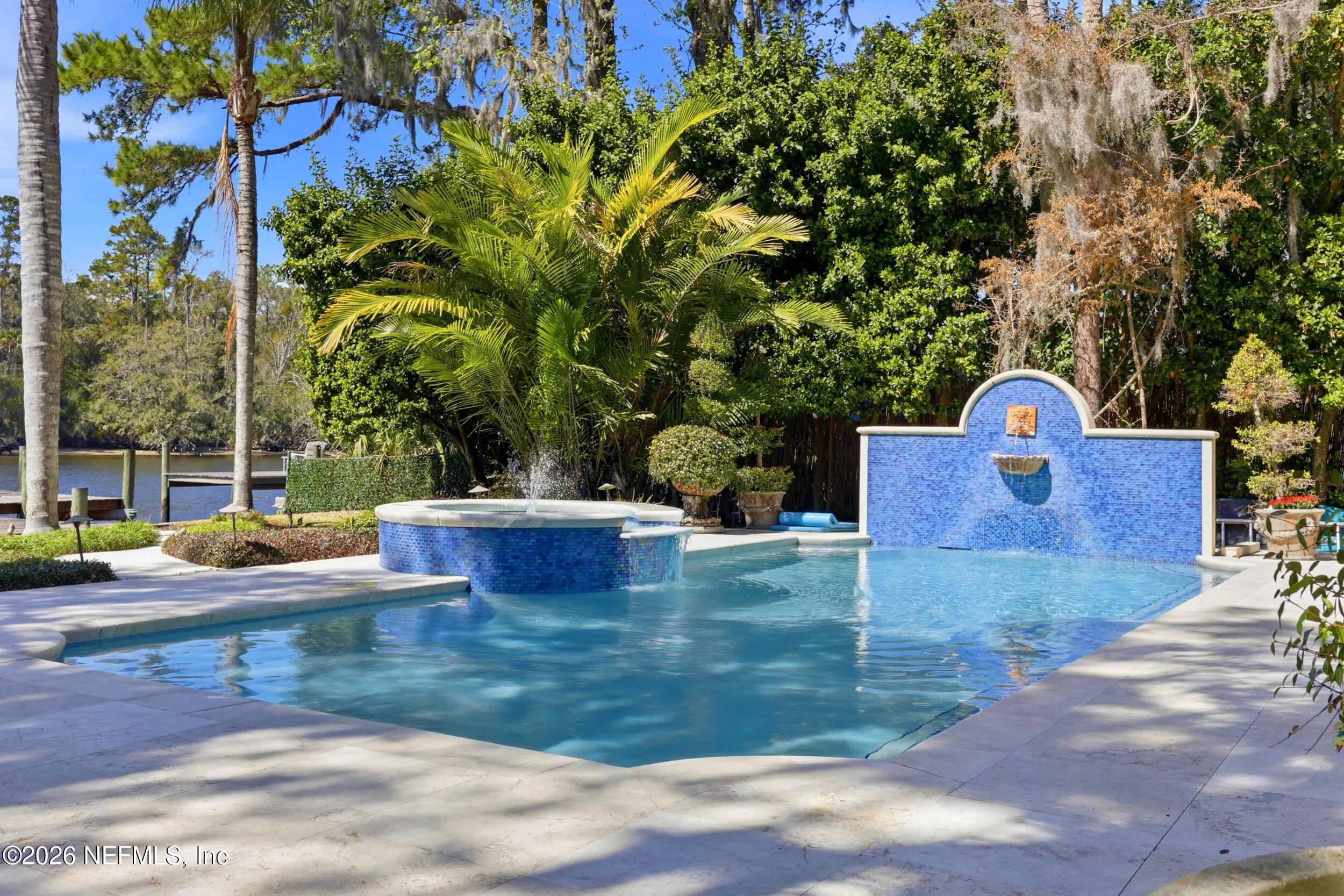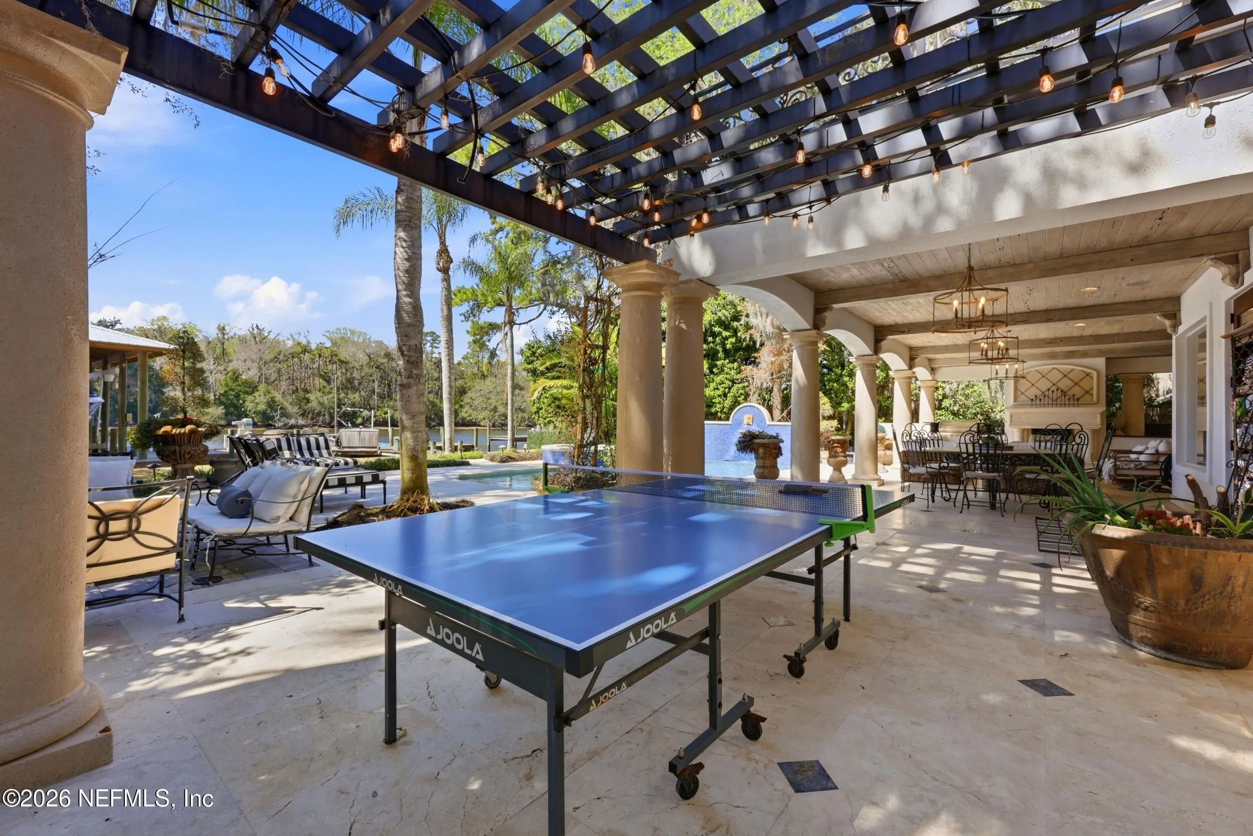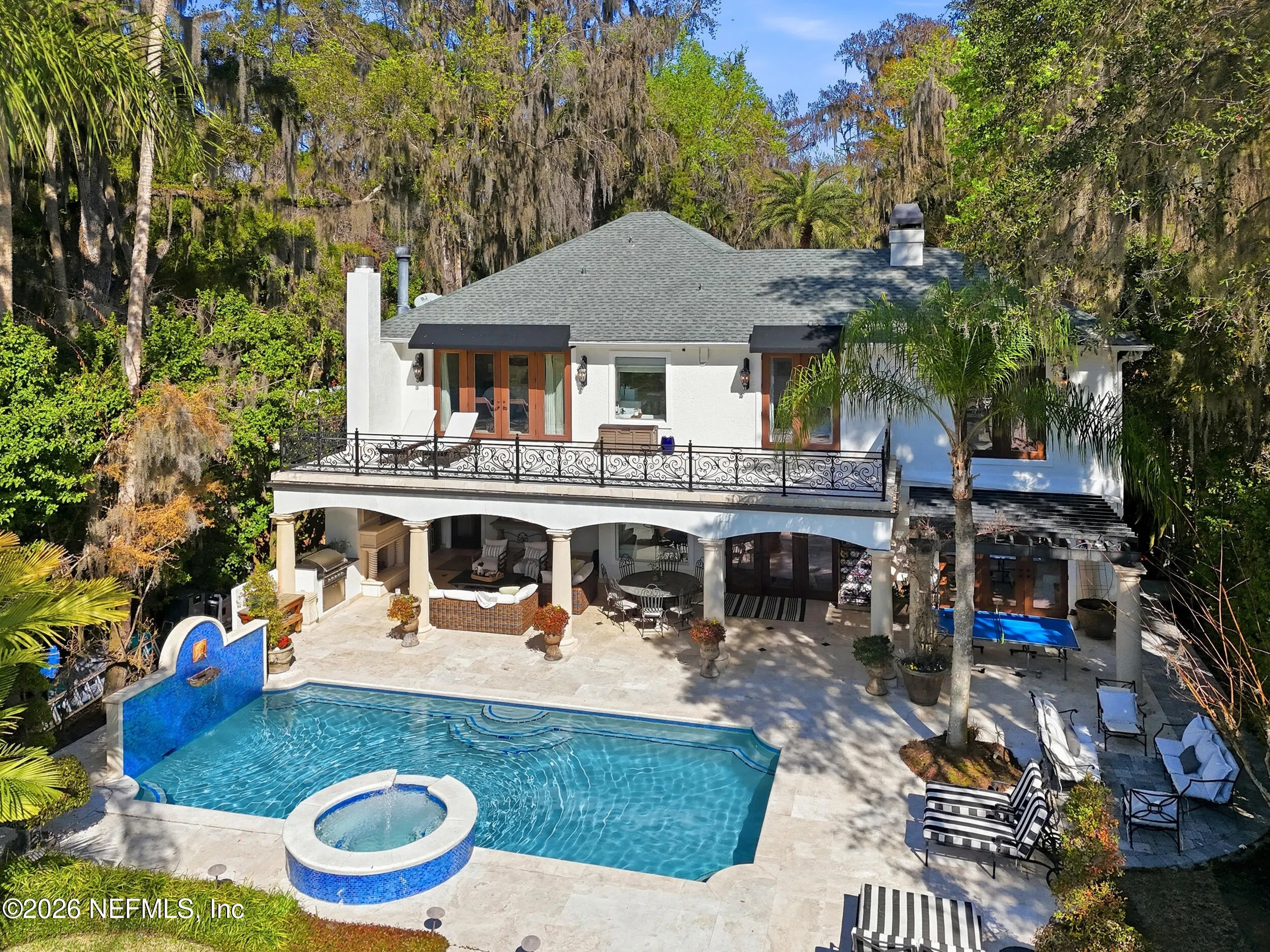 Welcome to your own private waterfront resort -- where the Intracoastal Waterway becomes your backyard and every day feels like a permanent vacation. This extraordinary five-bedroom, six-bathroom residence delivers resort-caliber living along the Intracoastal Waterway in one of Northeast Floridas most coveted coastal communities. Solid concrete construction on the first floor anchors this home with strength and permanence, delivering peace of mind alongside timeless elegance, with travertine and wood floors flowing throughout, while solid mahogany double front entry doors set a tone of elegance and grandeur from the very first step. The culinary kitchen is a chefs paradise, outfitted with a Viking gas range, SubZero refrigerator, Fischer Paykel dishwasher, Jenn Air refrigerator and freezer drawers, quartzite counters, and decorative cabinetry. A wine cellar flanked with imported brick from 17th century Polish church ruins stands ready for your finest vintages. The primary suite features a fireplace, custom walk-in closets, and a private balcony overlooking the waterway. Soak in the tub while savoring panoramic Intracoastal views through an expansive window -- because you deserve that kind of morning. Step outside to nearly a thousand square feet of covered lanai, a summer kitchen with fireplace and grill, and a massive swimming pool with hot tub. Extensive landscape lighting transforms evenings into something magical. For boating enthusiasts, this property is a dream -- situated equal distance between inlets at Mayport and St. Augustine. The private dock features three lifts accommodating vessels up to thirty-five feet, two jet skis, a 21 boat and a convenient wash station. A whole house generator and electric vehicle charger add modern functionality, while a long, gated driveway ensures privacy abounds. This is Northeast Florida waterfront living at its absolute finest.