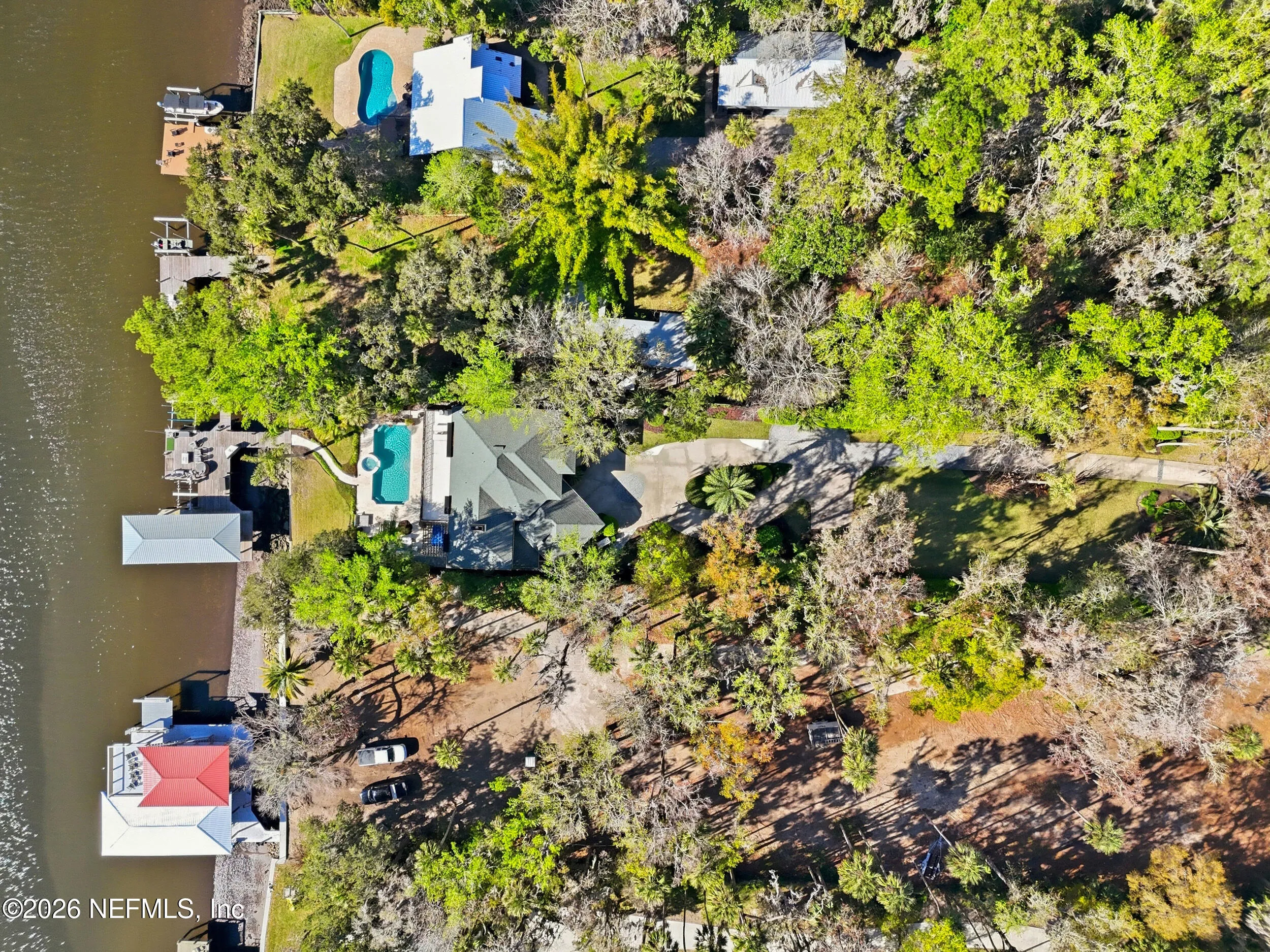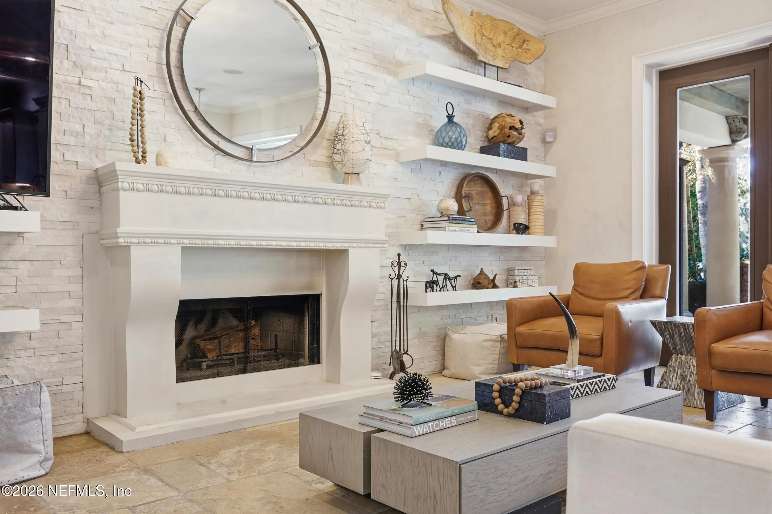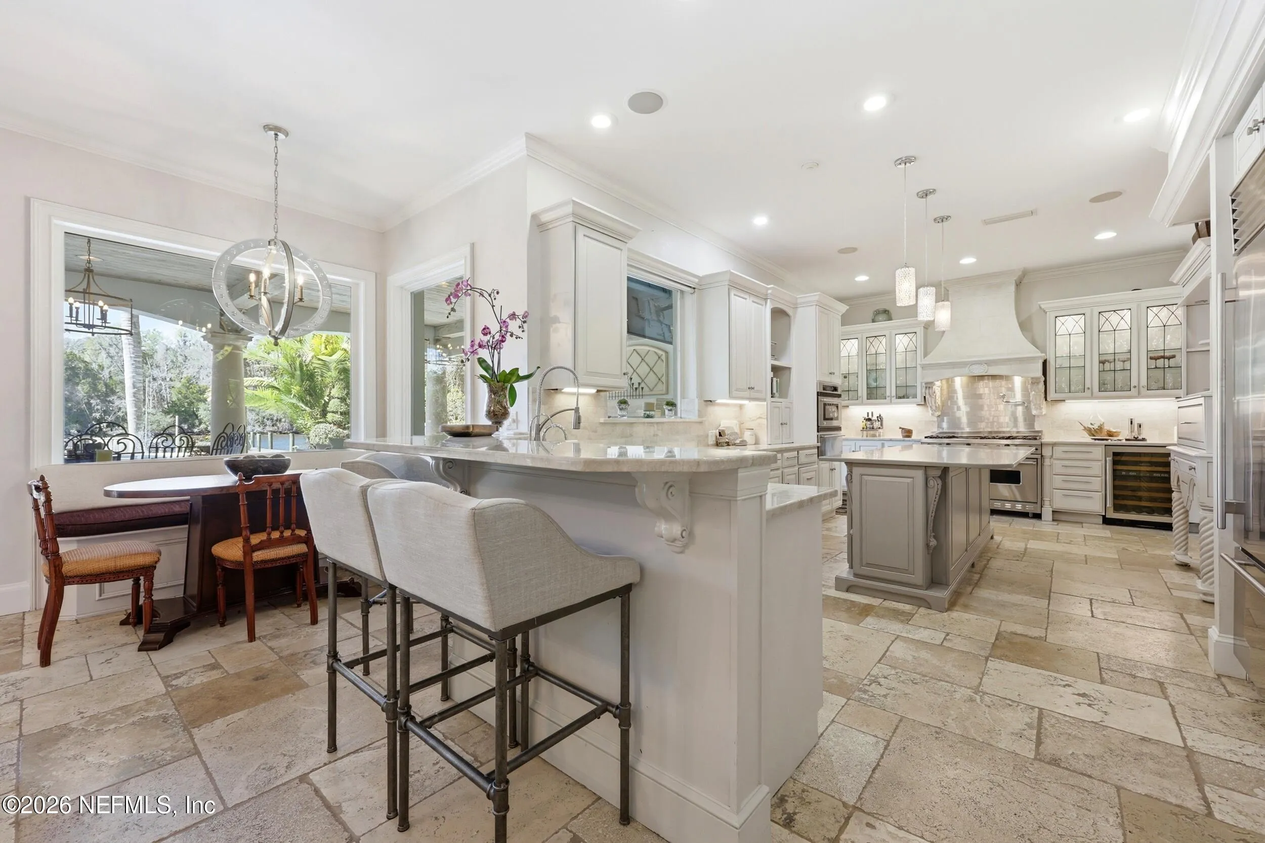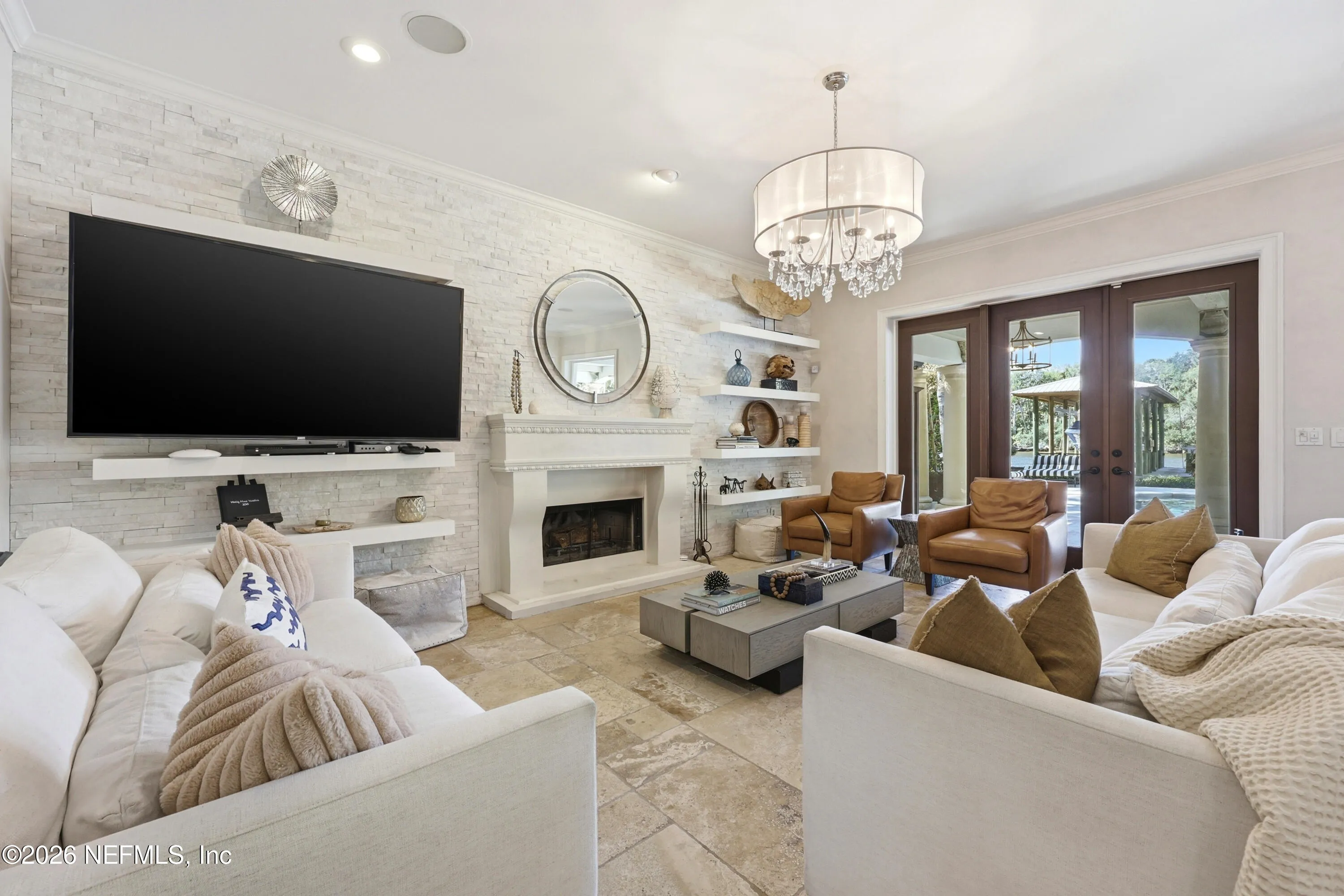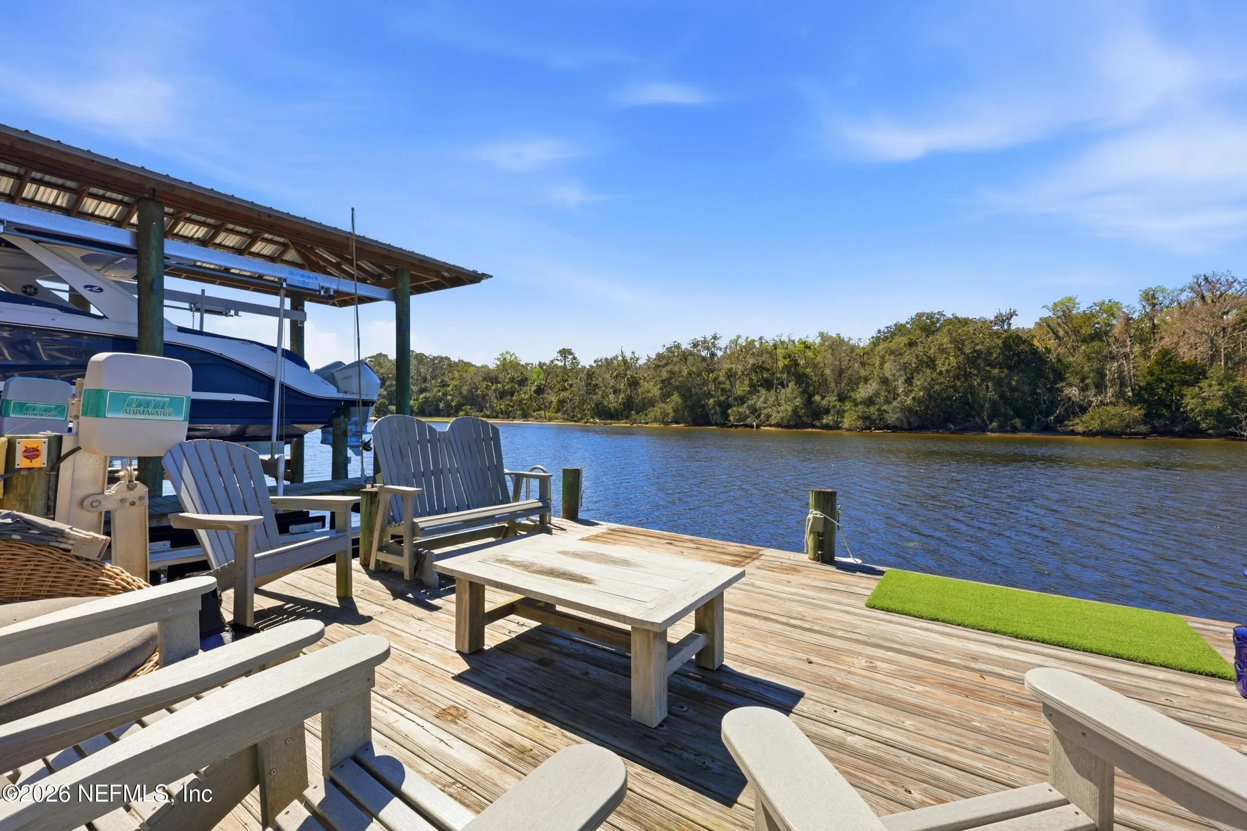 Welcome to your own private waterfront resort -- where the Intracoastal Waterway becomes your backyard and every day feels like a permanent vacation. This extraordinary five-bedroom, six-bathroom residence delivers resort-caliber living along the Intracoastal Waterway in one of Northeast Floridas most coveted coastal communities. Solid concrete construction on the first floor anchors this home with strength and permanence, delivering peace of mind alongside timeless elegance, with travertine and wood floors flowing throughout, while solid mahogany double front entry doors set a tone of elegance and grandeur from the very first step. The culinary kitchen is a chefs paradise, outfitted with a Viking gas range, SubZero refrigerator, Fischer Paykel dishwasher, Jenn Air refrigerator and freezer drawers, quartzite counters, and decorative cabinetry. A wine cellar flanked with imported brick from 17th century Polish church ruins stands ready for your finest vintages. The primary suite features a fireplace, custom walk-in closets, and a private balcony overlooking the waterway. Soak in the tub while savoring panoramic Intracoastal views through an expansive window -- because you deserve that kind of morning. Step outside to nearly a thousand square feet of covered lanai, a summer kitchen with fireplace and grill, and a massive swimming pool with hot tub. Extensive landscape lighting transforms evenings into something magical. For boating enthusiasts, this property is a dream -- situated equal distance between inlets at Mayport and St. Augustine. The private dock features three lifts accommodating vessels up to thirty-five feet, two jet skis, a 21 boat and a convenient wash station. A whole house generator and electric vehicle charger add modern functionality, while a long, gated driveway ensures privacy abounds. This is Northeast Florida waterfront living at its absolute finest.