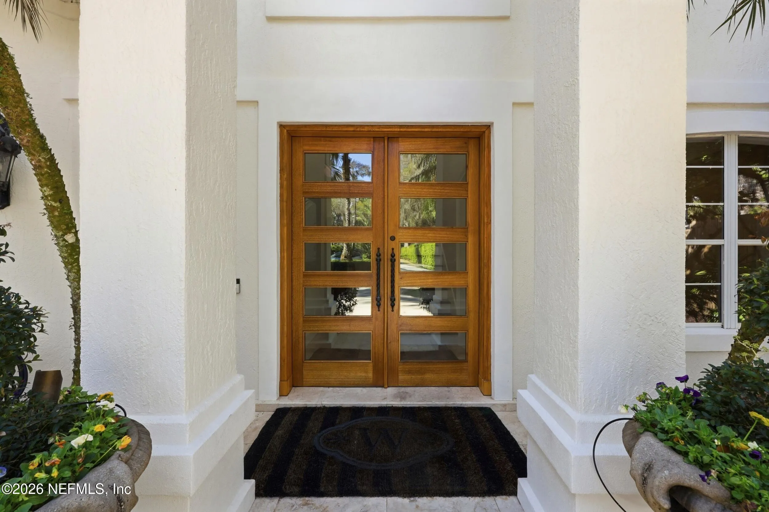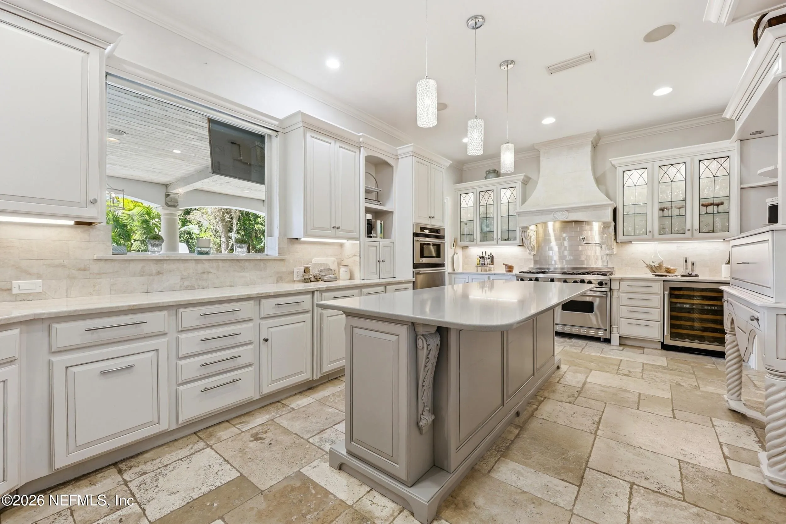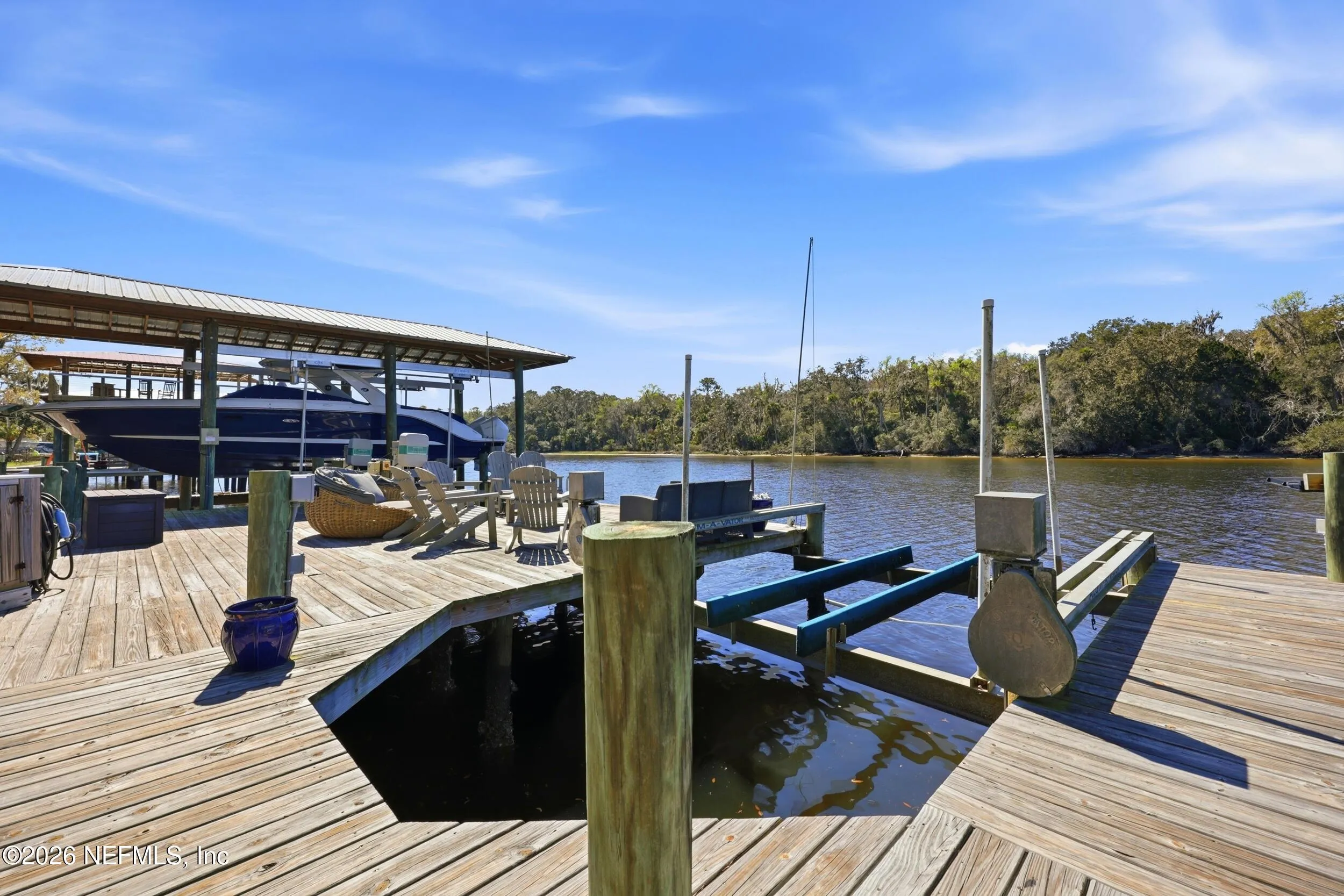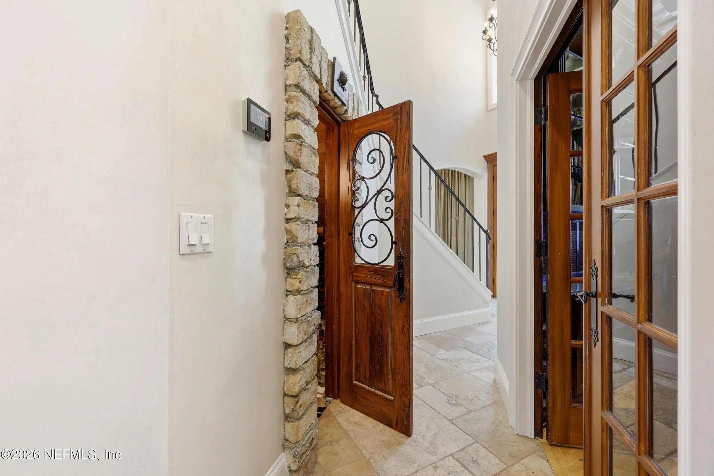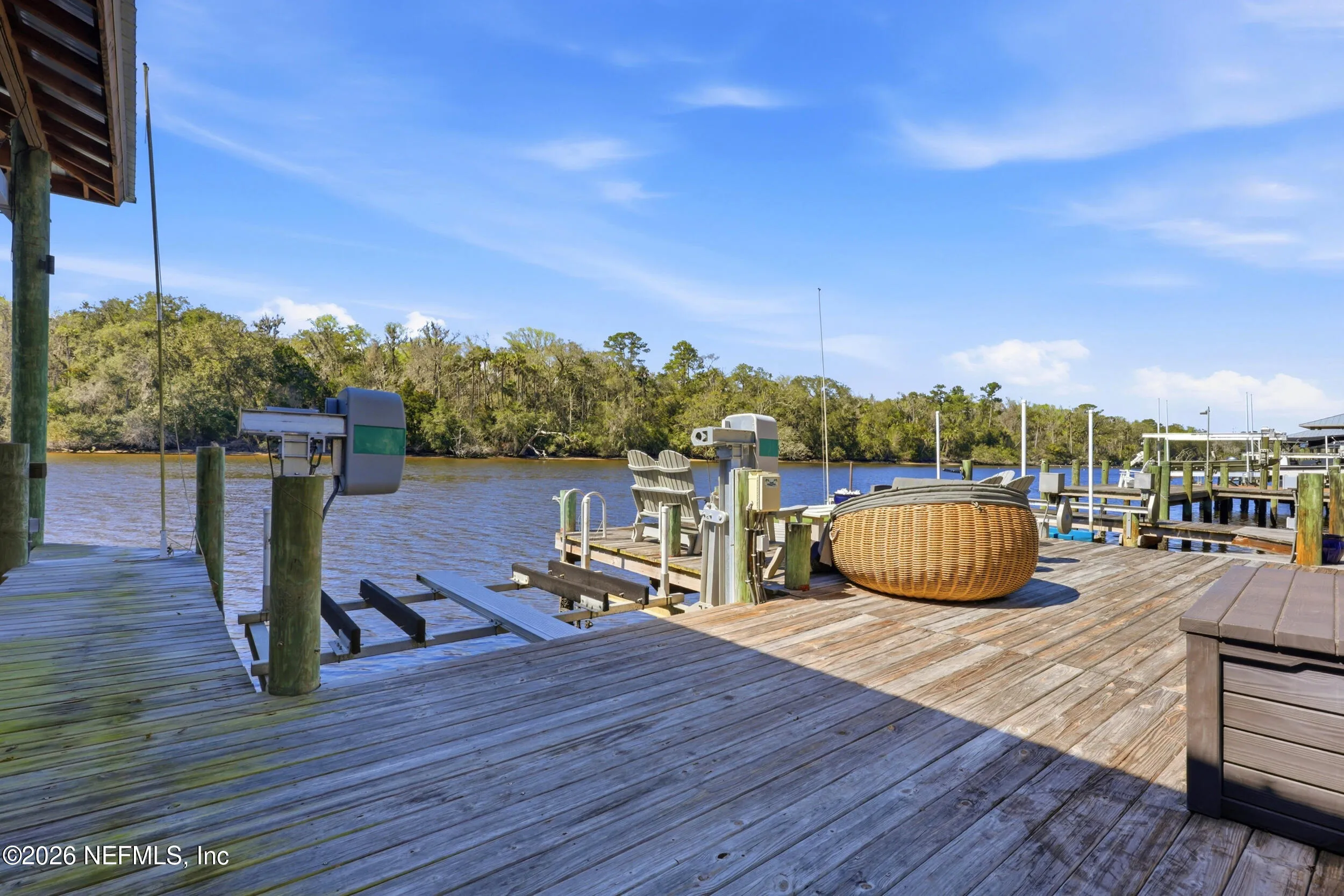 Welcome to your own private waterfront resort -- where the Intracoastal Waterway becomes your backyard and every day feels like a permanent vacation. This extraordinary five-bedroom, six-bathroom residence delivers resort-caliber living along the Intracoastal Waterway in one of Northeast Floridas most coveted coastal communities. Solid concrete construction on the first floor anchors this home with strength and permanence, delivering peace of mind alongside timeless elegance, with travertine and wood floors flowing throughout, while solid mahogany double front entry doors set a tone of elegance and grandeur from the very first step. The culinary kitchen is a chefs paradise, outfitted with a Viking gas range, SubZero refrigerator, Fischer Paykel dishwasher, Jenn Air refrigerator and freezer drawers, quartzite counters, and decorative cabinetry. A wine cellar flanked with imported brick from 17th century Polish church ruins stands ready for your finest vintages. The primary suite features a fireplace, custom walk-in closets, and a private balcony overlooking the waterway. Soak in the tub while savoring panoramic Intracoastal views through an expansive window -- because you deserve that kind of morning. Step outside to nearly a thousand square feet of covered lanai, a summer kitchen with fireplace and grill, and a massive swimming pool with hot tub. Extensive landscape lighting transforms evenings into something magical. For boating enthusiasts, this property is a dream -- situated equal distance between inlets at Mayport and St. Augustine. The private dock features three lifts accommodating vessels up to thirty-five feet, two jet skis, a 21 boat and a convenient wash station. A whole house generator and electric vehicle charger add modern functionality, while a long, gated driveway ensures privacy abounds. This is Northeast Florida waterfront living at its absolute finest.