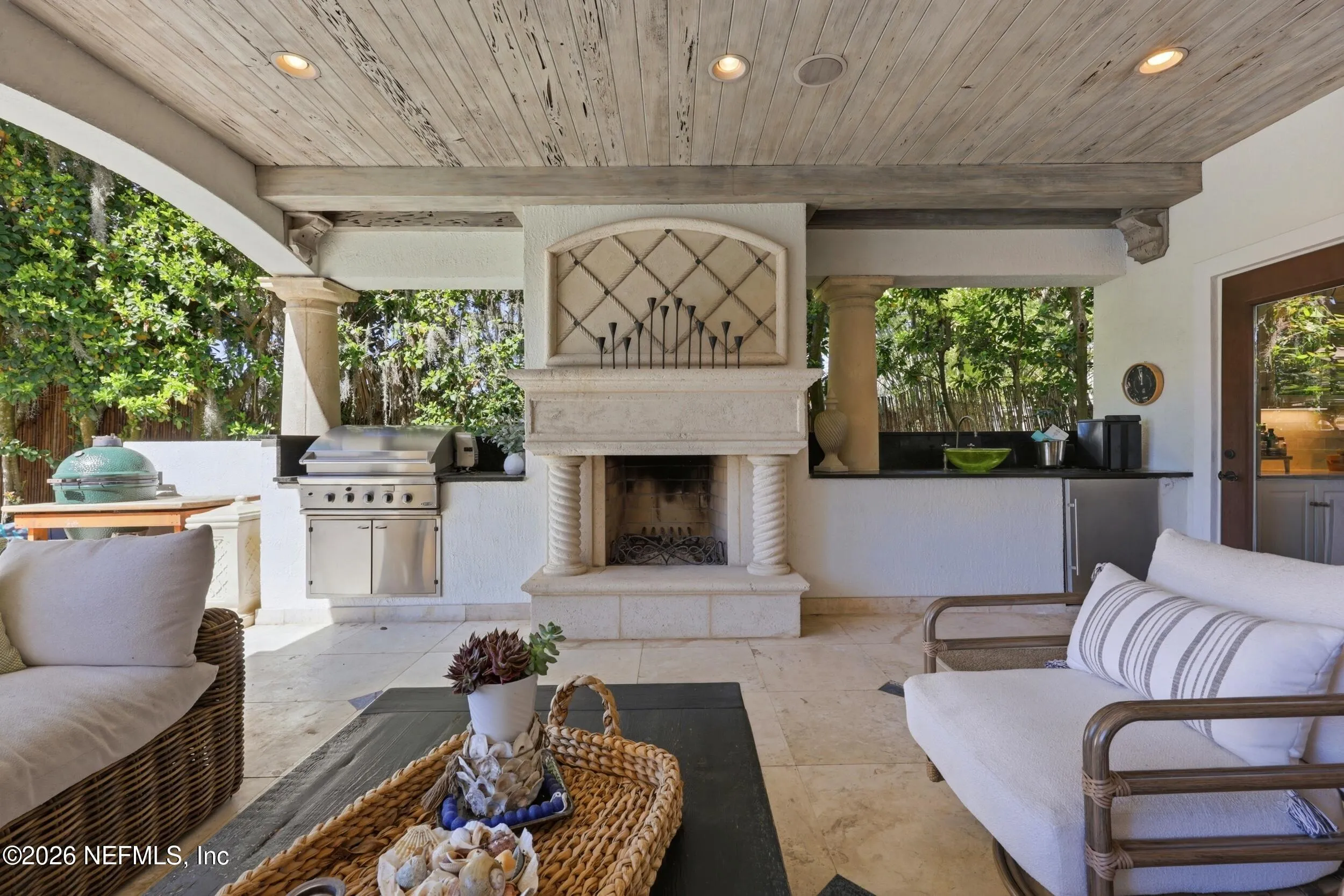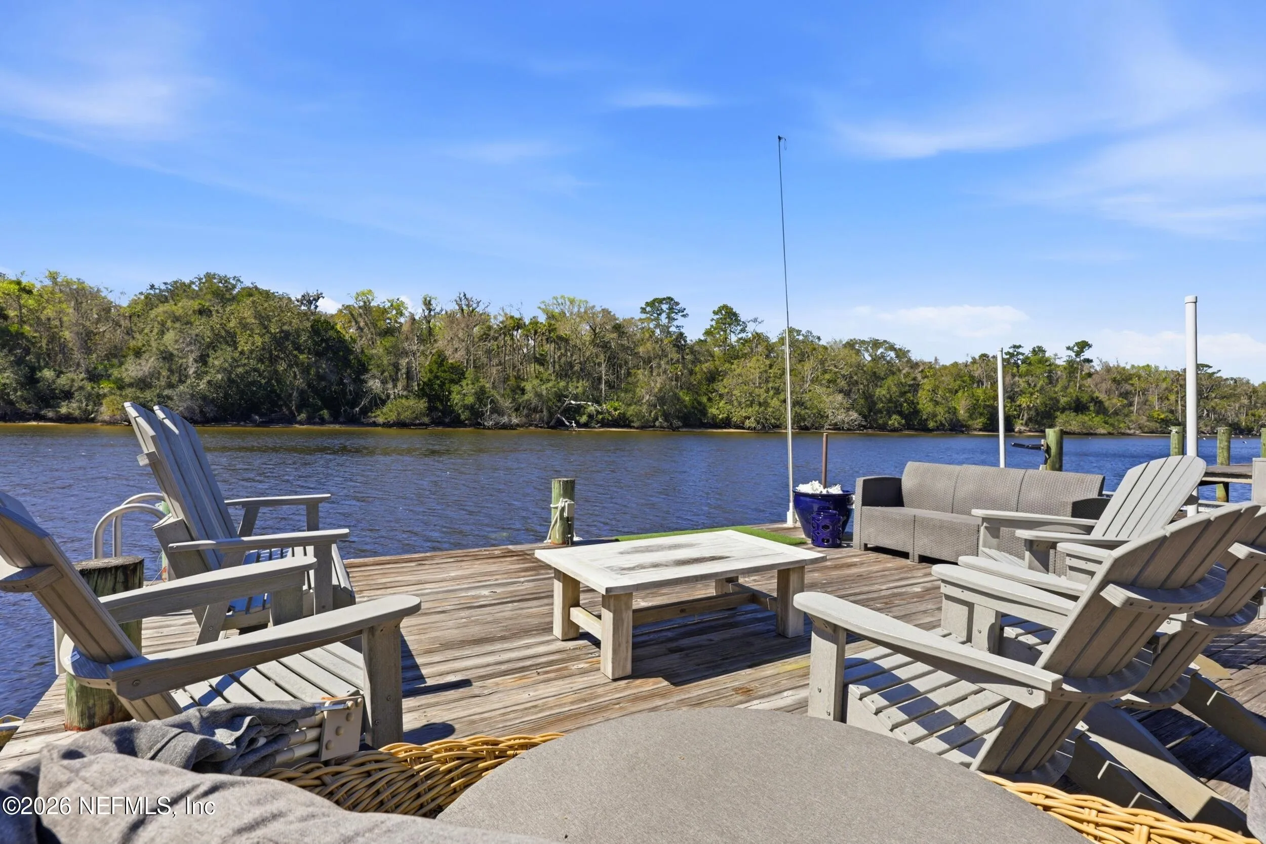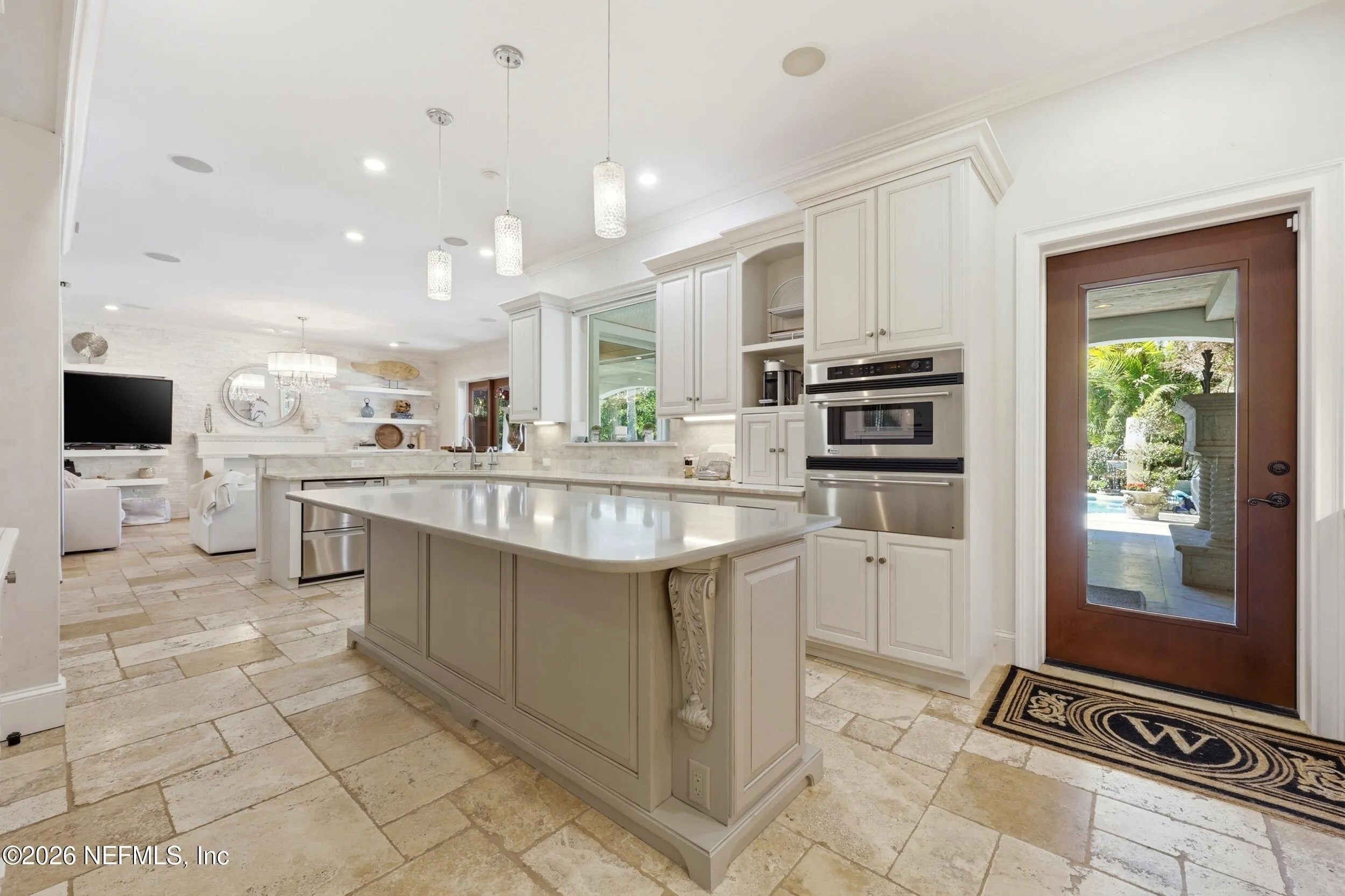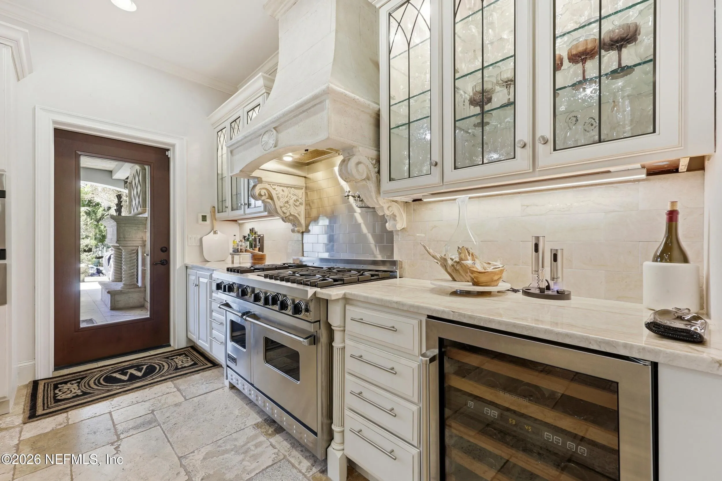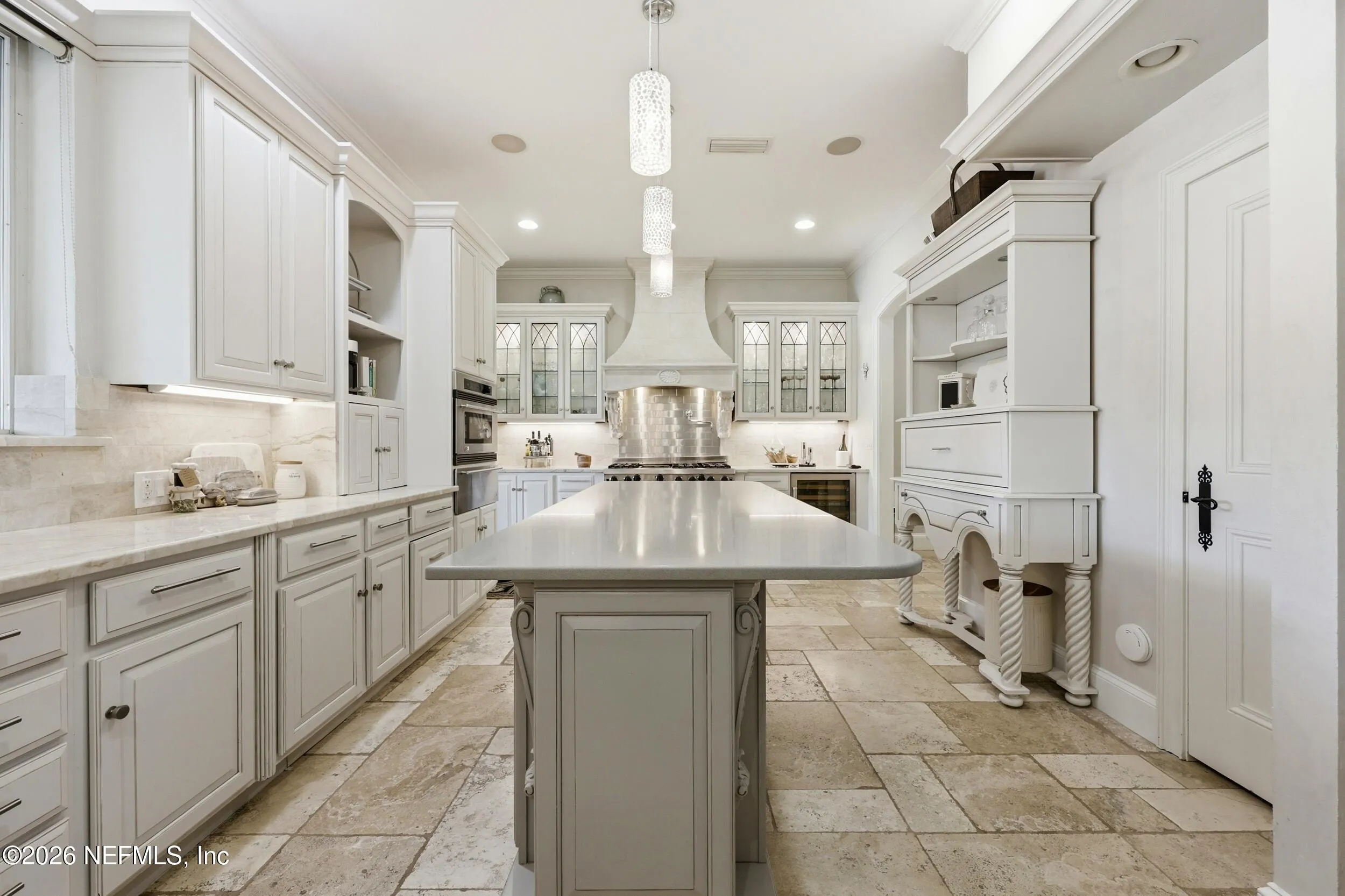 Welcome to your own private waterfront resort -- where the Intracoastal Waterway becomes your backyard and every day feels like a permanent vacation. This extraordinary five-bedroom, six-bathroom residence delivers resort-caliber living along the Intracoastal Waterway in one of Northeast Floridas most coveted coastal communities. Solid concrete construction on the first floor anchors this home with strength and permanence, delivering peace of mind alongside timeless elegance, with travertine and wood floors flowing throughout, while solid mahogany double front entry doors set a tone of elegance and grandeur from the very first step. The culinary kitchen is a chefs paradise, outfitted with a Viking gas range, SubZero refrigerator, Fischer Paykel dishwasher, Jenn Air refrigerator and freezer drawers, quartzite counters, and decorative cabinetry. A wine cellar flanked with imported brick from 17th century Polish church ruins stands ready for your finest vintages. The primary suite features a fireplace, custom walk-in closets, and a private balcony overlooking the waterway. Soak in the tub while savoring panoramic Intracoastal views through an expansive window -- because you deserve that kind of morning. Step outside to nearly a thousand square feet of covered lanai, a summer kitchen with fireplace and grill, and a massive swimming pool with hot tub. Extensive landscape lighting transforms evenings into something magical. For boating enthusiasts, this property is a dream -- situated equal distance between inlets at Mayport and St. Augustine. The private dock features three lifts accommodating vessels up to thirty-five feet, two jet skis, a 21 boat and a convenient wash station. A whole house generator and electric vehicle charger add modern functionality, while a long, gated driveway ensures privacy abounds. This is Northeast Florida waterfront living at its absolute finest.
