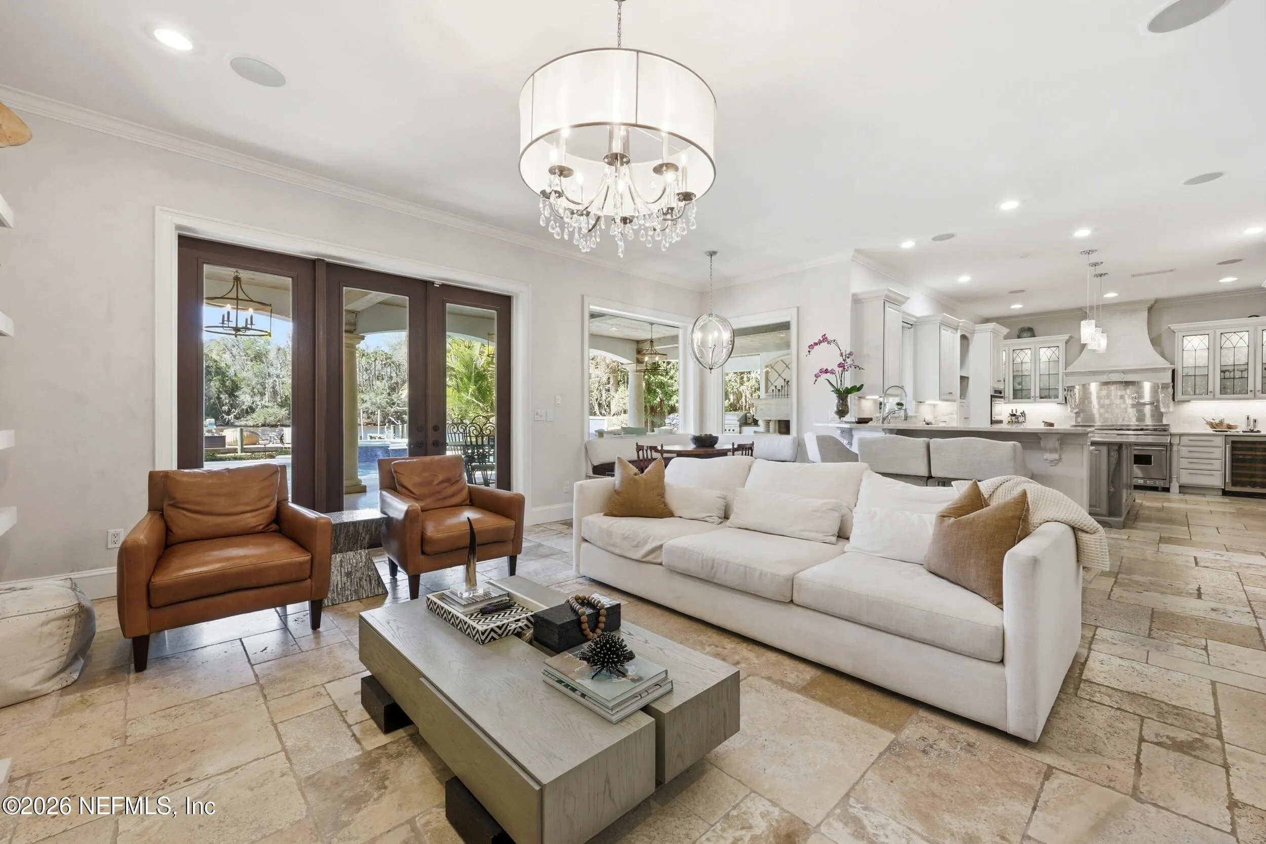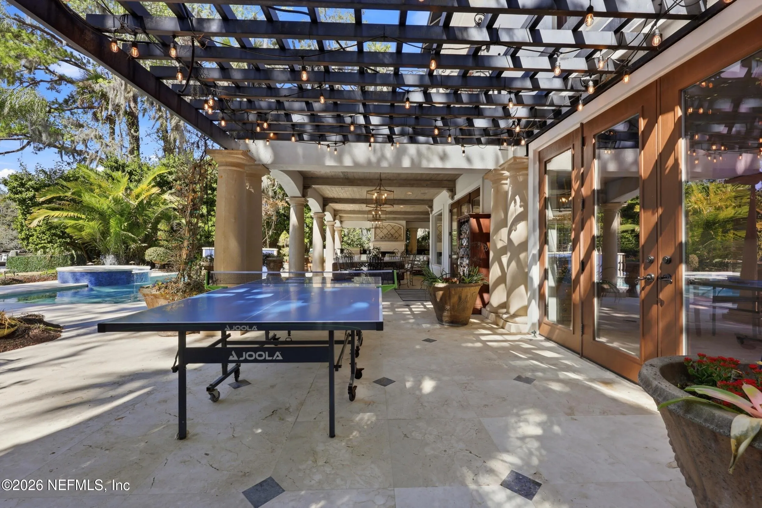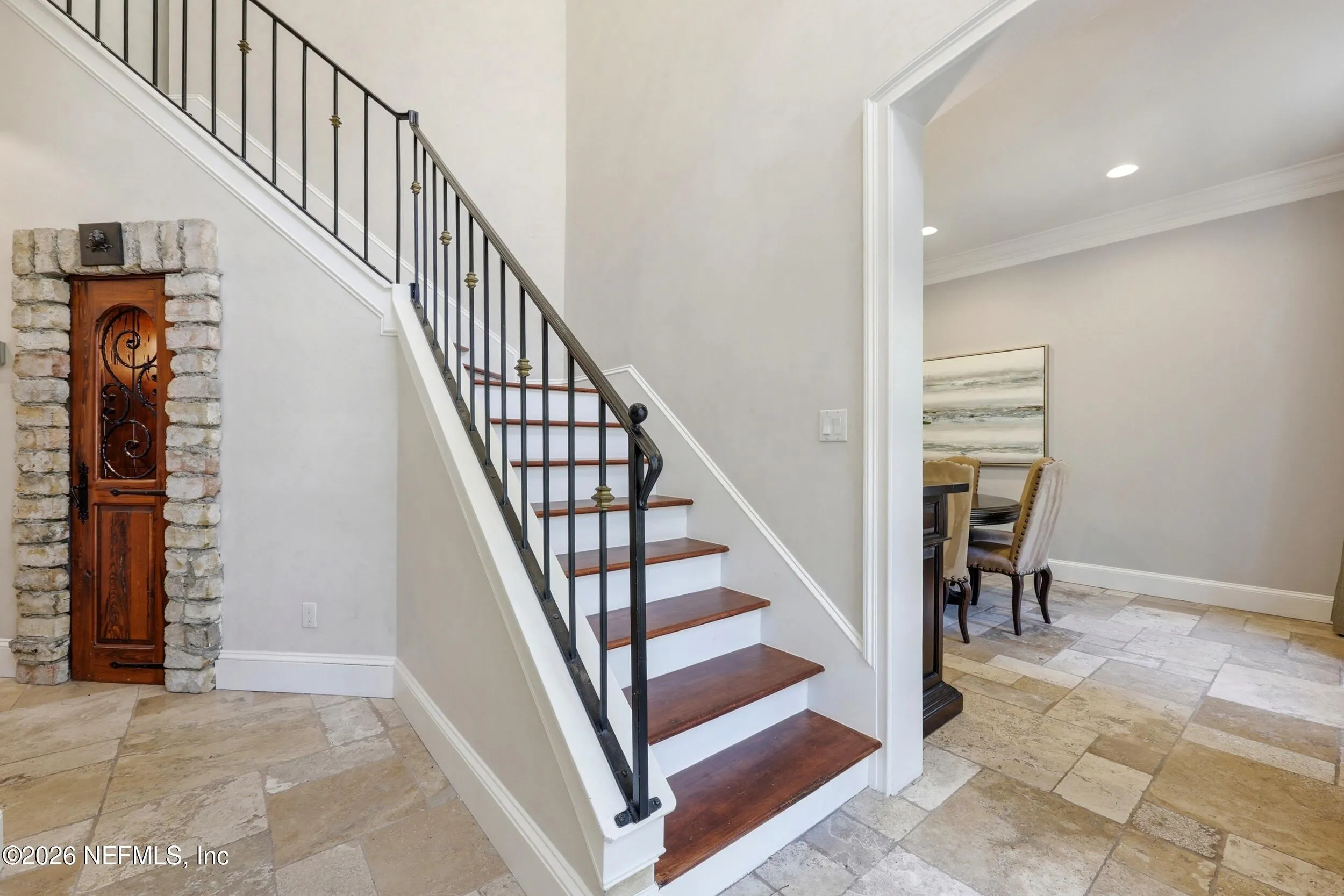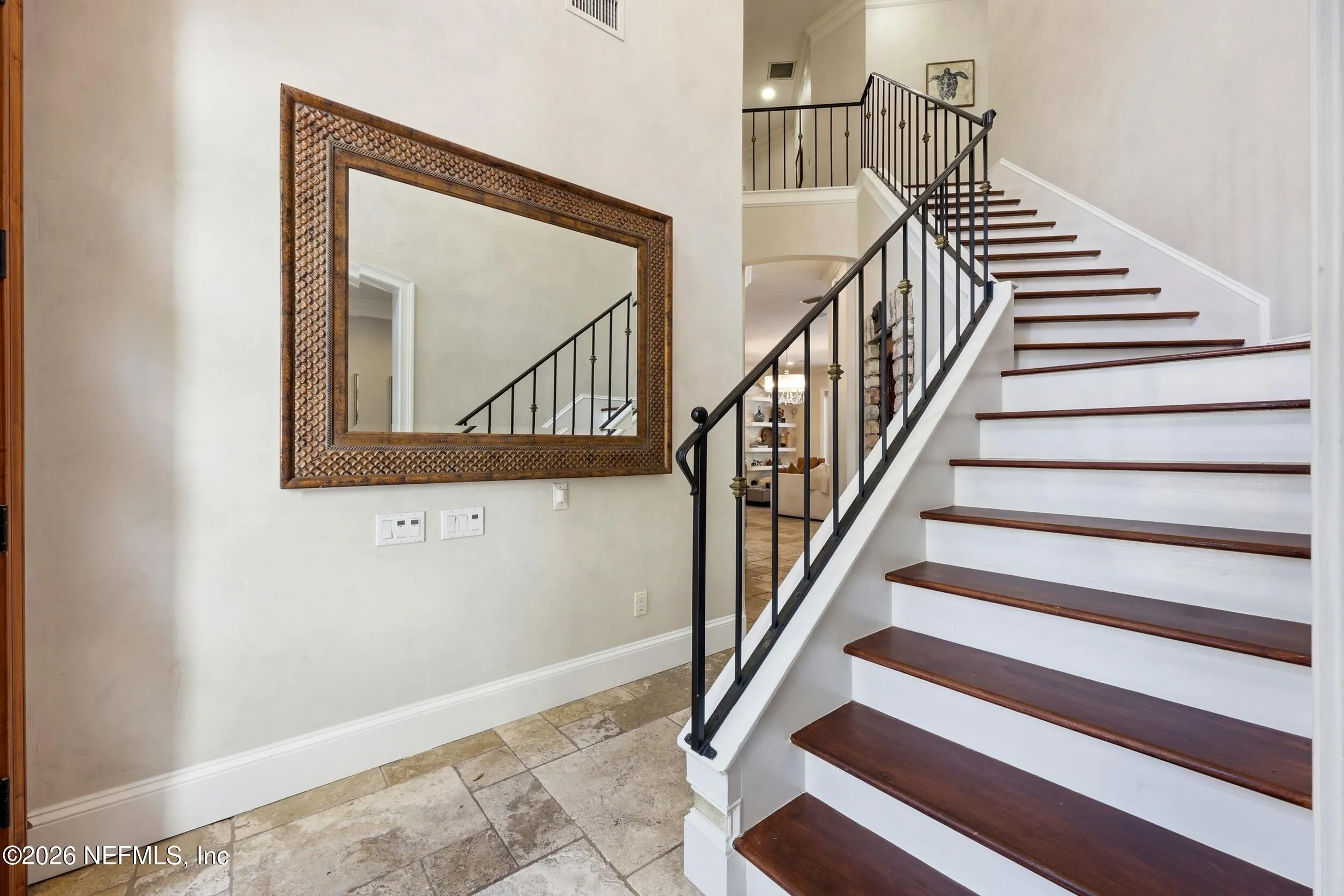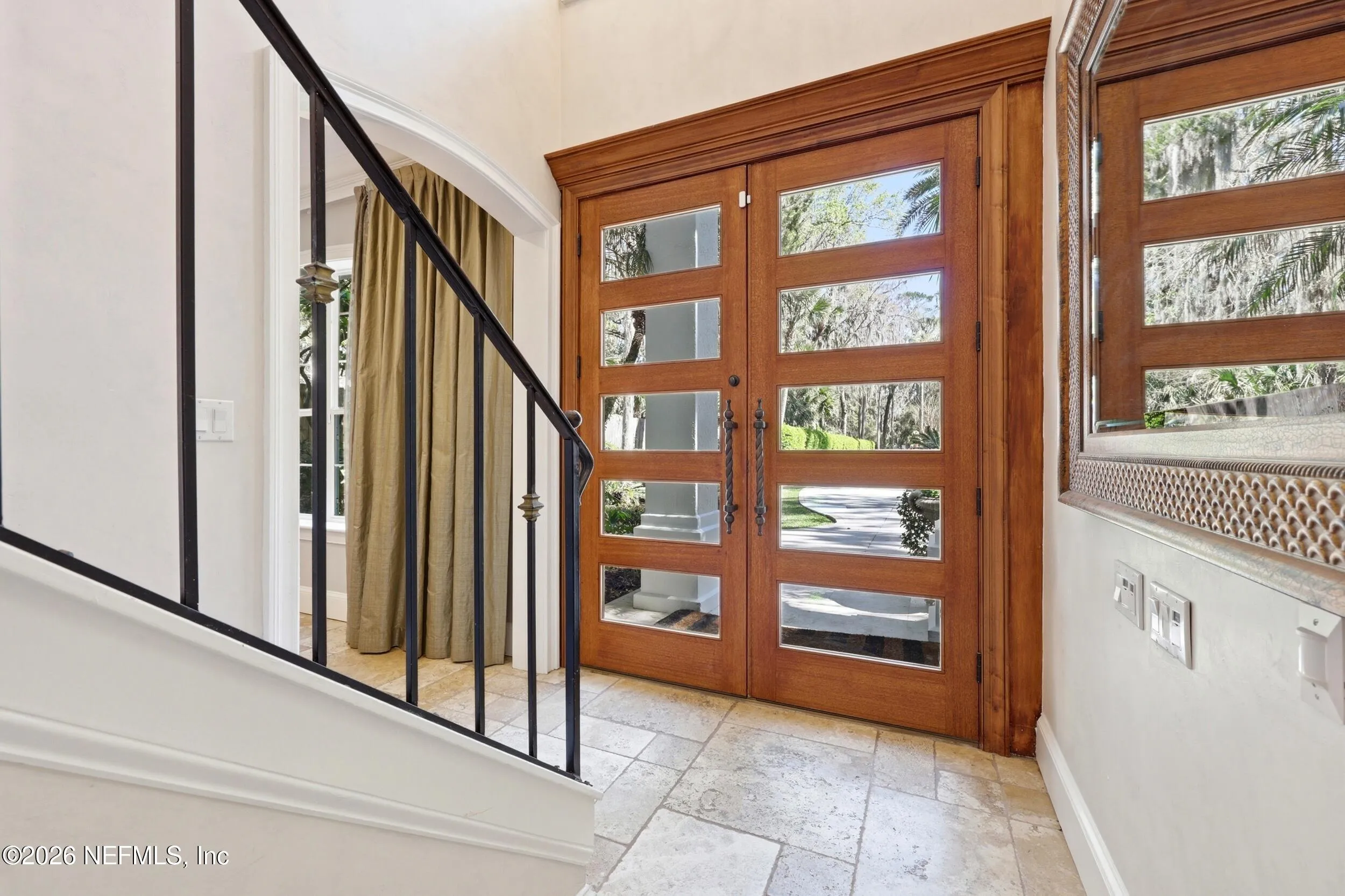 Welcome to your own private waterfront resort -- where the Intracoastal Waterway becomes your backyard and every day feels like a permanent vacation. This extraordinary five-bedroom, six-bathroom residence delivers resort-caliber living along the Intracoastal Waterway in one of Northeast Floridas most coveted coastal communities. Solid concrete construction on the first floor anchors this home with strength and permanence, delivering peace of mind alongside timeless elegance, with travertine and wood floors flowing throughout, while solid mahogany double front entry doors set a tone of elegance and grandeur from the very first step. The culinary kitchen is a chefs paradise, outfitted with a Viking gas range, SubZero refrigerator, Fischer Paykel dishwasher, Jenn Air refrigerator and freezer drawers, quartzite counters, and decorative cabinetry. A wine cellar flanked with imported brick from 17th century Polish church ruins stands ready for your finest vintages. The primary suite features a fireplace, custom walk-in closets, and a private balcony overlooking the waterway. Soak in the tub while savoring panoramic Intracoastal views through an expansive window -- because you deserve that kind of morning. Step outside to nearly a thousand square feet of covered lanai, a summer kitchen with fireplace and grill, and a massive swimming pool with hot tub. Extensive landscape lighting transforms evenings into something magical. For boating enthusiasts, this property is a dream -- situated equal distance between inlets at Mayport and St. Augustine. The private dock features three lifts accommodating vessels up to thirty-five feet, two jet skis, a 21 boat and a convenient wash station. A whole house generator and electric vehicle charger add modern functionality, while a long, gated driveway ensures privacy abounds. This is Northeast Florida waterfront living at its absolute finest.