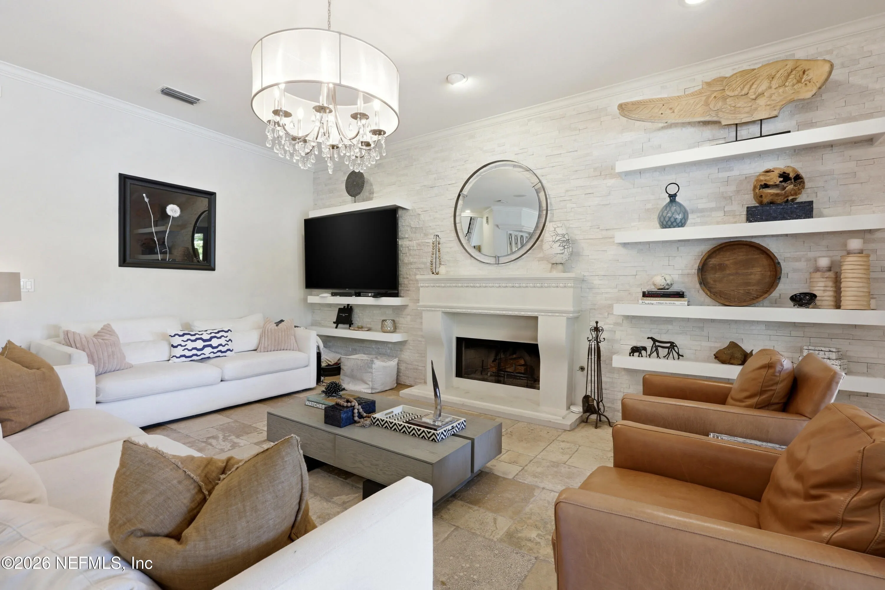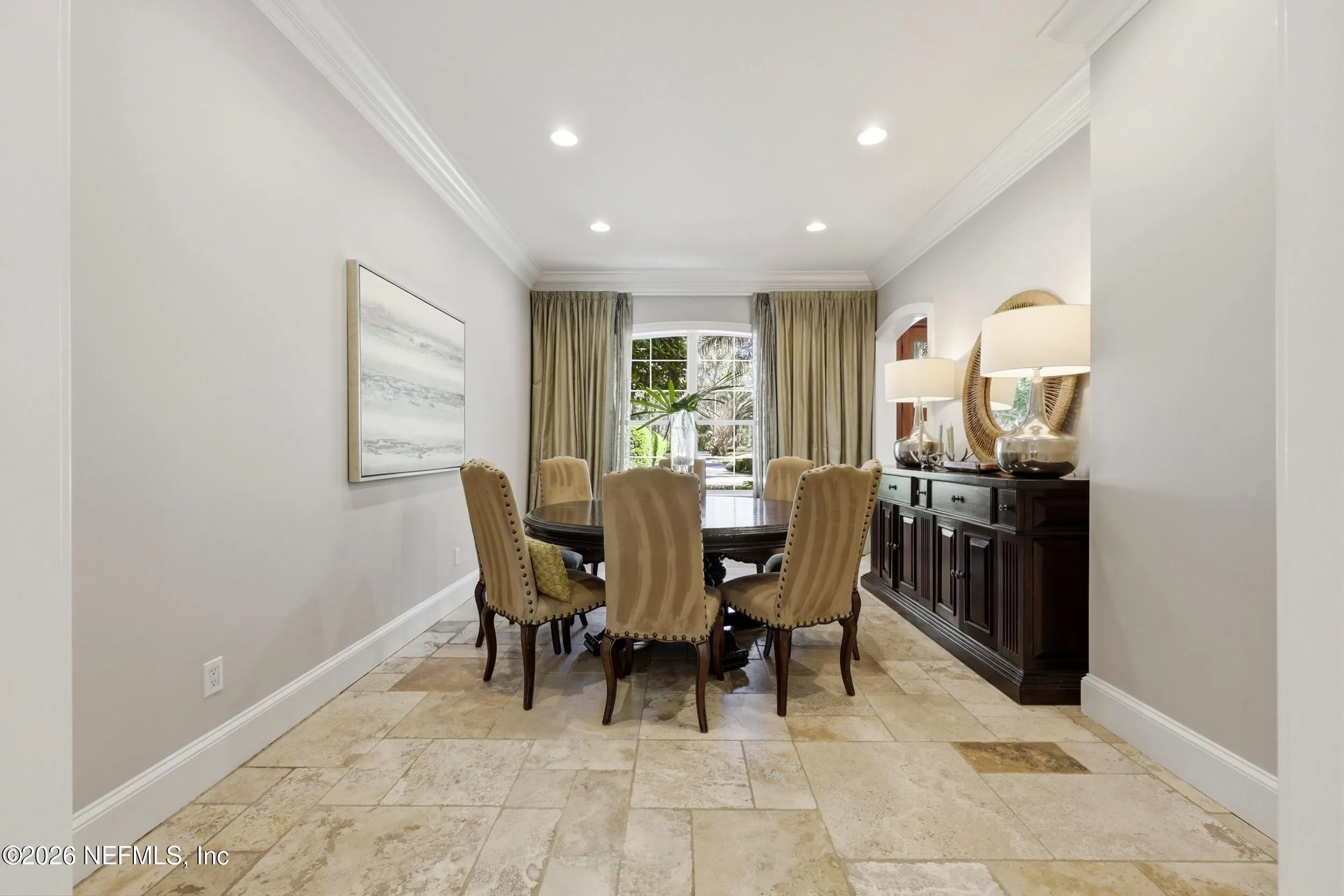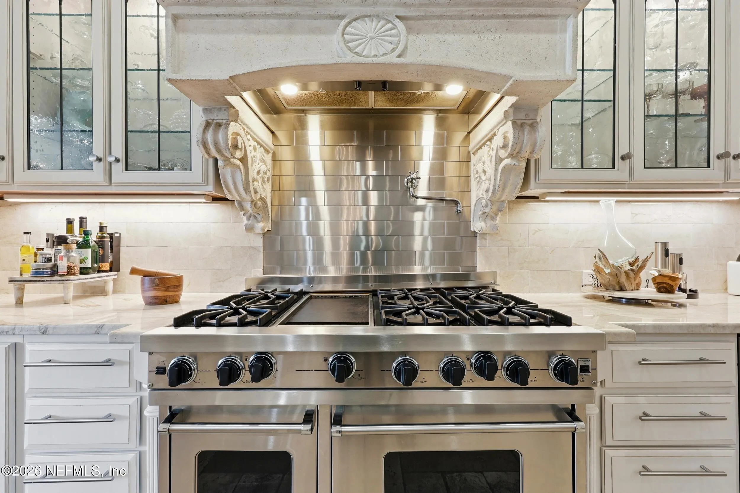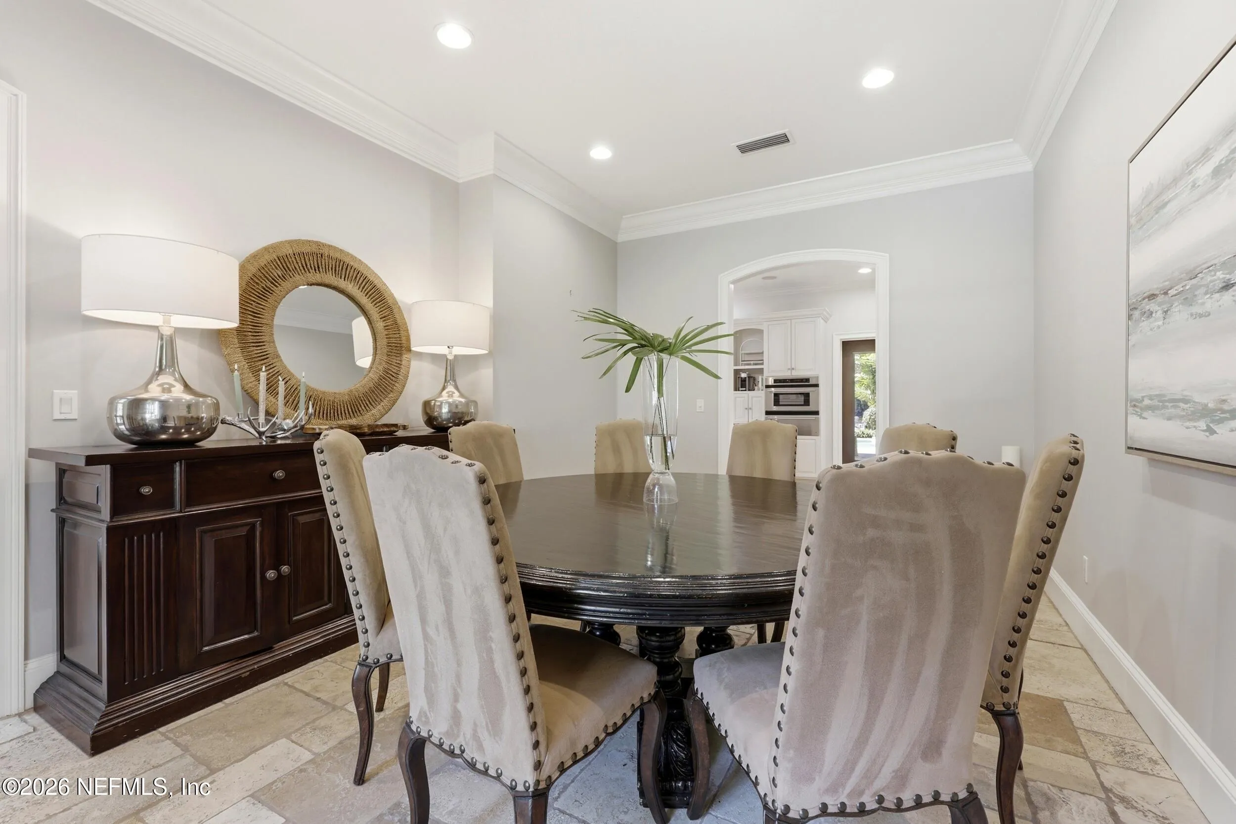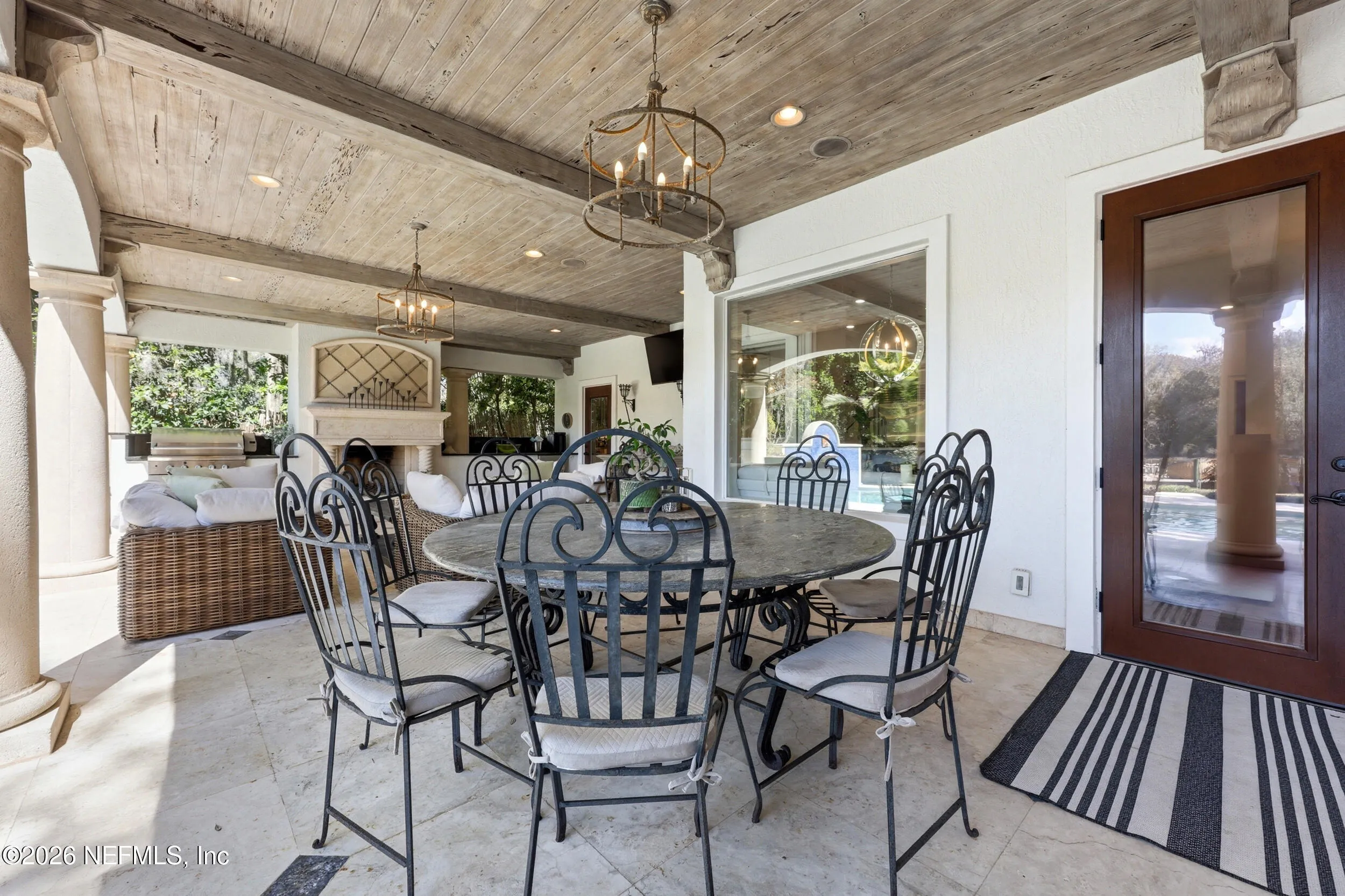 Welcome to your own private waterfront resort -- where the Intracoastal Waterway becomes your backyard and every day feels like a permanent vacation. This extraordinary five-bedroom, six-bathroom residence delivers resort-caliber living along the Intracoastal Waterway in one of Northeast Floridas most coveted coastal communities. Solid concrete construction on the first floor anchors this home with strength and permanence, delivering peace of mind alongside timeless elegance, with travertine and wood floors flowing throughout, while solid mahogany double front entry doors set a tone of elegance and grandeur from the very first step. The culinary kitchen is a chefs paradise, outfitted with a Viking gas range, SubZero refrigerator, Fischer Paykel dishwasher, Jenn Air refrigerator and freezer drawers, quartzite counters, and decorative cabinetry. A wine cellar flanked with imported brick from 17th century Polish church ruins stands ready for your finest vintages. The primary suite features a fireplace, custom walk-in closets, and a private balcony overlooking the waterway. Soak in the tub while savoring panoramic Intracoastal views through an expansive window -- because you deserve that kind of morning. Step outside to nearly a thousand square feet of covered lanai, a summer kitchen with fireplace and grill, and a massive swimming pool with hot tub. Extensive landscape lighting transforms evenings into something magical. For boating enthusiasts, this property is a dream -- situated equal distance between inlets at Mayport and St. Augustine. The private dock features three lifts accommodating vessels up to thirty-five feet, two jet skis, a 21 boat and a convenient wash station. A whole house generator and electric vehicle charger add modern functionality, while a long, gated driveway ensures privacy abounds. This is Northeast Florida waterfront living at its absolute finest.