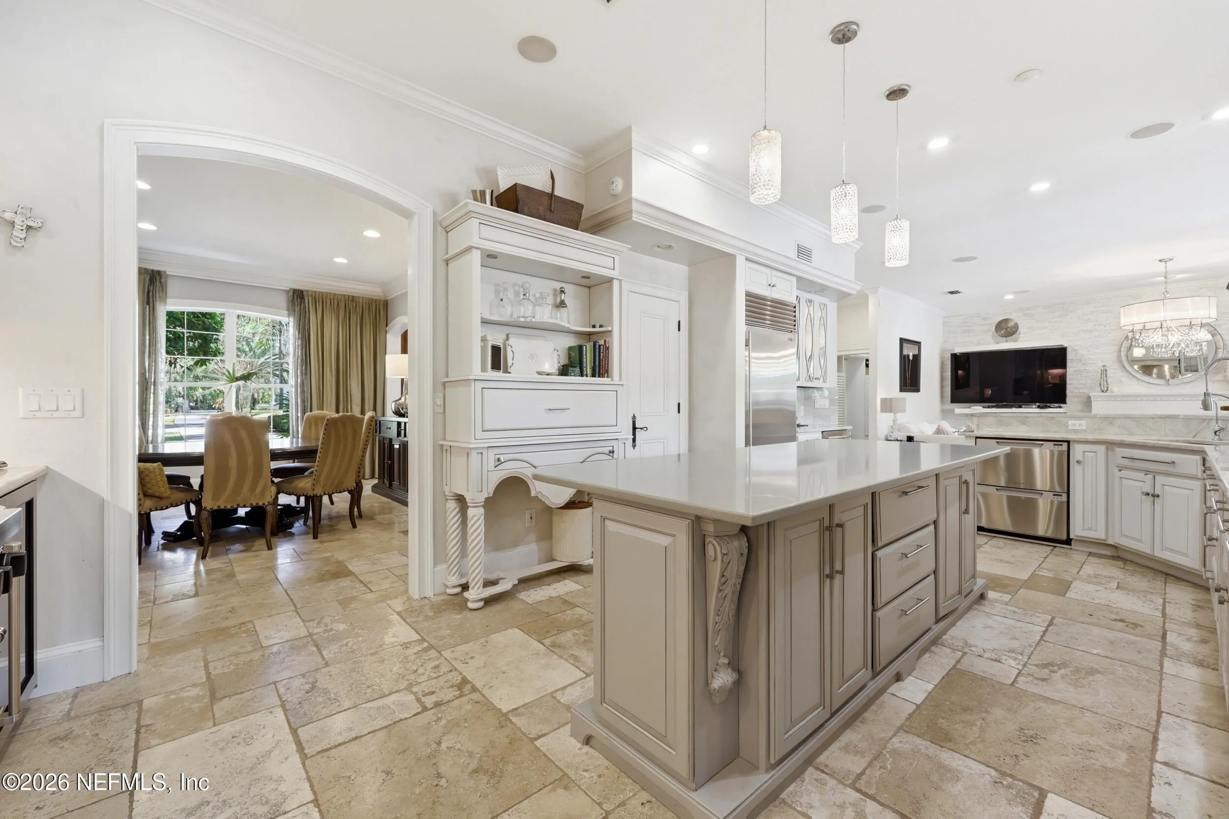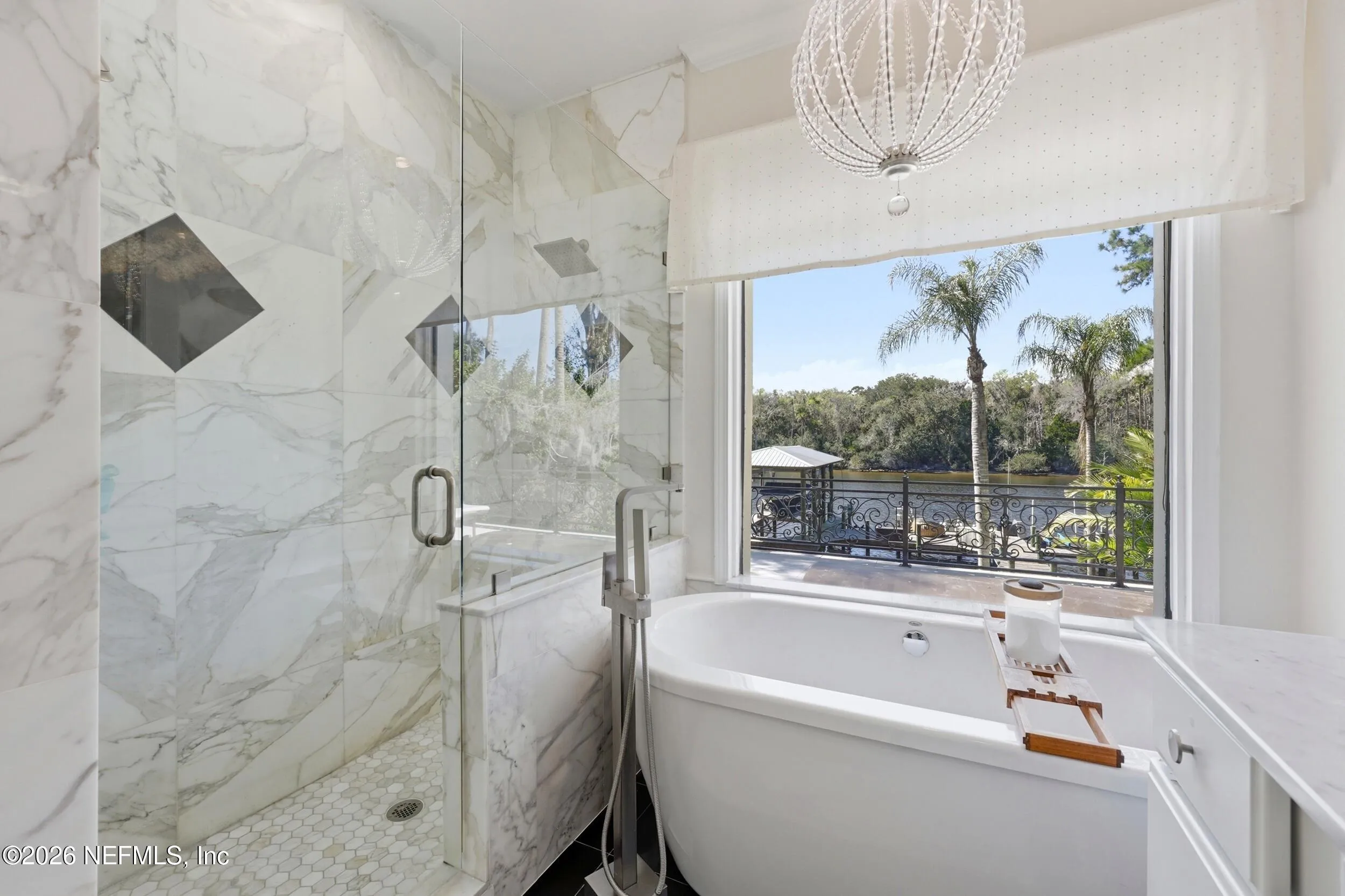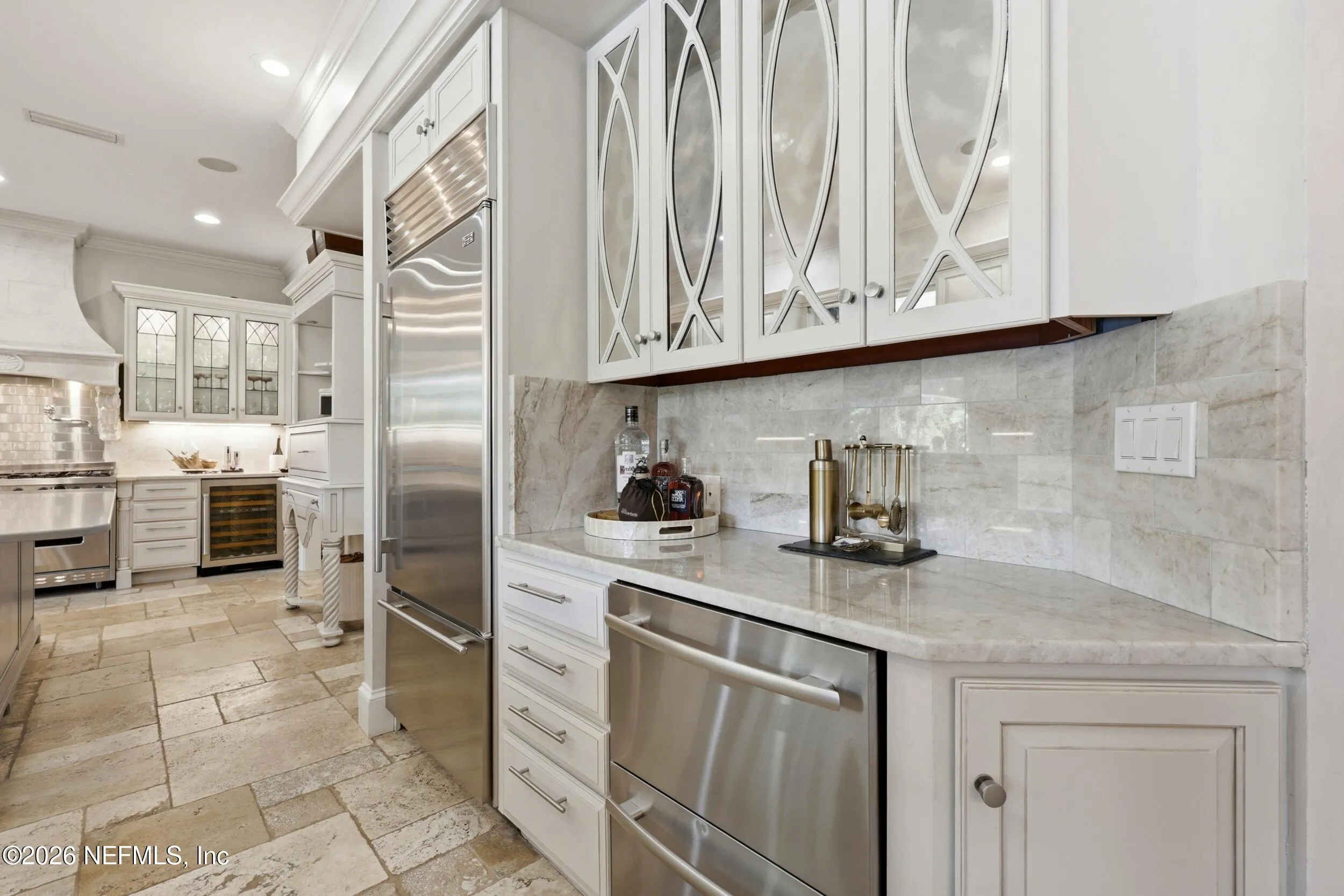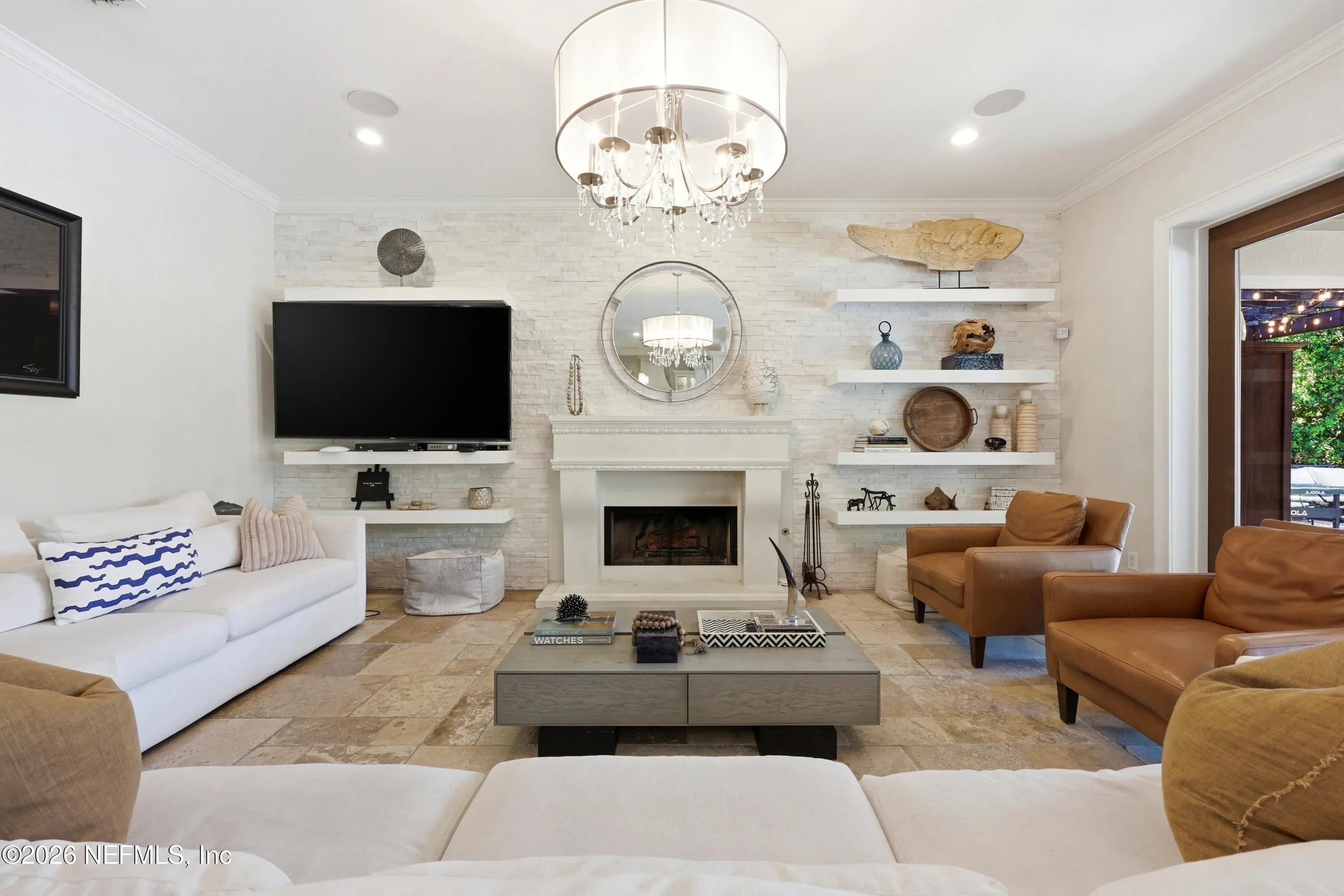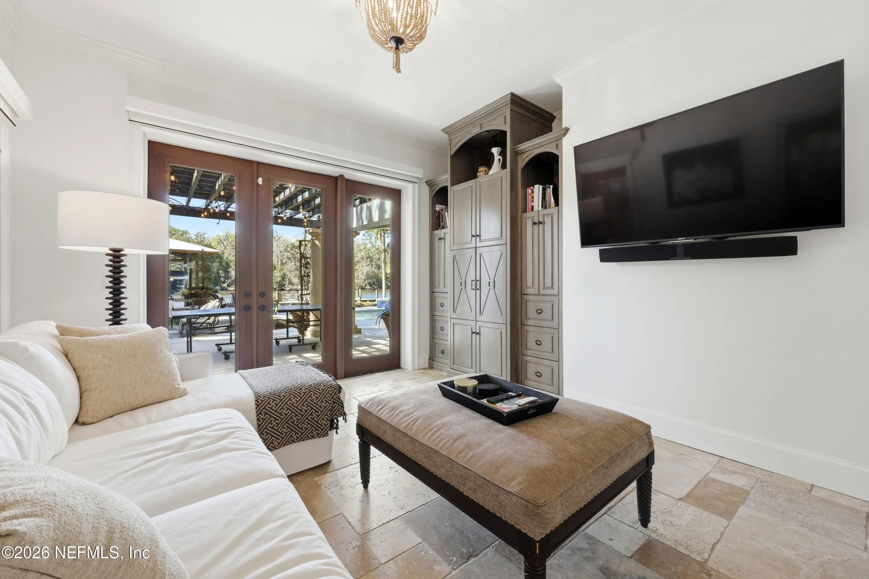 Welcome to your own private waterfront resort -- where the Intracoastal Waterway becomes your backyard and every day feels like a permanent vacation. This extraordinary five-bedroom, six-bathroom residence delivers resort-caliber living along the Intracoastal Waterway in one of Northeast Floridas most coveted coastal communities. Solid concrete construction on the first floor anchors this home with strength and permanence, delivering peace of mind alongside timeless elegance, with travertine and wood floors flowing throughout, while solid mahogany double front entry doors set a tone of elegance and grandeur from the very first step. The culinary kitchen is a chefs paradise, outfitted with a Viking gas range, SubZero refrigerator, Fischer Paykel dishwasher, Jenn Air refrigerator and freezer drawers, quartzite counters, and decorative cabinetry. A wine cellar flanked with imported brick from 17th century Polish church ruins stands ready for your finest vintages. The primary suite features a fireplace, custom walk-in closets, and a private balcony overlooking the waterway. Soak in the tub while savoring panoramic Intracoastal views through an expansive window -- because you deserve that kind of morning. Step outside to nearly a thousand square feet of covered lanai, a summer kitchen with fireplace and grill, and a massive swimming pool with hot tub. Extensive landscape lighting transforms evenings into something magical. For boating enthusiasts, this property is a dream -- situated equal distance between inlets at Mayport and St. Augustine. The private dock features three lifts accommodating vessels up to thirty-five feet, two jet skis, a 21 boat and a convenient wash station. A whole house generator and electric vehicle charger add modern functionality, while a long, gated driveway ensures privacy abounds. This is Northeast Florida waterfront living at its absolute finest.