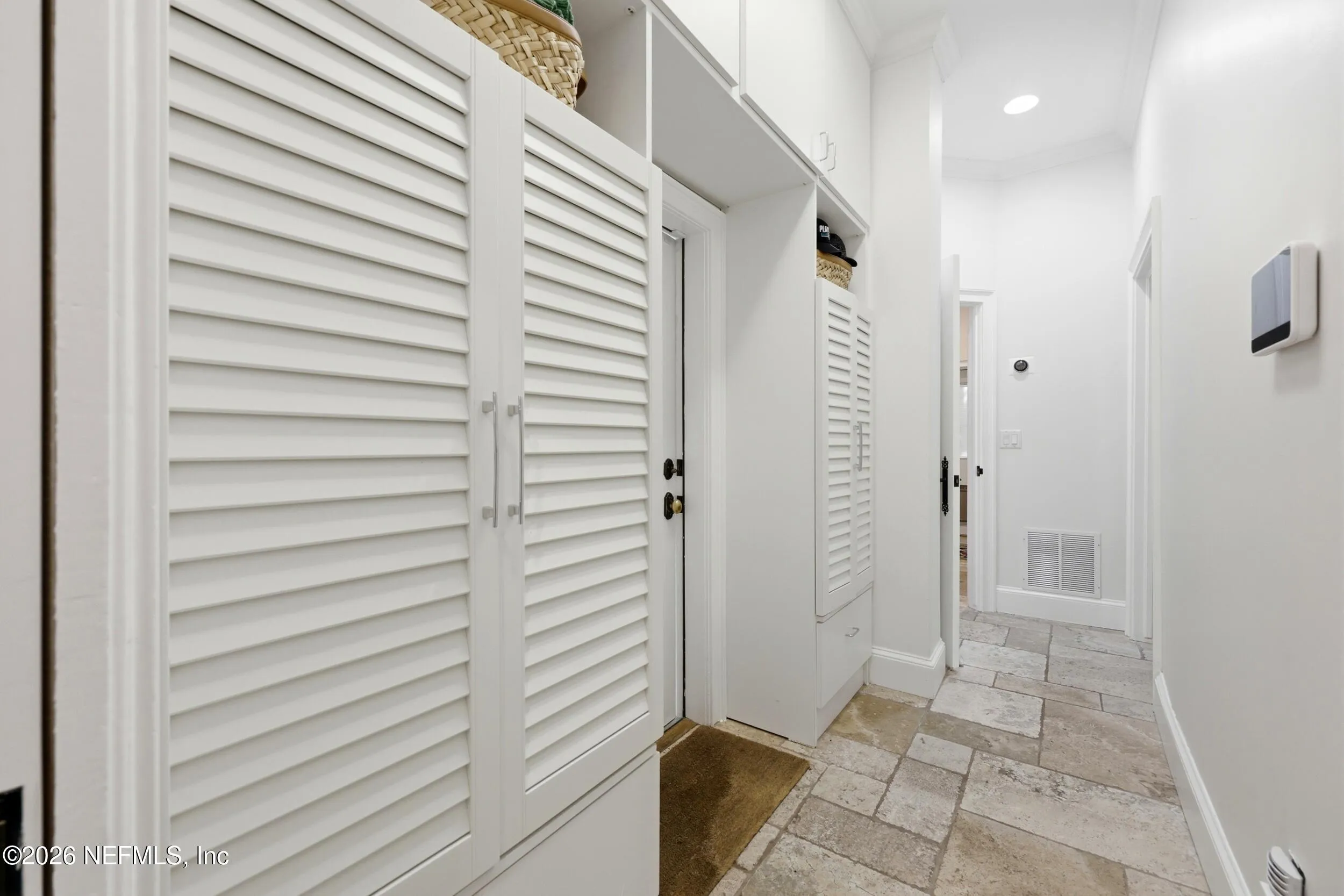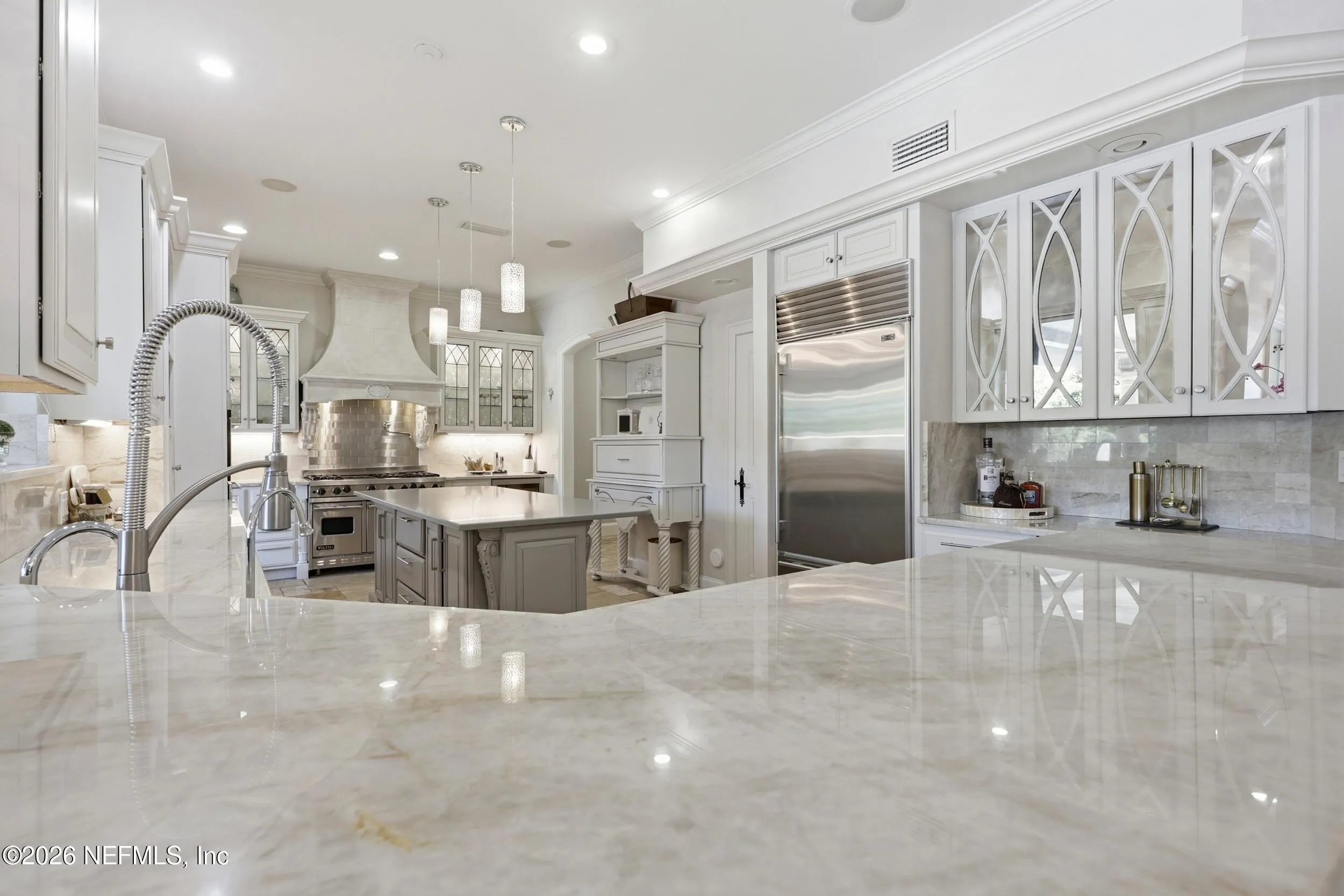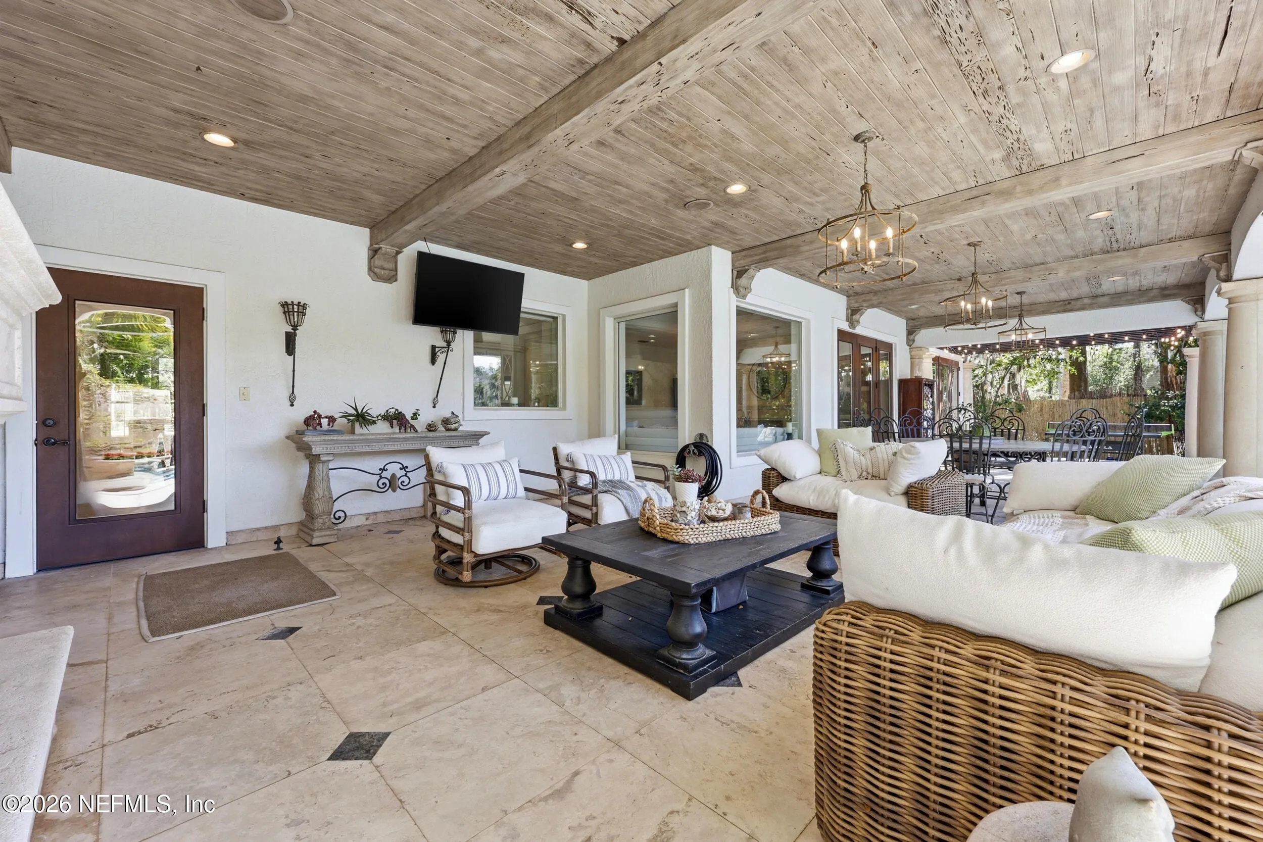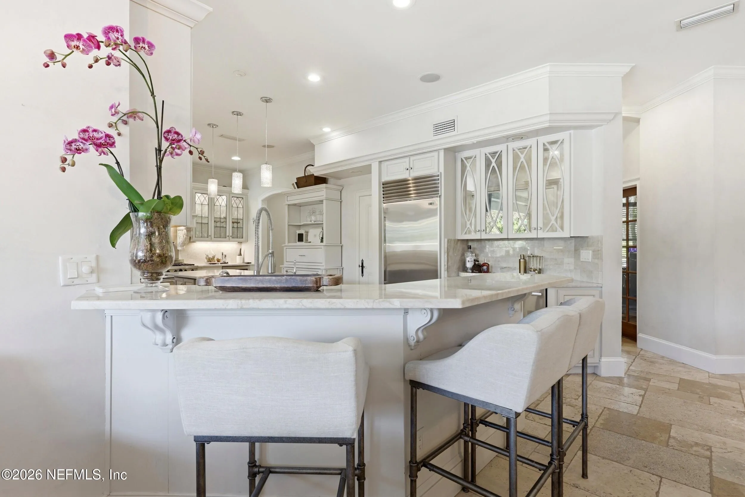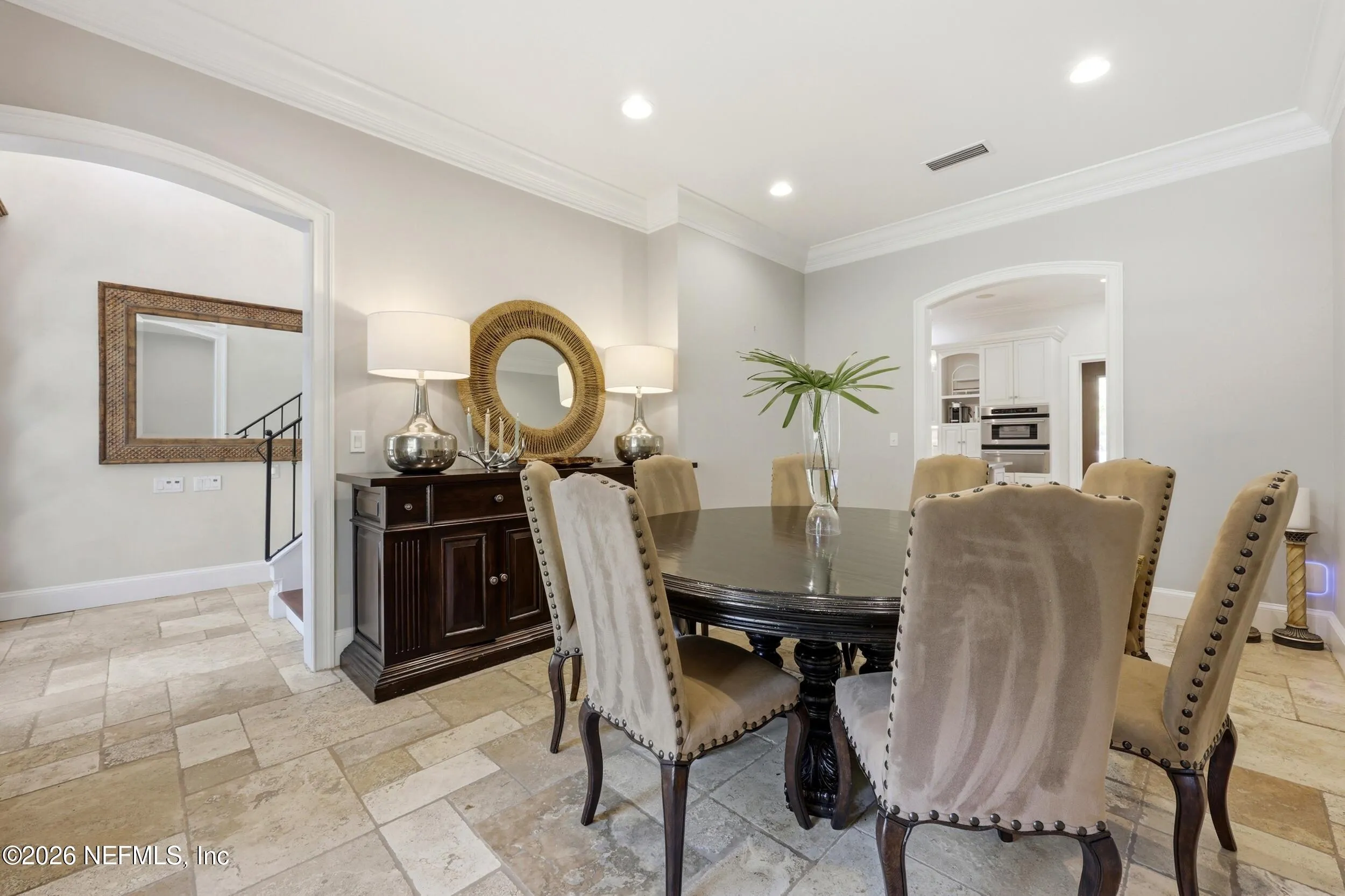 Welcome to your own private waterfront resort -- where the Intracoastal Waterway becomes your backyard and every day feels like a permanent vacation. This extraordinary five-bedroom, six-bathroom residence delivers resort-caliber living along the Intracoastal Waterway in one of Northeast Floridas most coveted coastal communities. Solid concrete construction on the first floor anchors this home with strength and permanence, delivering peace of mind alongside timeless elegance, with travertine and wood floors flowing throughout, while solid mahogany double front entry doors set a tone of elegance and grandeur from the very first step. The culinary kitchen is a chefs paradise, outfitted with a Viking gas range, SubZero refrigerator, Fischer Paykel dishwasher, Jenn Air refrigerator and freezer drawers, quartzite counters, and decorative cabinetry. A wine cellar flanked with imported brick from 17th century Polish church ruins stands ready for your finest vintages. The primary suite features a fireplace, custom walk-in closets, and a private balcony overlooking the waterway. Soak in the tub while savoring panoramic Intracoastal views through an expansive window -- because you deserve that kind of morning. Step outside to nearly a thousand square feet of covered lanai, a summer kitchen with fireplace and grill, and a massive swimming pool with hot tub. Extensive landscape lighting transforms evenings into something magical. For boating enthusiasts, this property is a dream -- situated equal distance between inlets at Mayport and St. Augustine. The private dock features three lifts accommodating vessels up to thirty-five feet, two jet skis, a 21 boat and a convenient wash station. A whole house generator and electric vehicle charger add modern functionality, while a long, gated driveway ensures privacy abounds. This is Northeast Florida waterfront living at its absolute finest.
